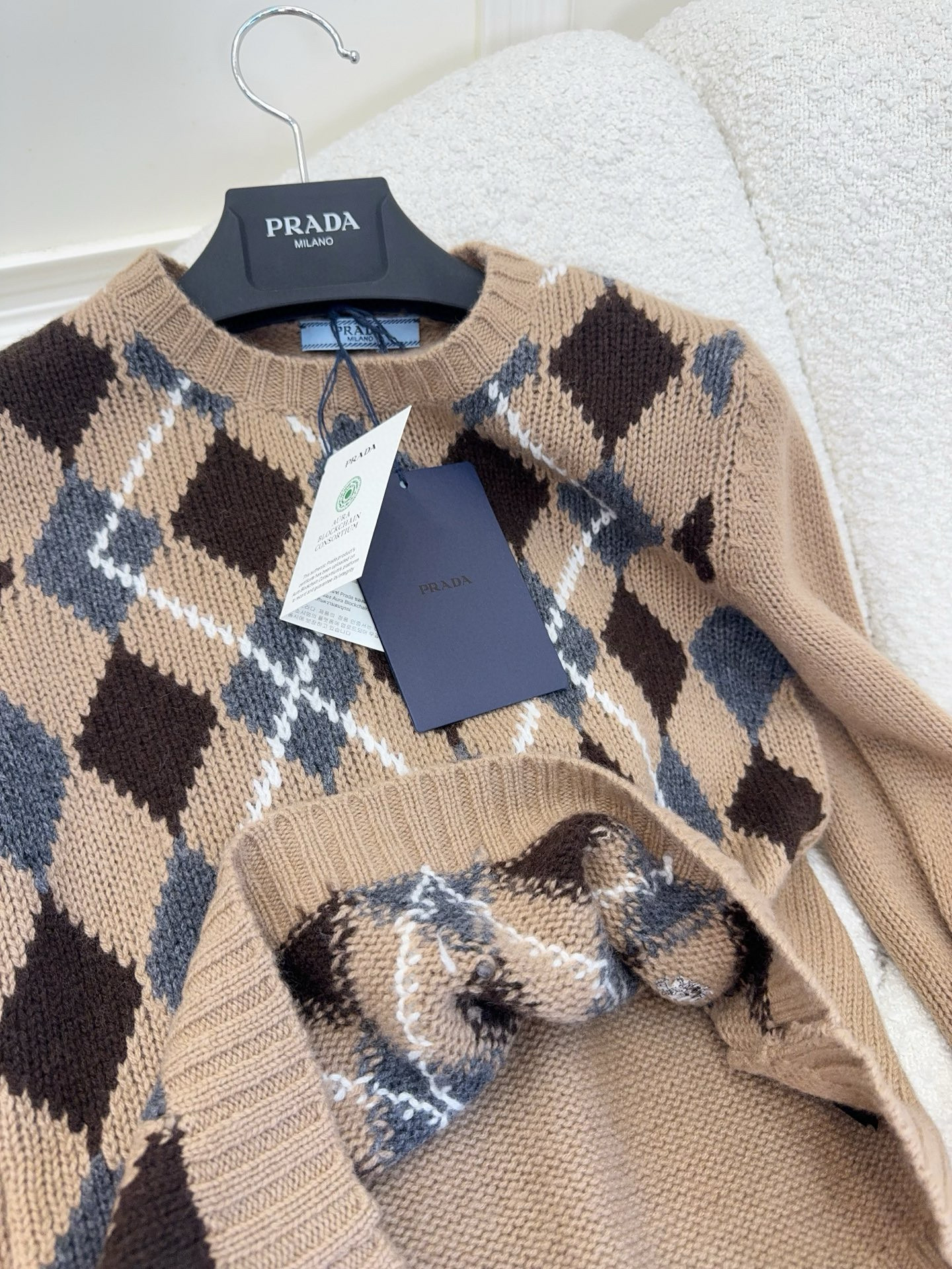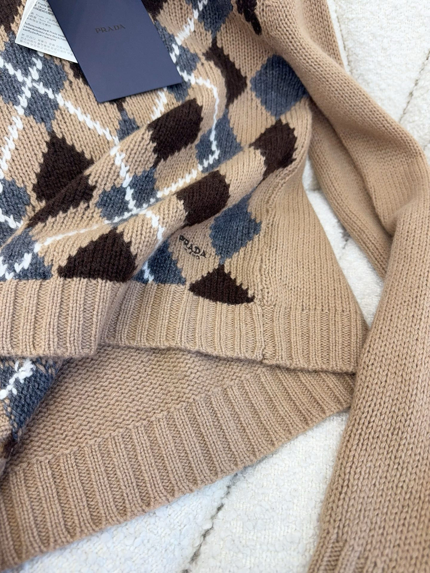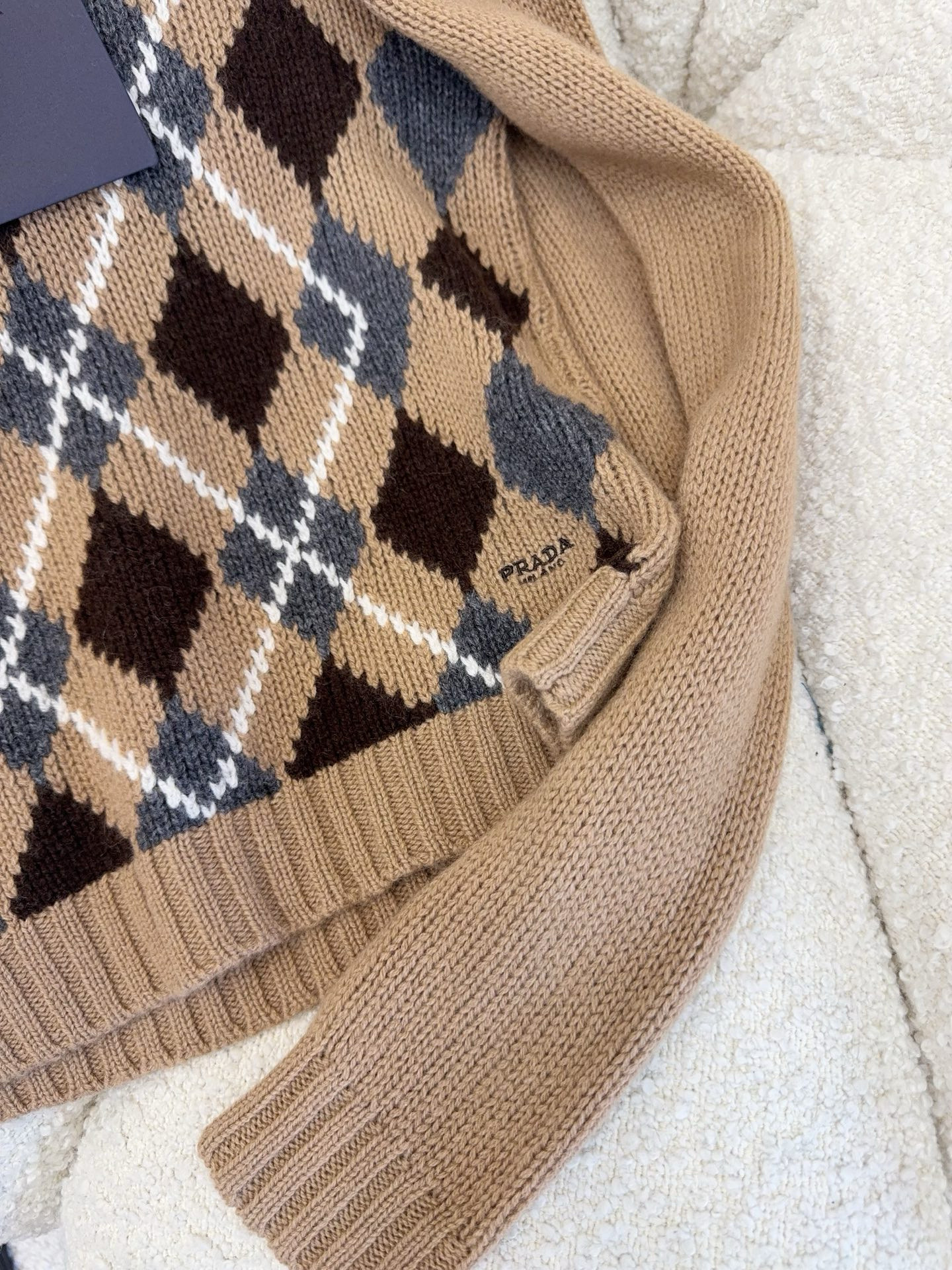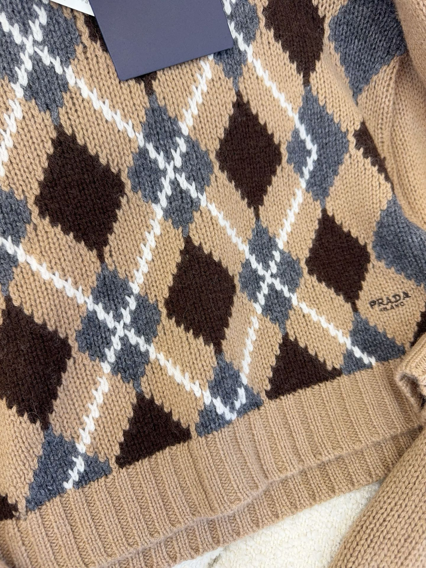 NIGO Prada Women's Fall/Winter Fashion Casual Crewneck Pullover Diamond Pattern Cashmere Short Sleeve Sweater #nigo78788