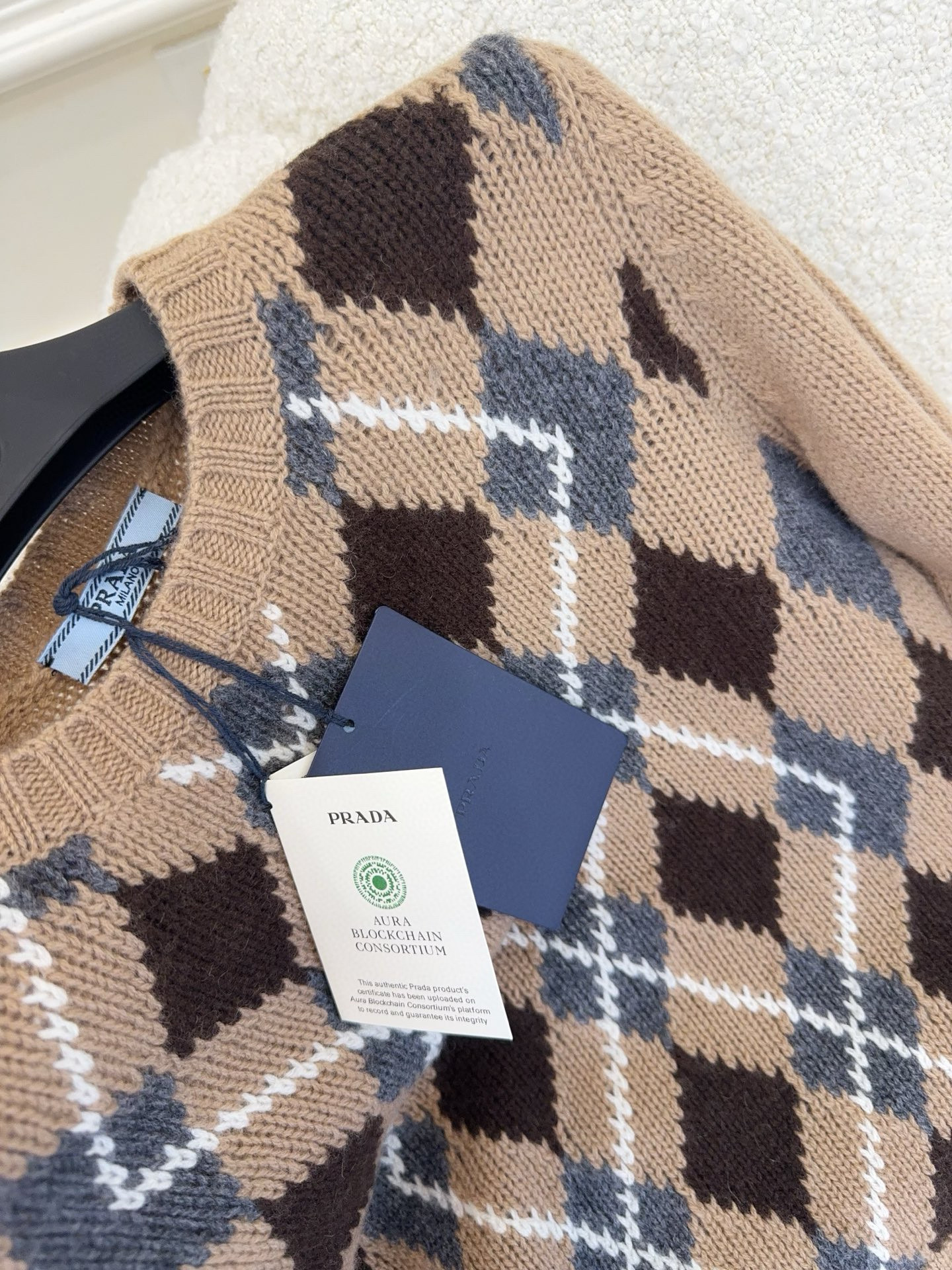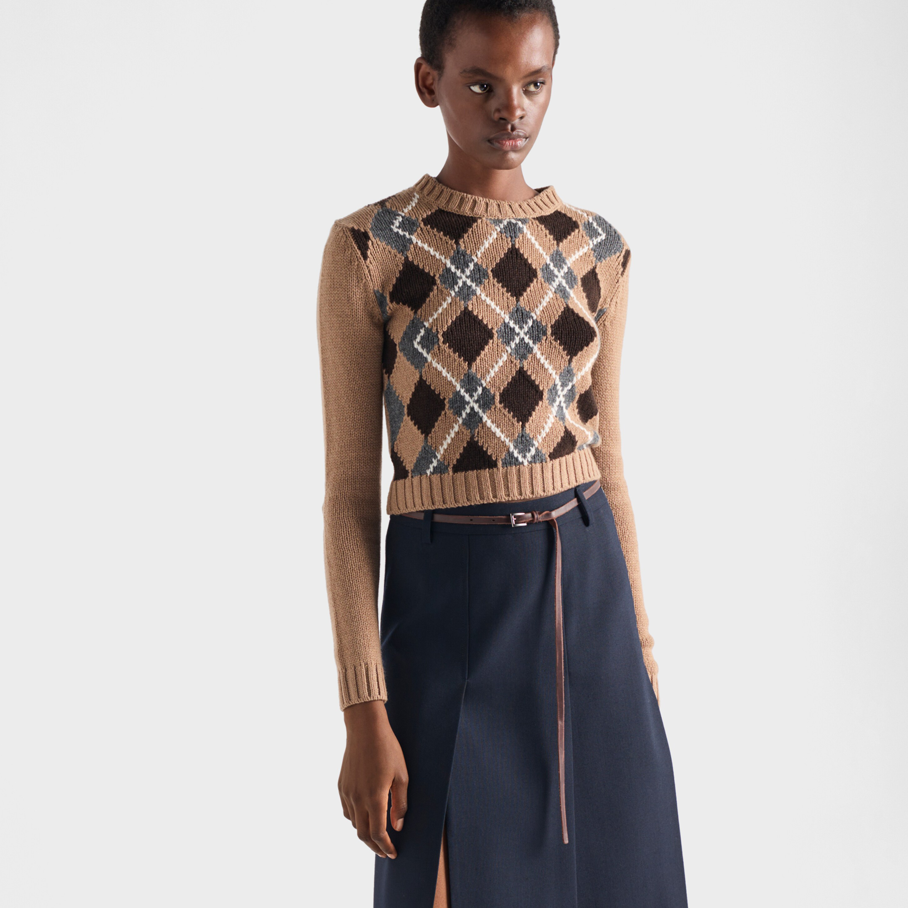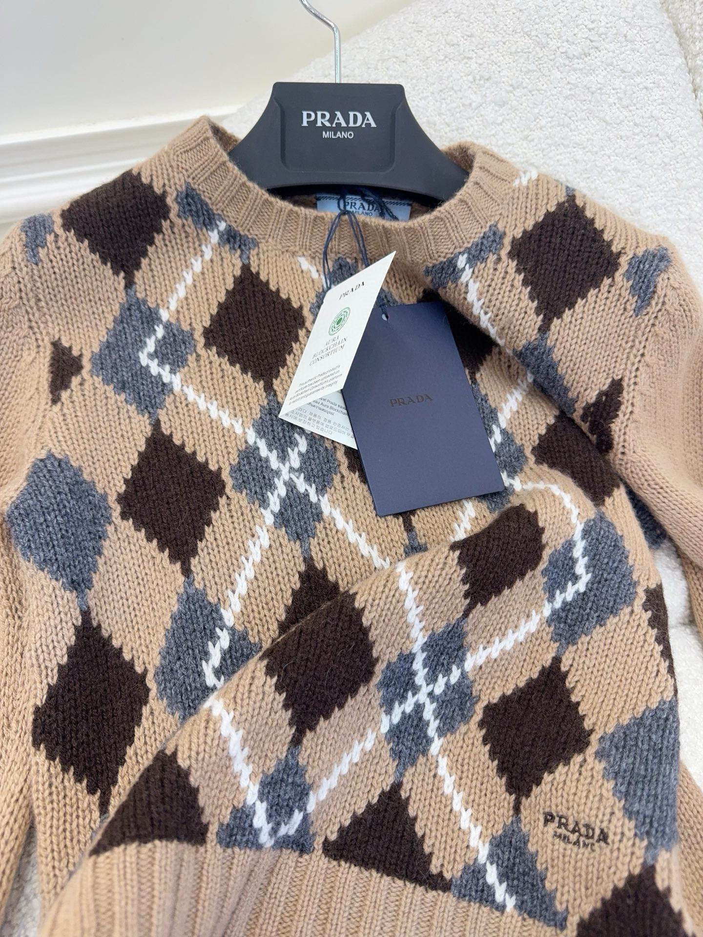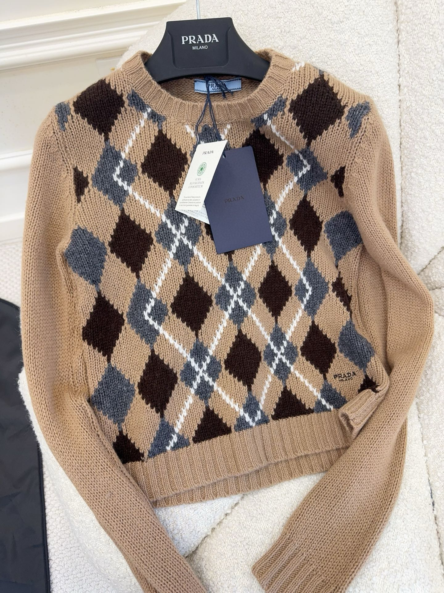 NIGO Prada Women's Fall/Winter Fashion Casual Crewneck Pullover Diamond Pattern Cashmere Short Sleeve Sweater #nigo78788