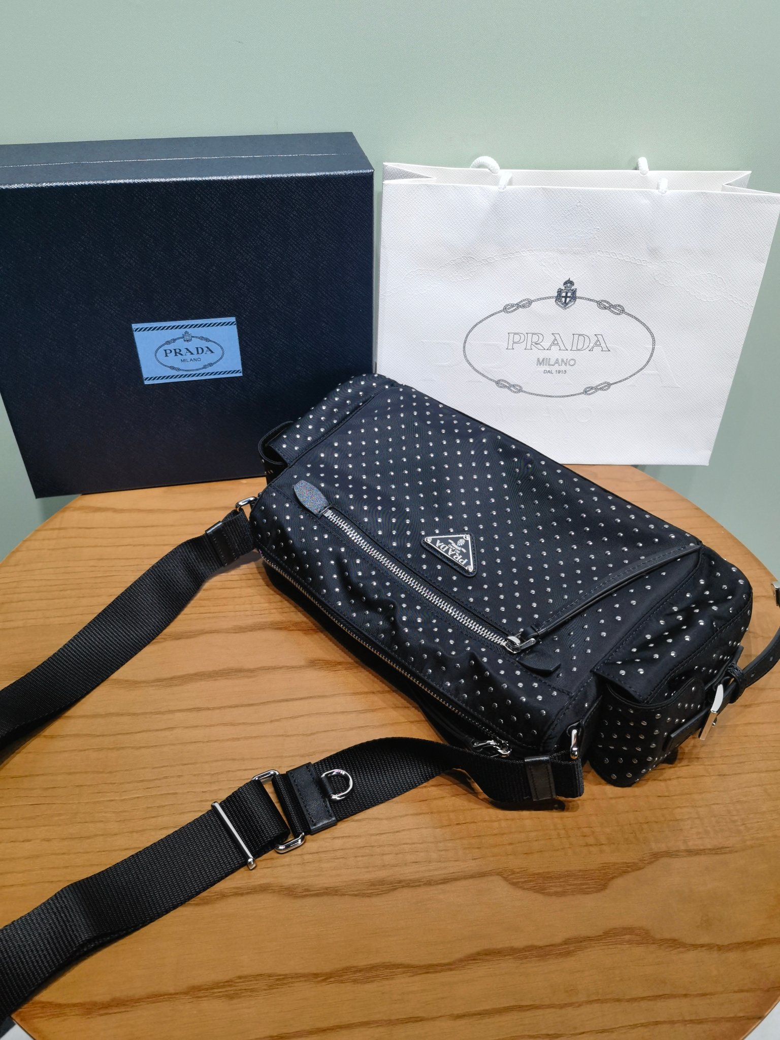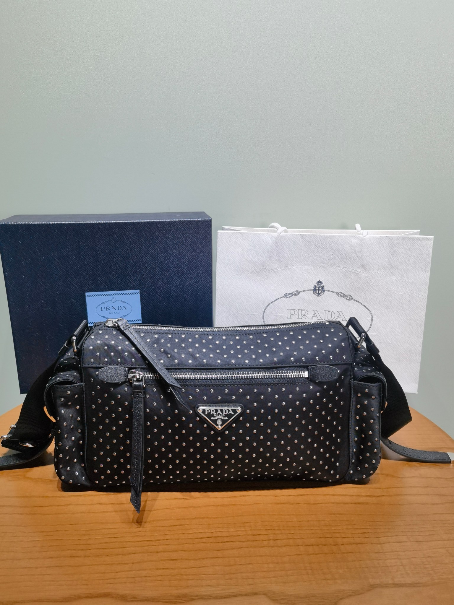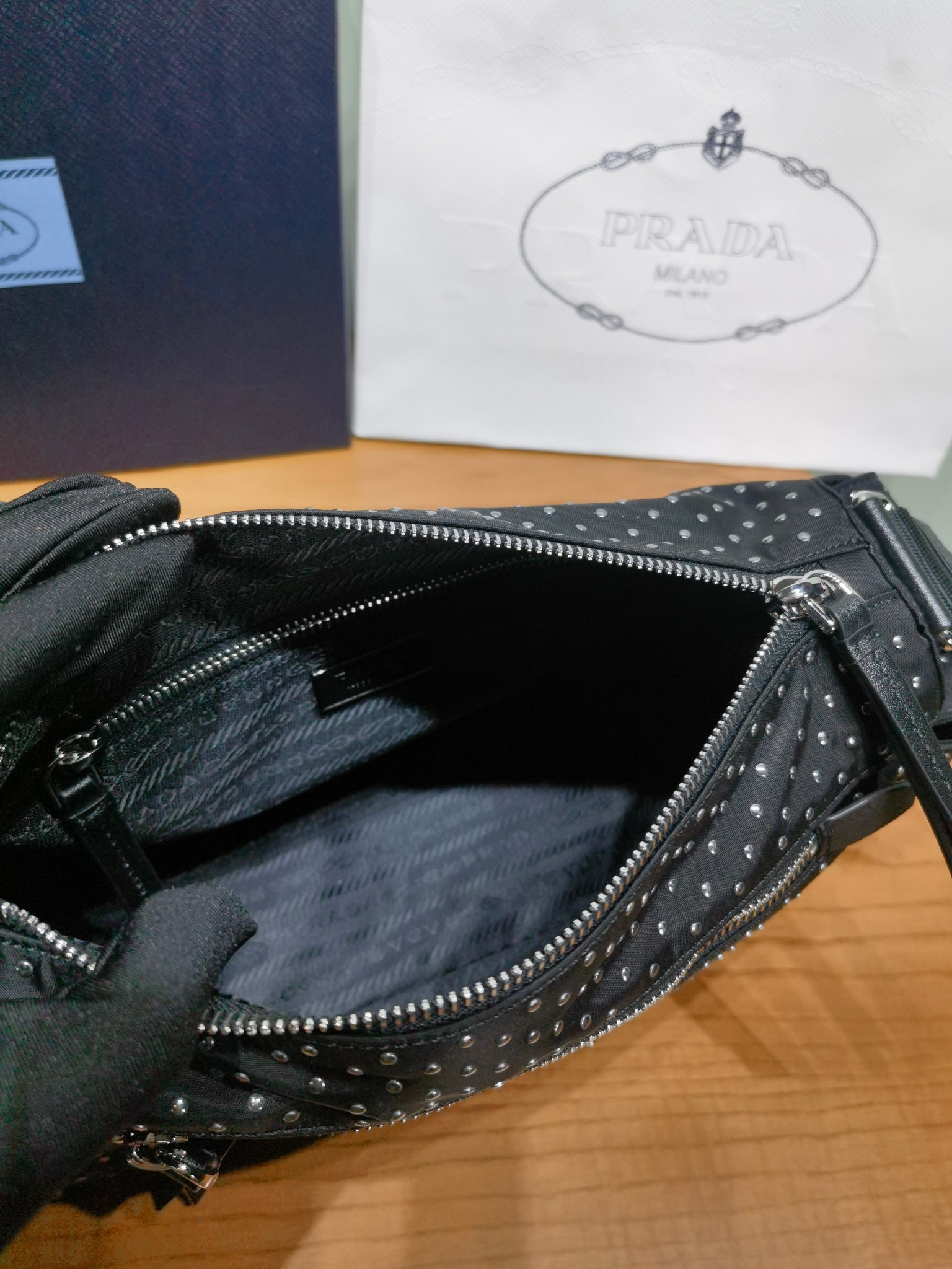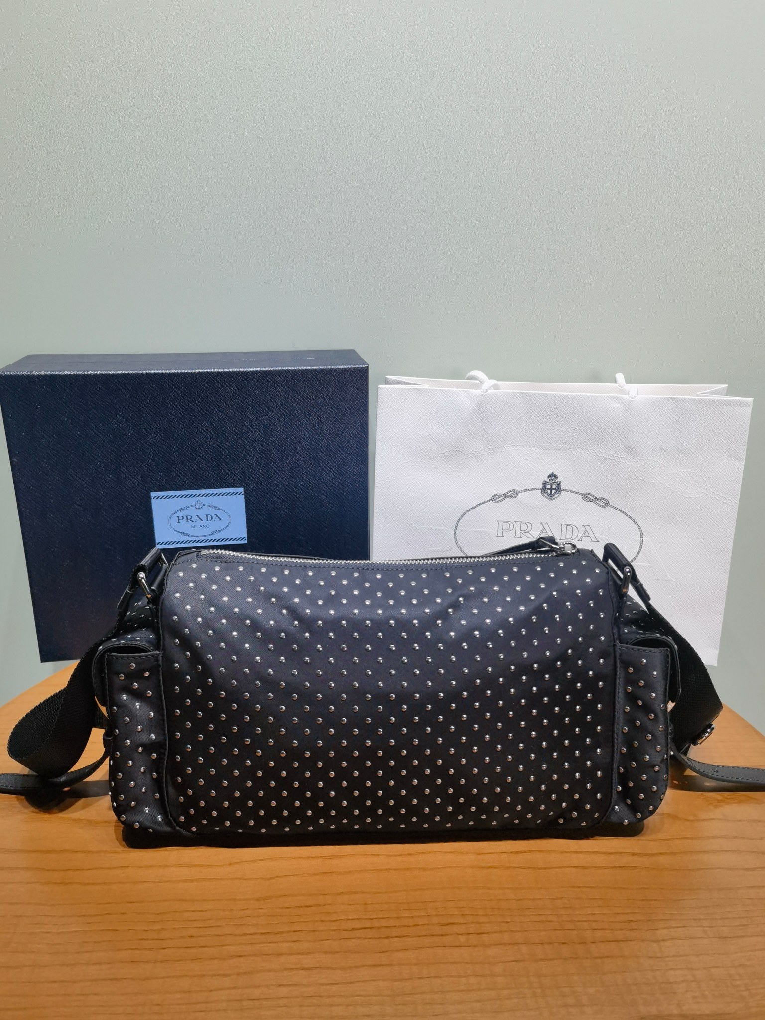 NIGO Prada Women's Metal Triangle Label Zipper Closure Rivet Finish Nylon Shoulder Crossbody Bag Bags #nigo74989