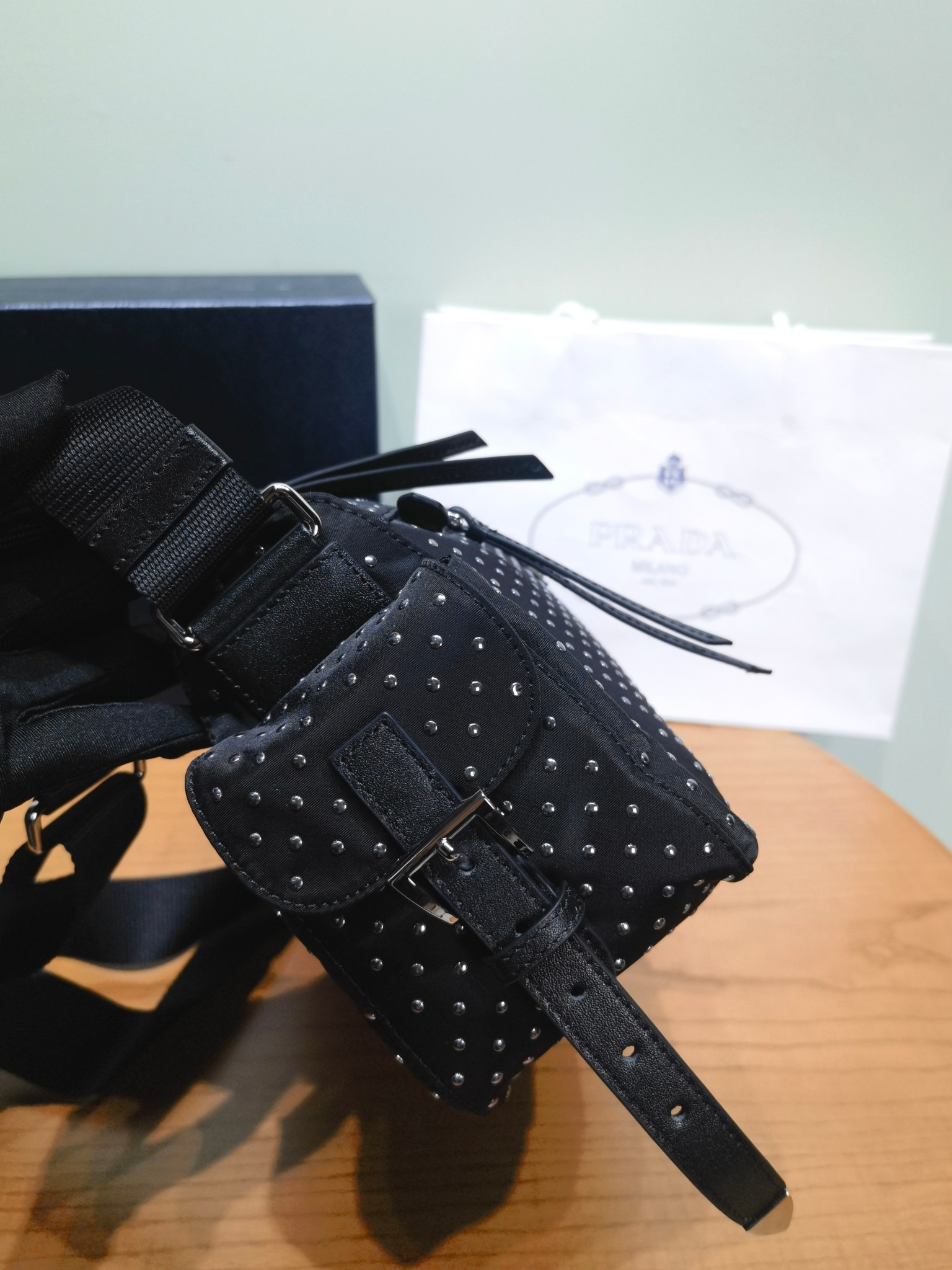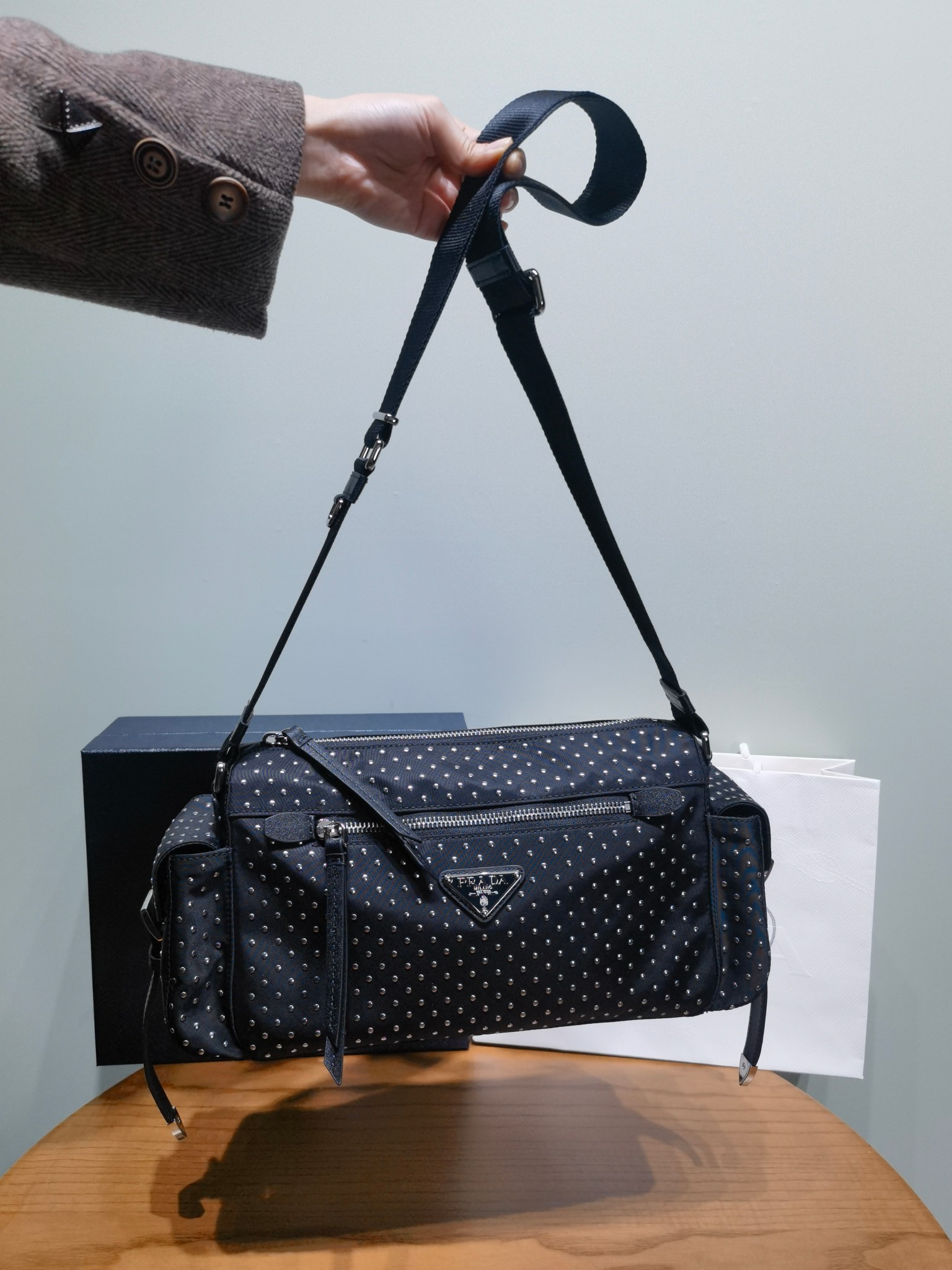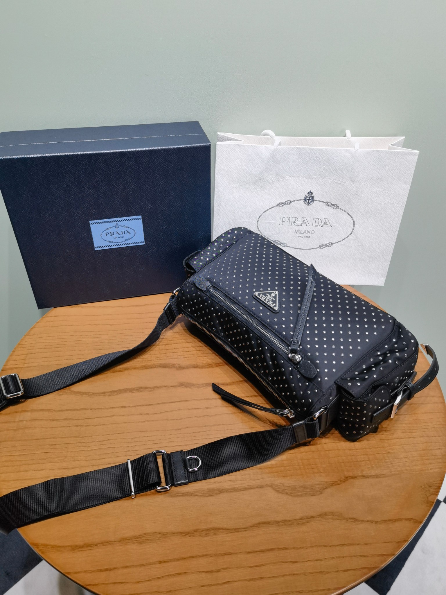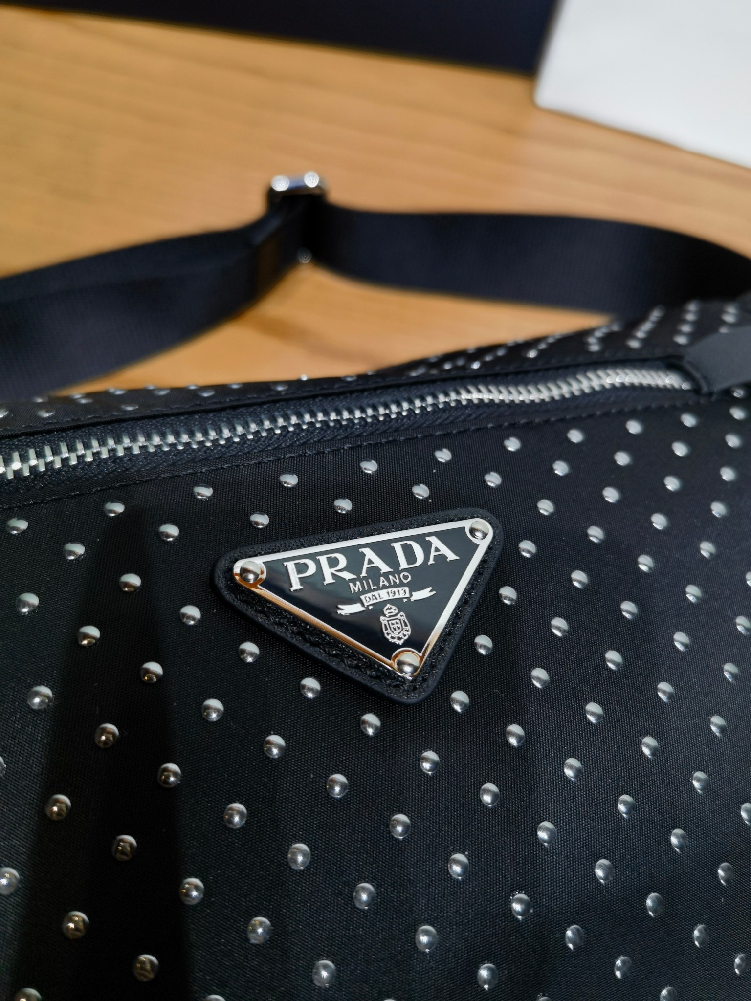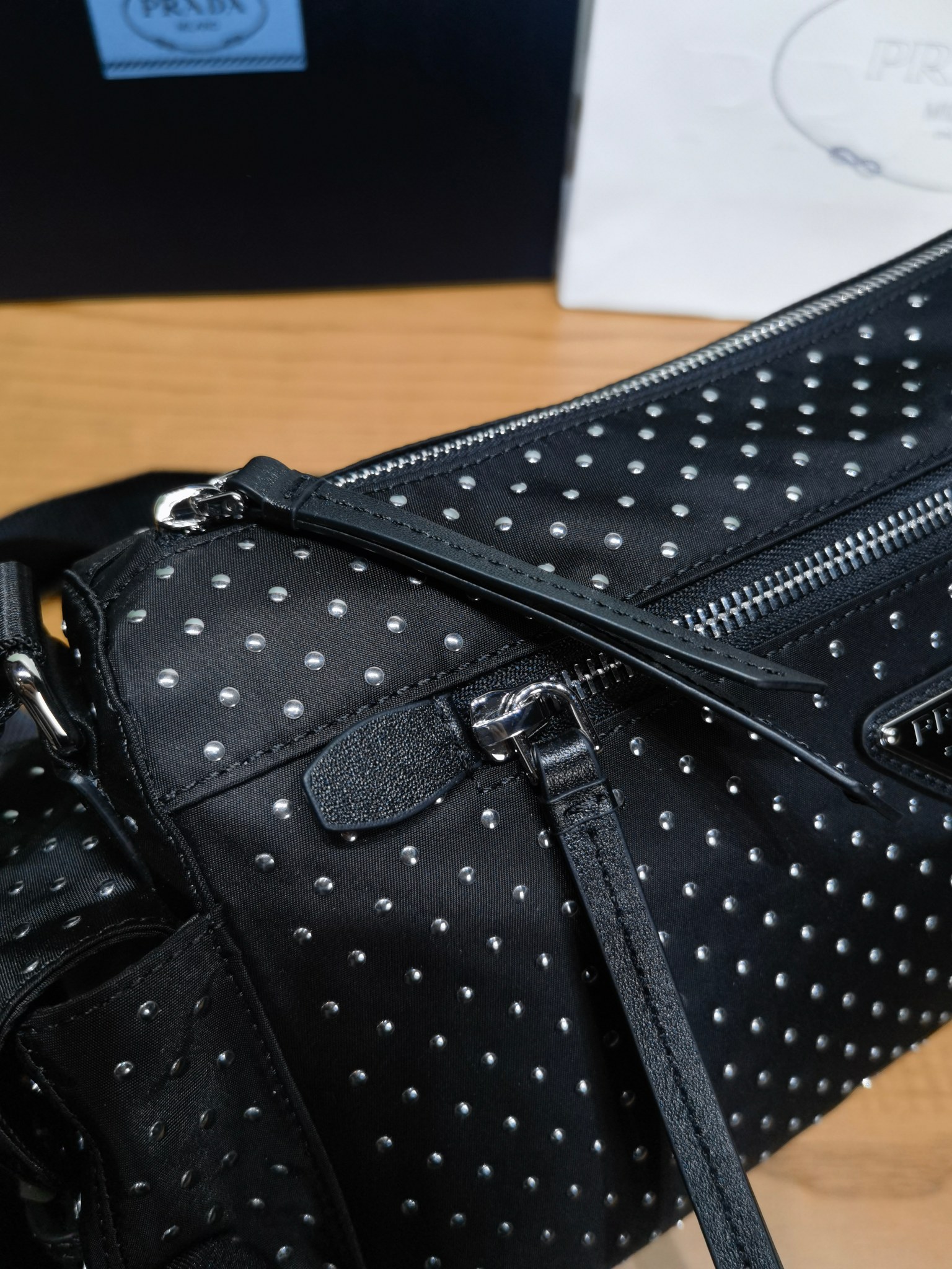 NIGO Prada Women's Metal Triangle Label Zipper Closure Rivet Finish Nylon Shoulder Crossbody Bag Bags #nigo74989