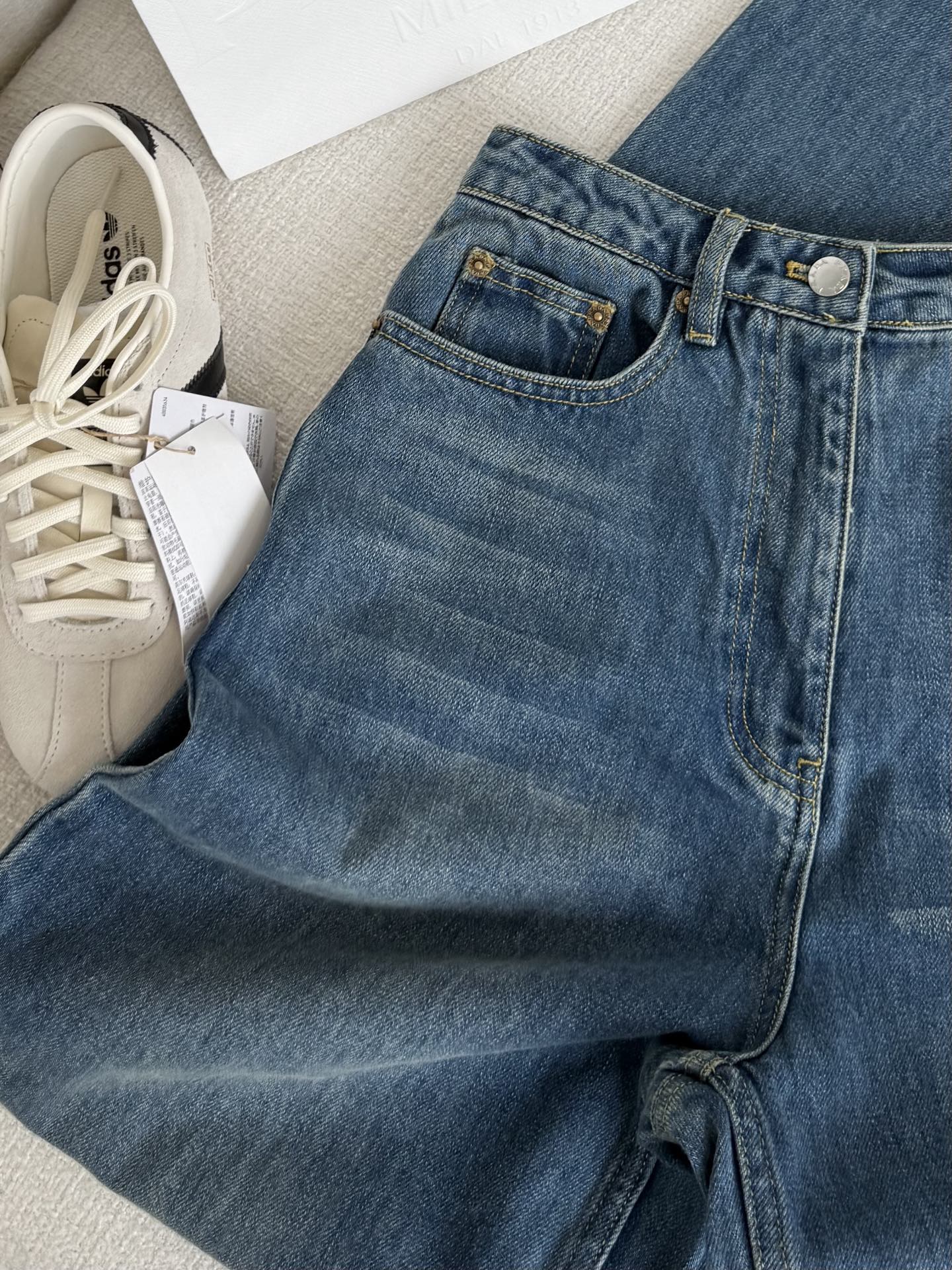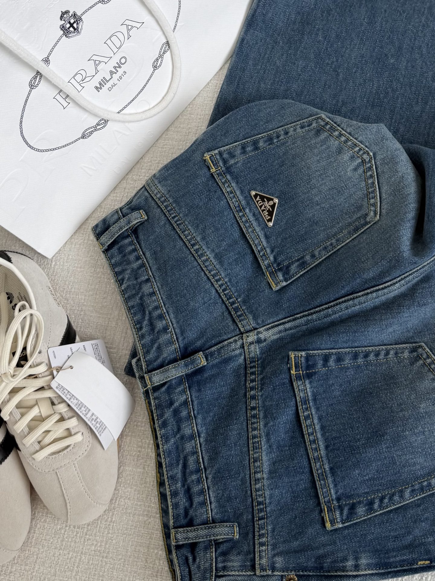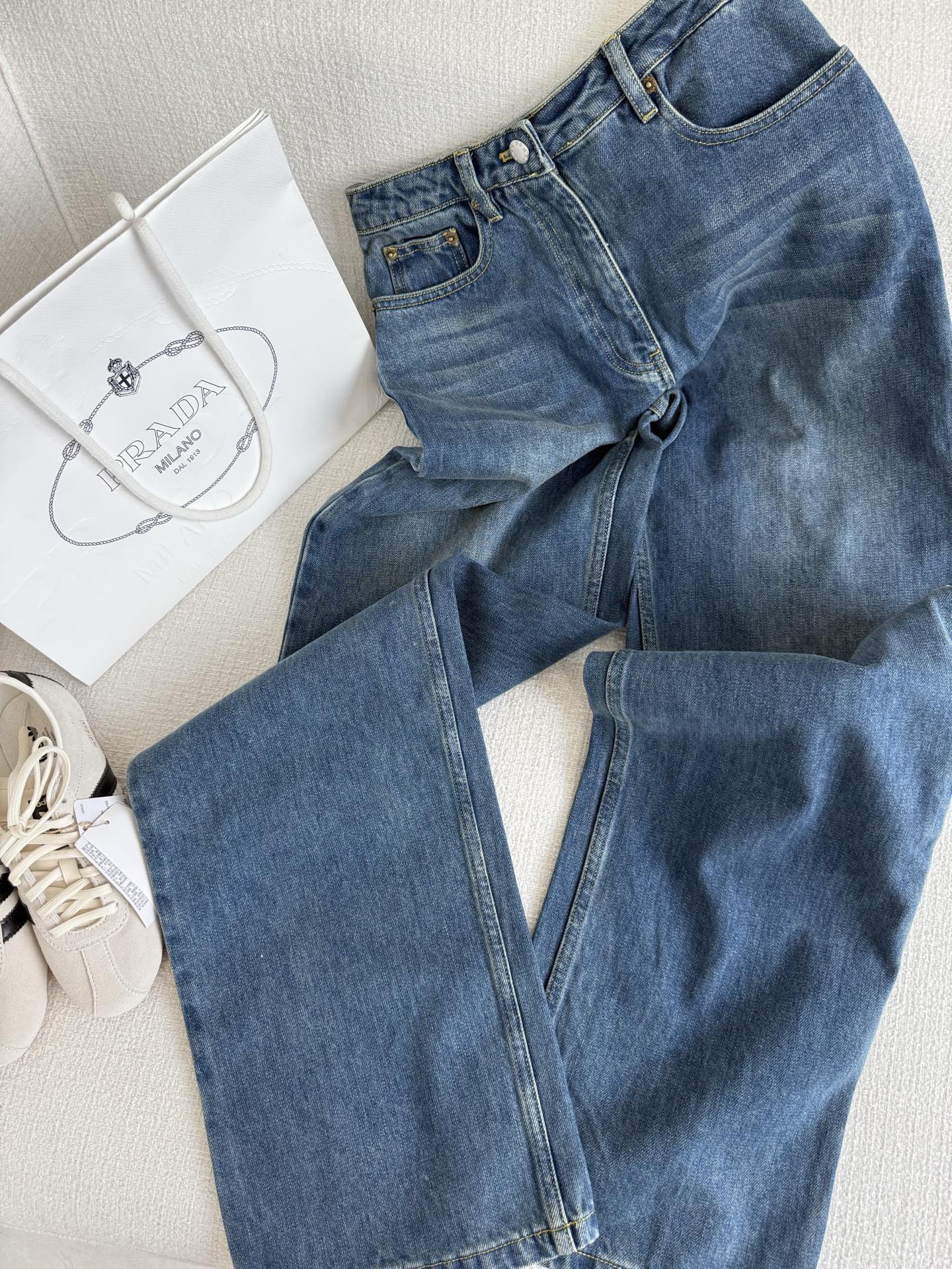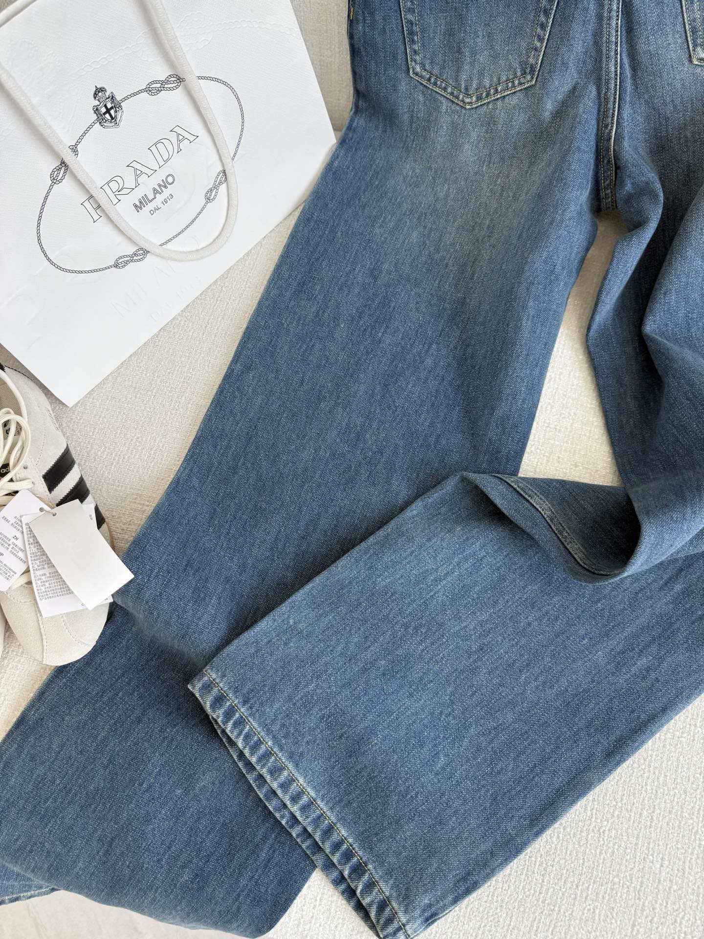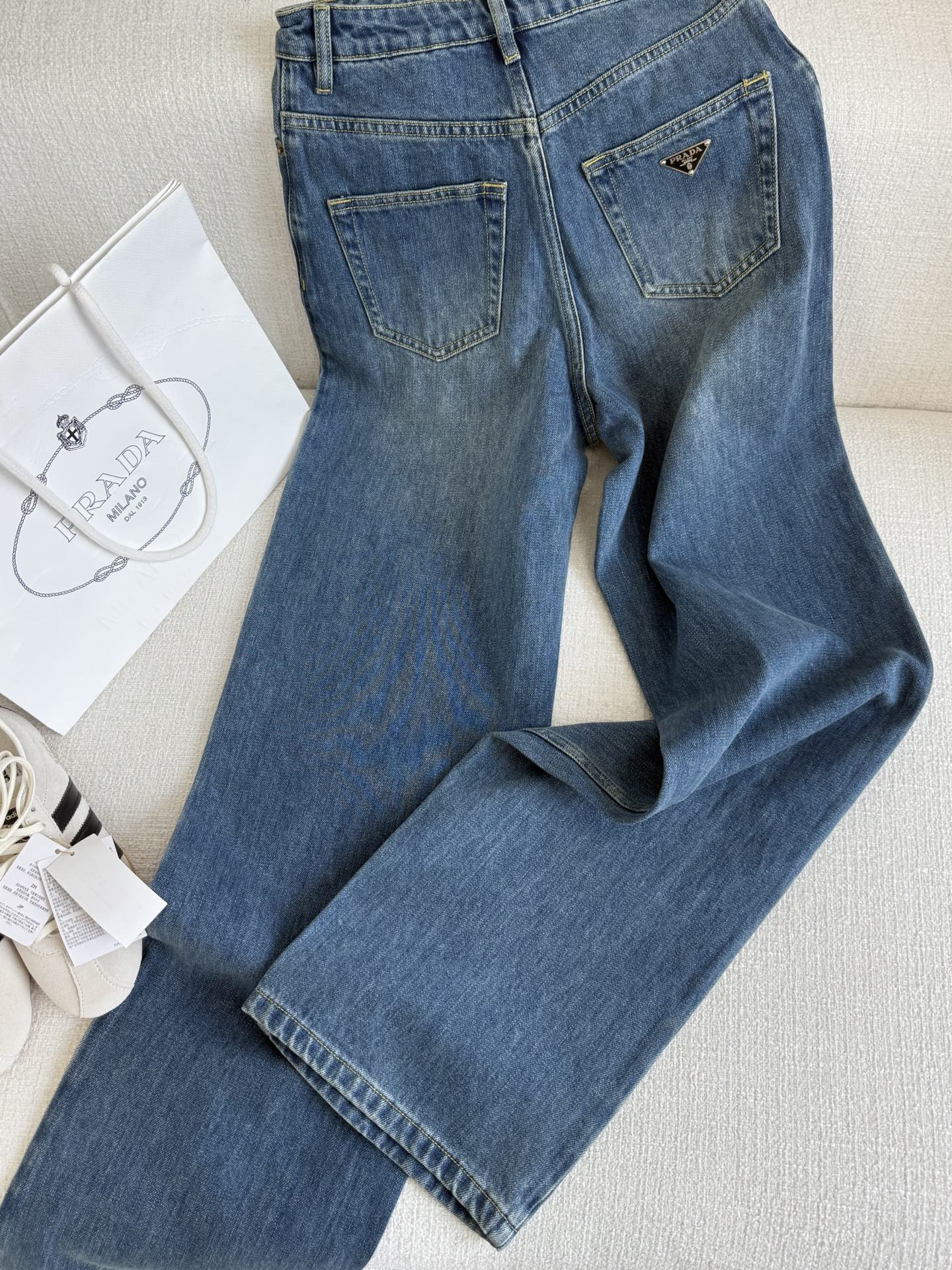 NIGO Prada Women's Spring And Fall Five-pocket Jeans Loose Retro Washed Fashion Elegant Triangle Metal Emblem Logo Straight Long Denim Pants #nigo81442