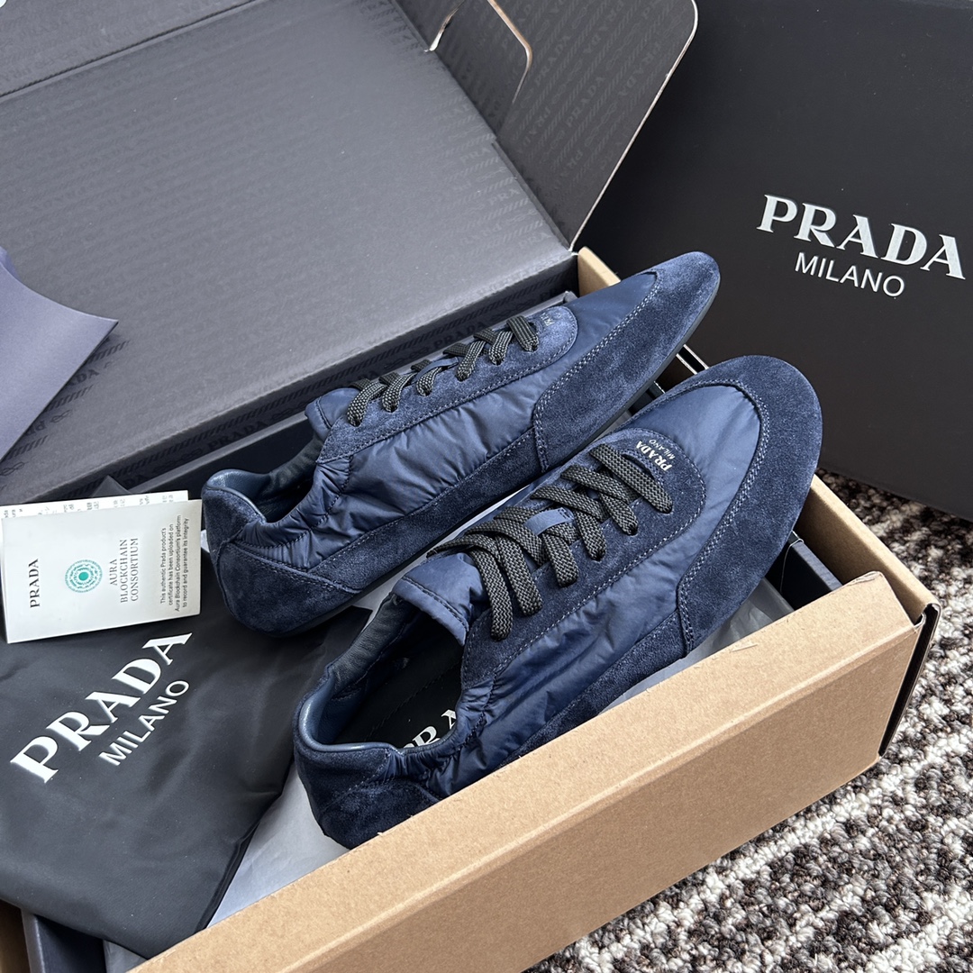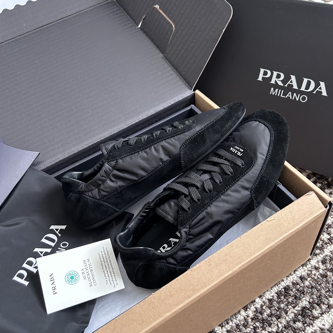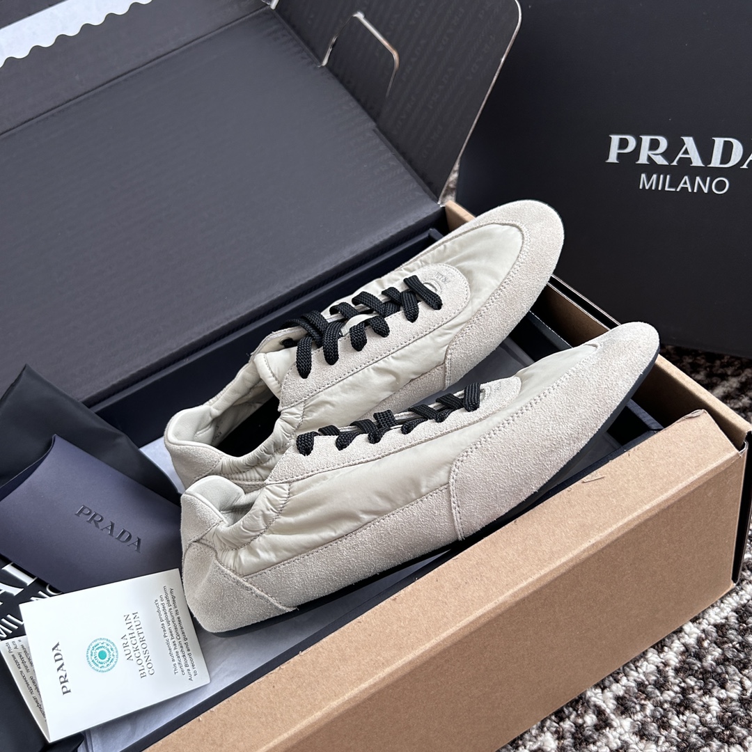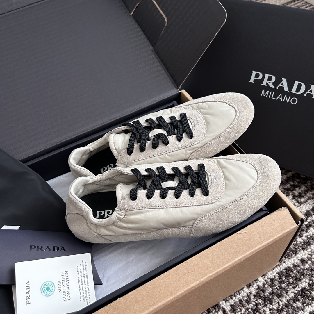 NIGO Prada Women's Spring/Fall Fashion Casual Round Toe Lace Up Mesh Print Logo Cotton Laced Sneakers Shoes #nigo78481