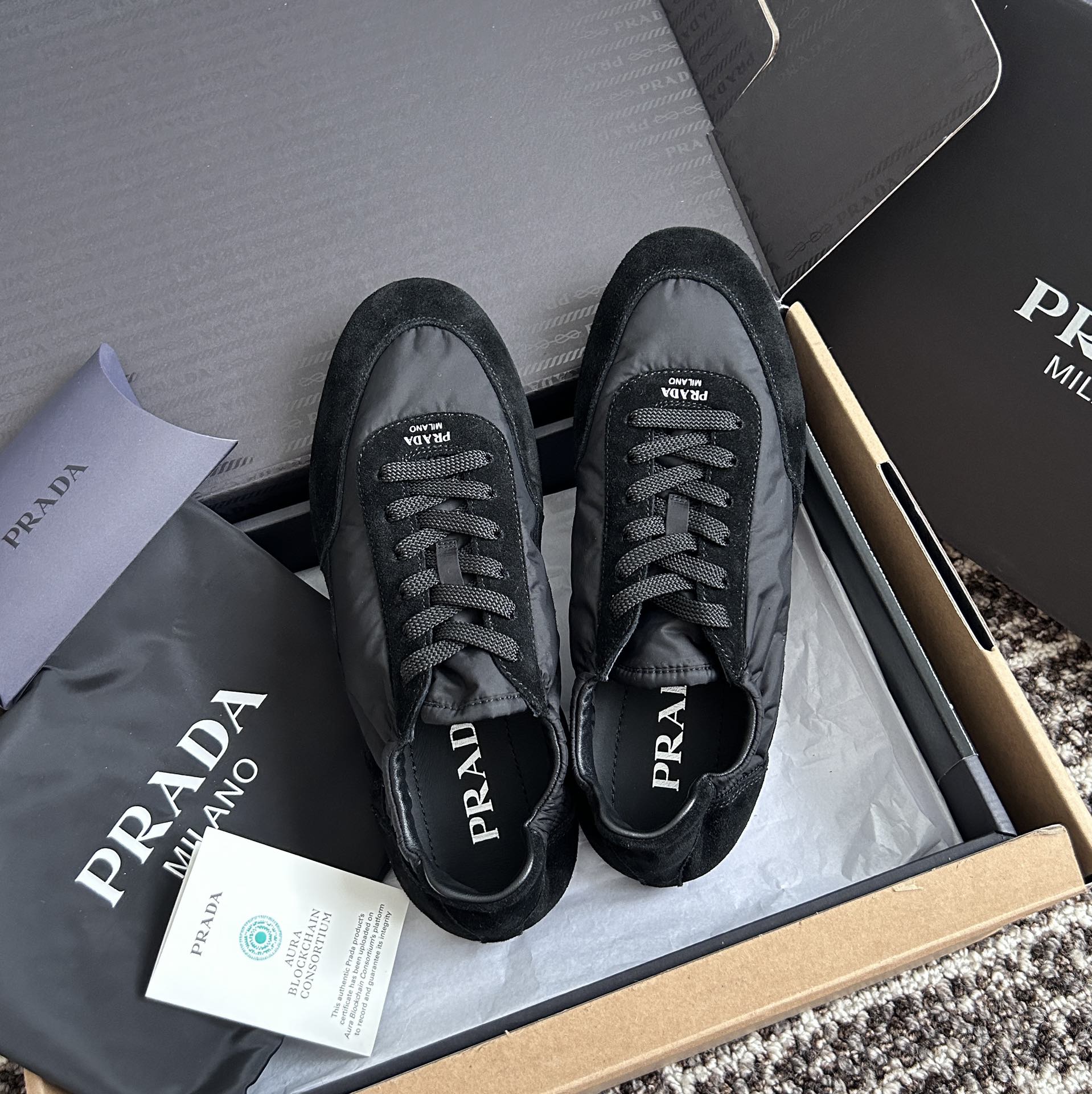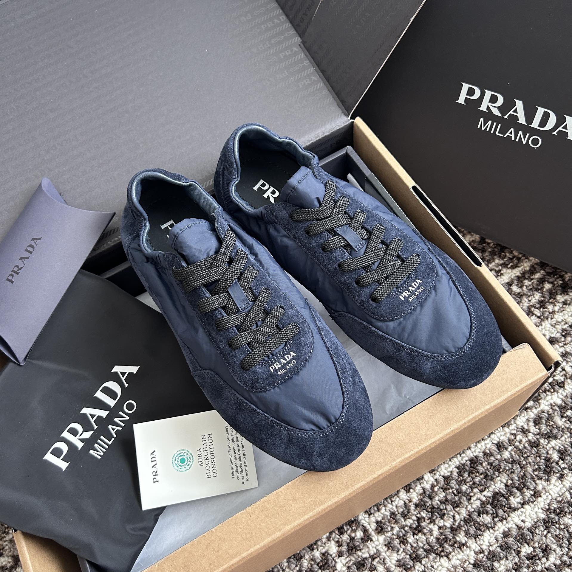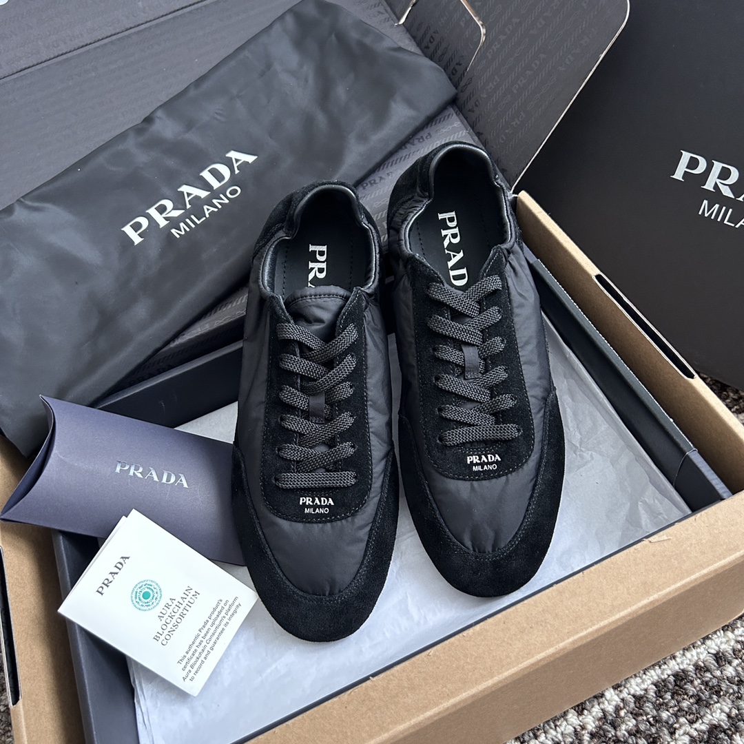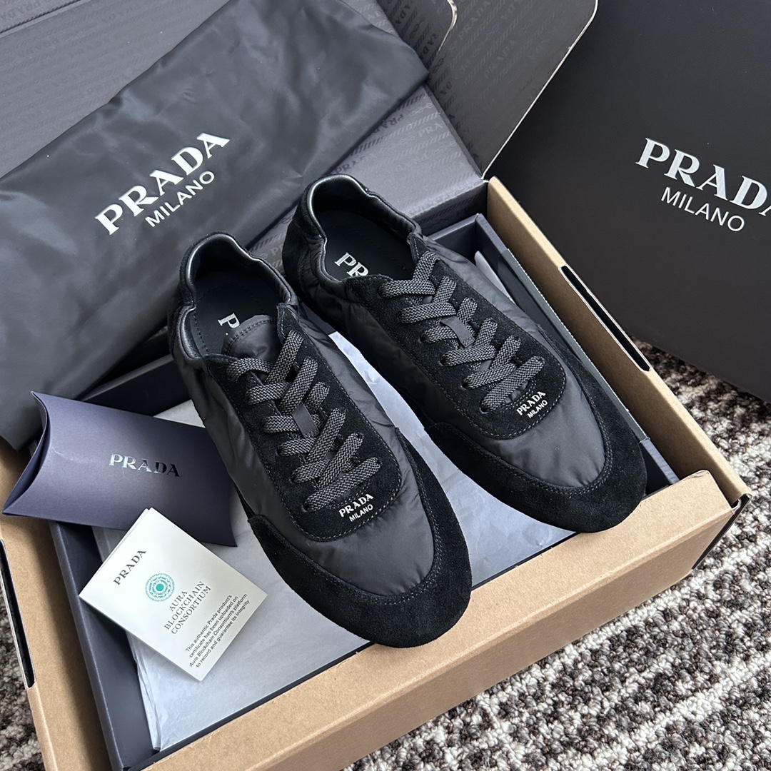 NIGO Prada Women's Spring/Fall Fashion Casual Round Toe Lace Up Mesh Print Logo Cotton Laced Sneakers Shoes #nigo78481