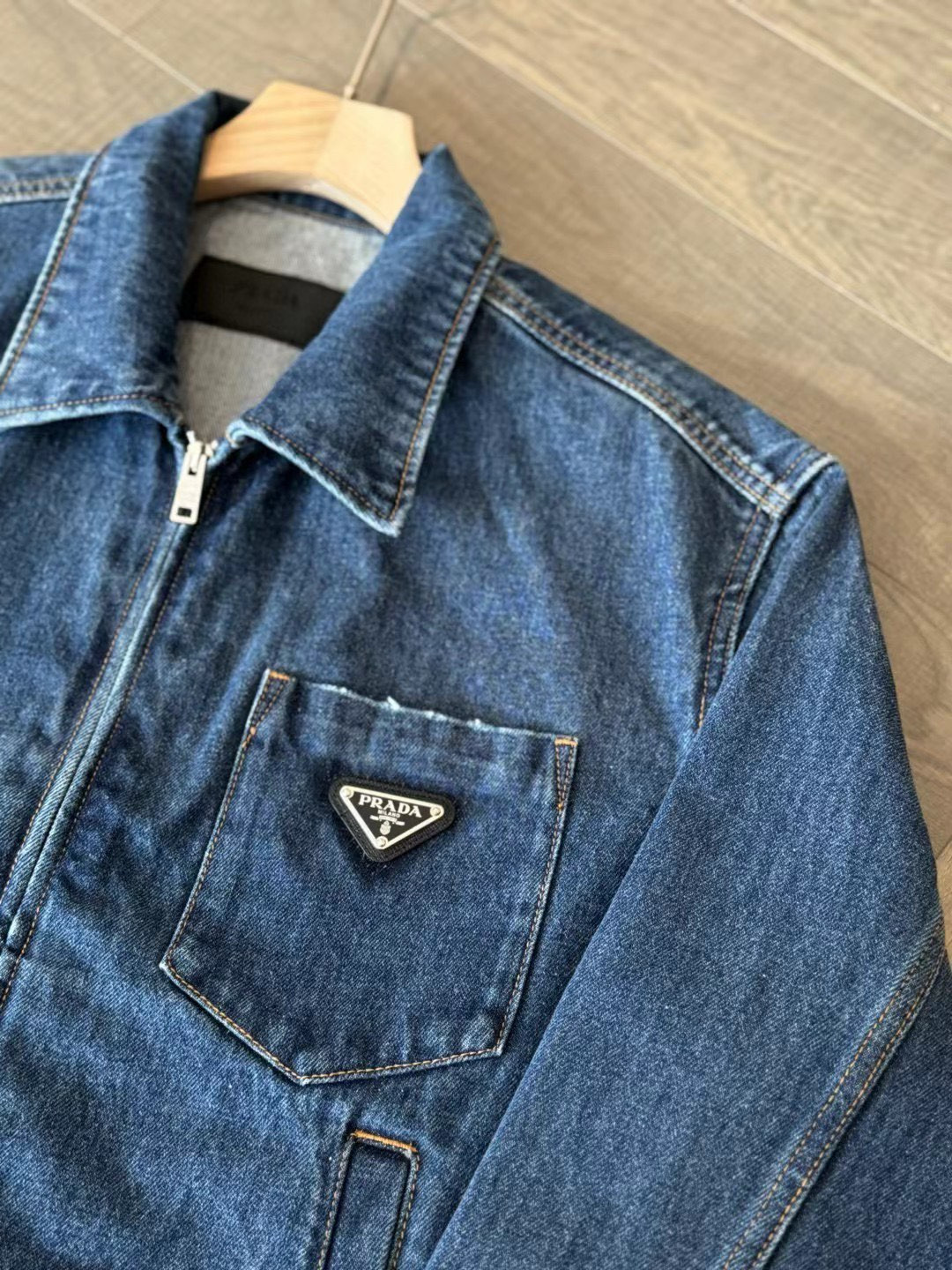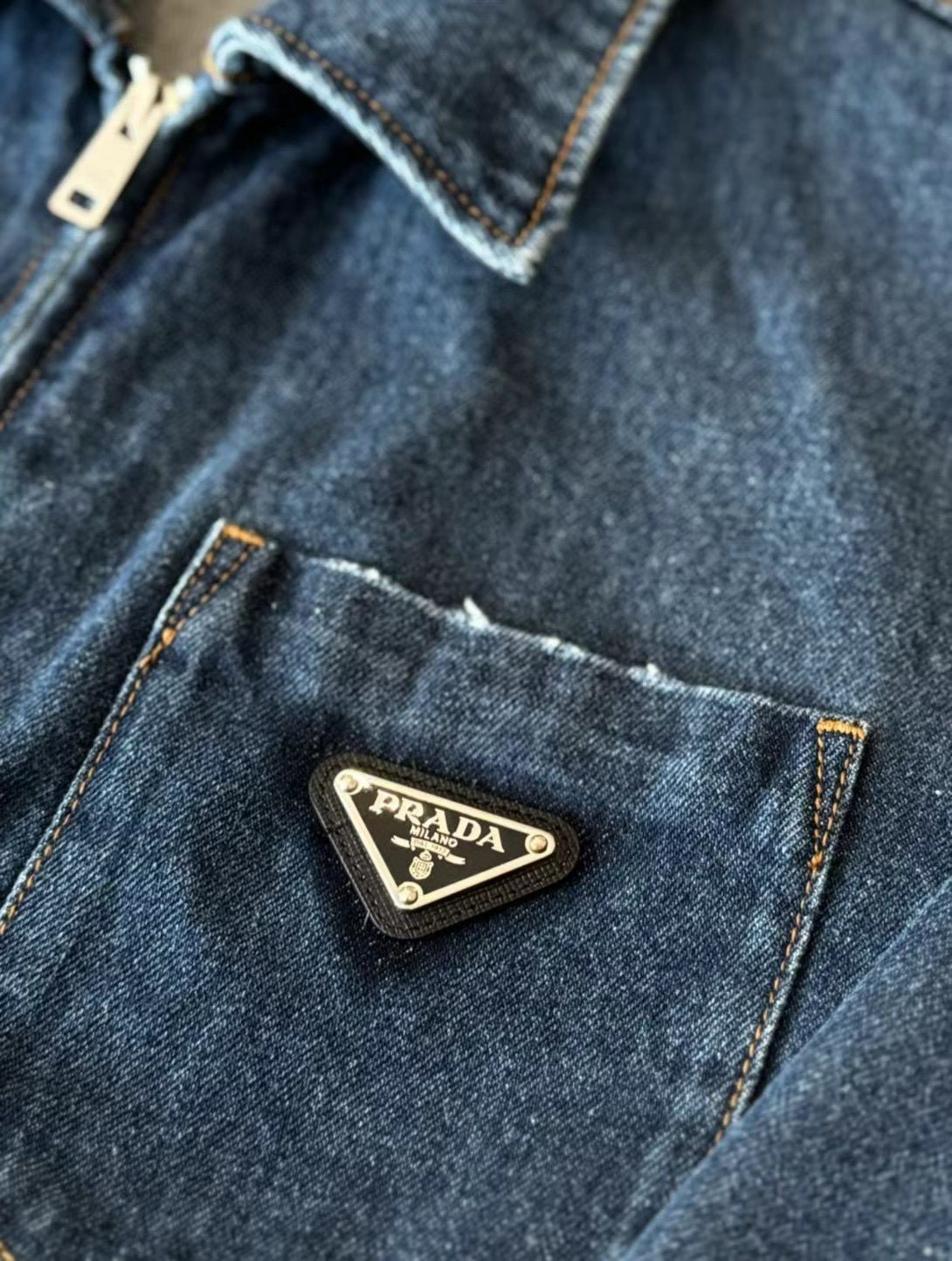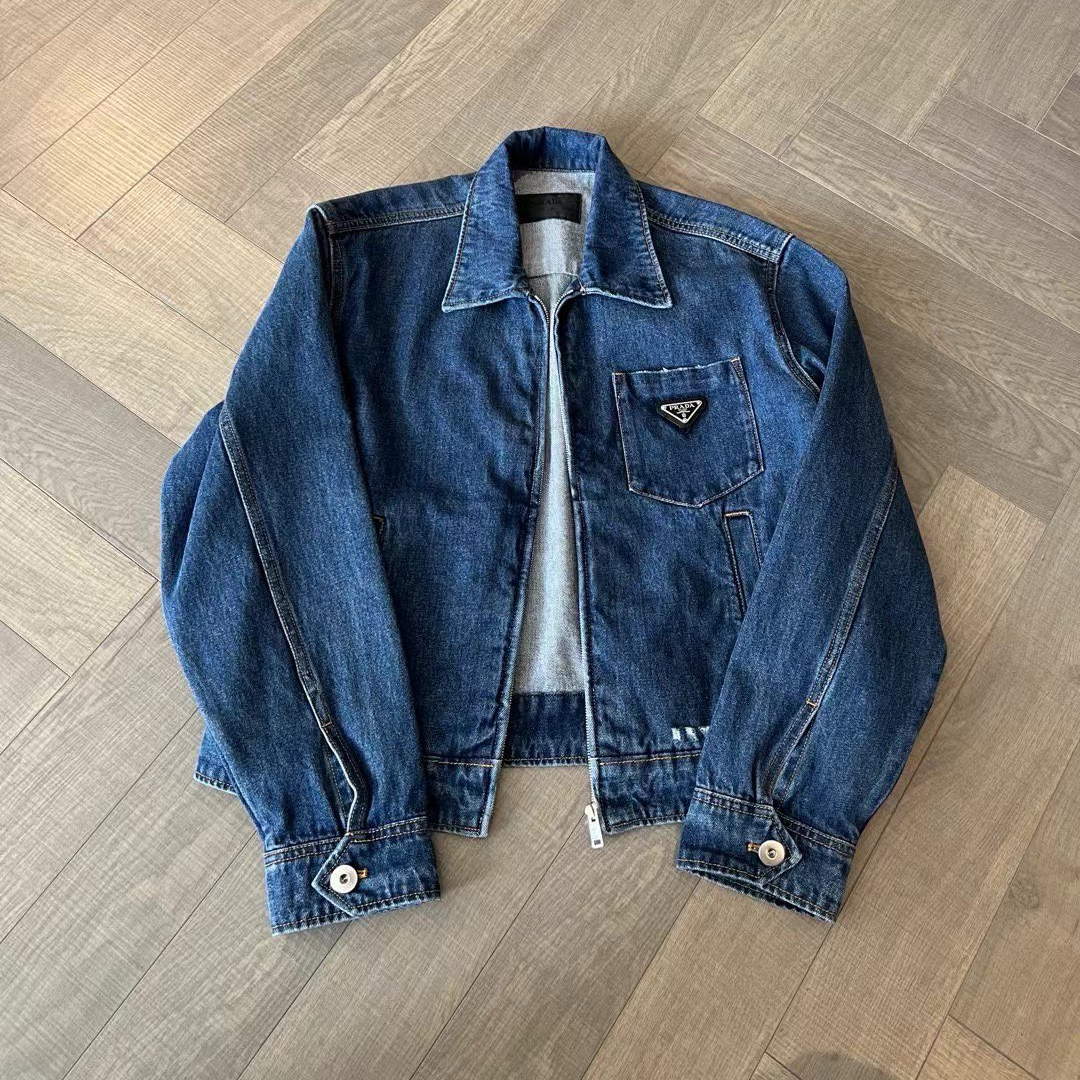 NIGO Prada Women's Spring/Fall Fashion Casual Zipper Collar Logo Triangle Emblem Denim Jacket #nigo78971