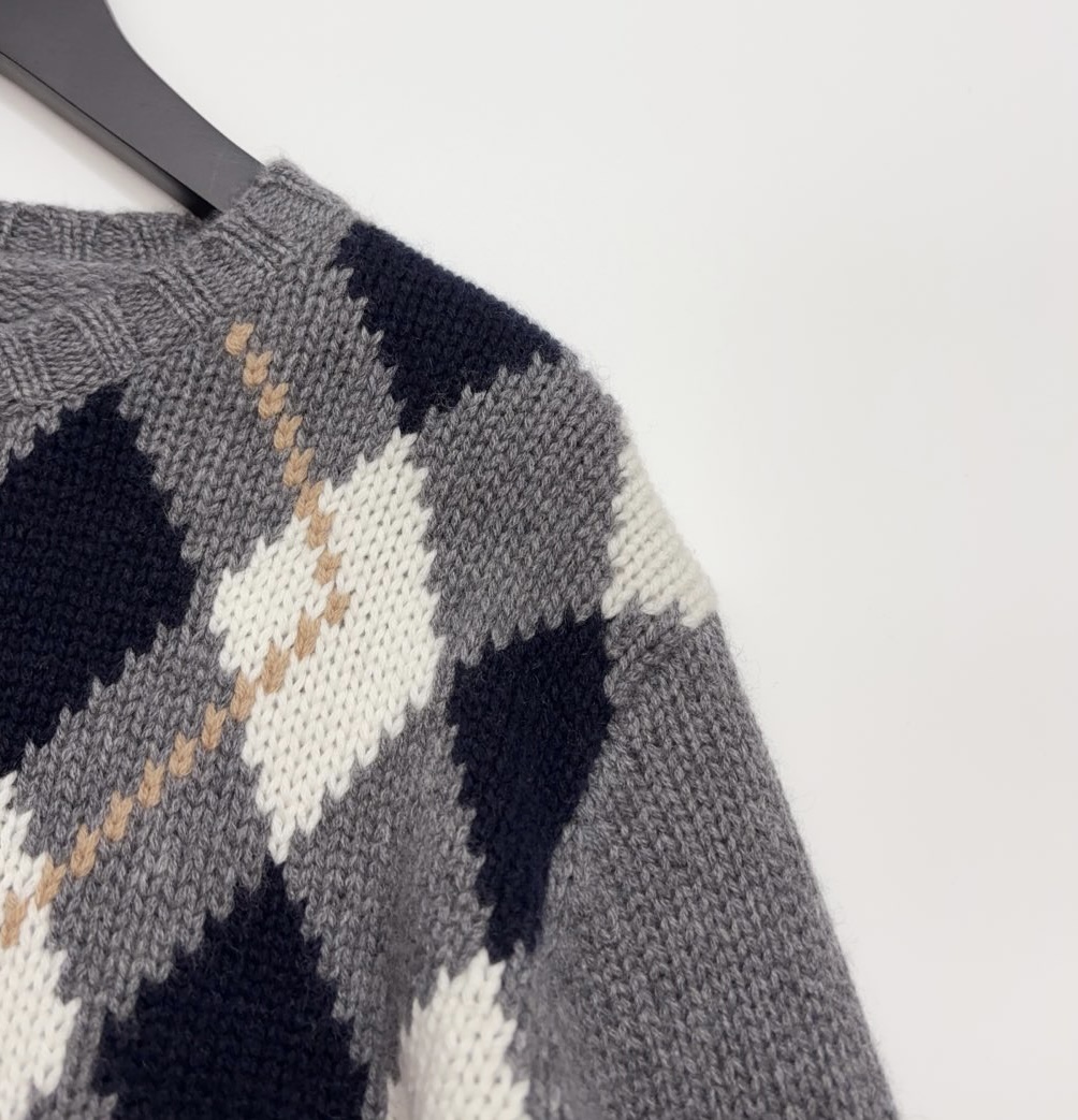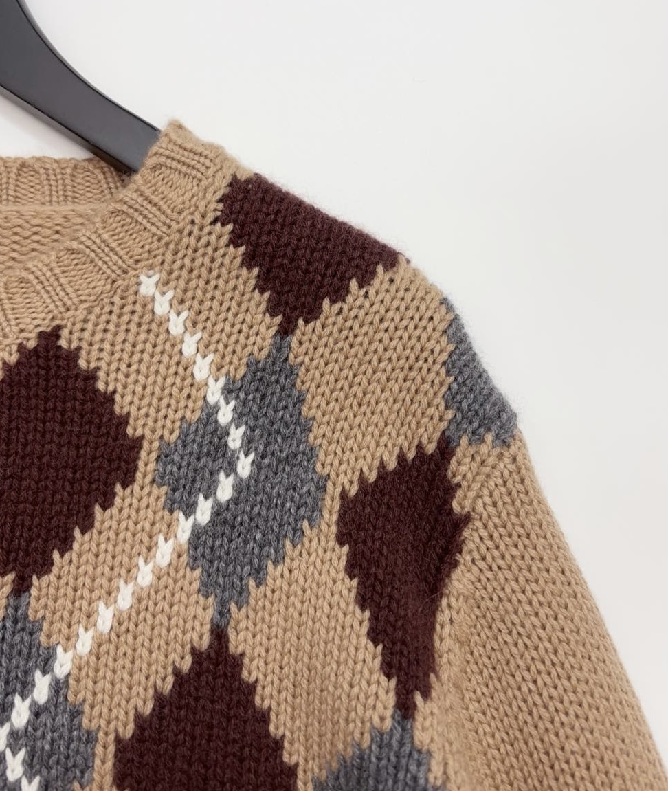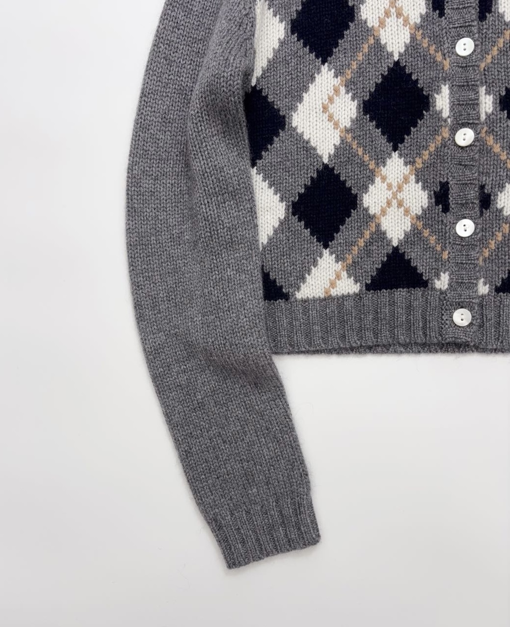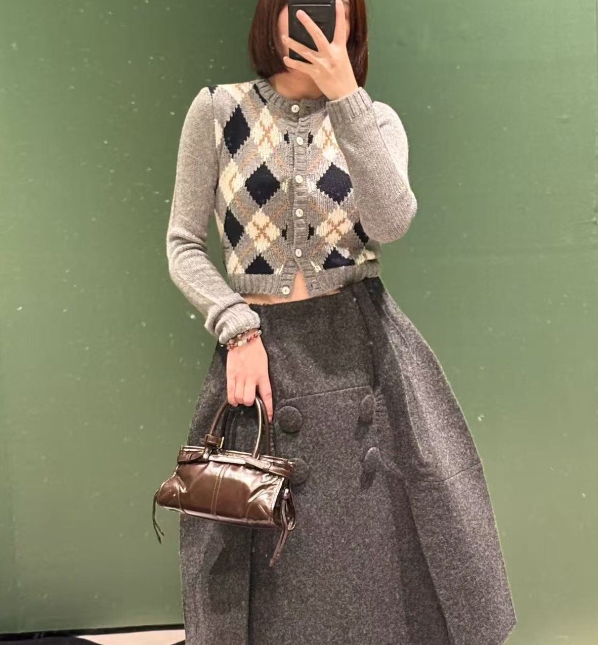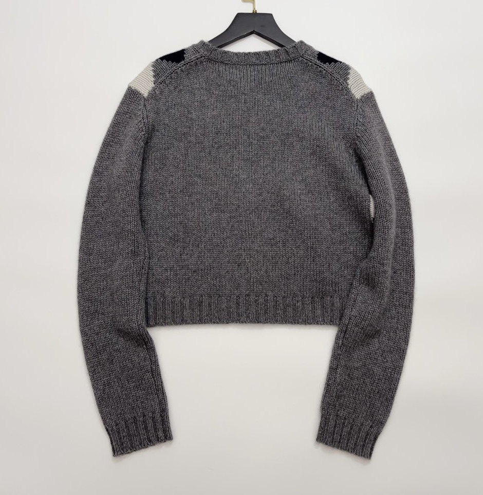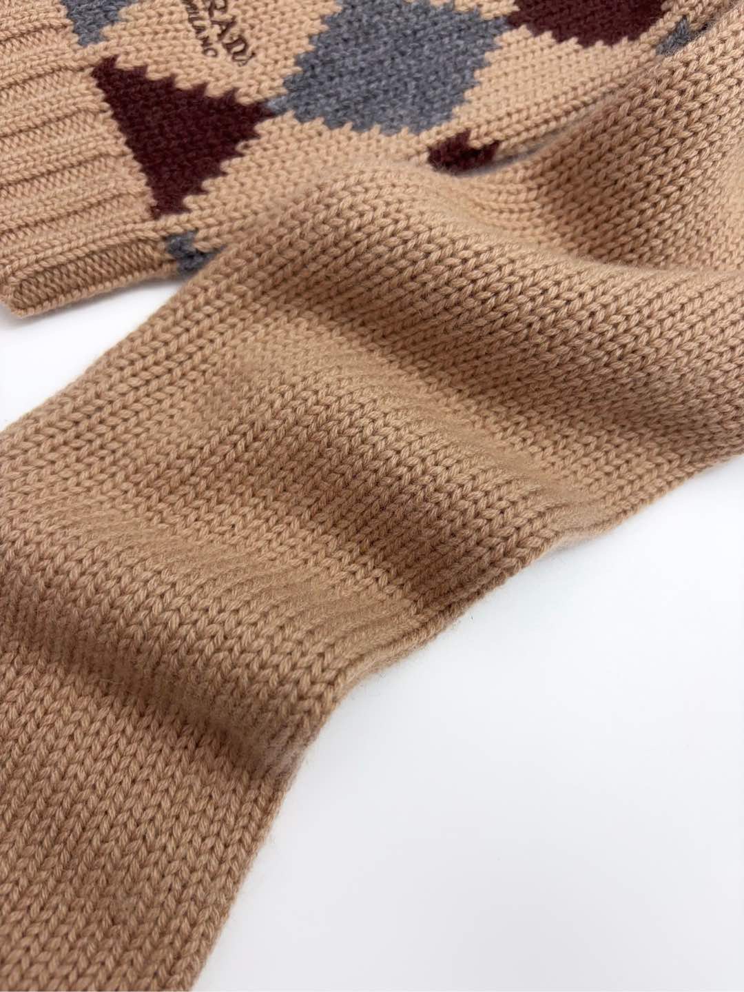 NIGO Prada Women's Spring/Fall Round Neck Single-Button Diamond-Pattern Cashmere Knit Cardigan with Letter Embroidery Long Sleeve Cropped Cardigan #nigo78839