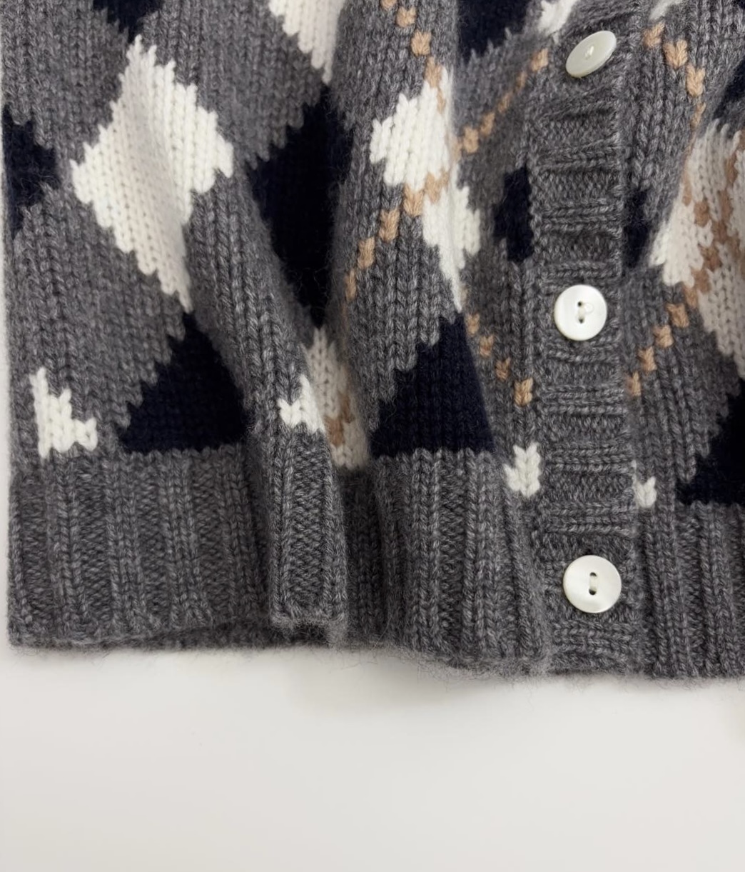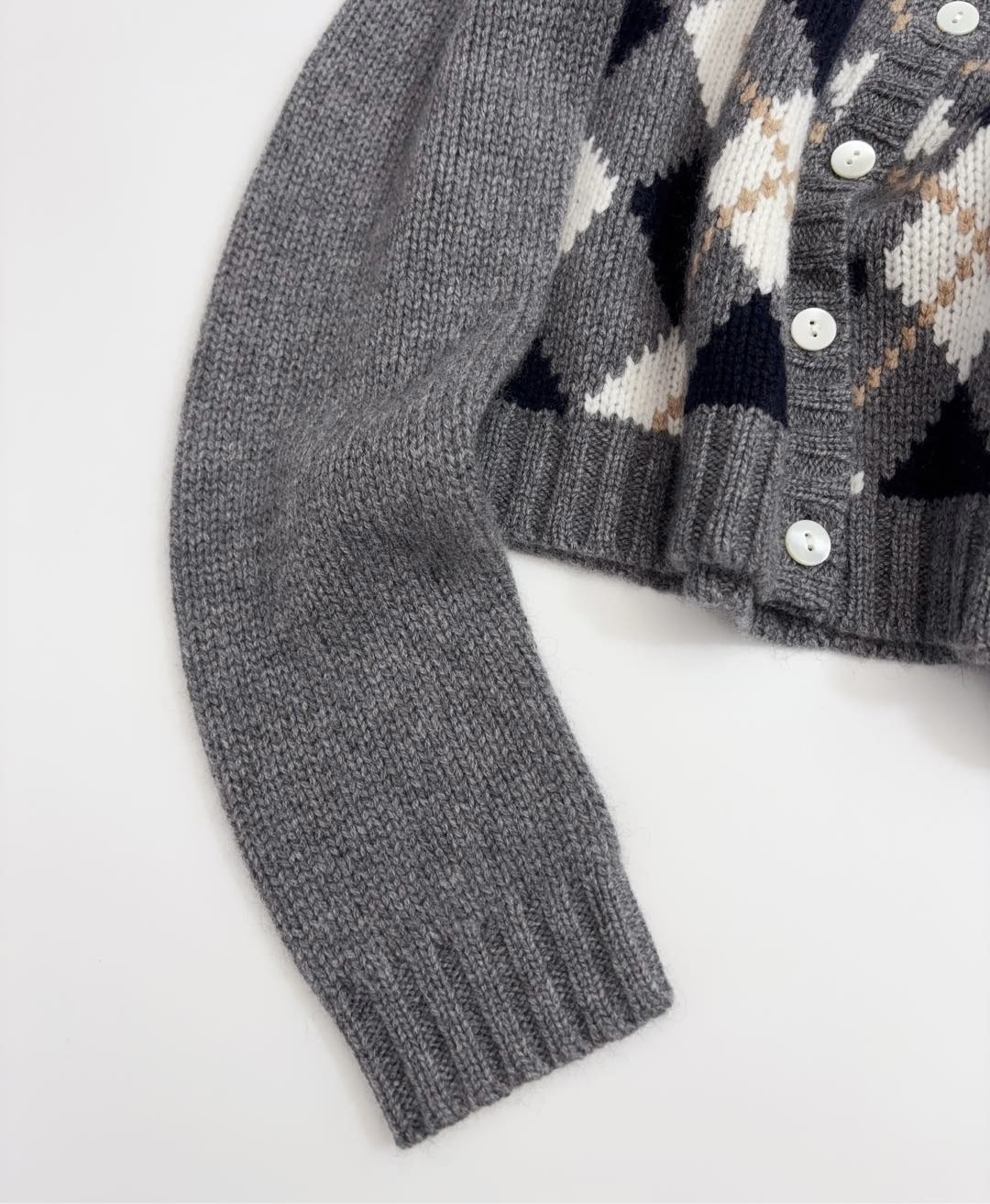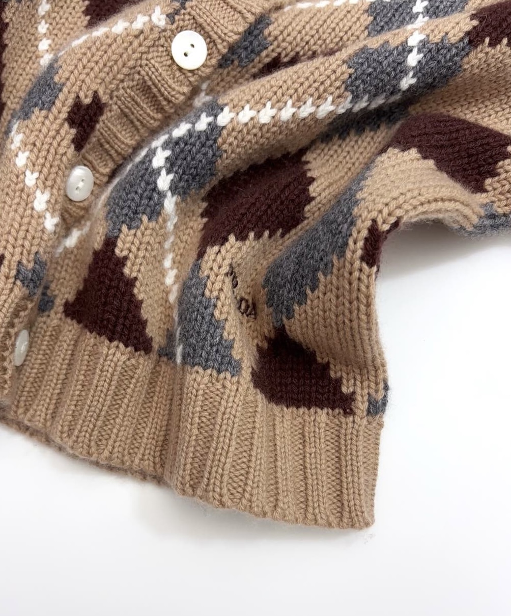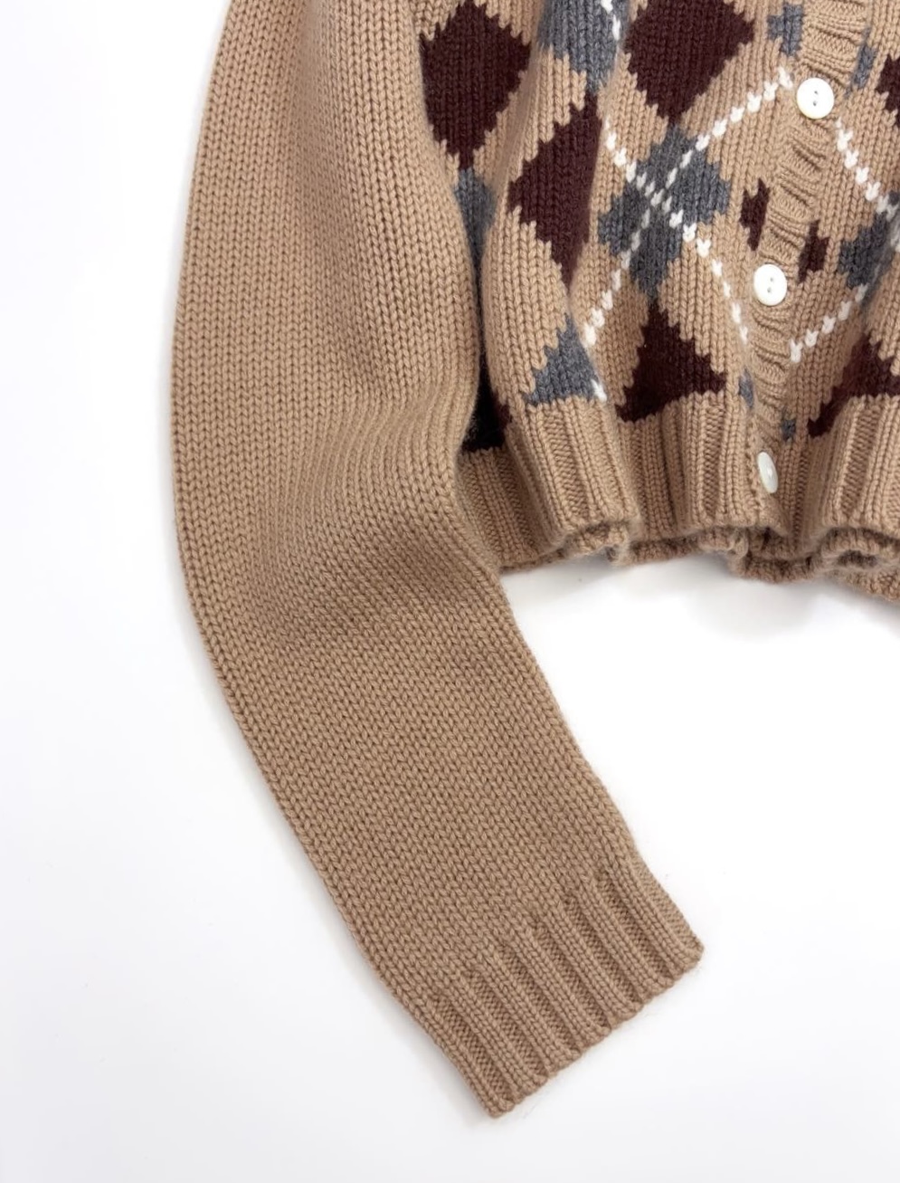 NIGO Prada Women's Spring/Fall Round Neck Single-Button Diamond-Pattern Cashmere Knit Cardigan with Letter Embroidery Long Sleeve Cropped Cardigan #nigo78839