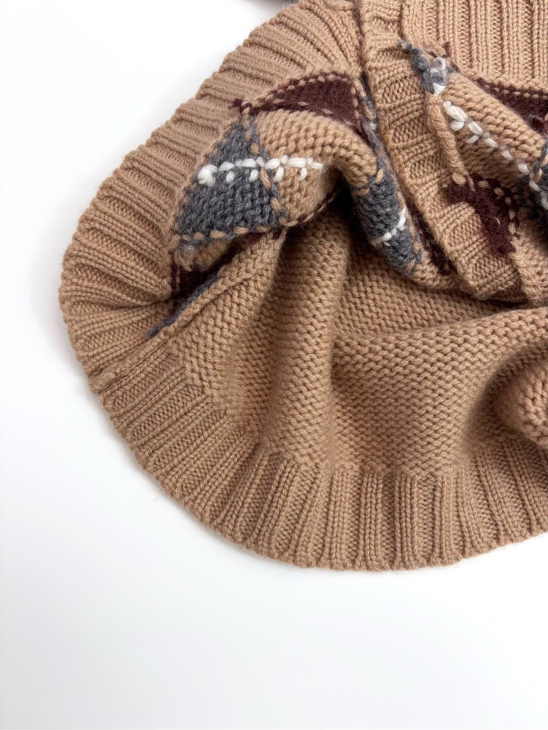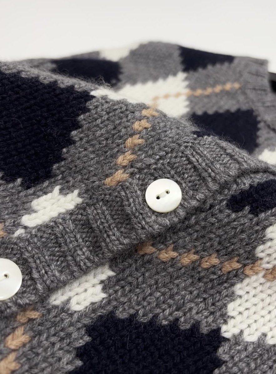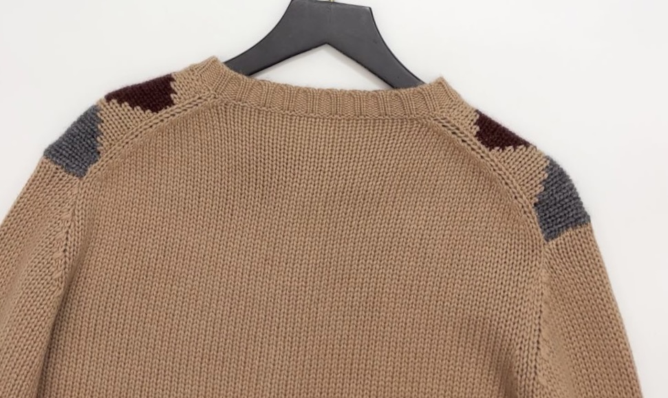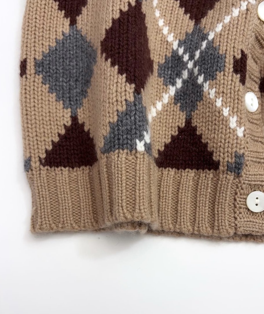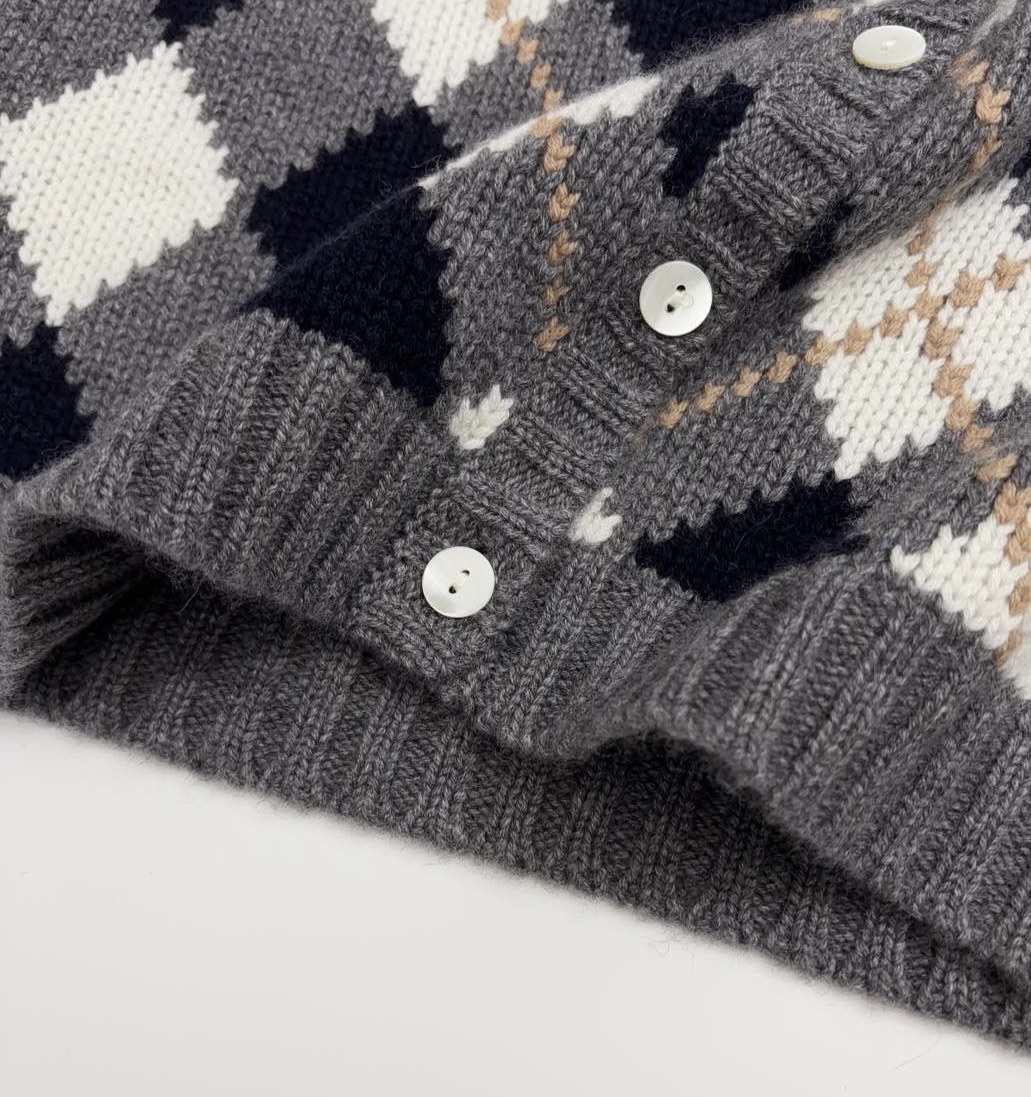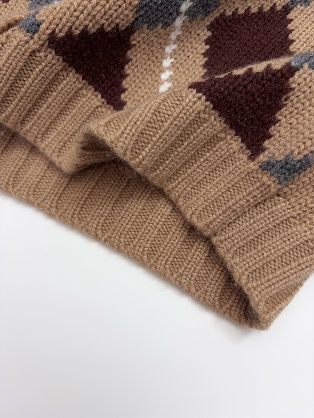 NIGO Prada Women's Spring/Fall Round Neck Single-Button Diamond-Pattern Cashmere Knit Cardigan with Letter Embroidery Long Sleeve Cropped Cardigan #nigo78839