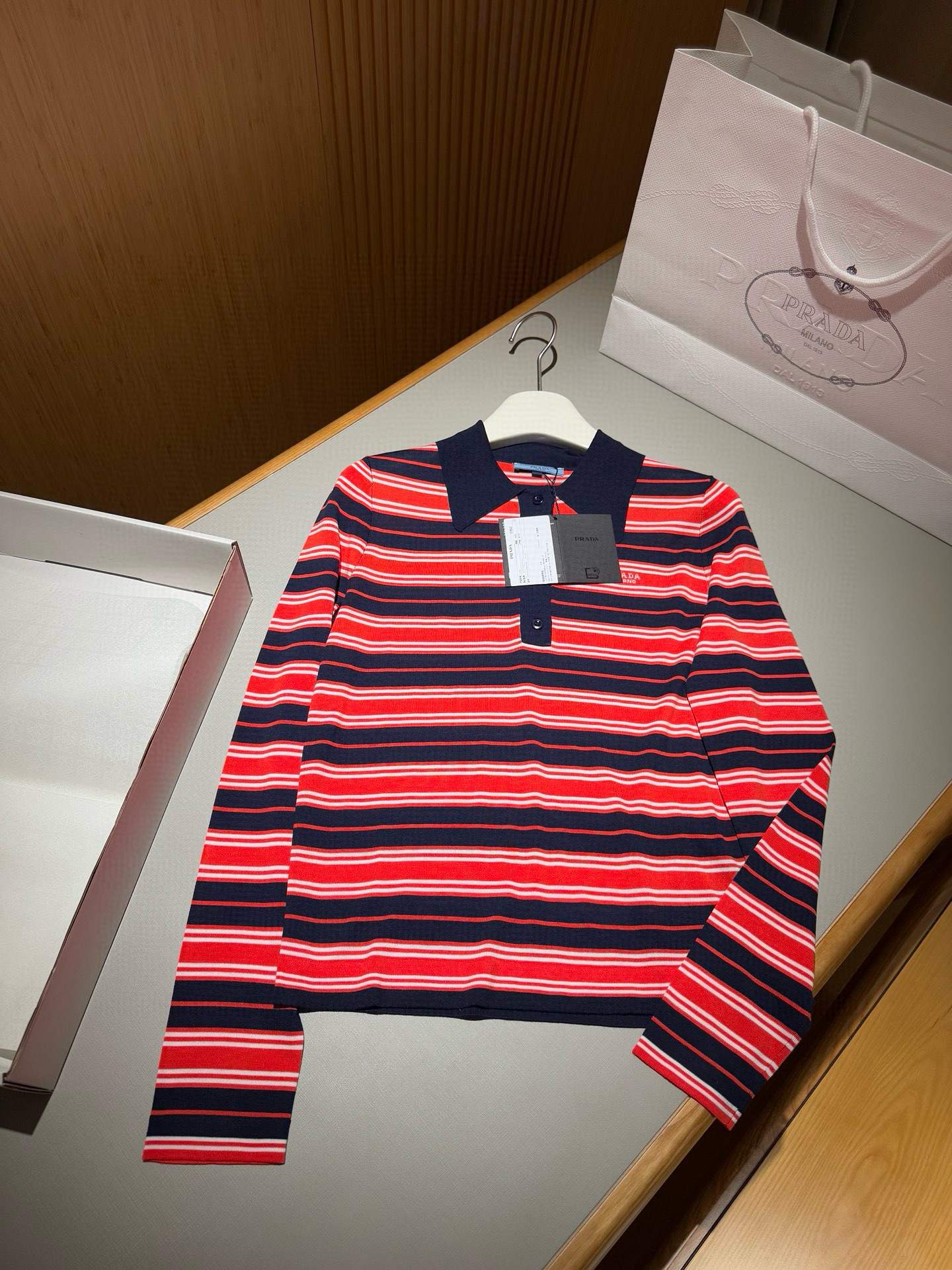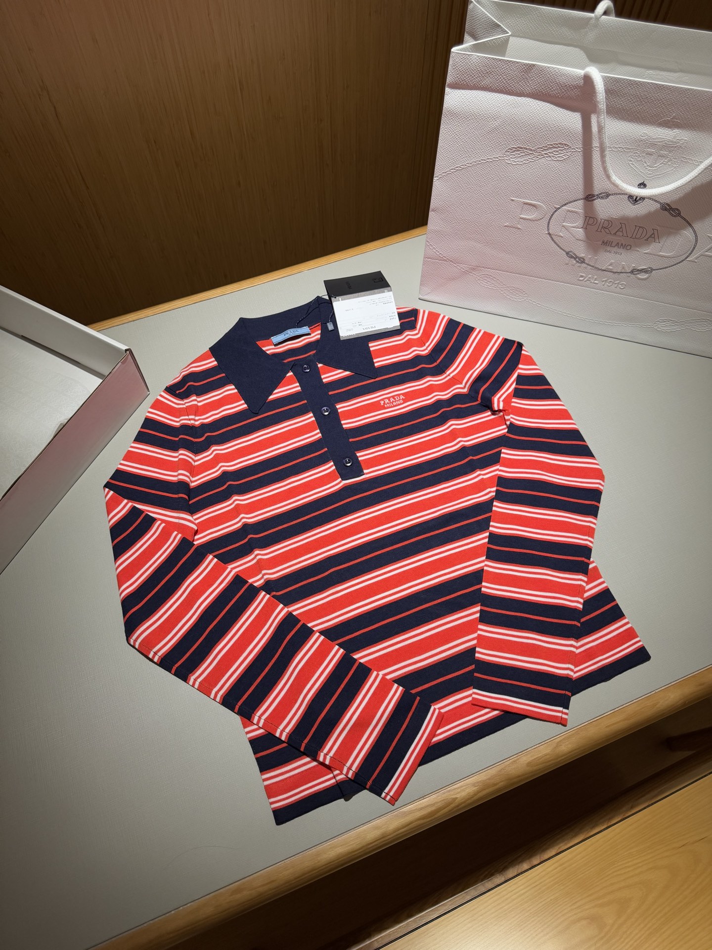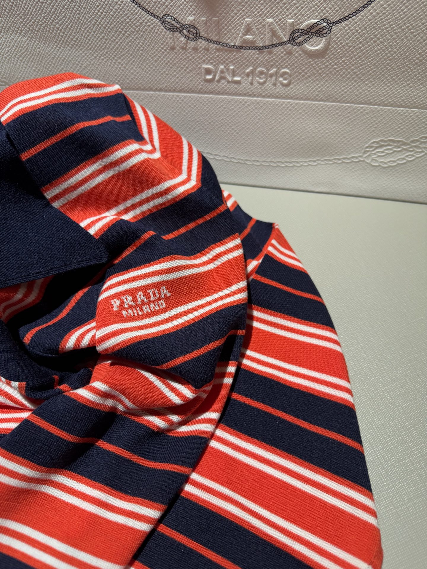 NIGO Prada Women's Spring/Summer Striped Polo-neck Letter-print Long-sleeve T-shirt #nigo75685