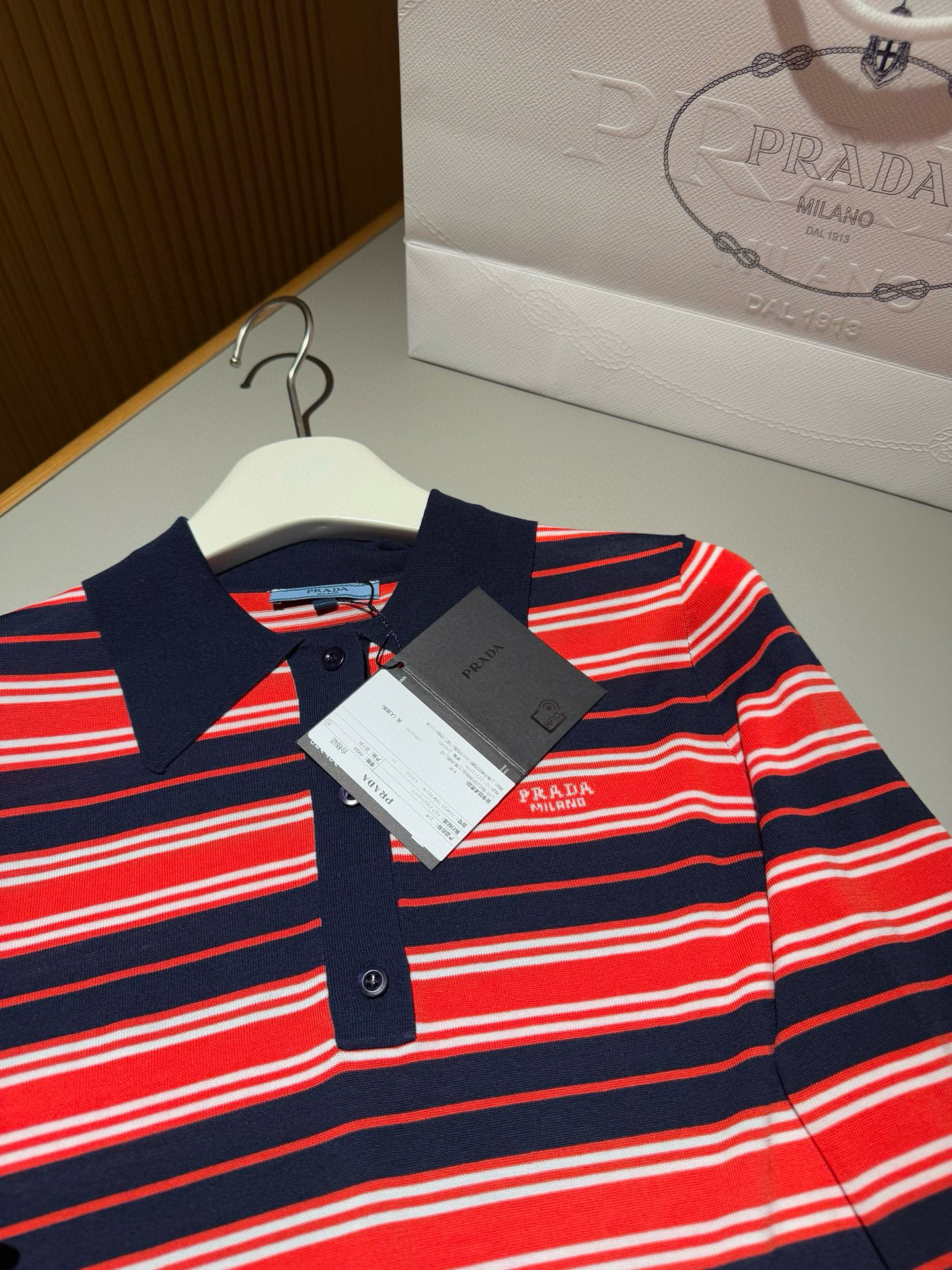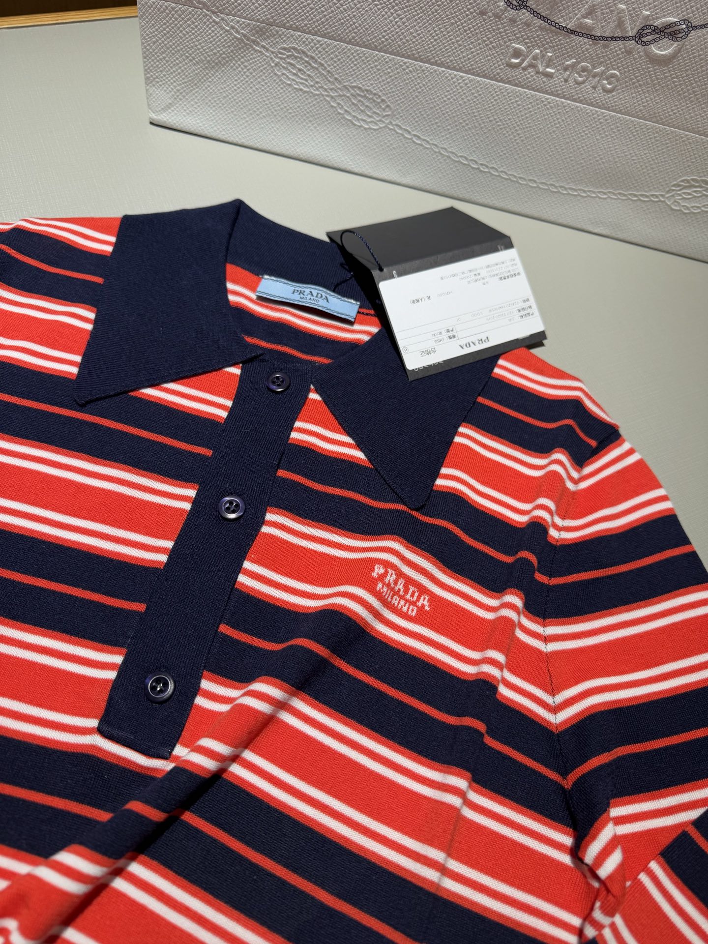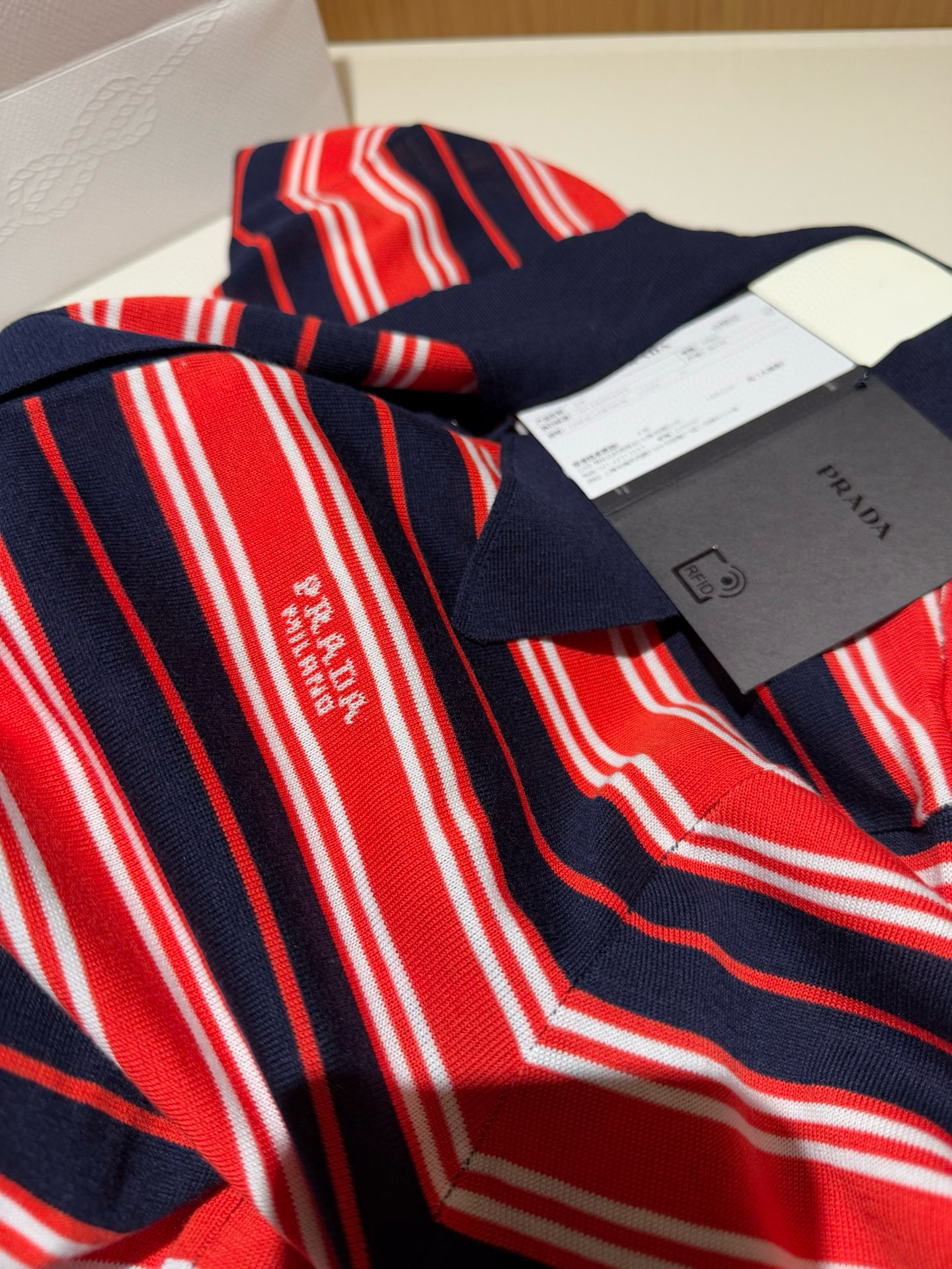 NIGO Prada Women's Spring/Summer Striped Polo-neck Letter-print Long-sleeve T-shirt #nigo75685