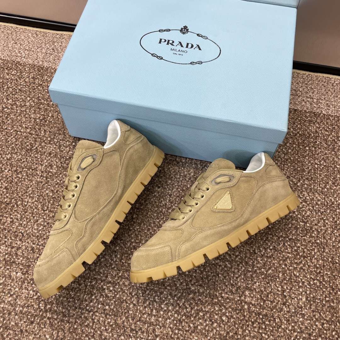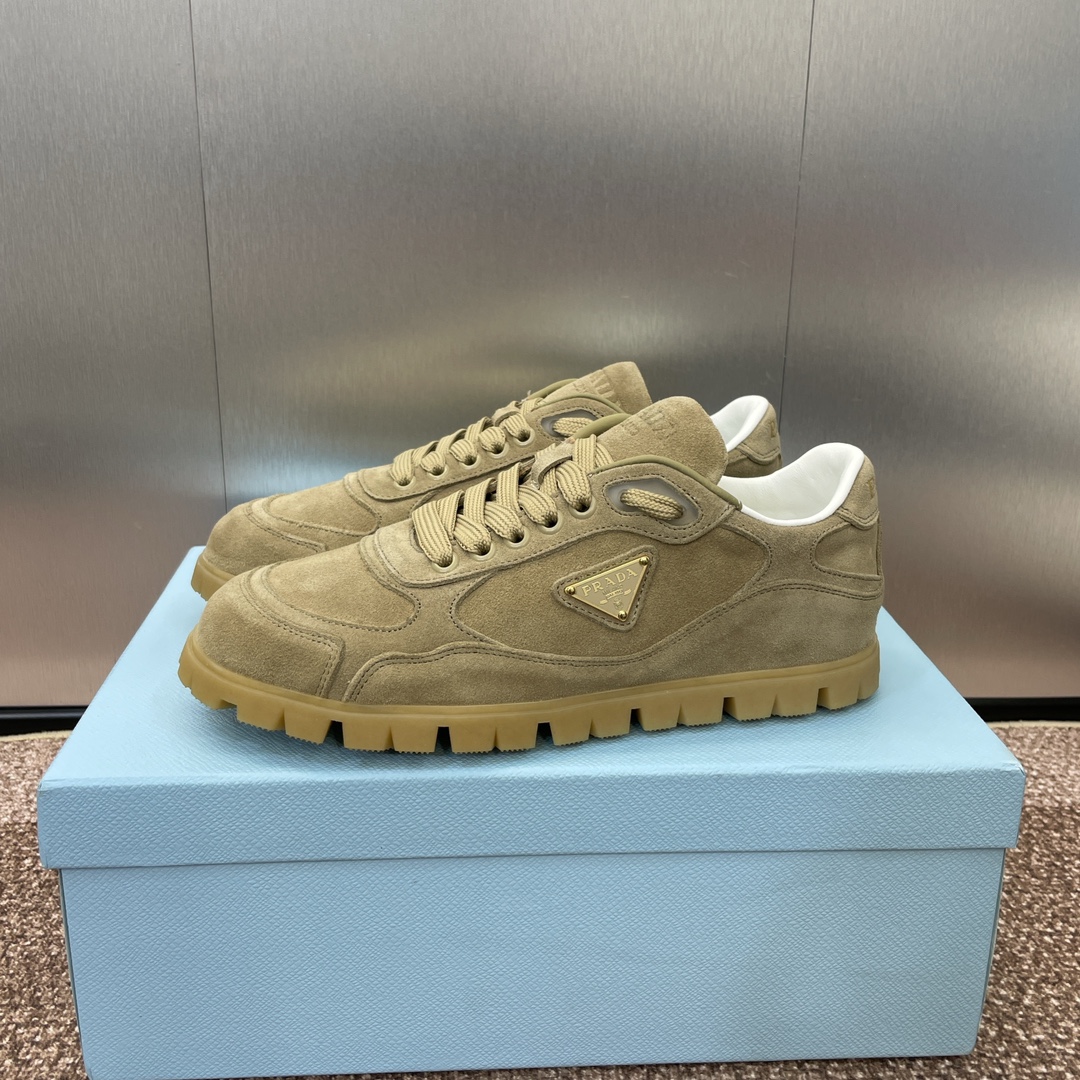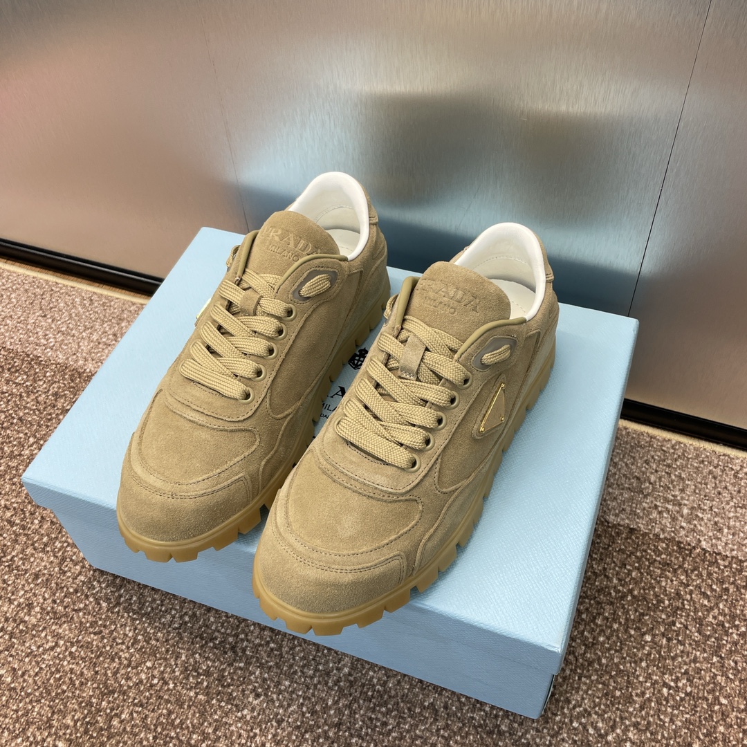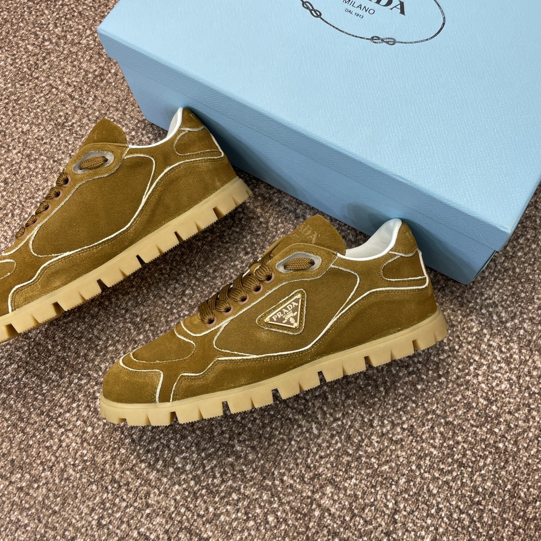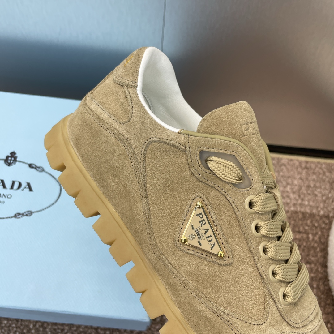 NIGO Prada Women's Spring Summer Suede Leather Sneakers Triangle Metal Logo Fashion Temperament Casual Round Toe Lace Up Shoes #nigo71863