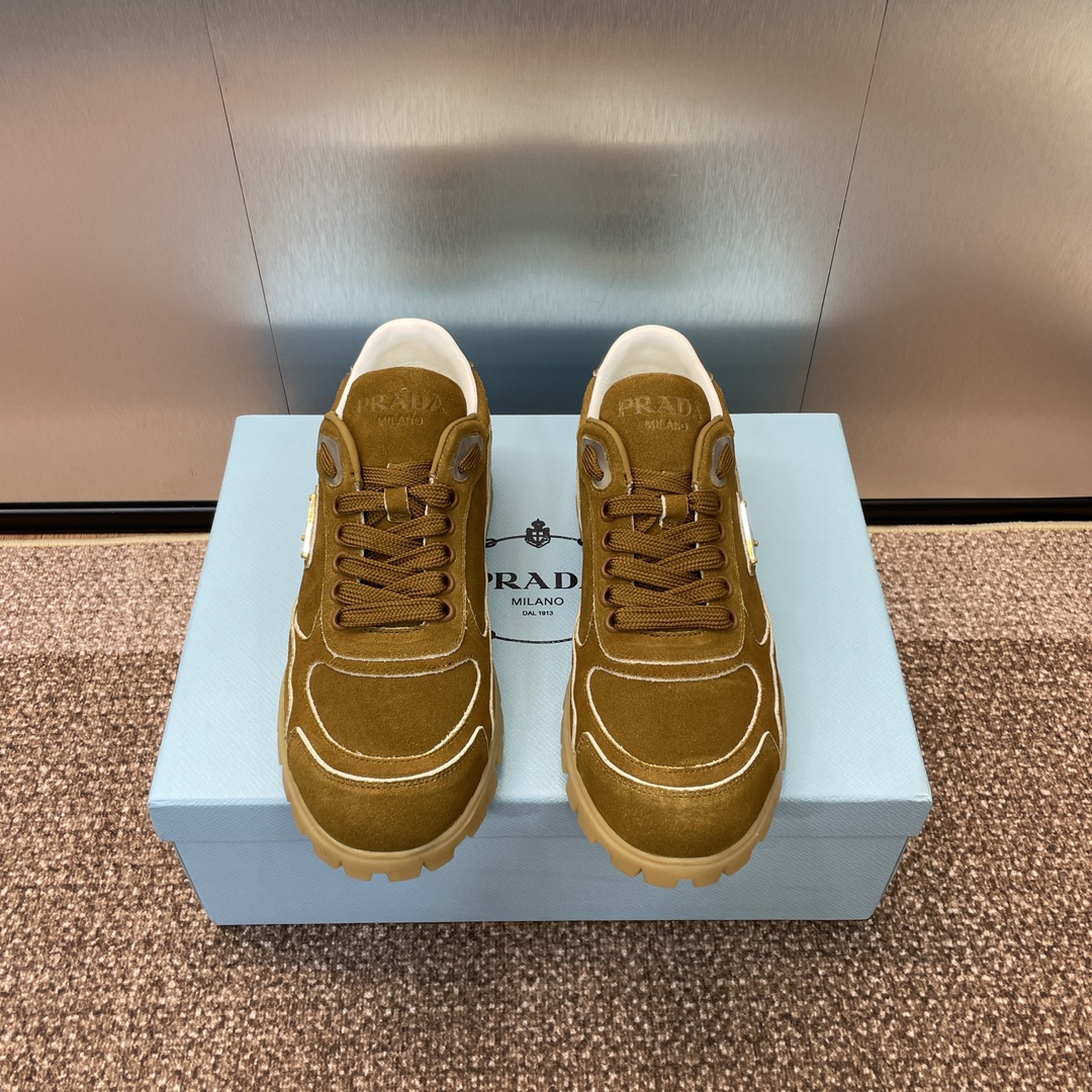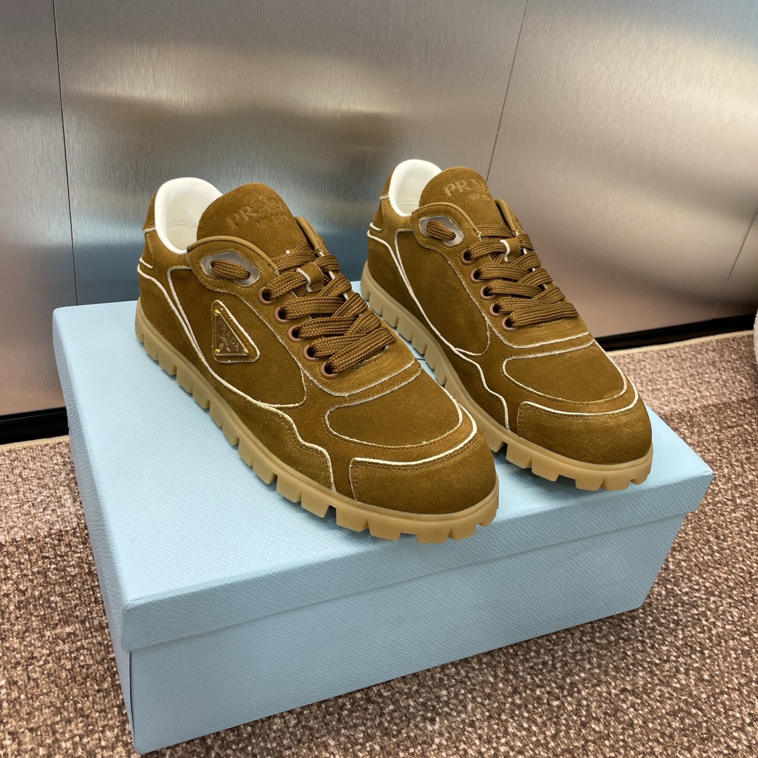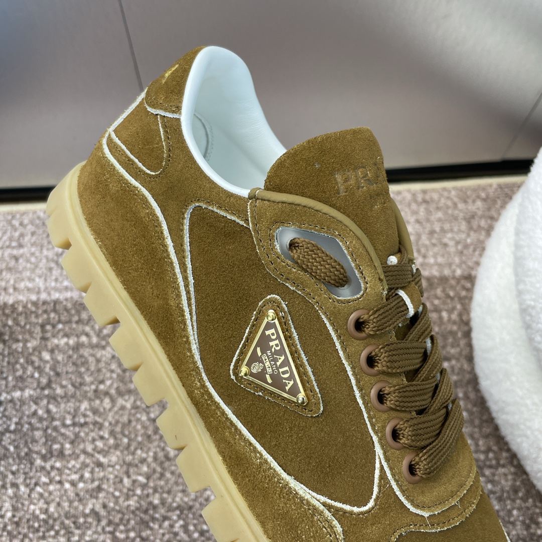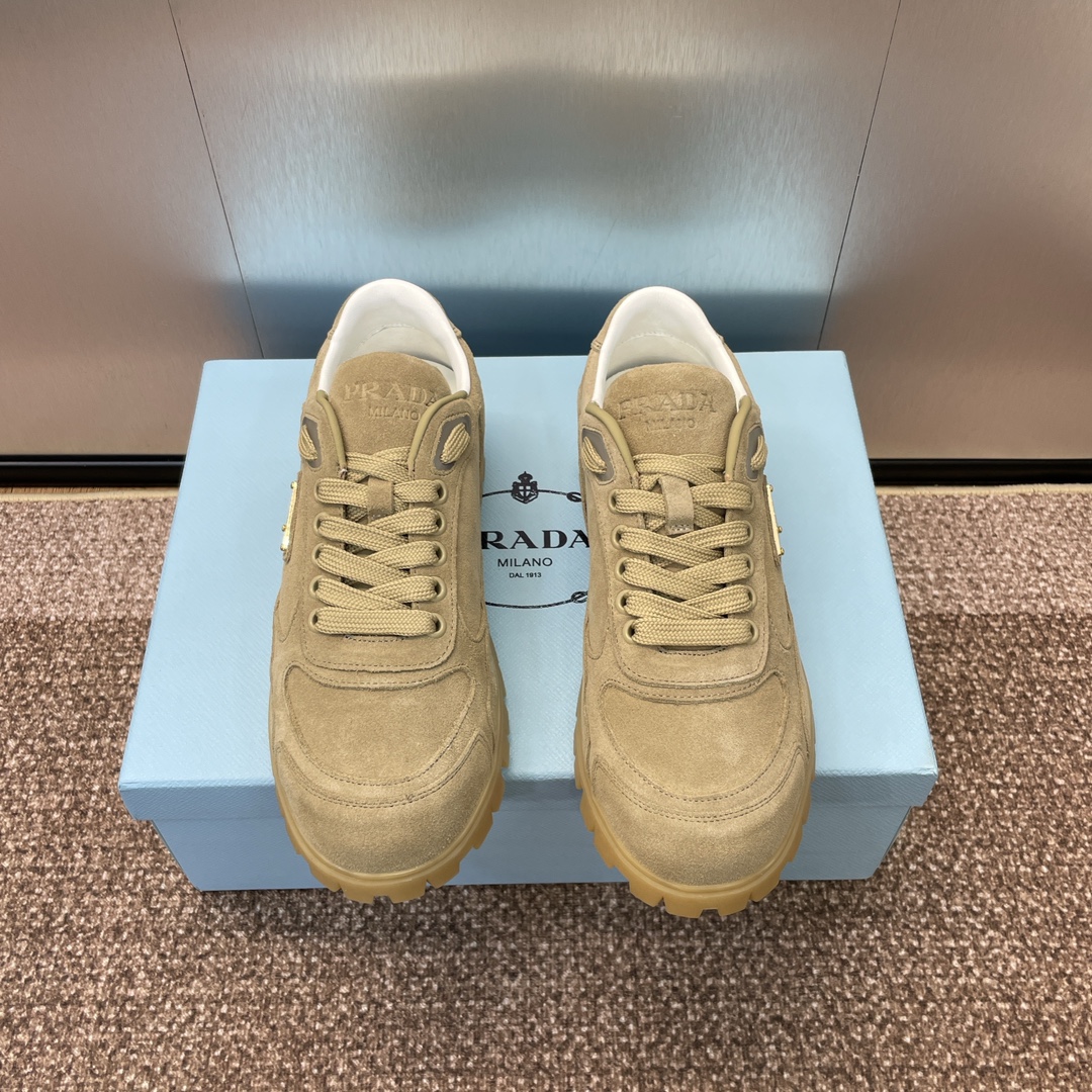 NIGO Prada Women's Spring Summer Suede Leather Sneakers Triangle Metal Logo Fashion Temperament Casual Round Toe Lace Up Shoes #nigo71863
