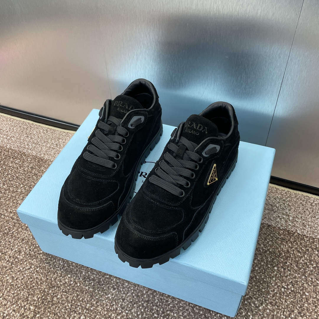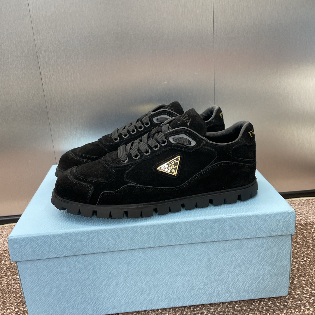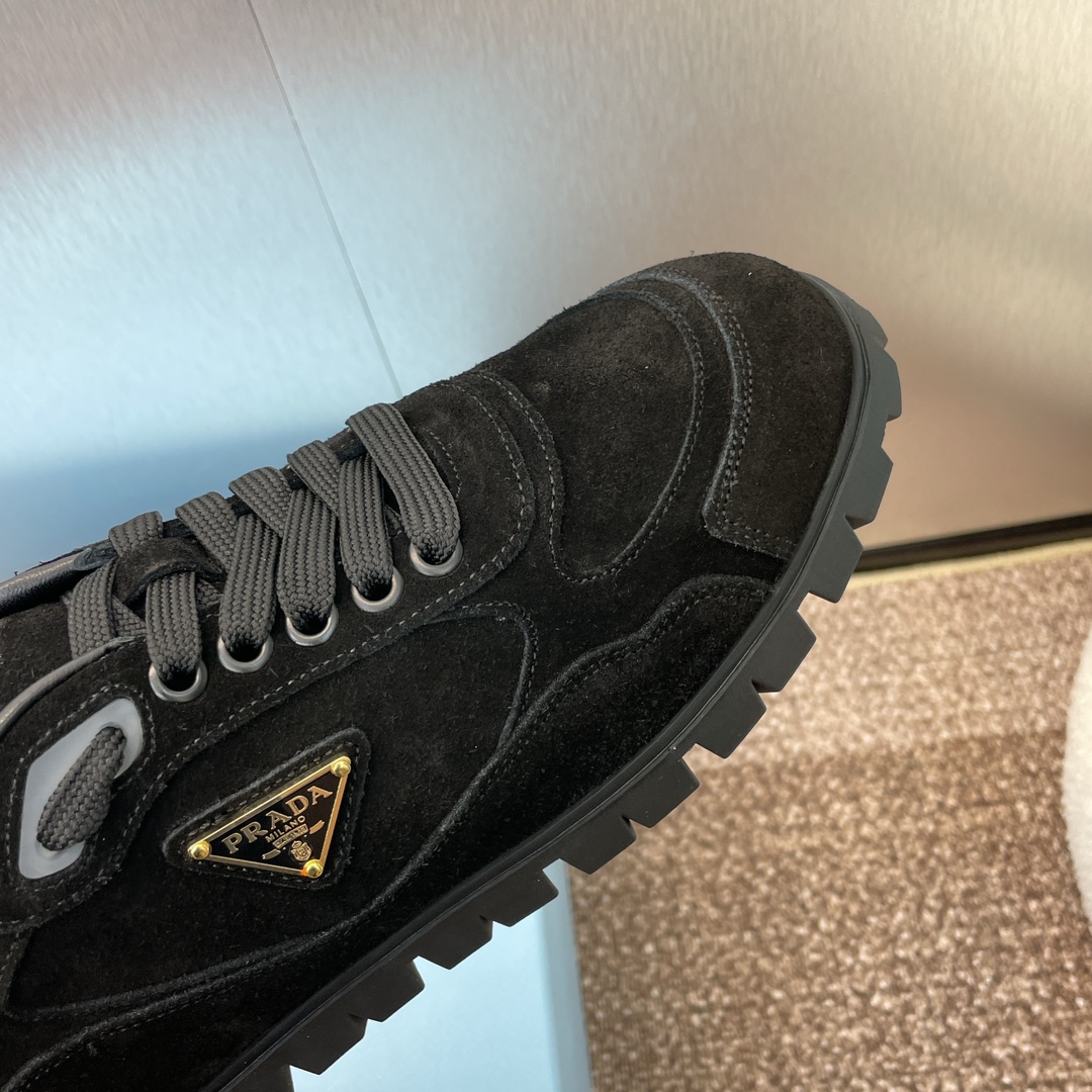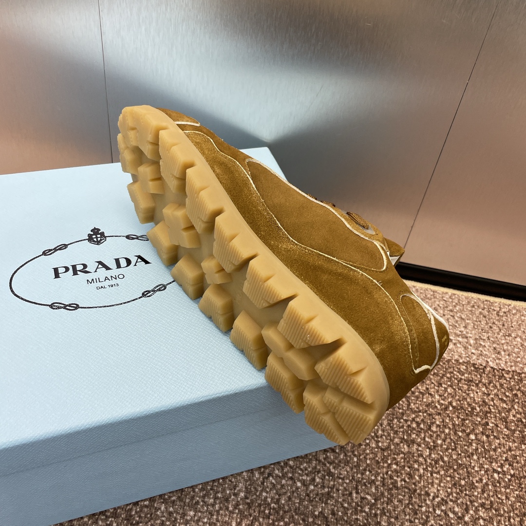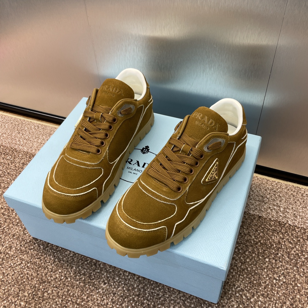 NIGO Prada Women's Spring Summer Suede Leather Sneakers Triangle Metal Logo Fashion Temperament Casual Round Toe Lace Up Shoes #nigo71863