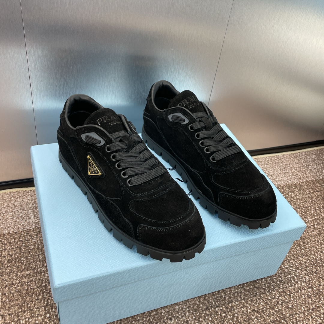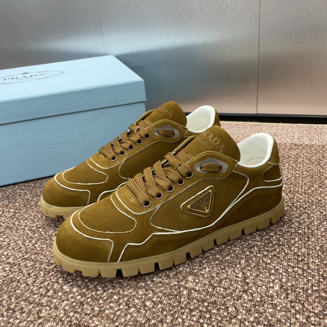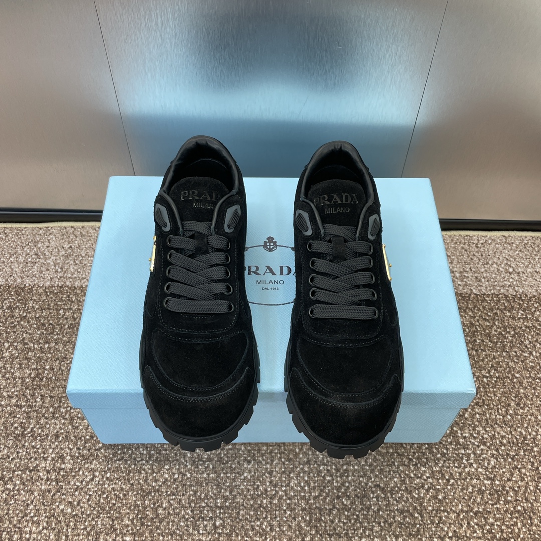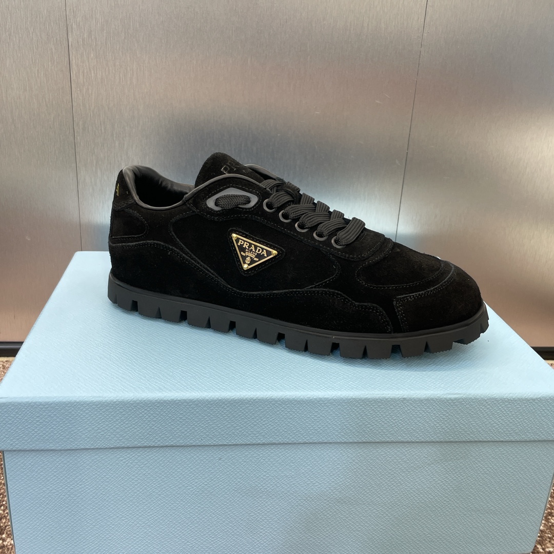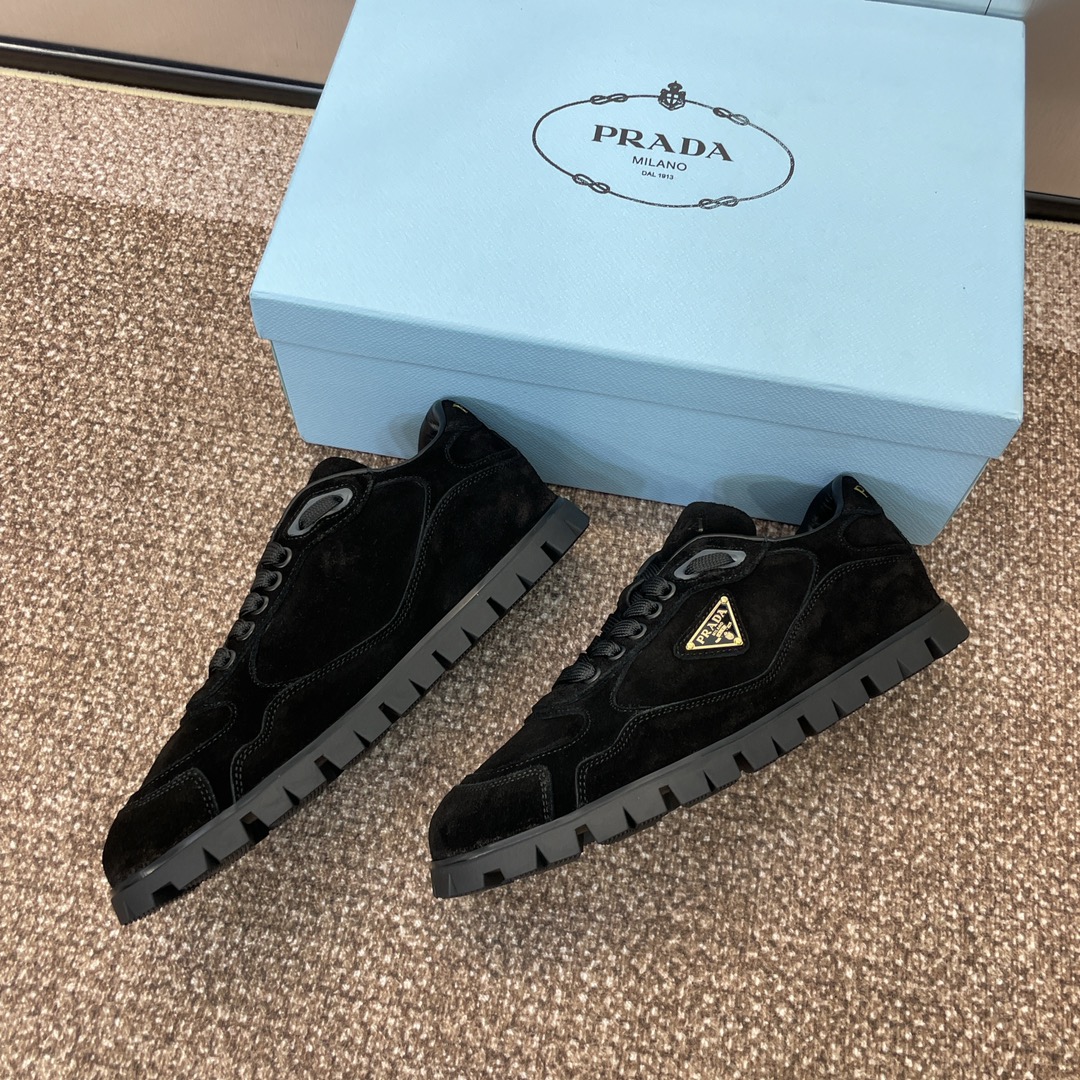 NIGO Prada Women's Spring Summer Suede Leather Sneakers Triangle Metal Logo Fashion Temperament Casual Round Toe Lace Up Shoes #nigo71863