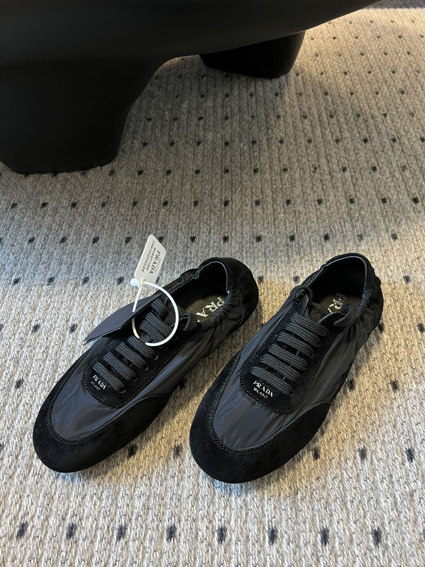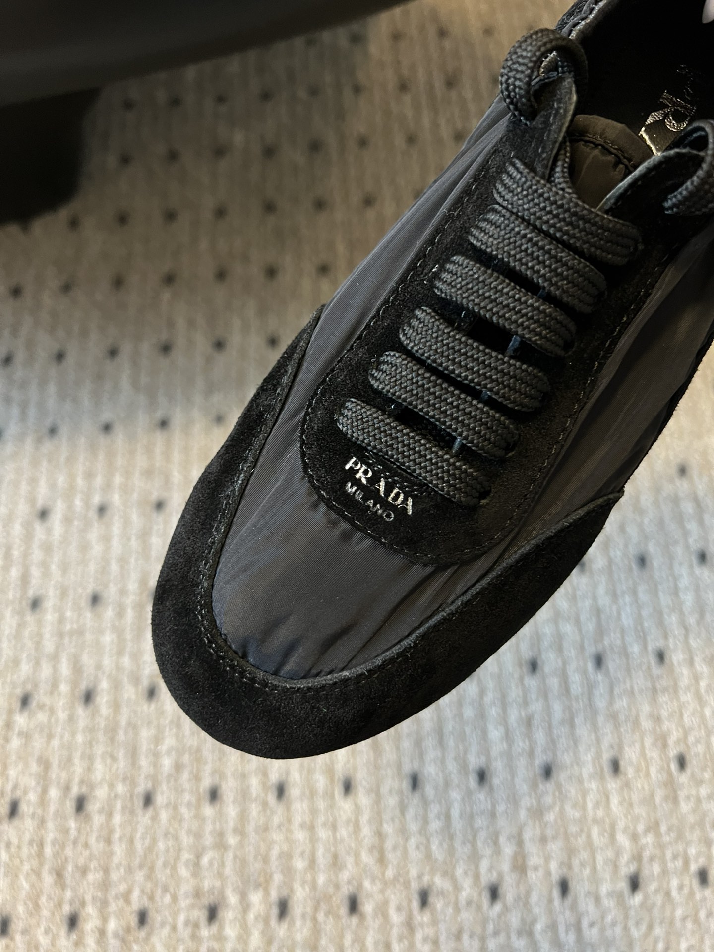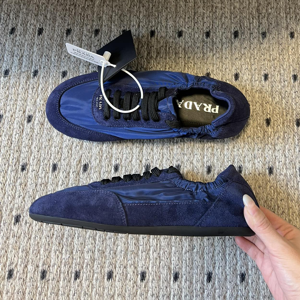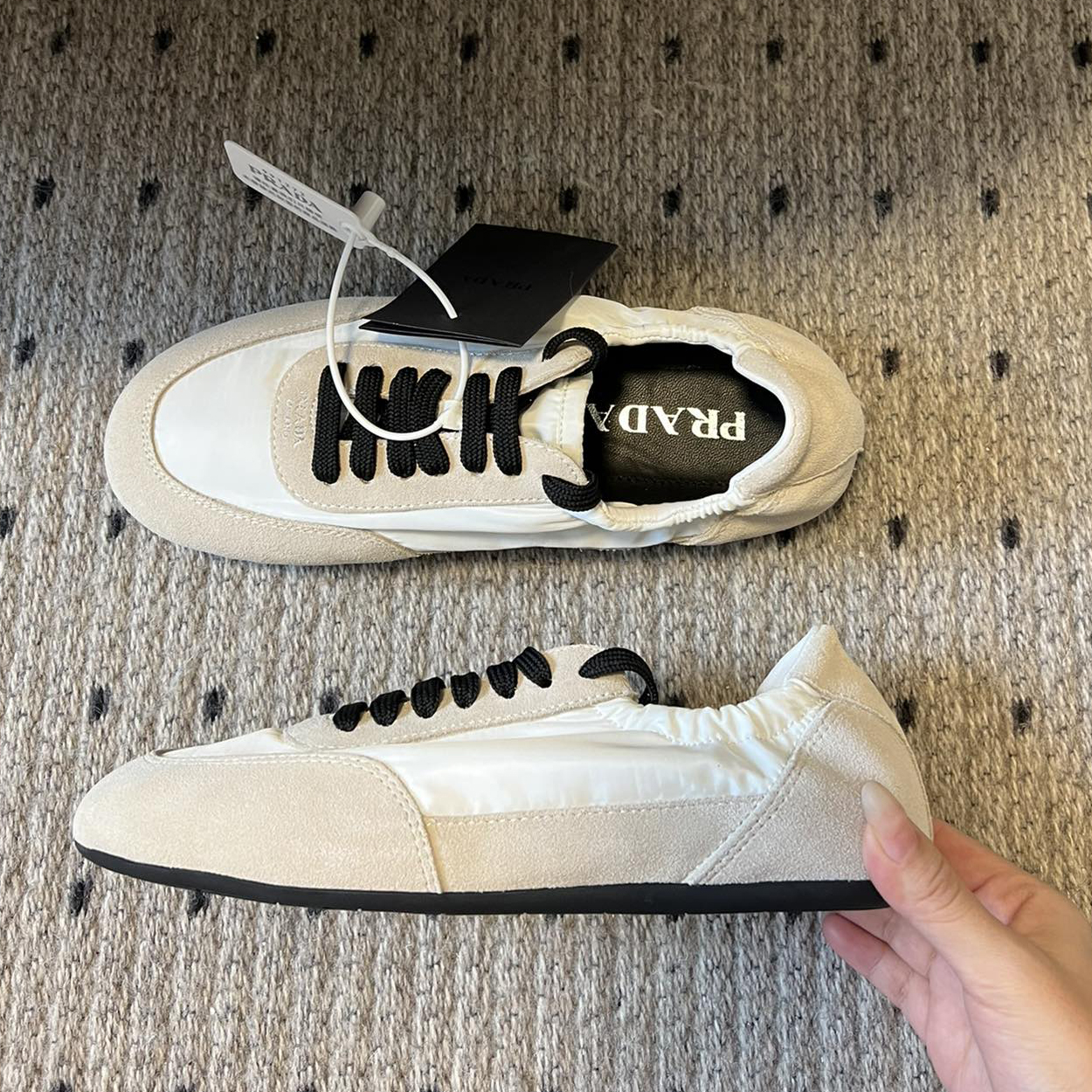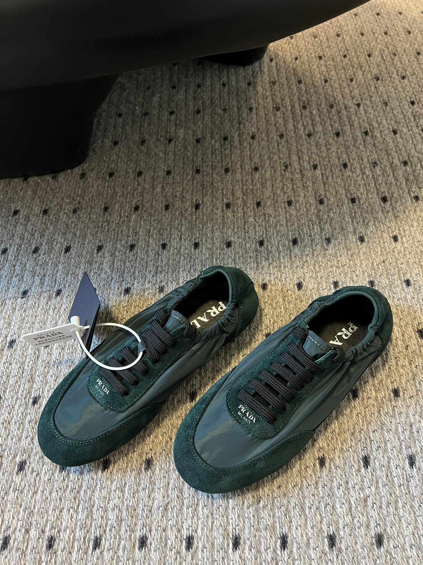 NIGO Prada Women's Suede Fabric Sheepskin Lining Low Top Lace Up Round Toe German Training Shoes #nigo74674