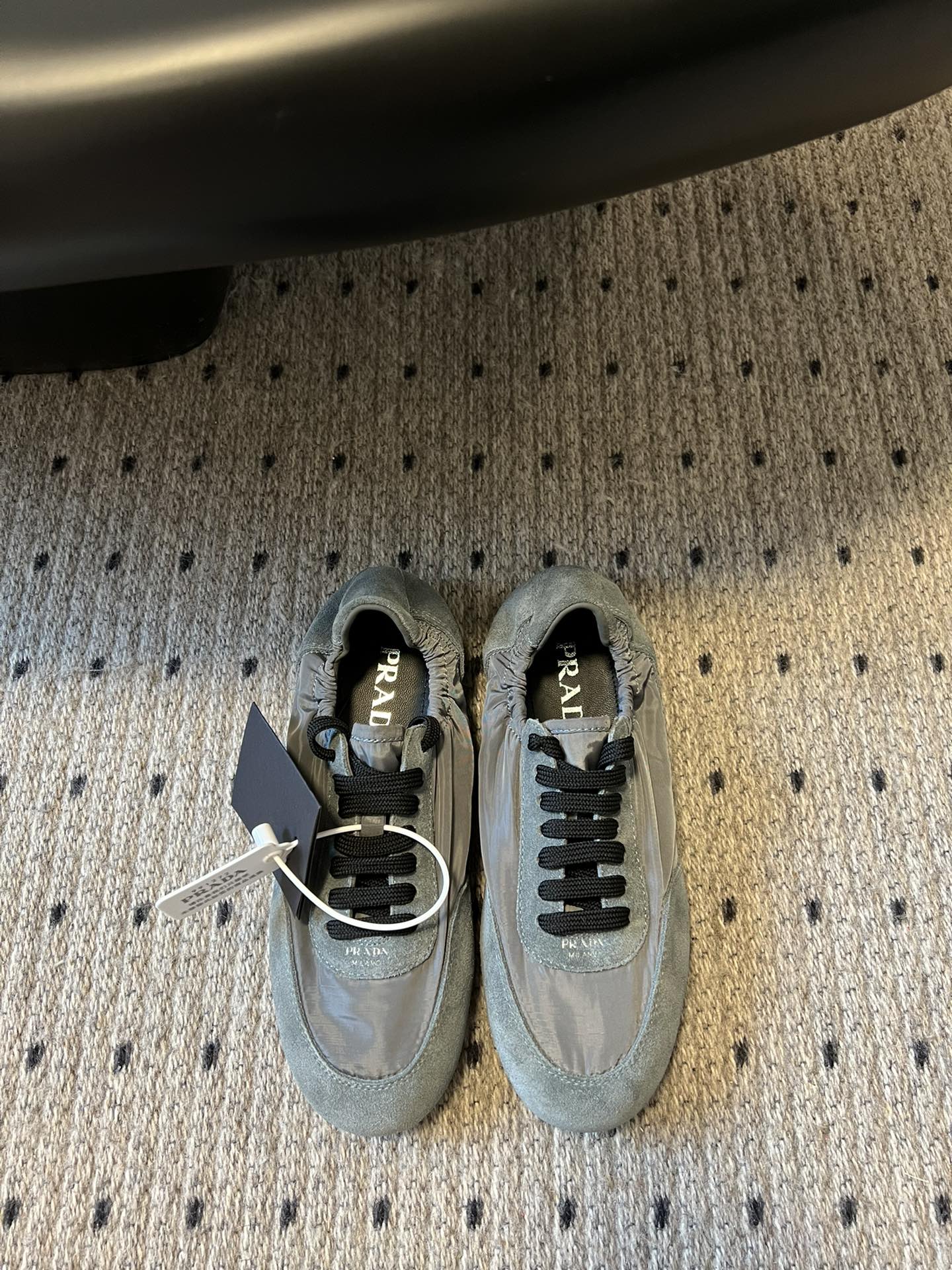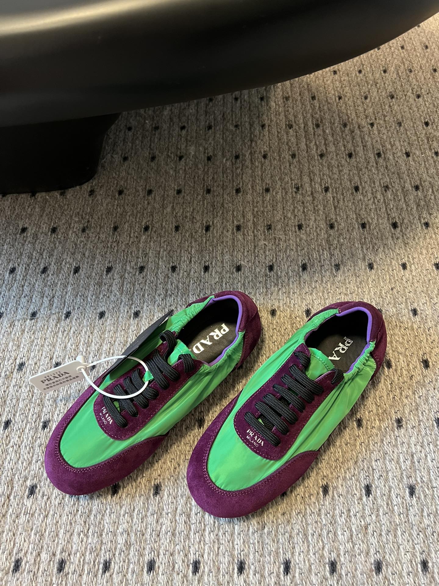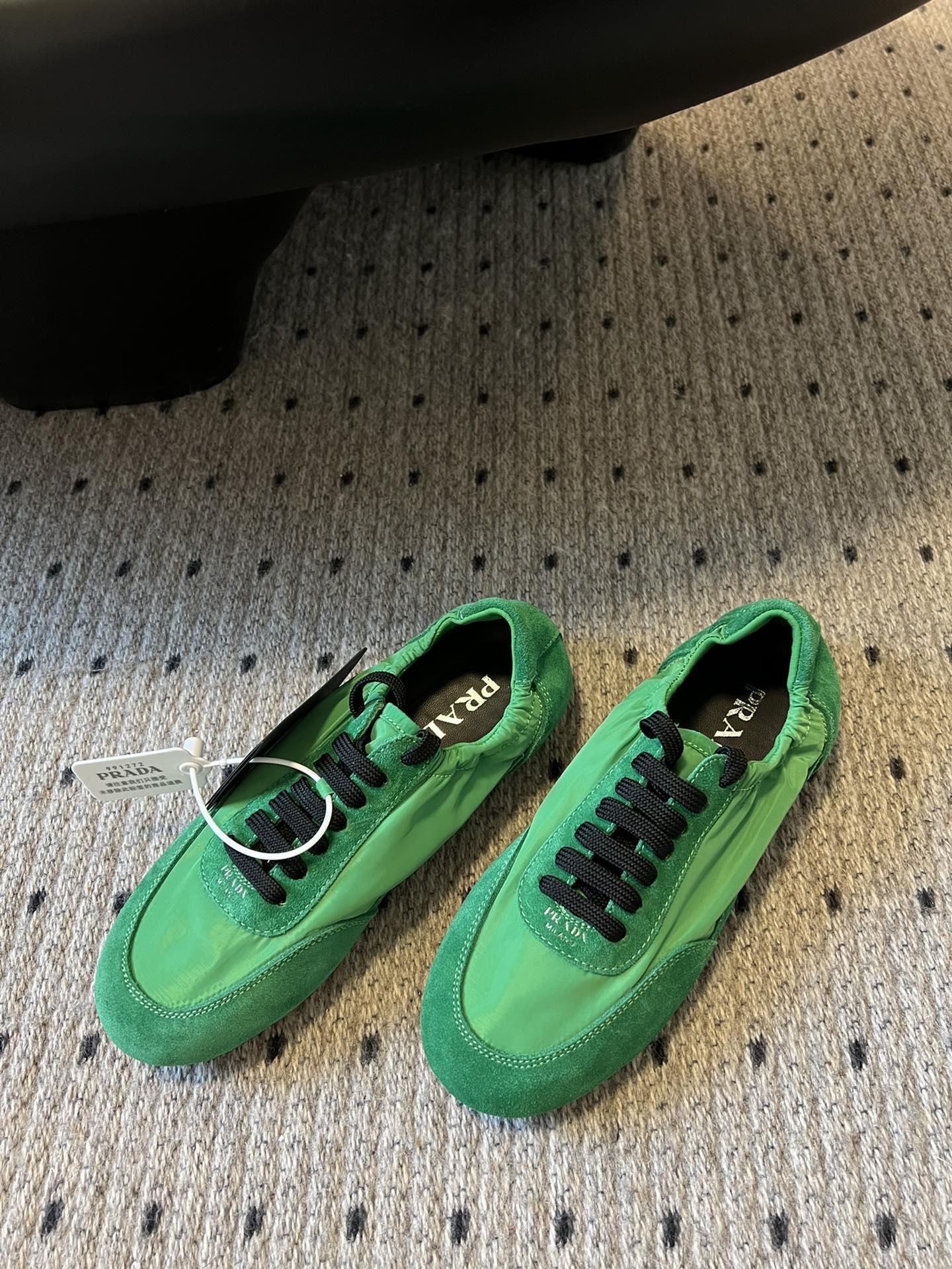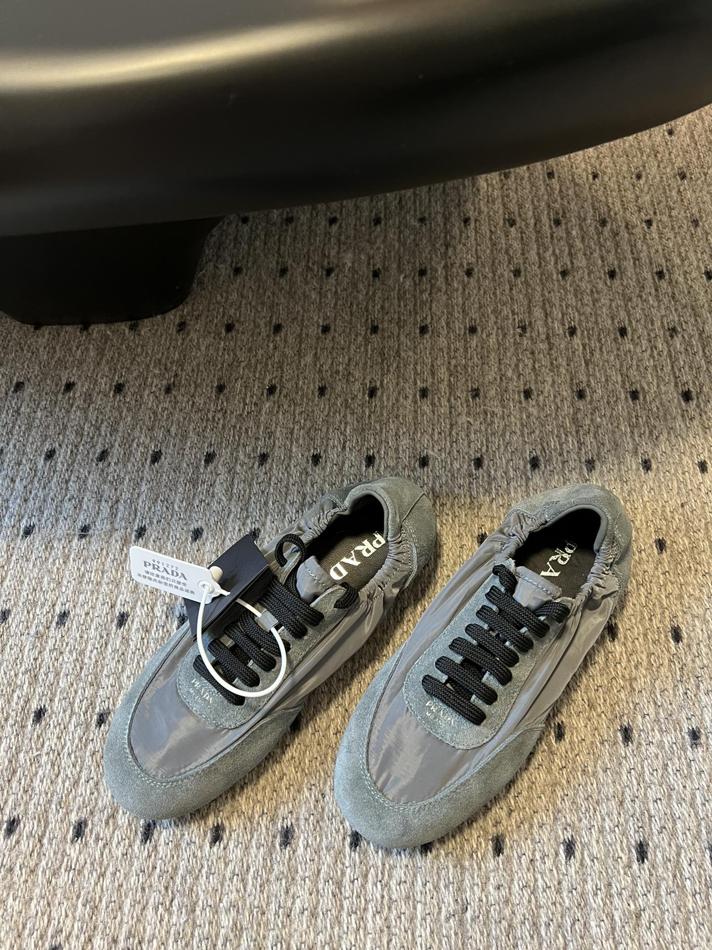 NIGO Prada Women's Suede Fabric Sheepskin Lining Low Top Lace Up Round Toe German Training Shoes #nigo74674