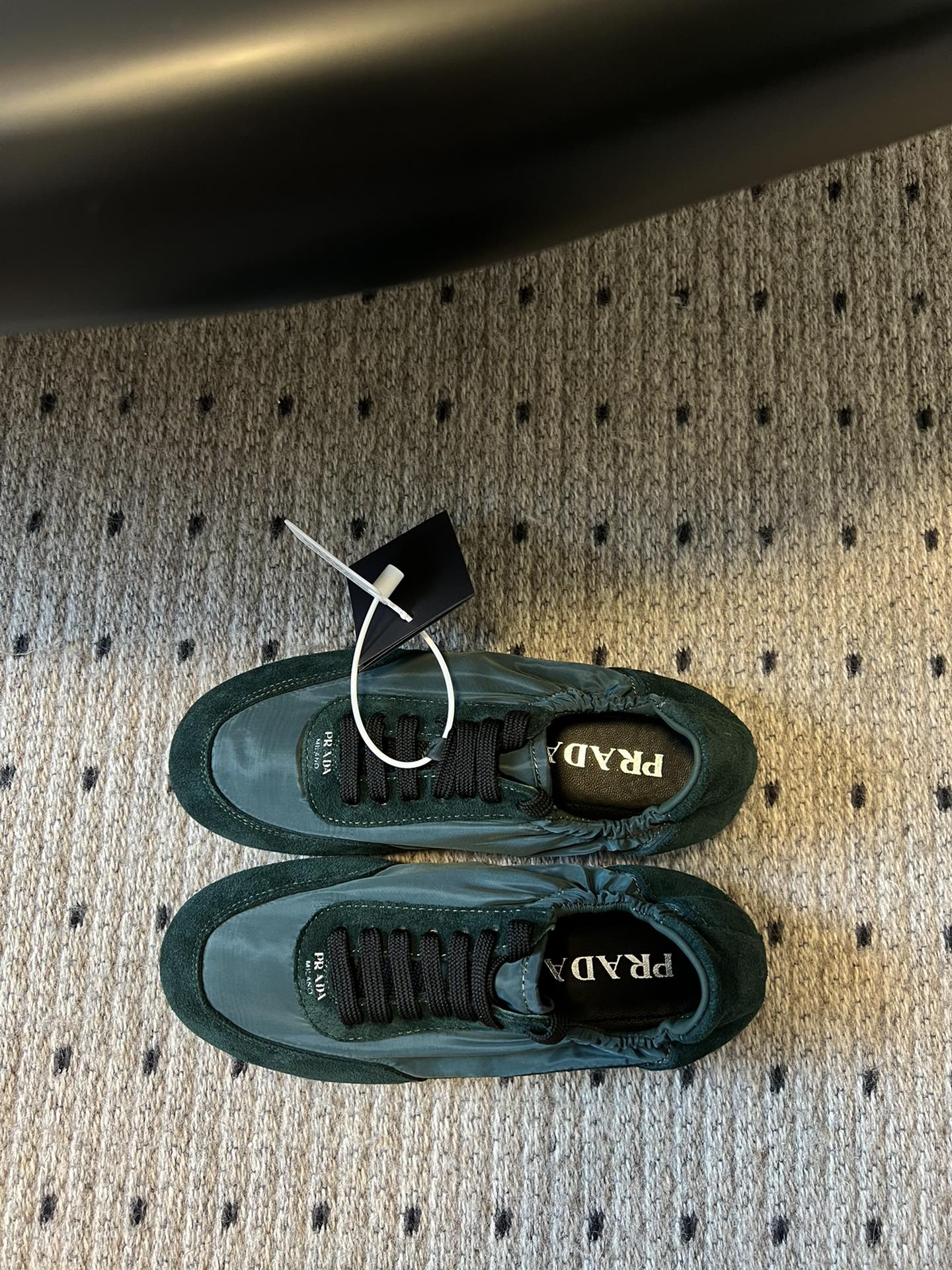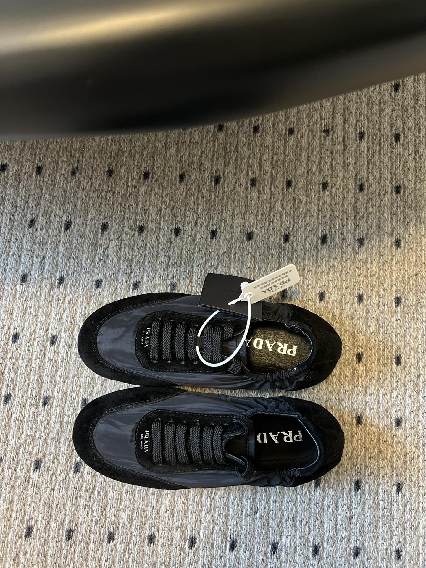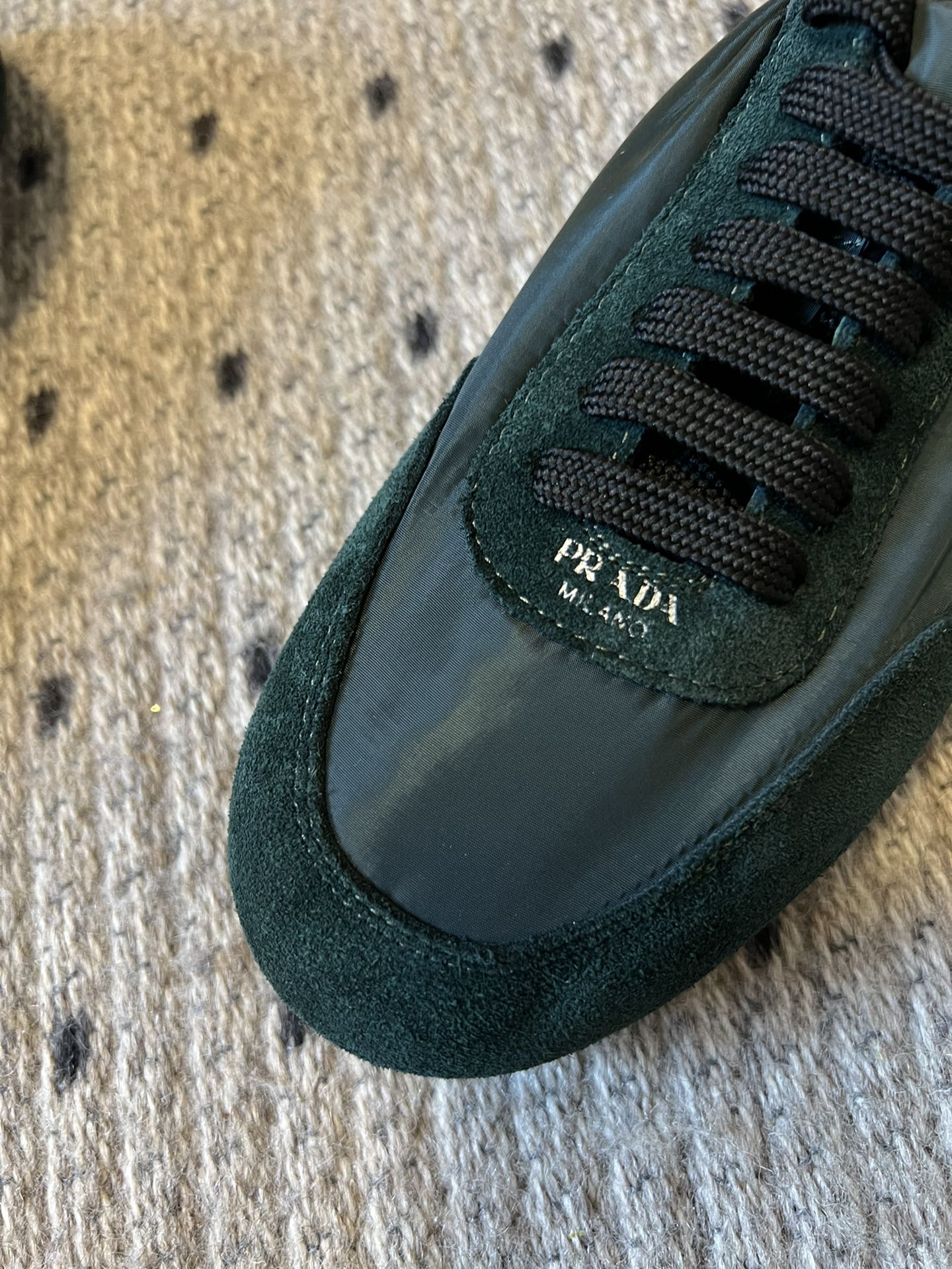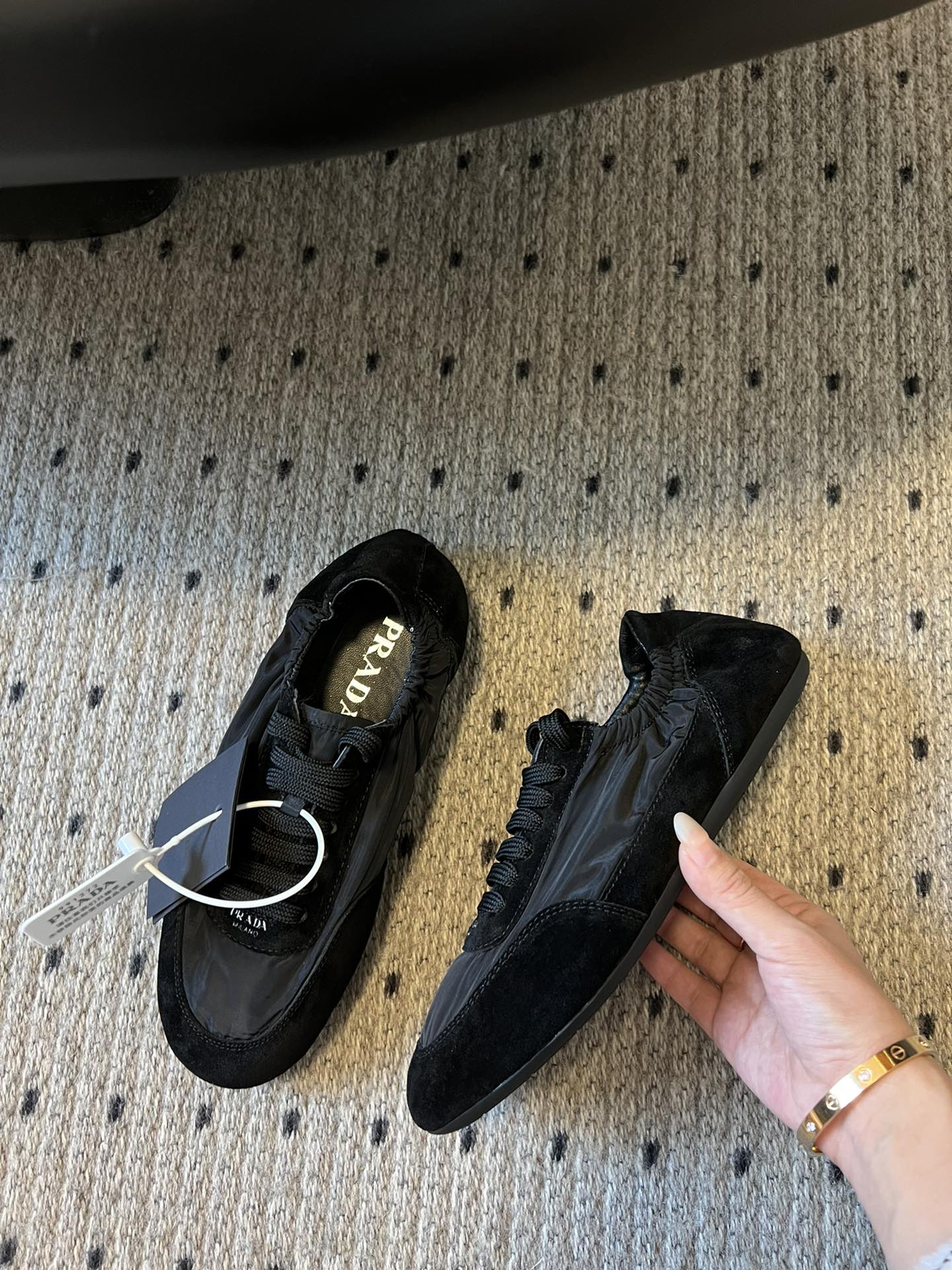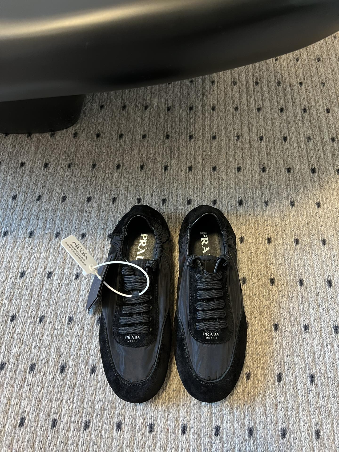 NIGO Prada Women's Suede Fabric Sheepskin Lining Low Top Lace Up Round Toe German Training Shoes #nigo74674