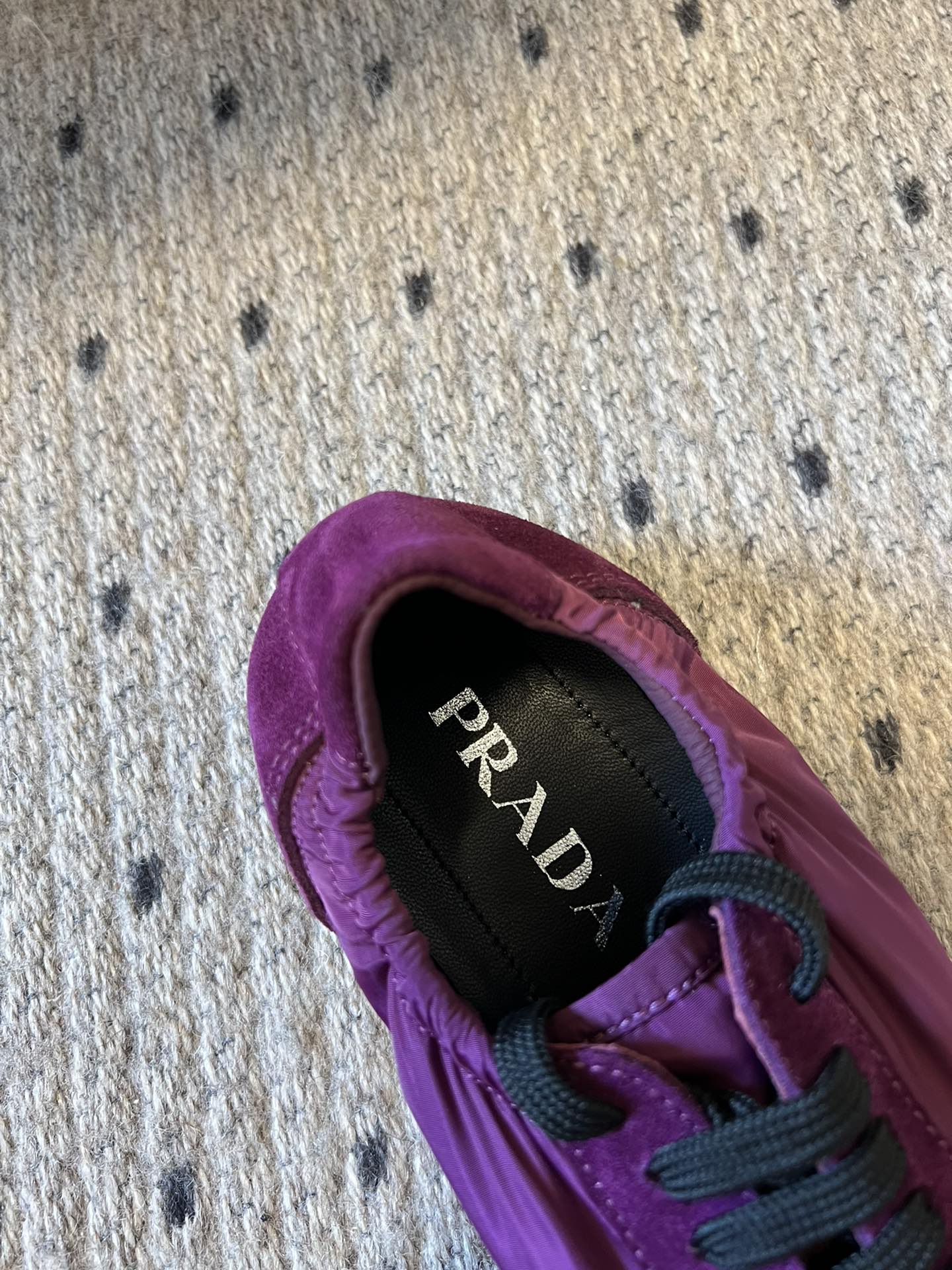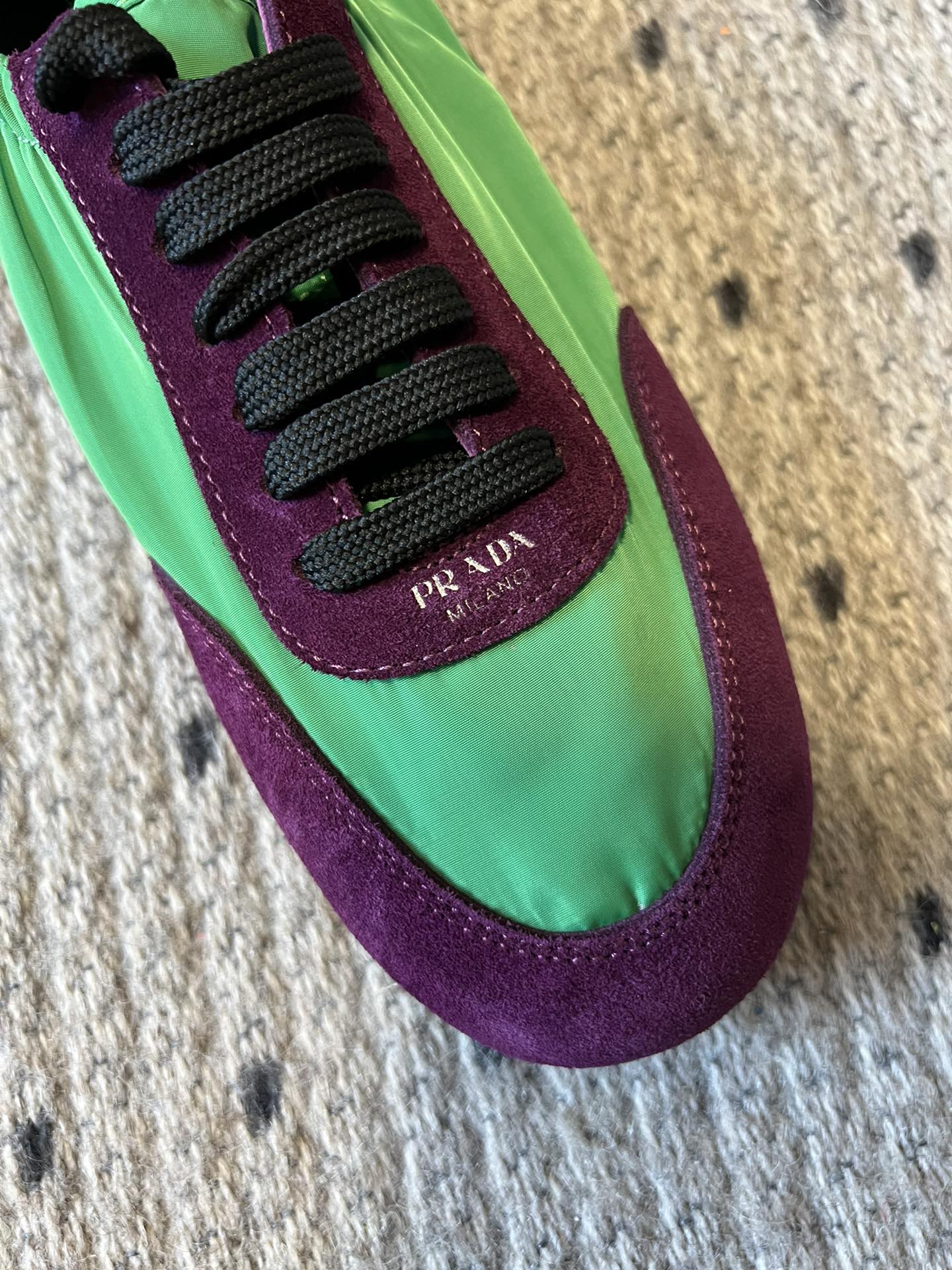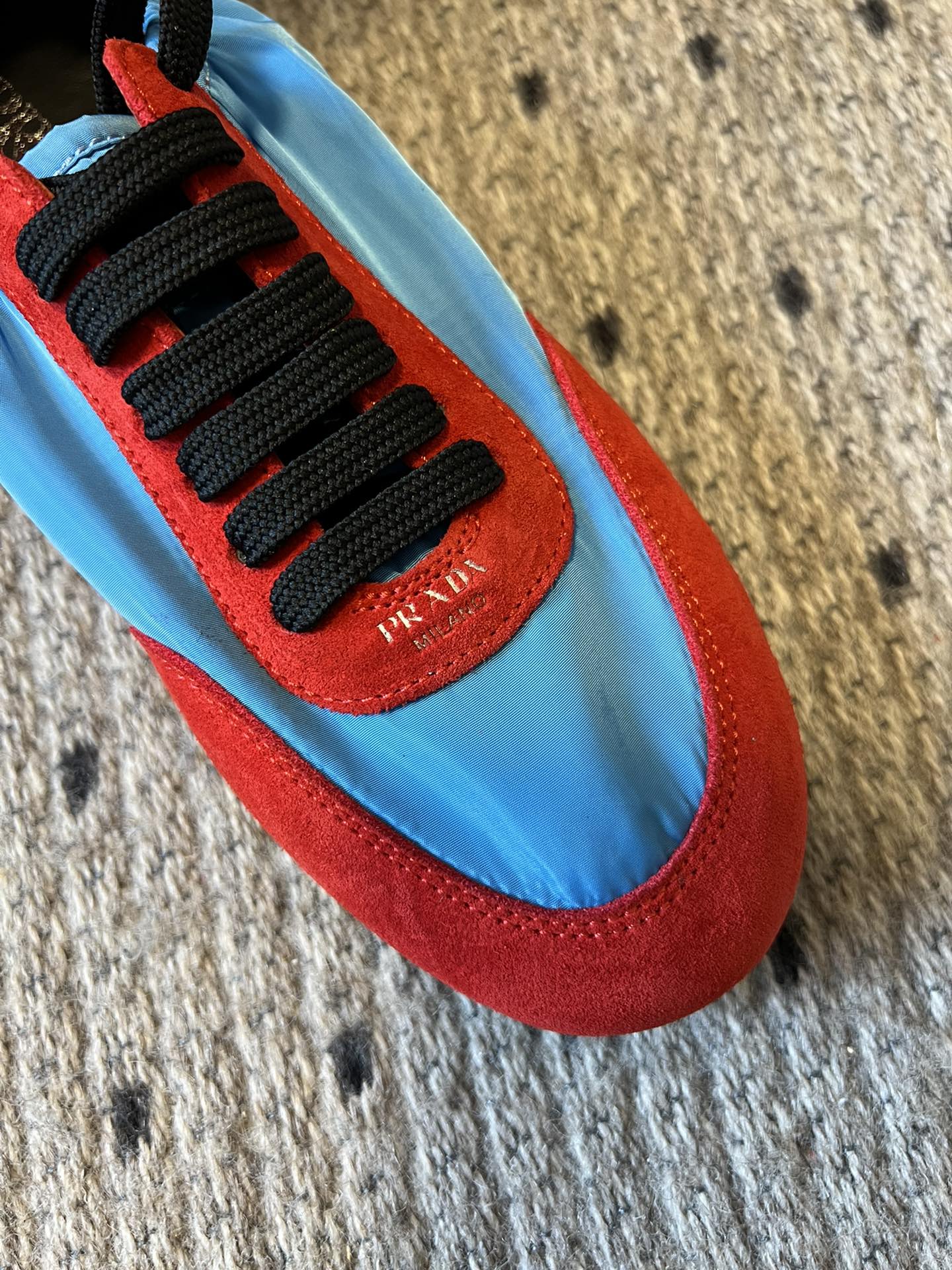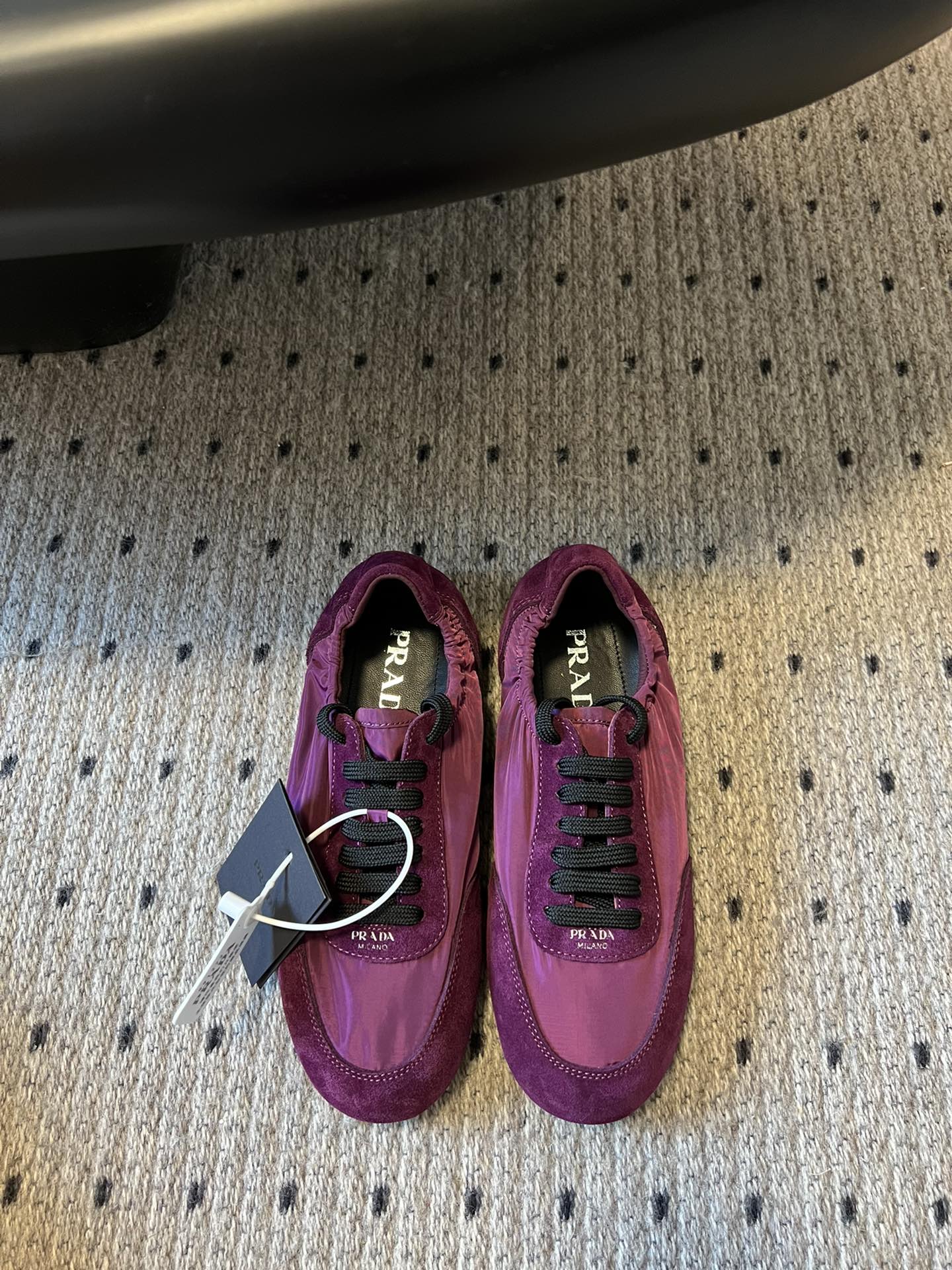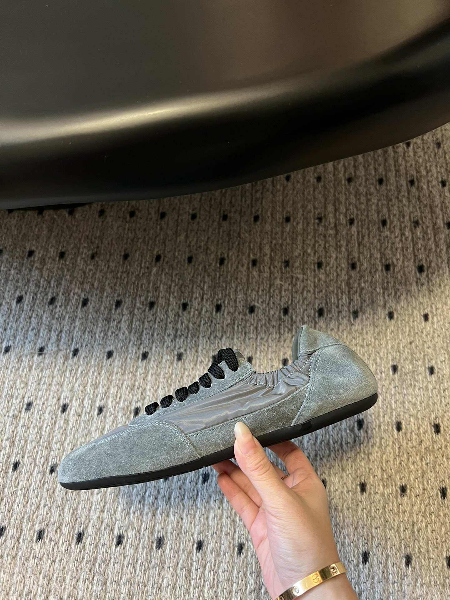 NIGO Prada Women's Suede Fabric Sheepskin Lining Low Top Lace Up Round Toe German Training Shoes #nigo74674