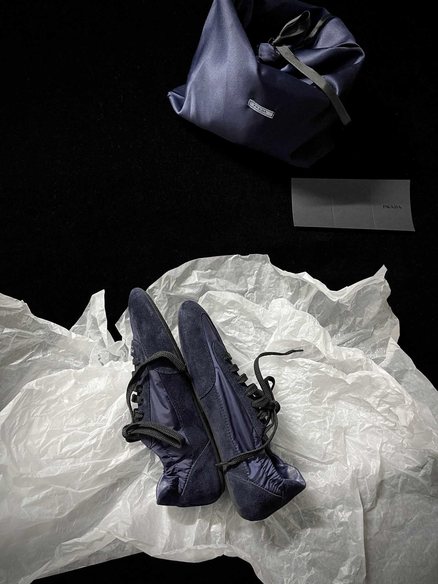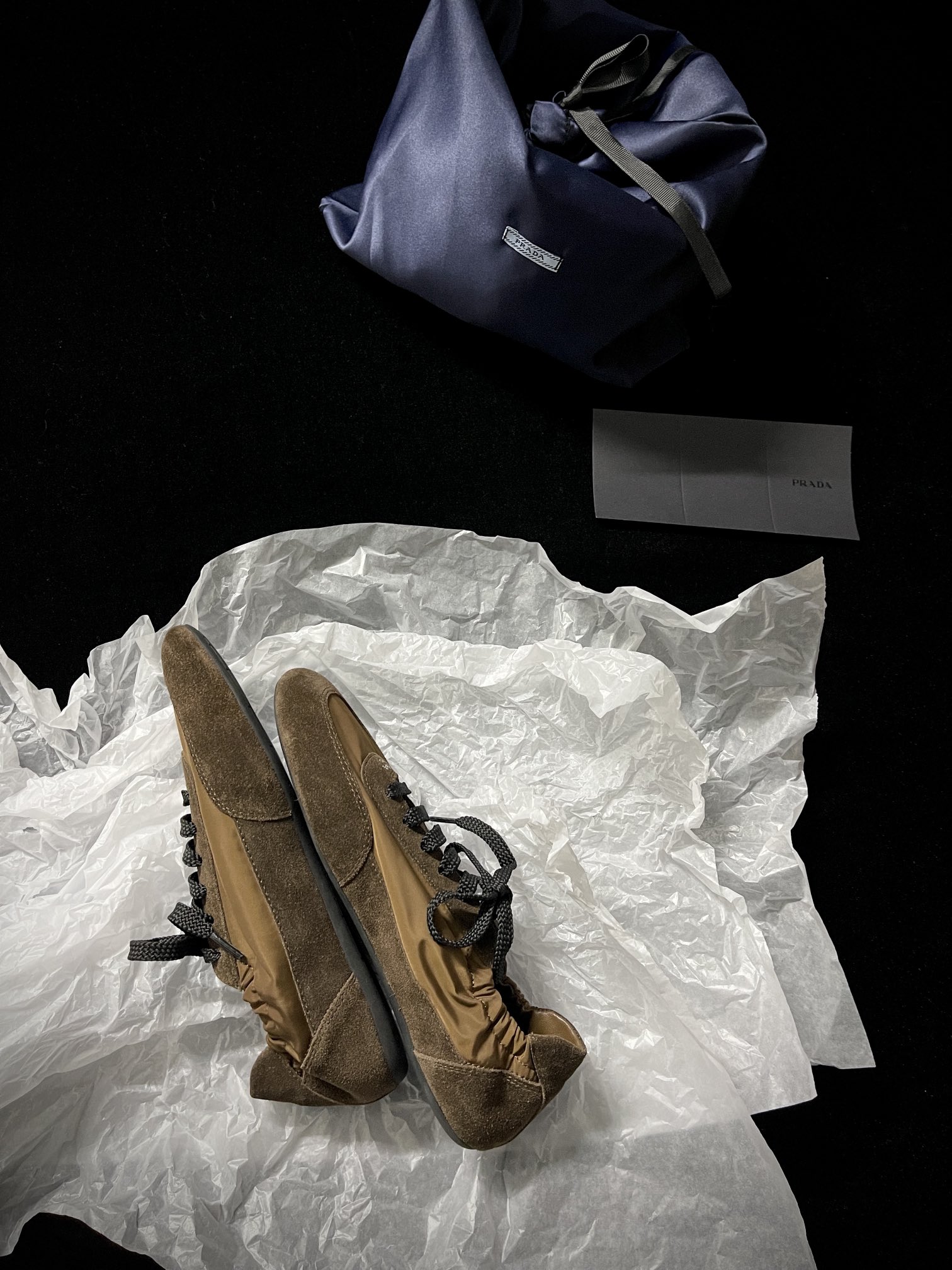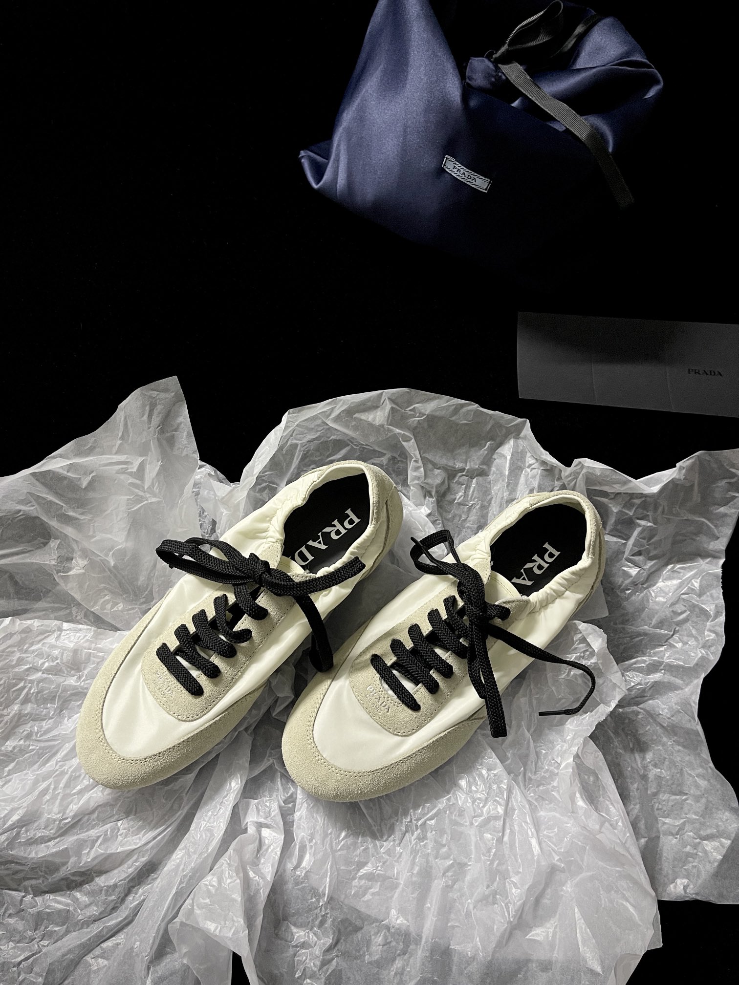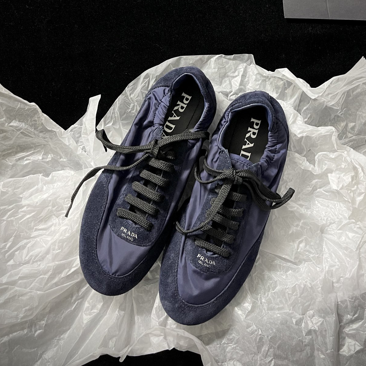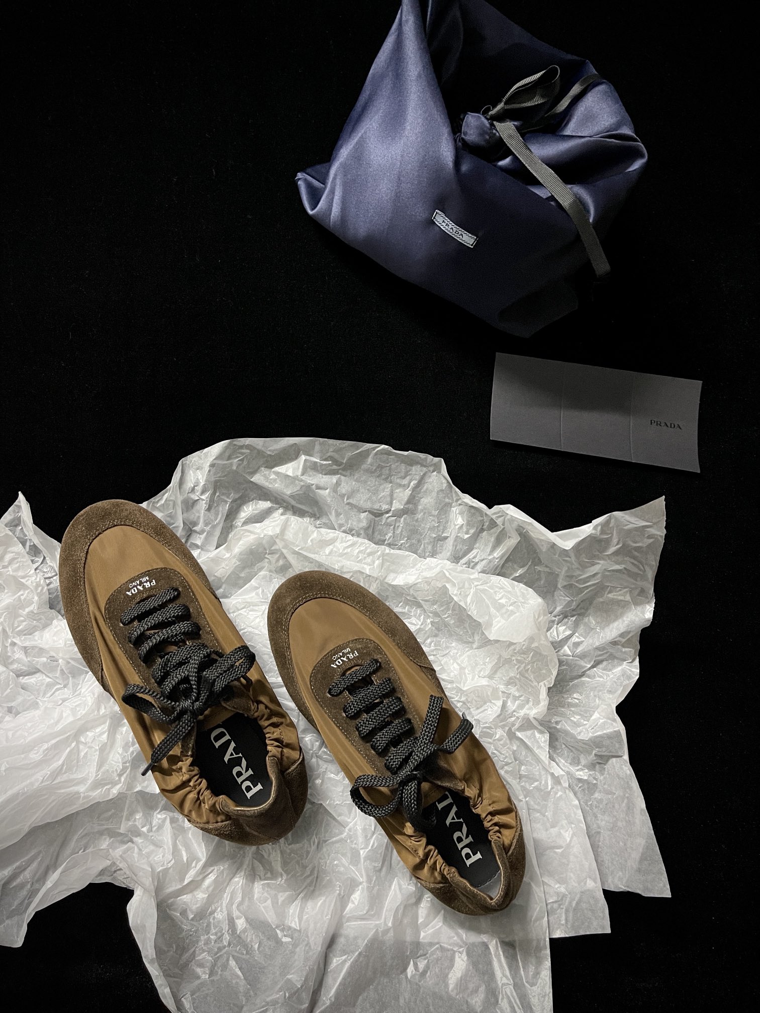 NIGO Prada Women's Suede Fabric Sheepskin Lining Low Top Lace Up Round Toe German Training Shoes #nigo75265
