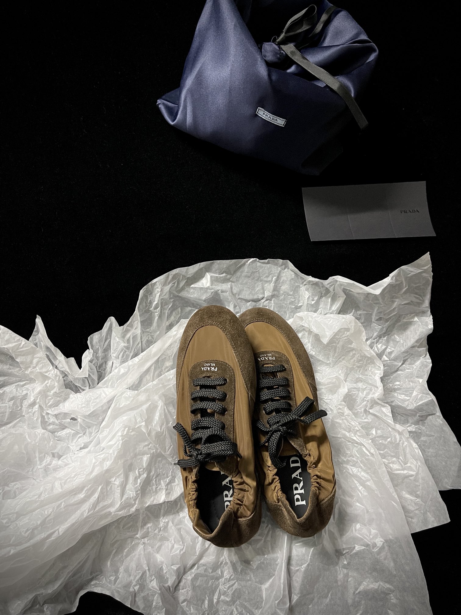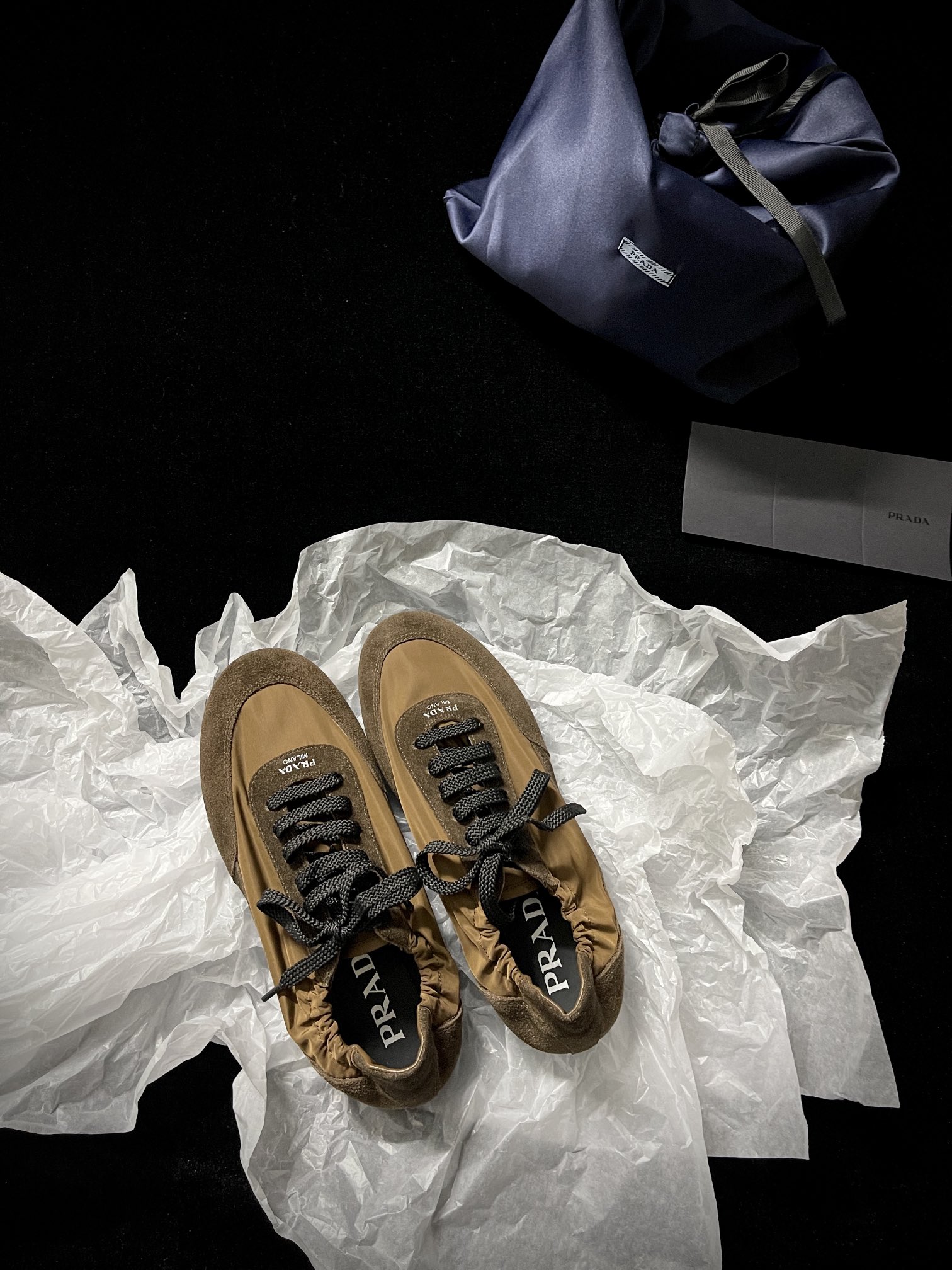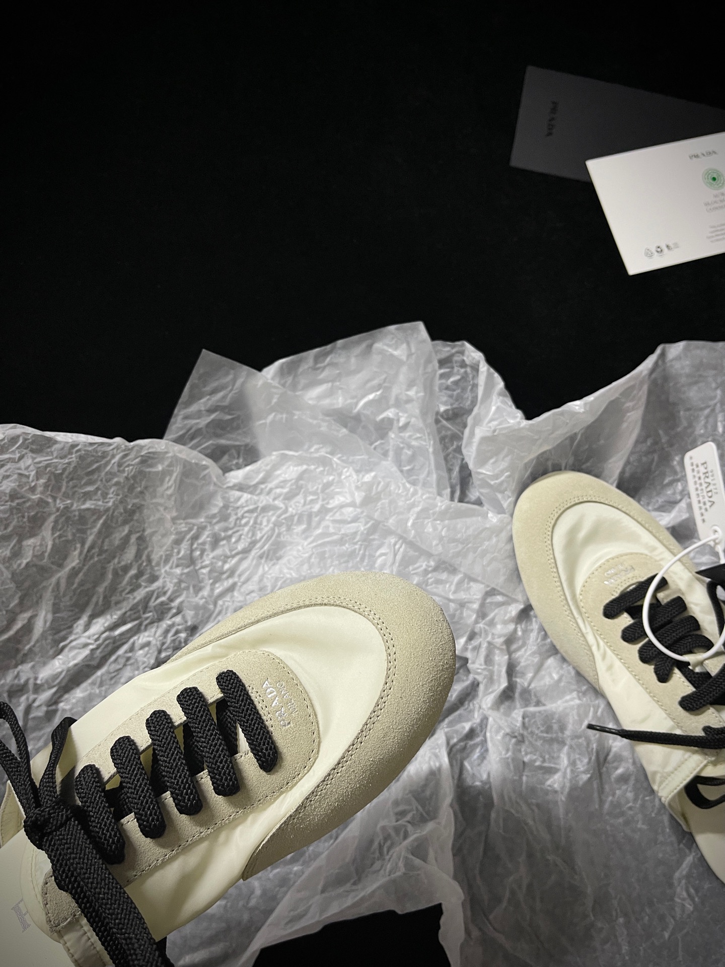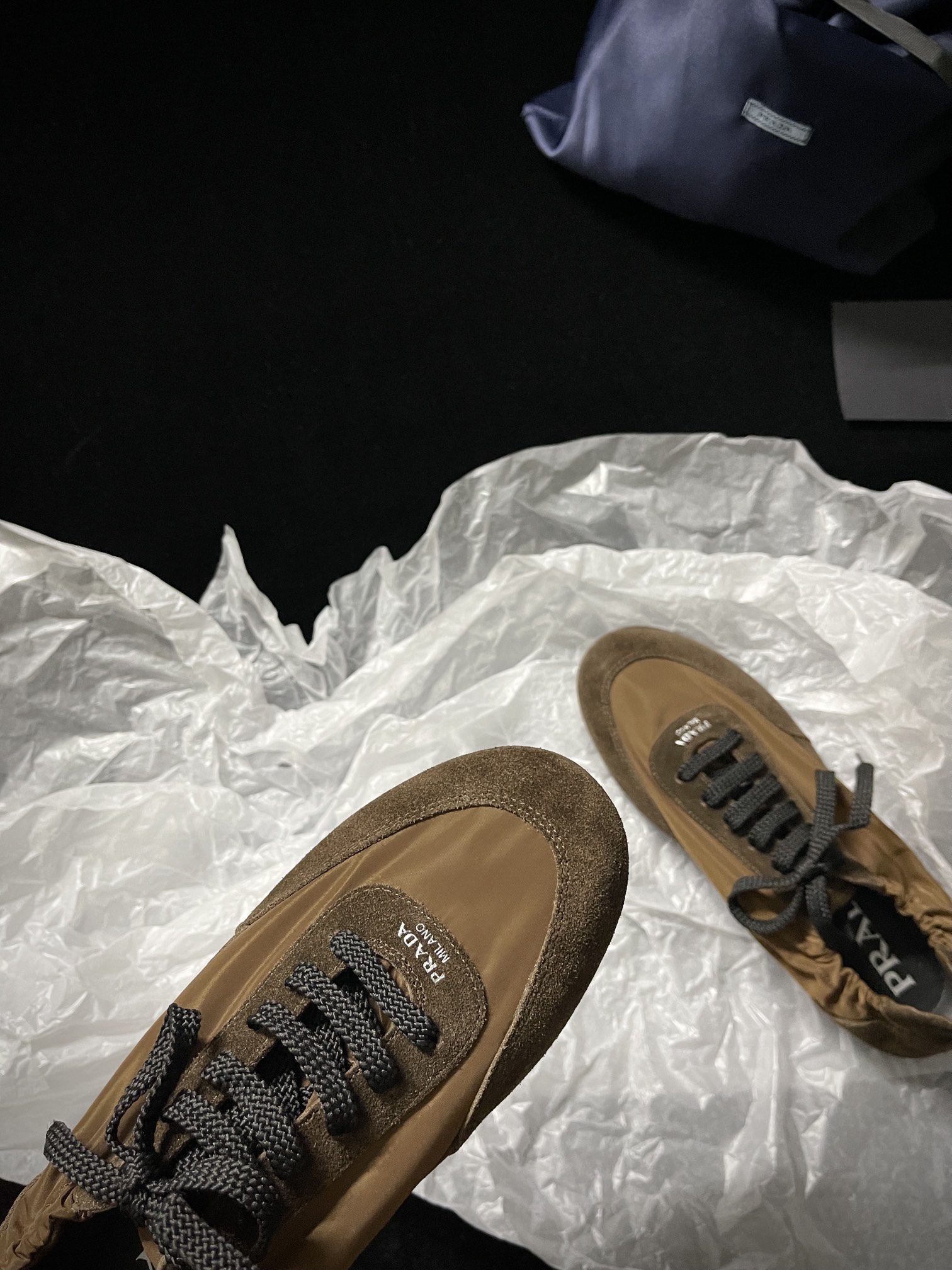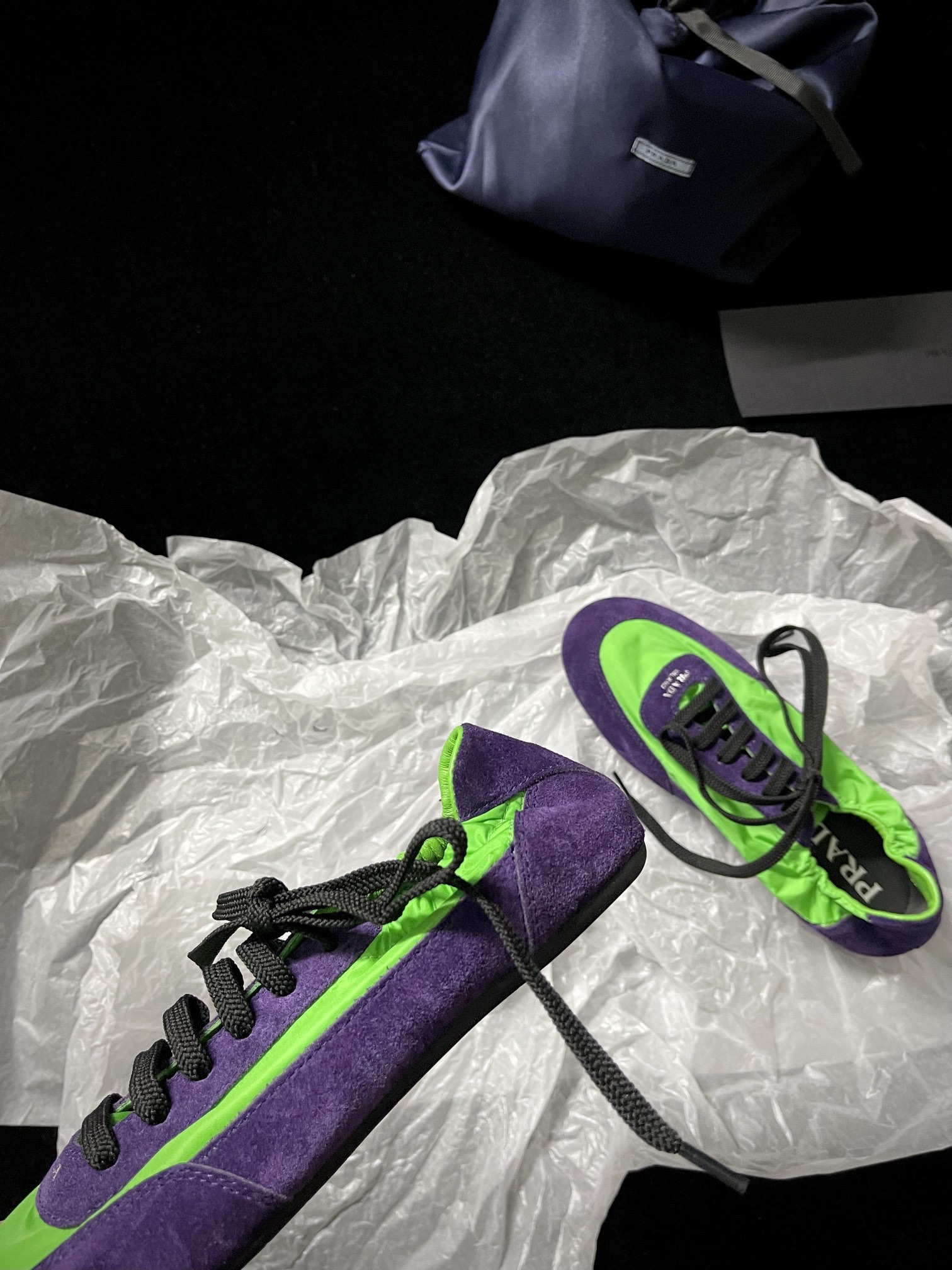 NIGO Prada Women's Suede Fabric Sheepskin Lining Low Top Lace Up Round Toe German Training Shoes #nigo75265