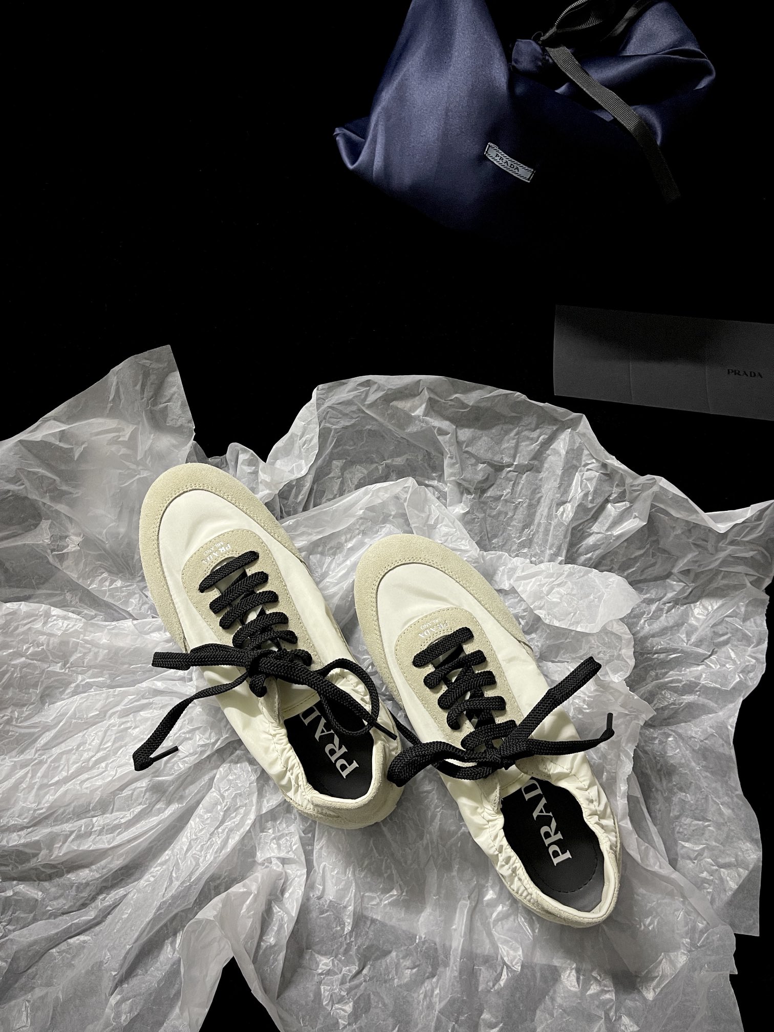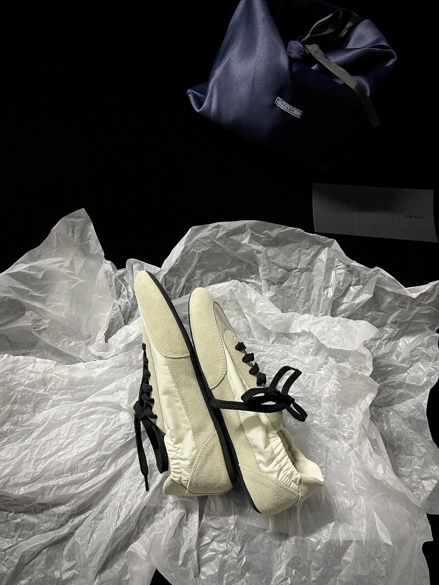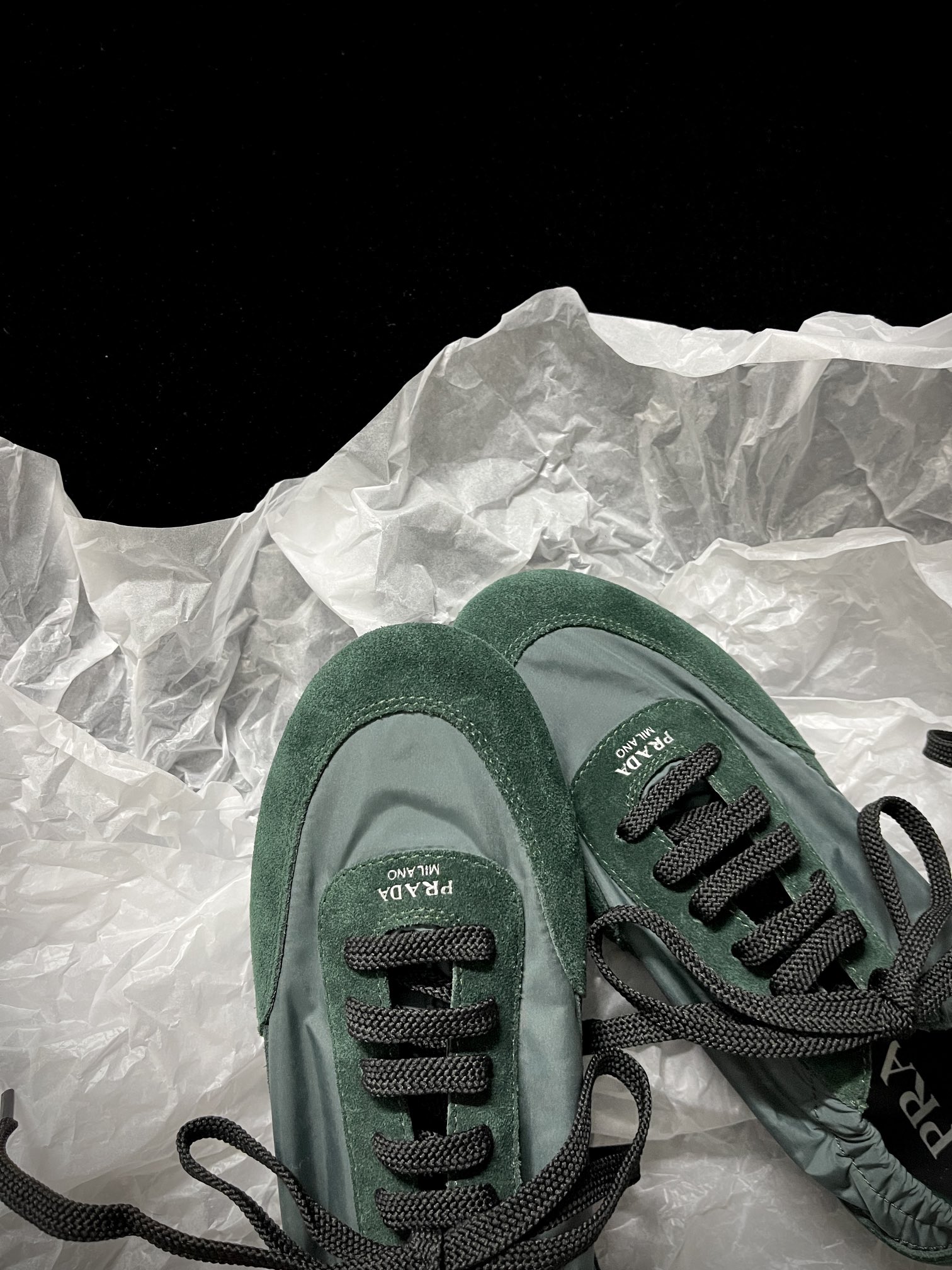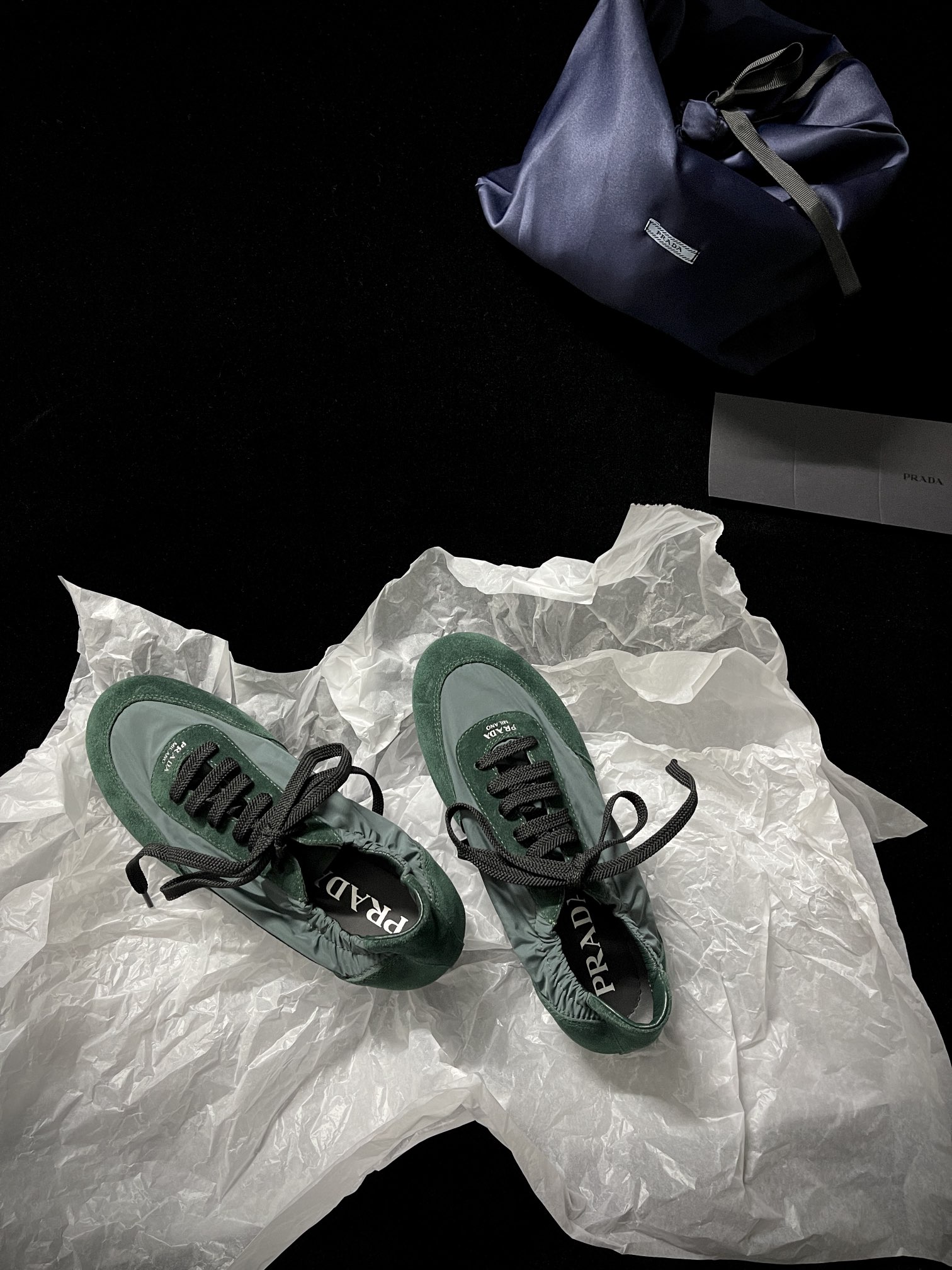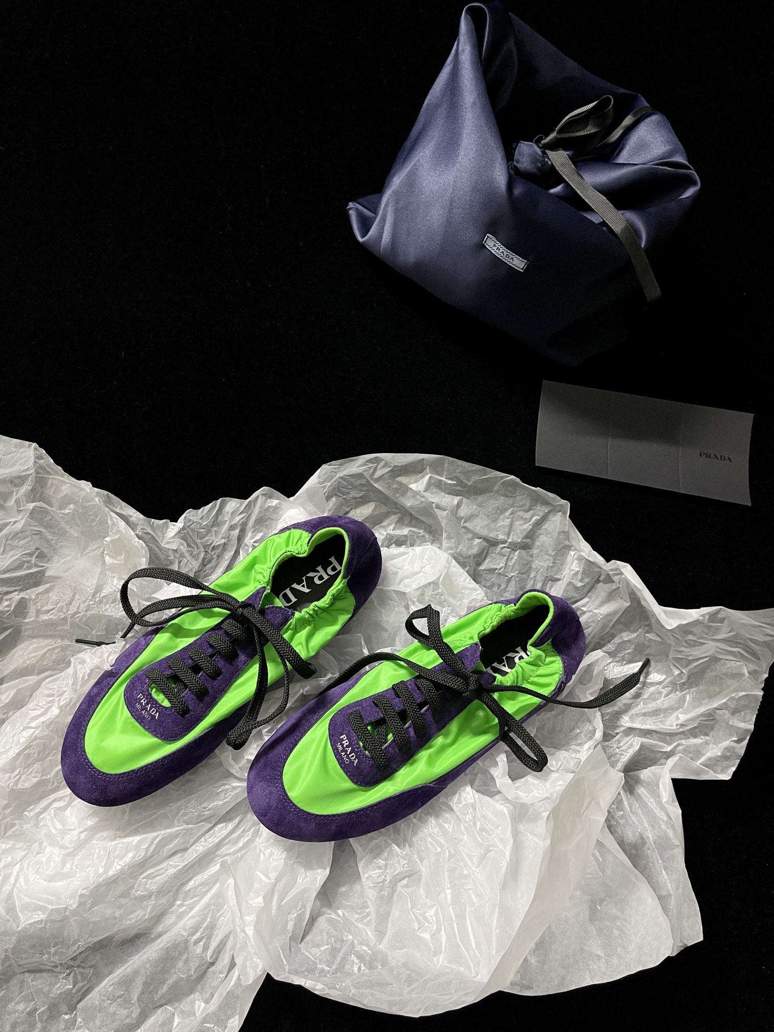NIGO Prada Women's Suede Fabric Sheepskin Lining Low Top Lace Up Round Toe German Training Shoes #nigo75265