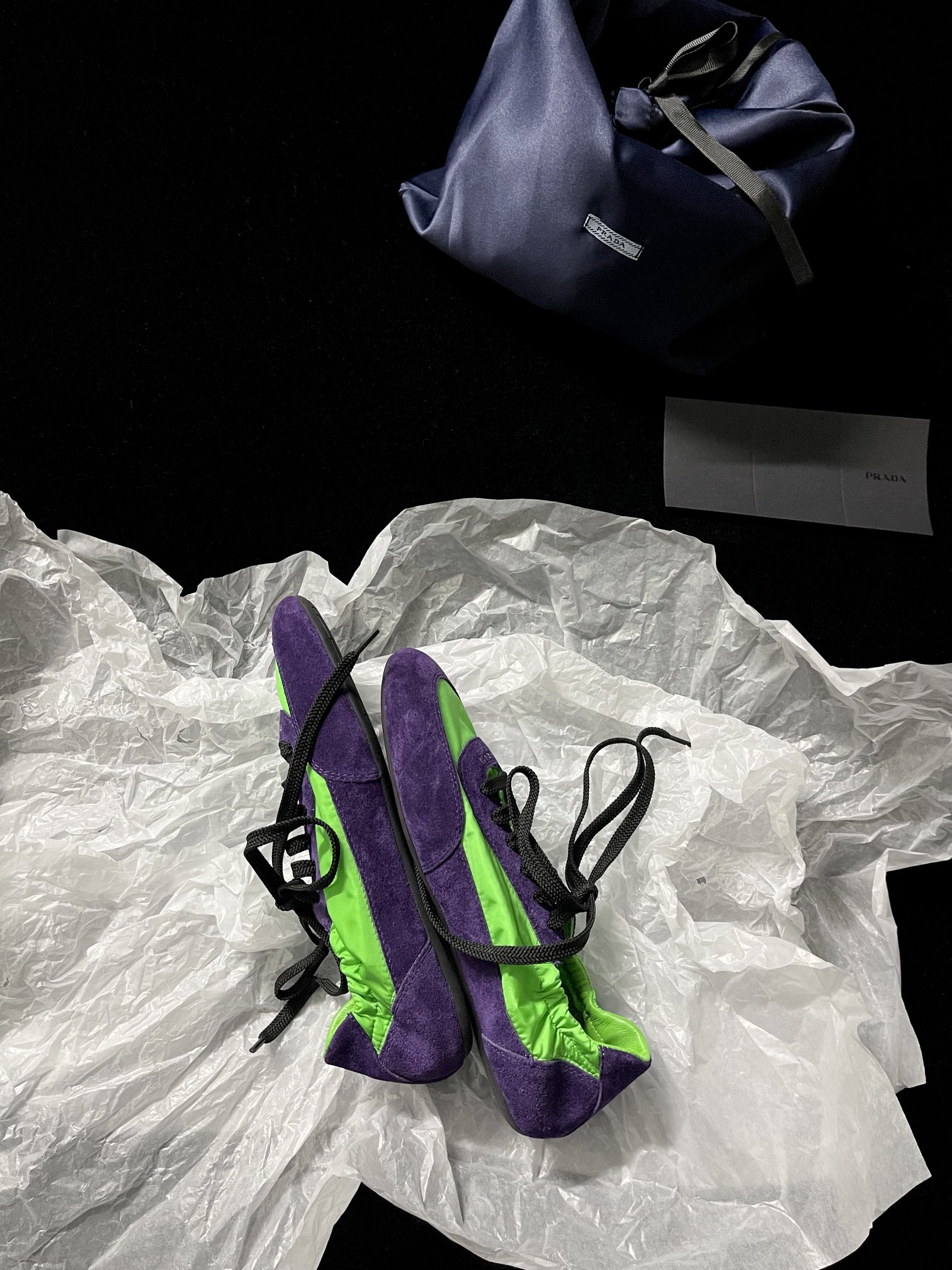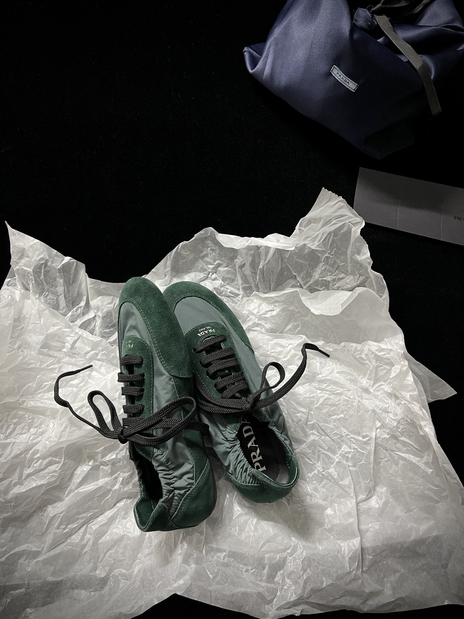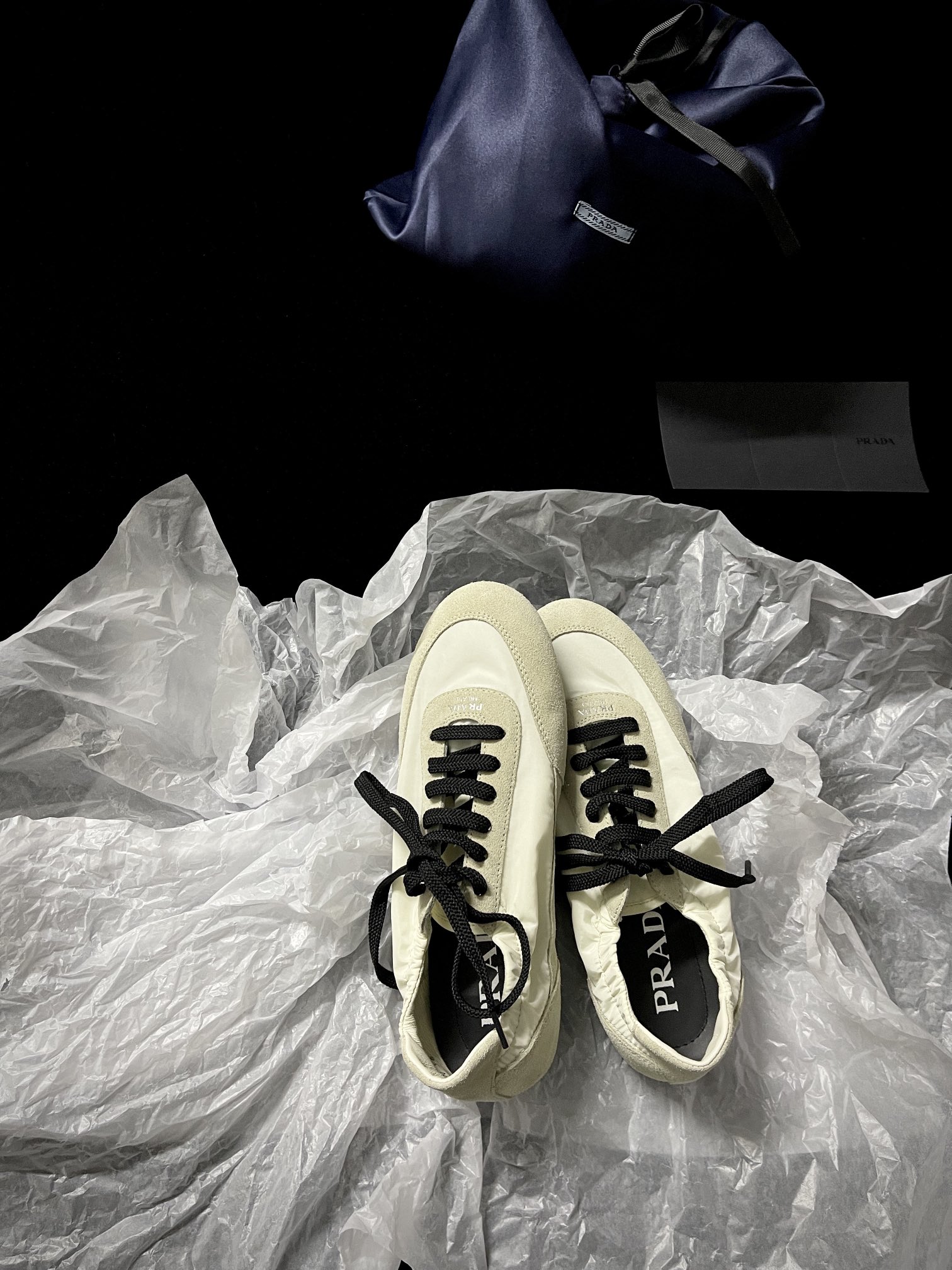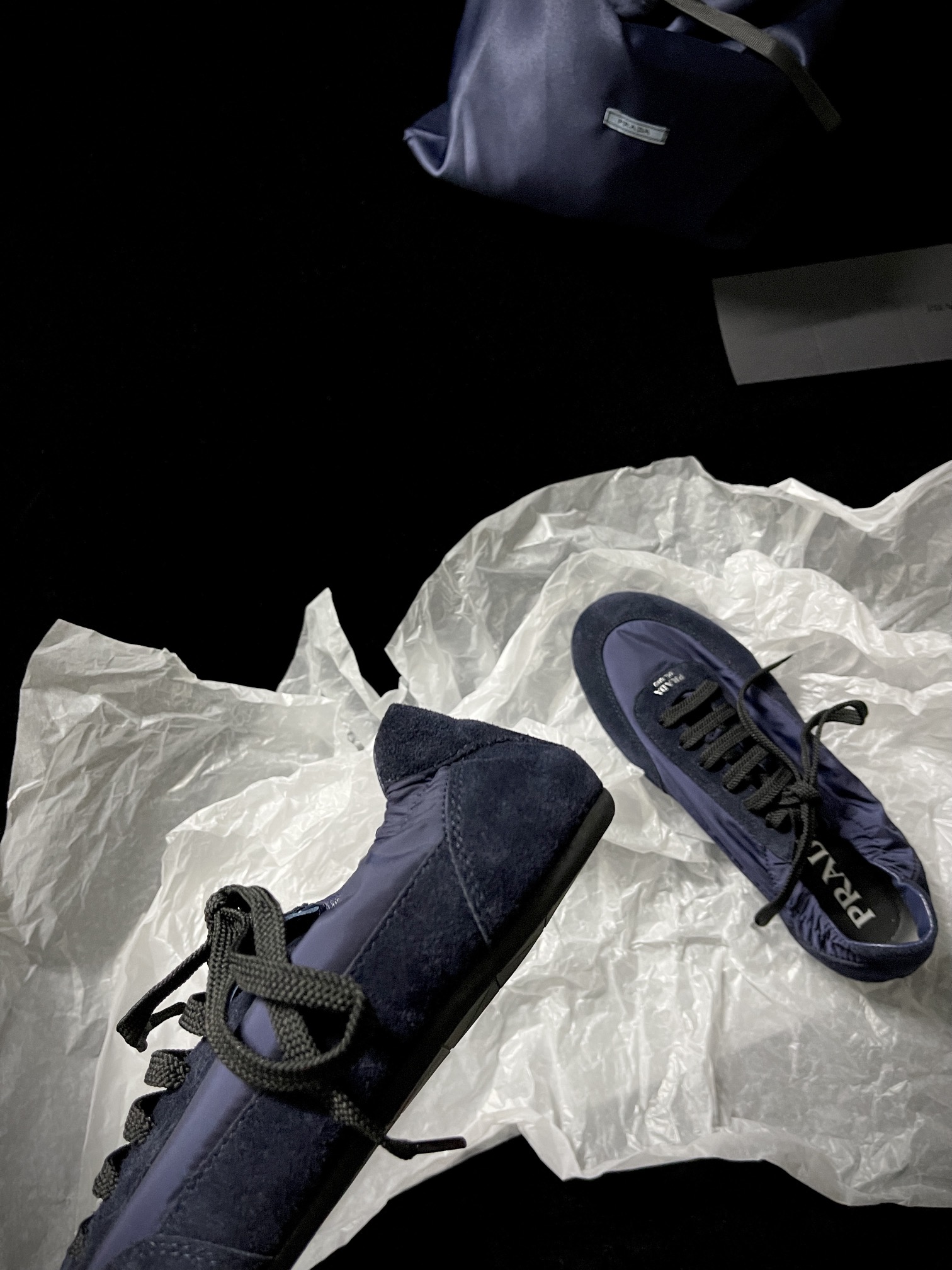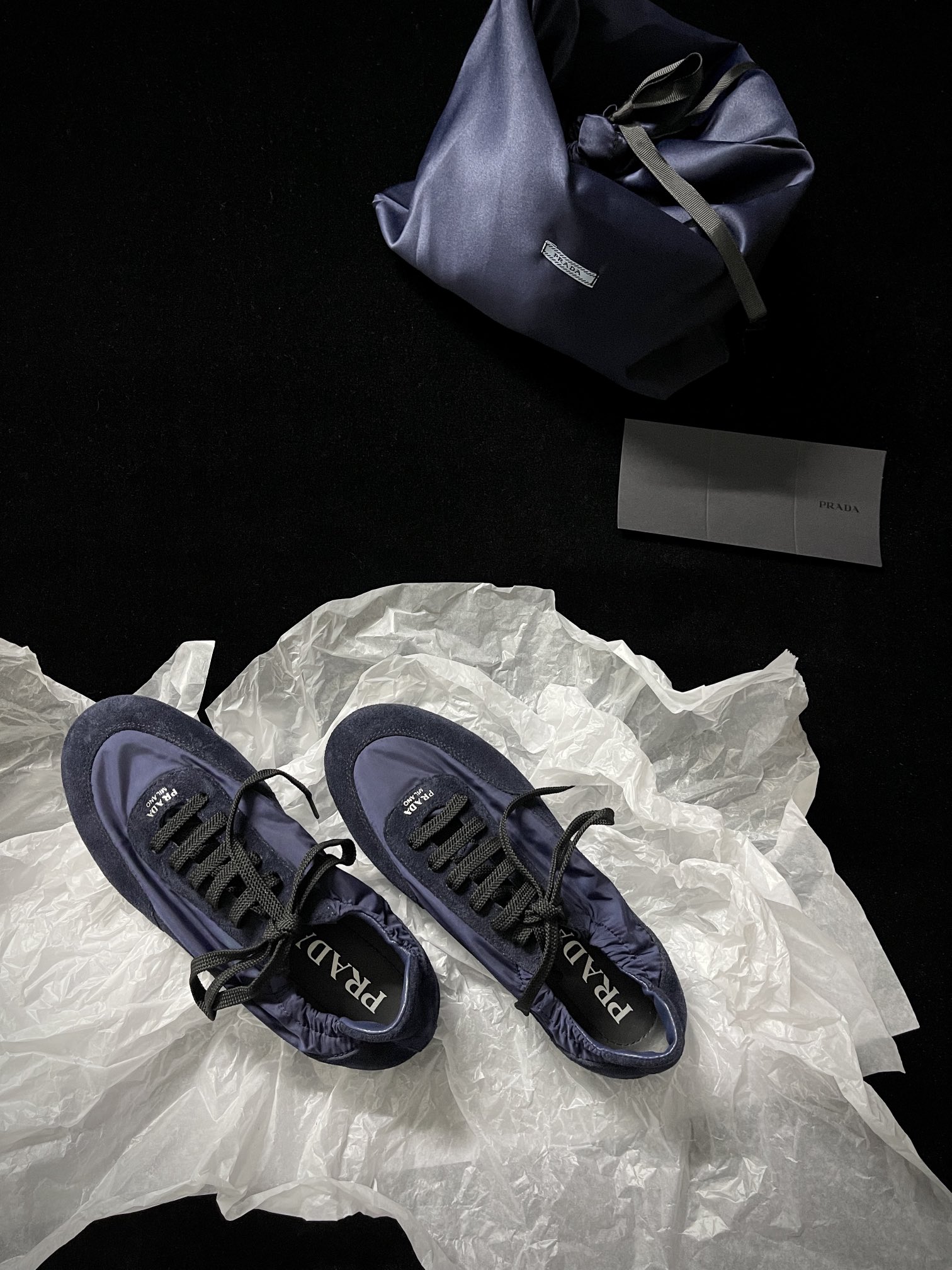 NIGO Prada Women's Suede Fabric Sheepskin Lining Low Top Lace Up Round Toe German Training Shoes #nigo75265