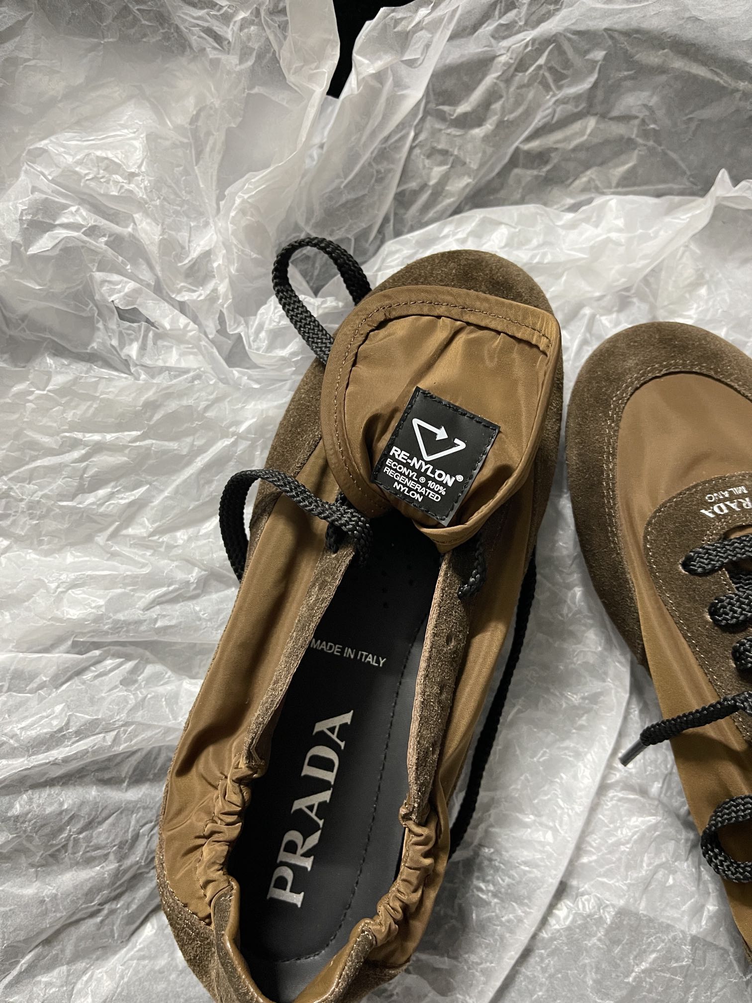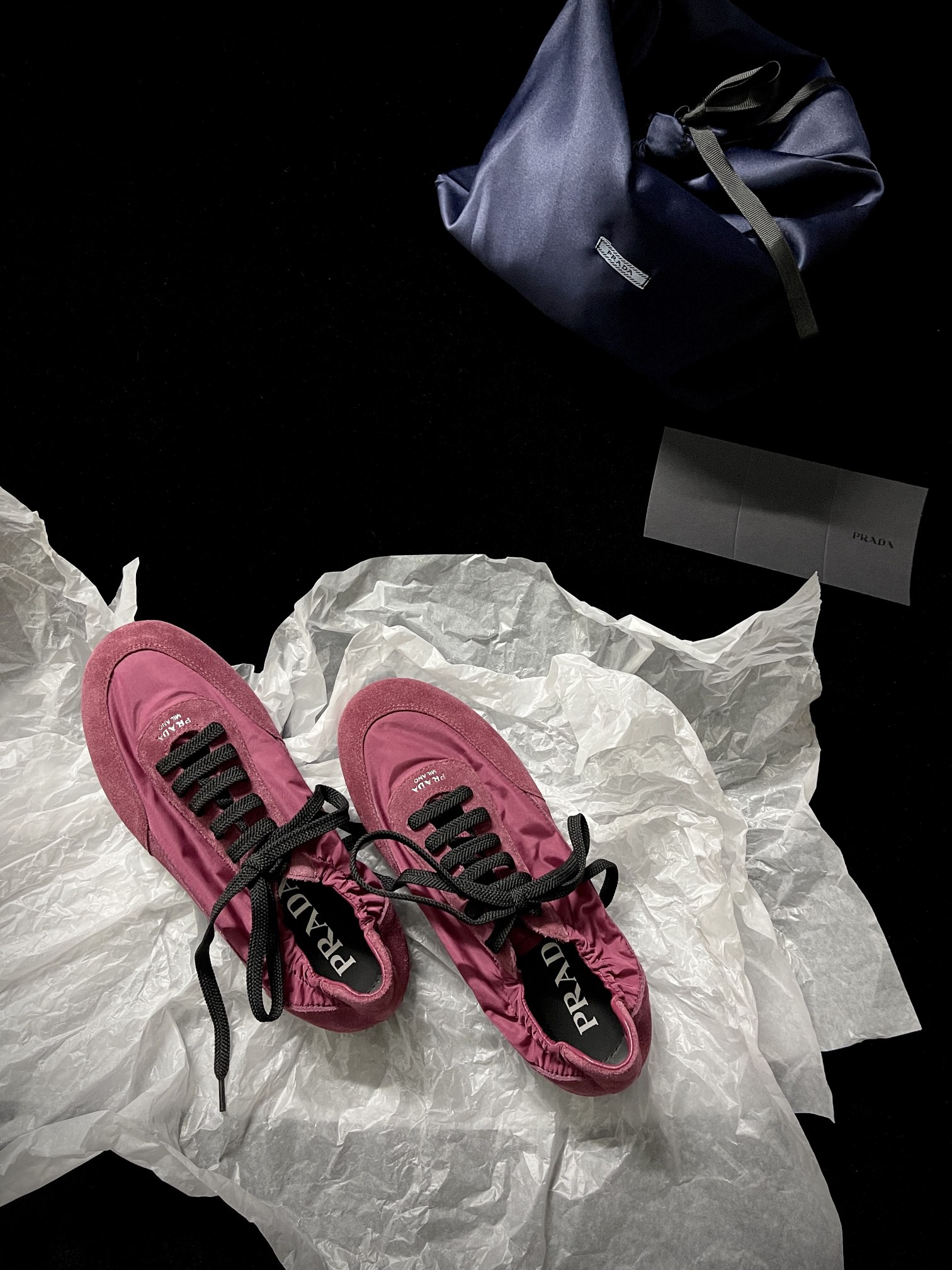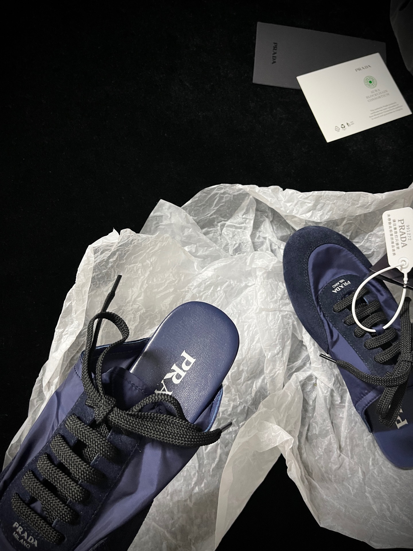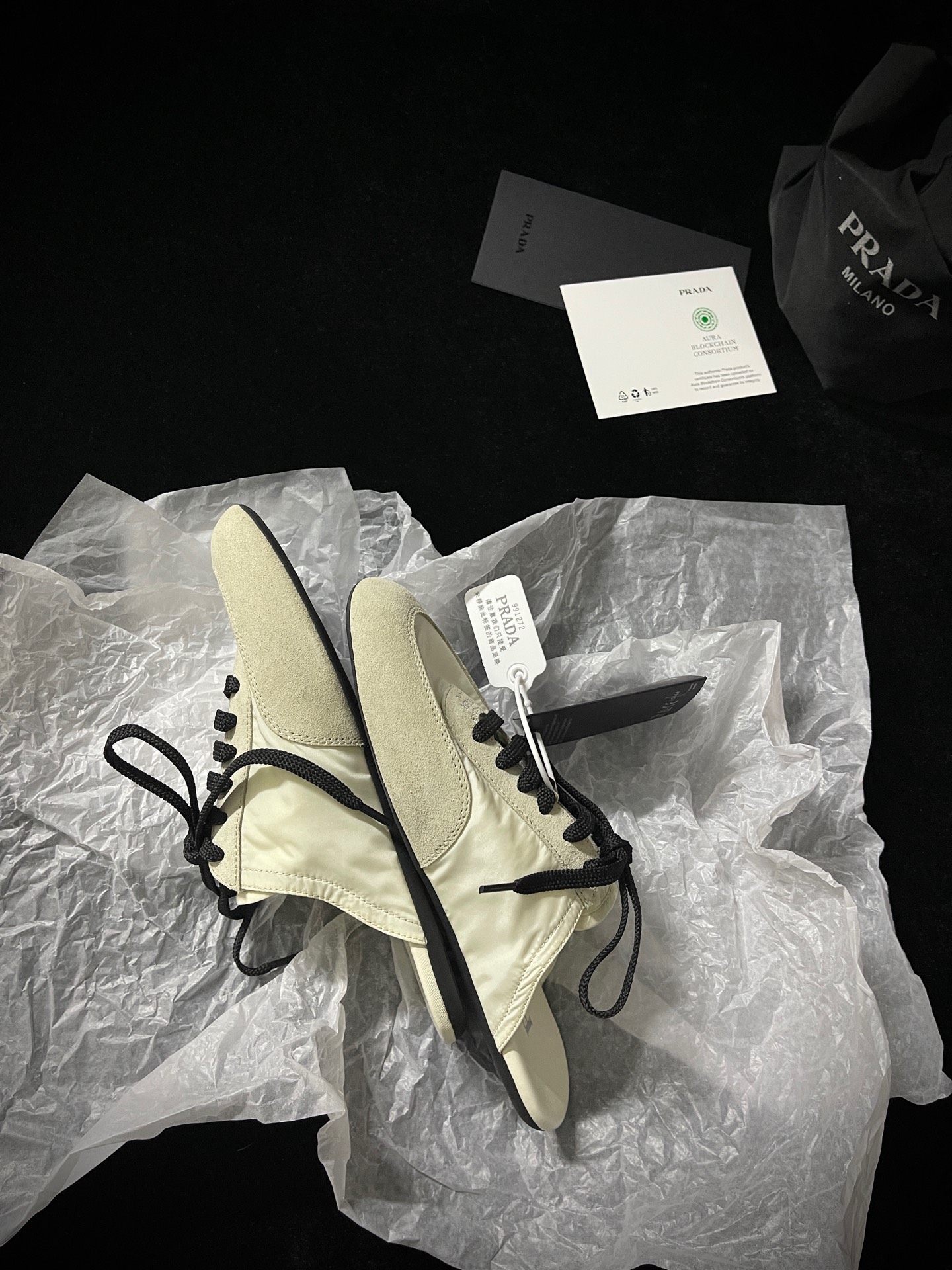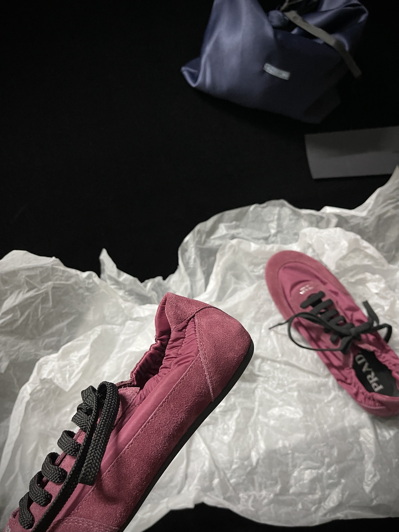 NIGO Prada Women's Suede Fabric Sheepskin Lining Low Top Lace Up Round Toe German Training Shoes #nigo75265
