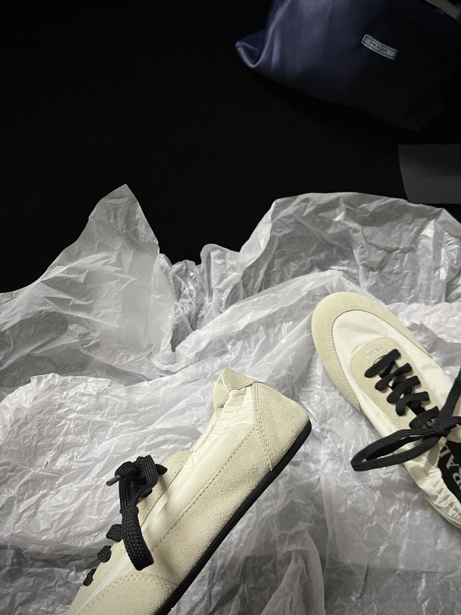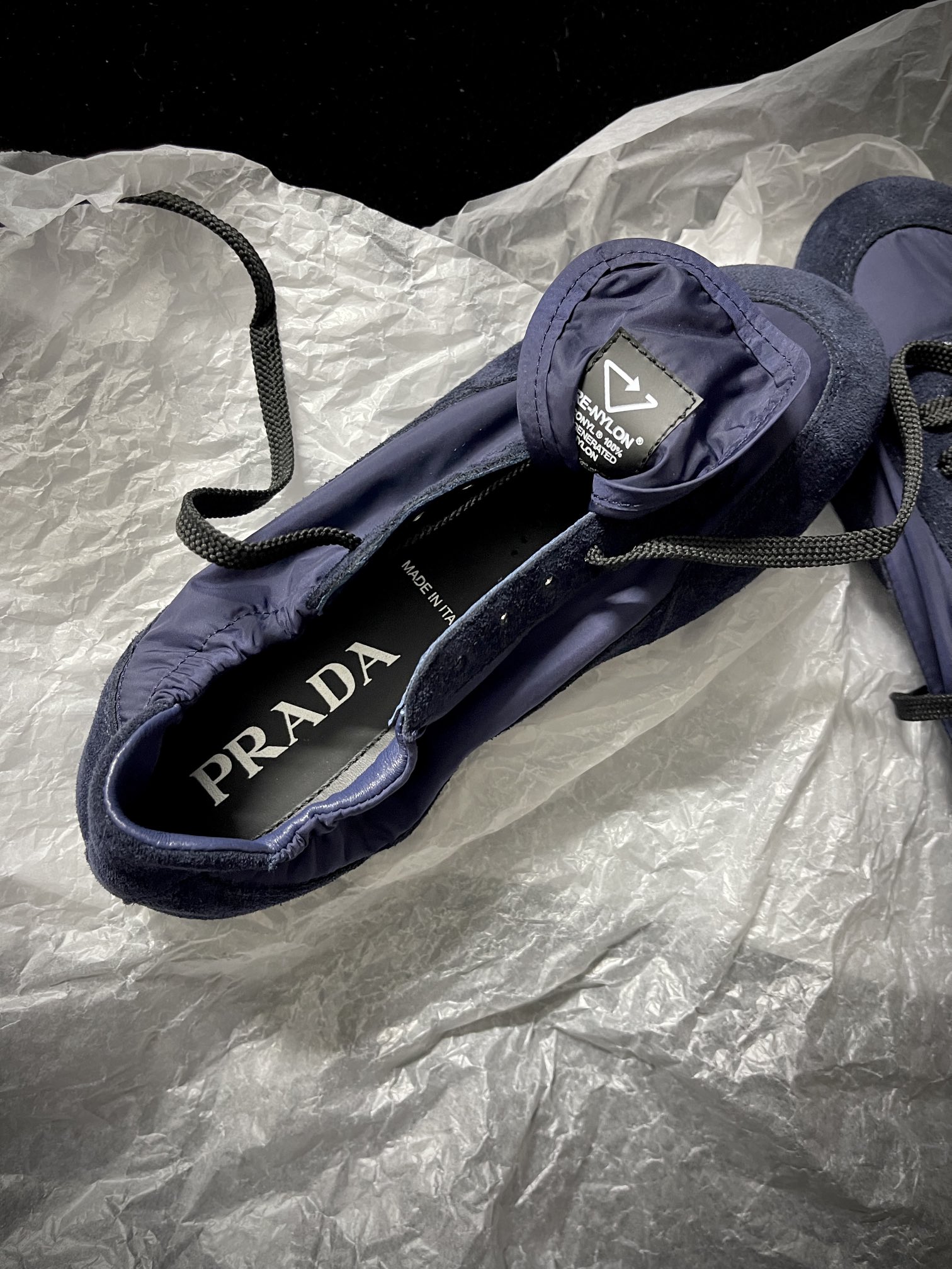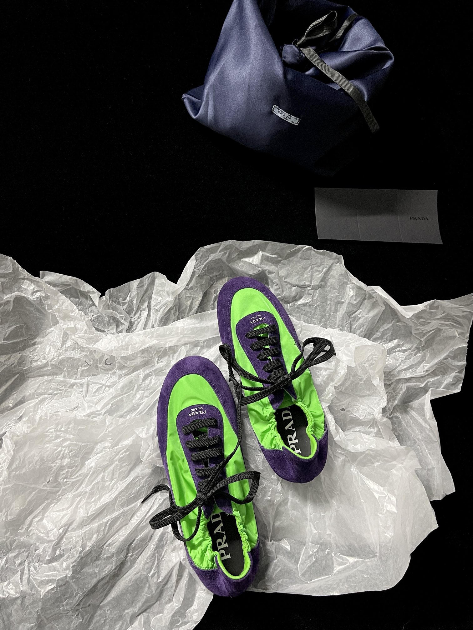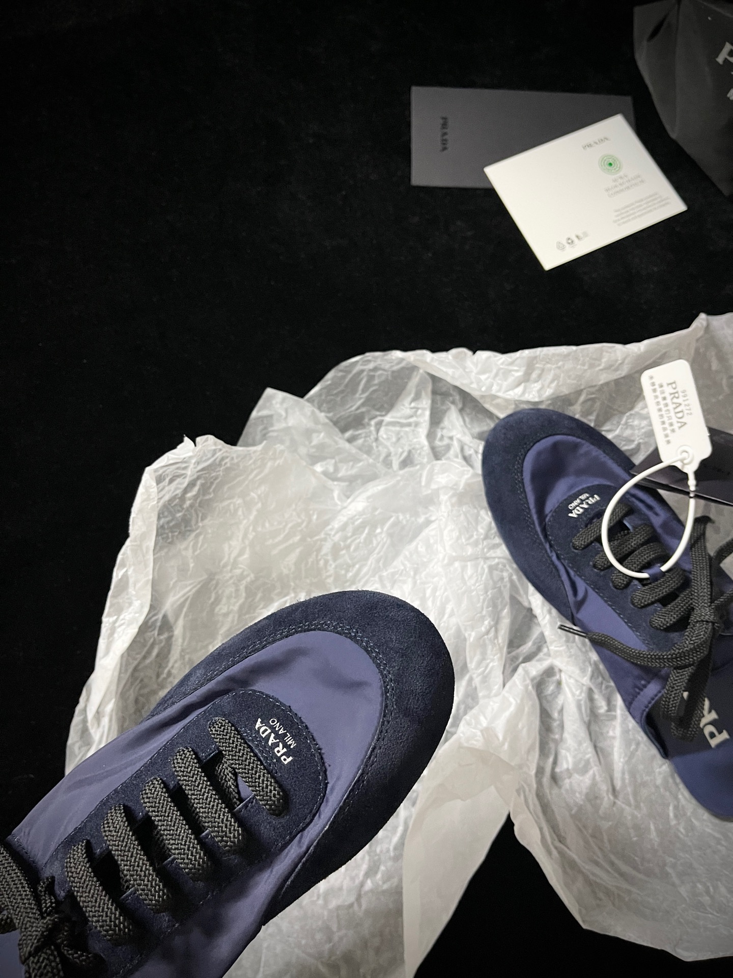 NIGO Prada Women's Suede Fabric Sheepskin Lining Low Top Lace Up Round Toe German Training Shoes #nigo75265
