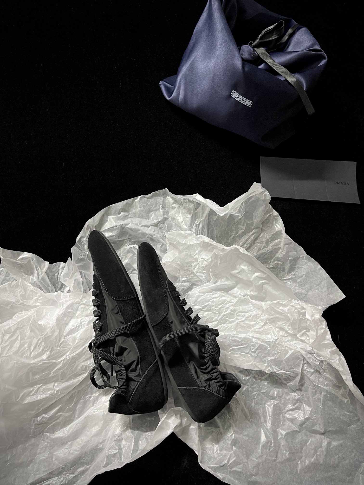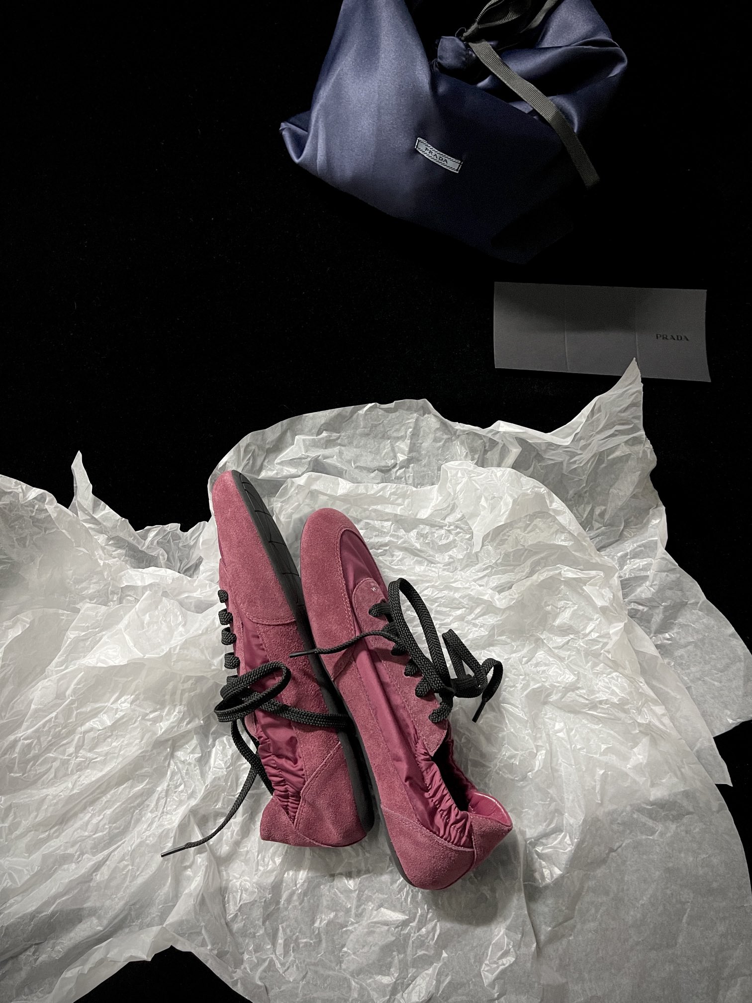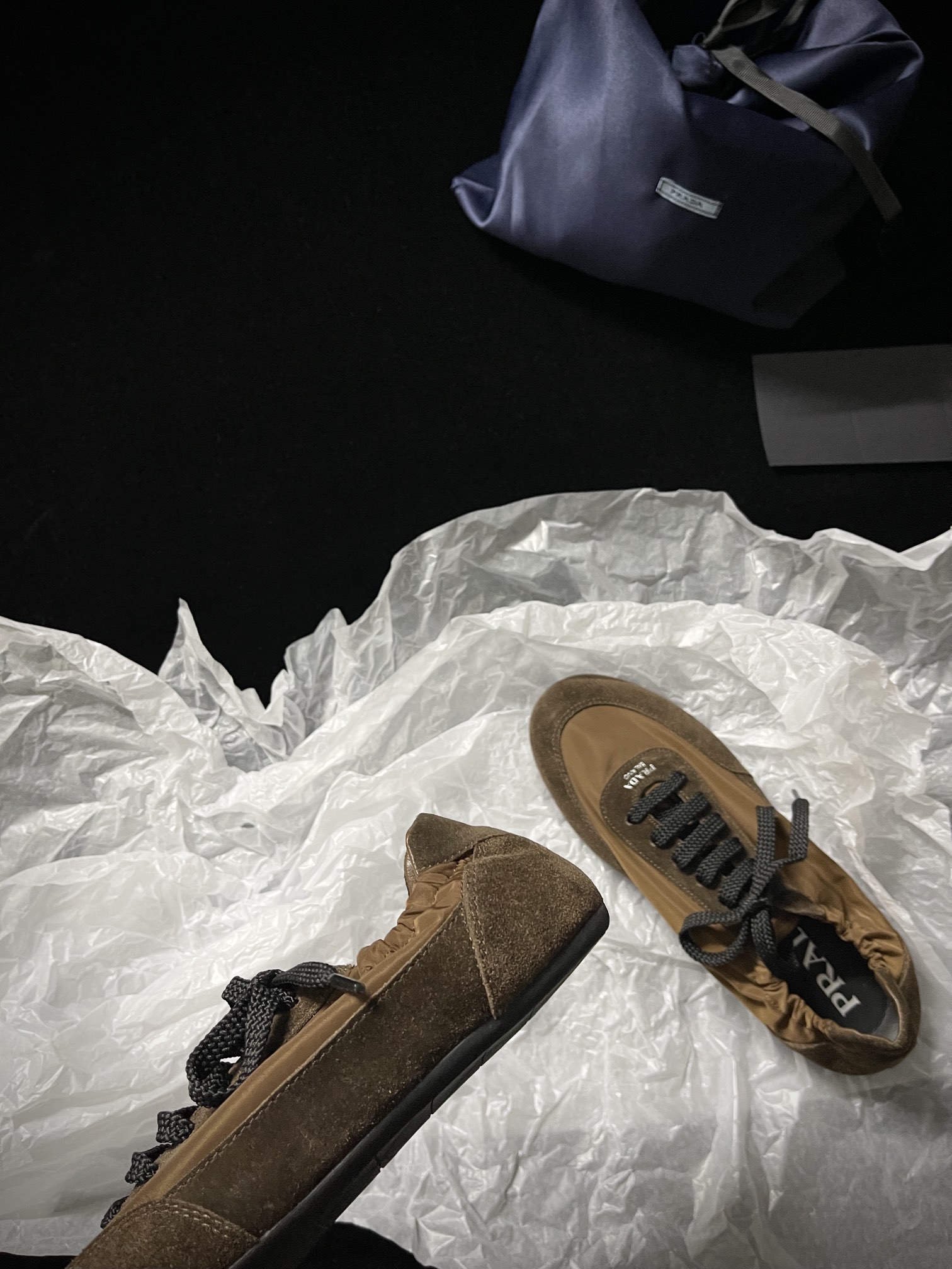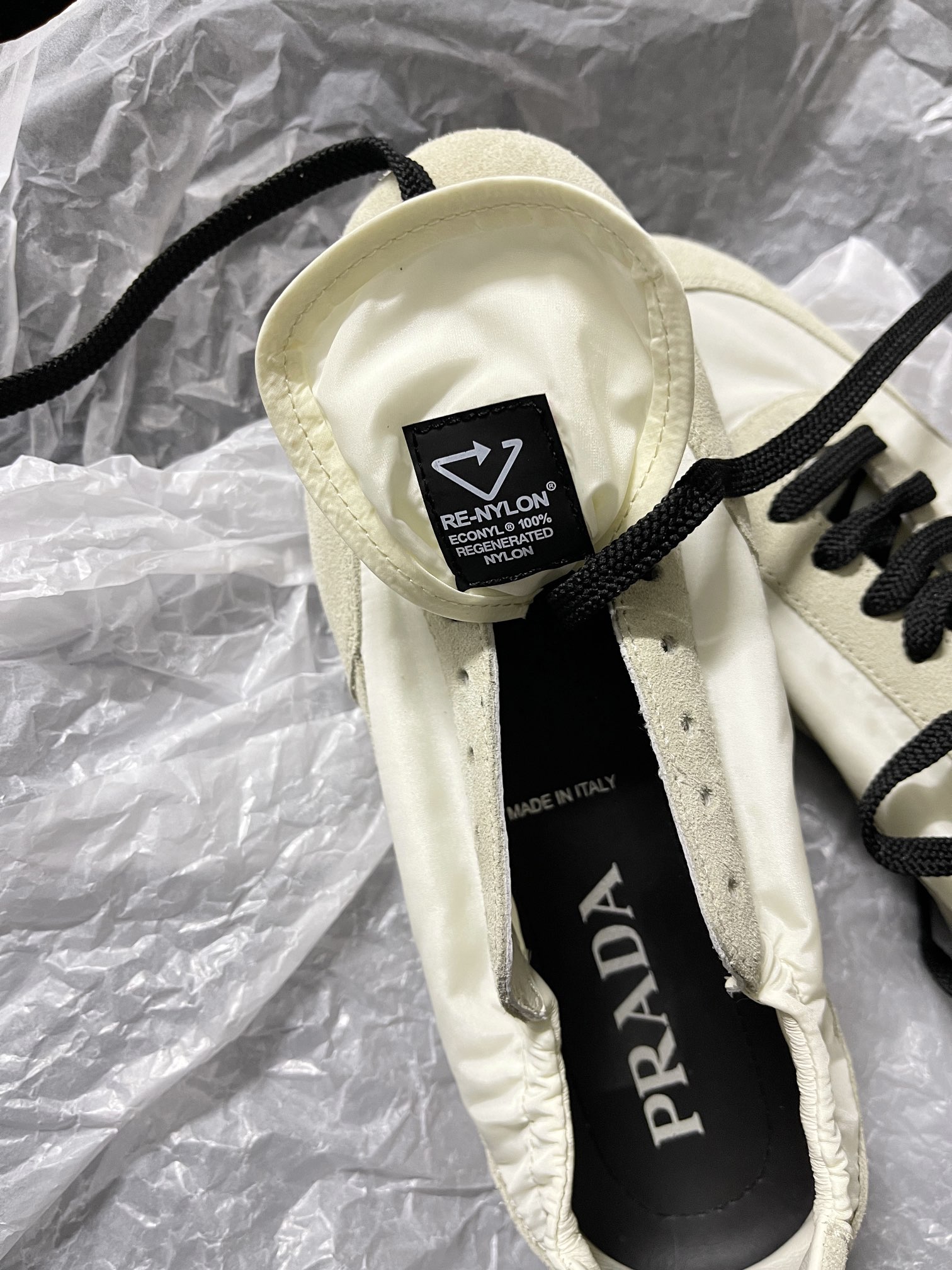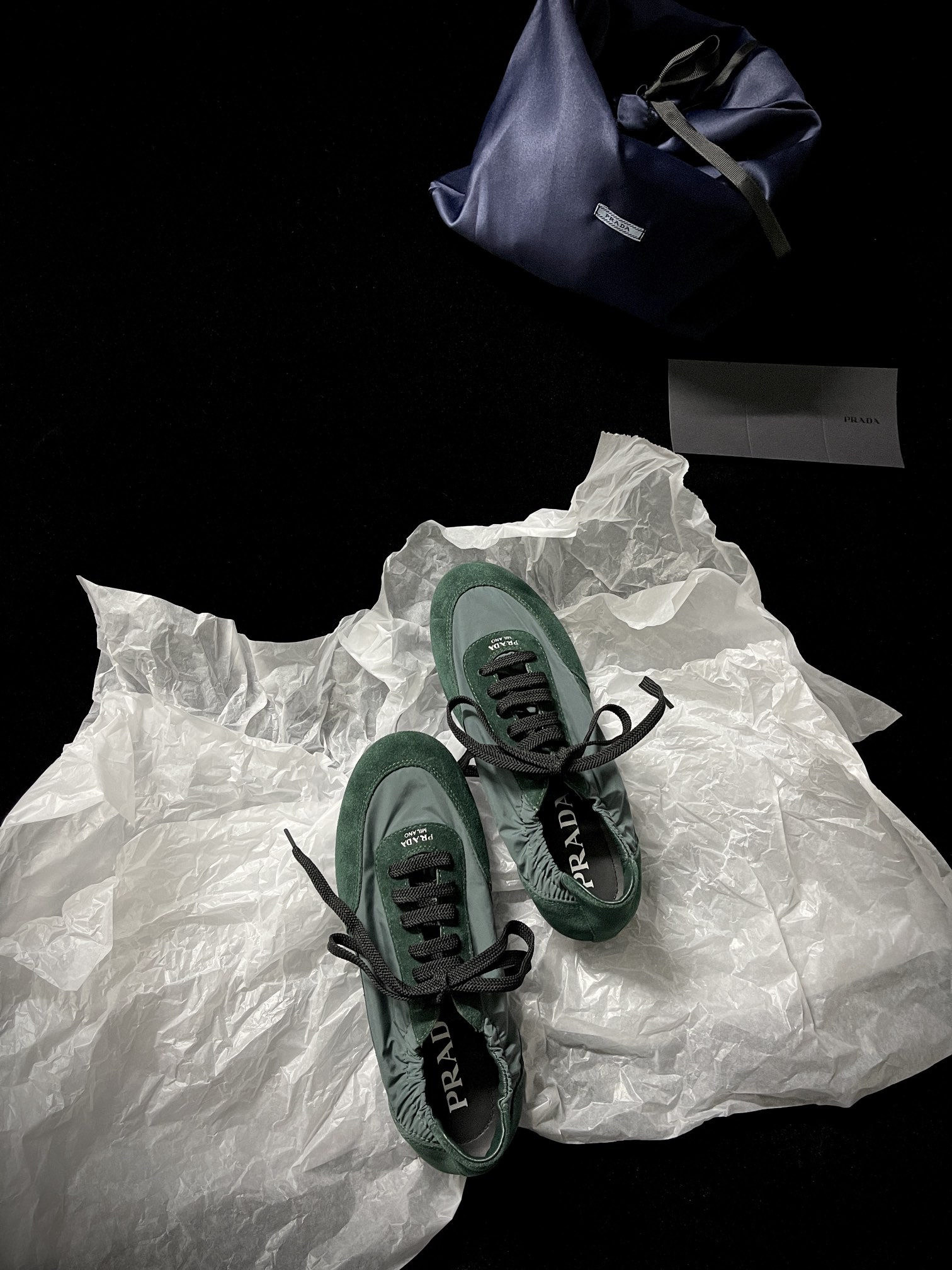 NIGO Prada Women's Suede Fabric Sheepskin Lining Low Top Lace Up Round Toe German Training Shoes #nigo75265