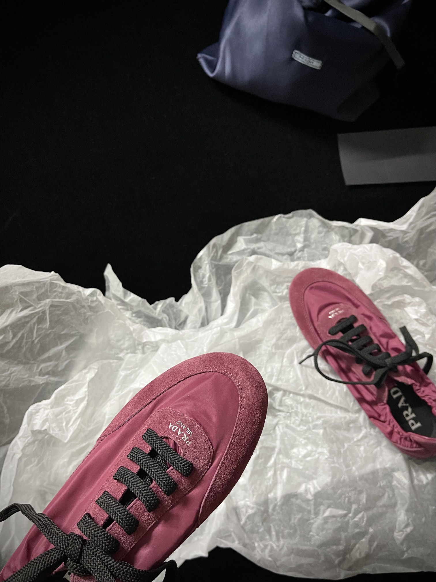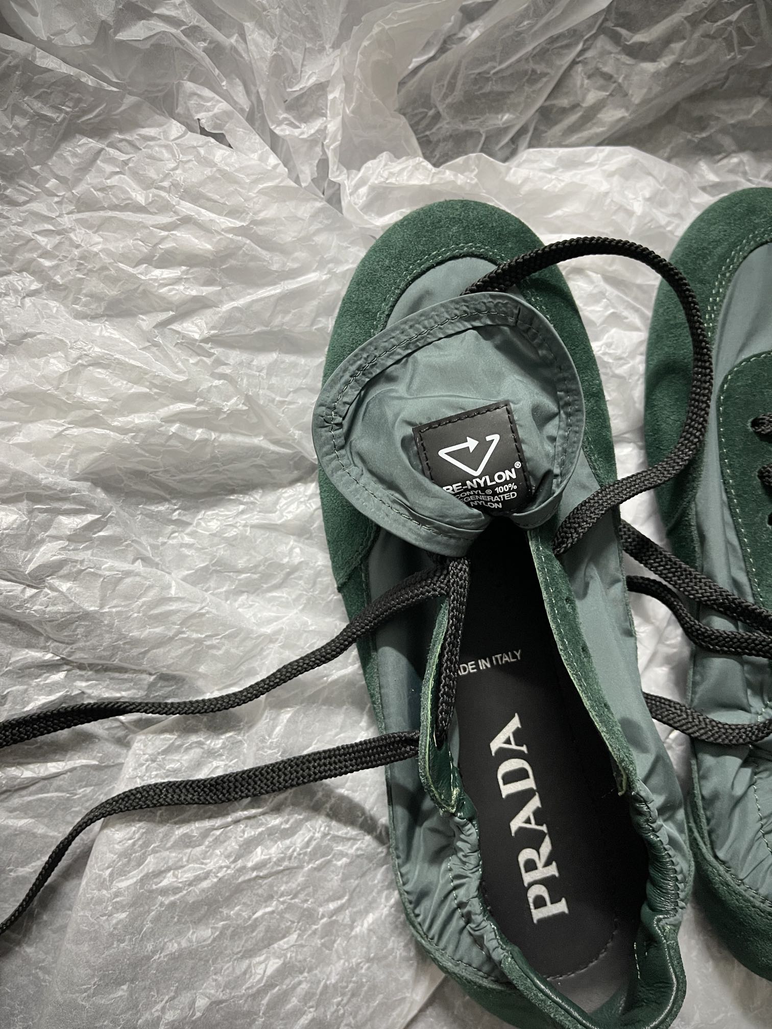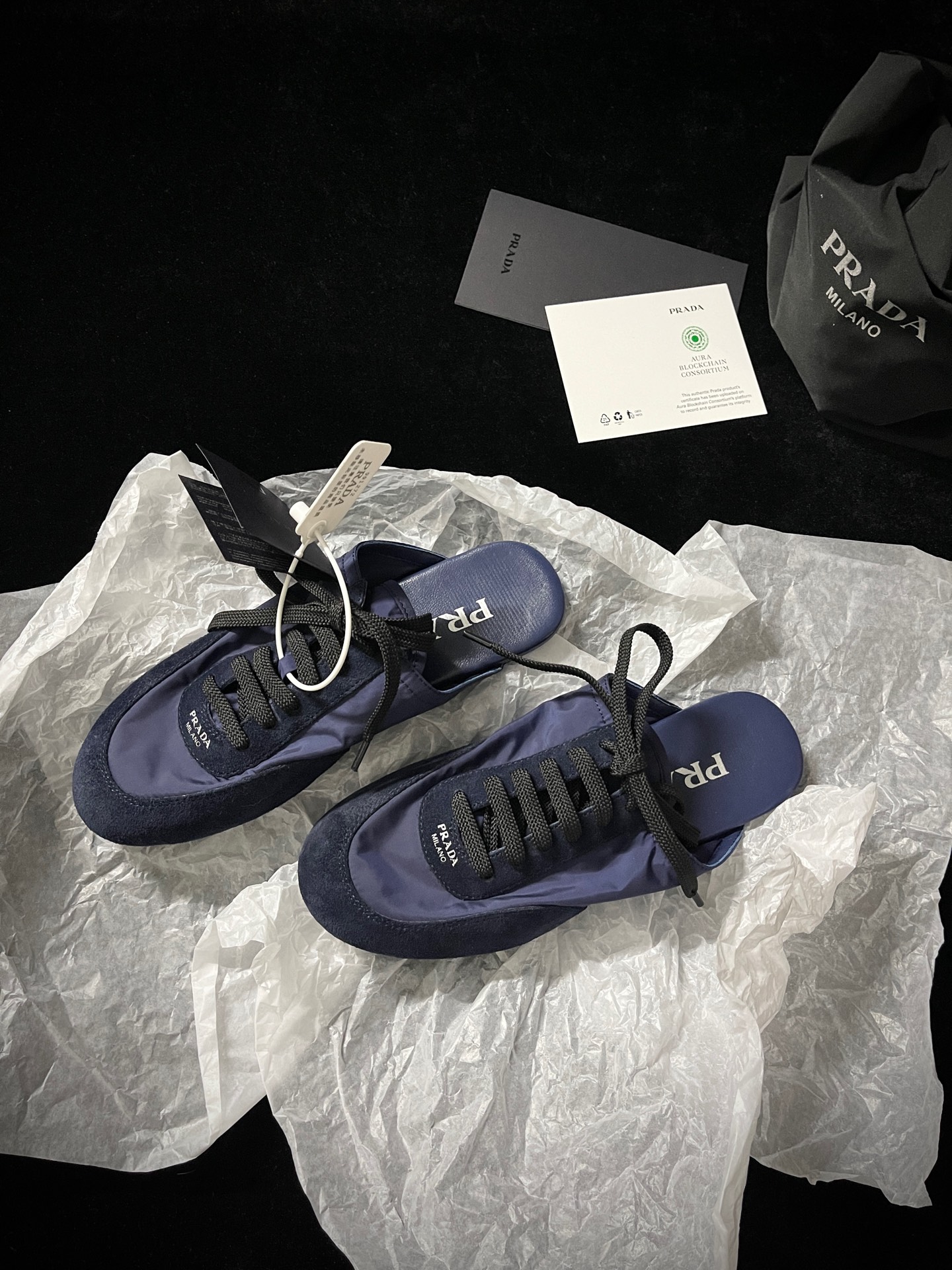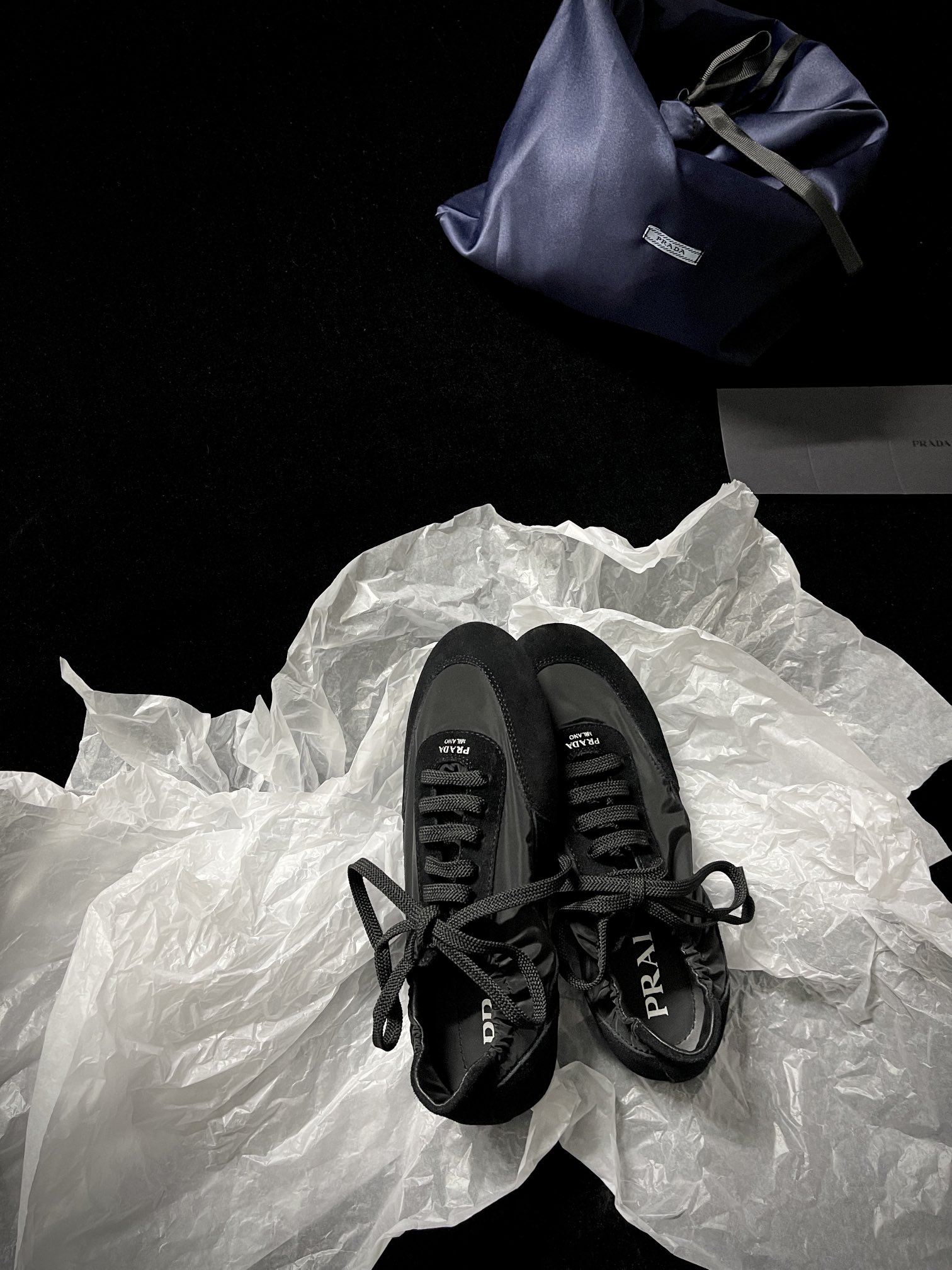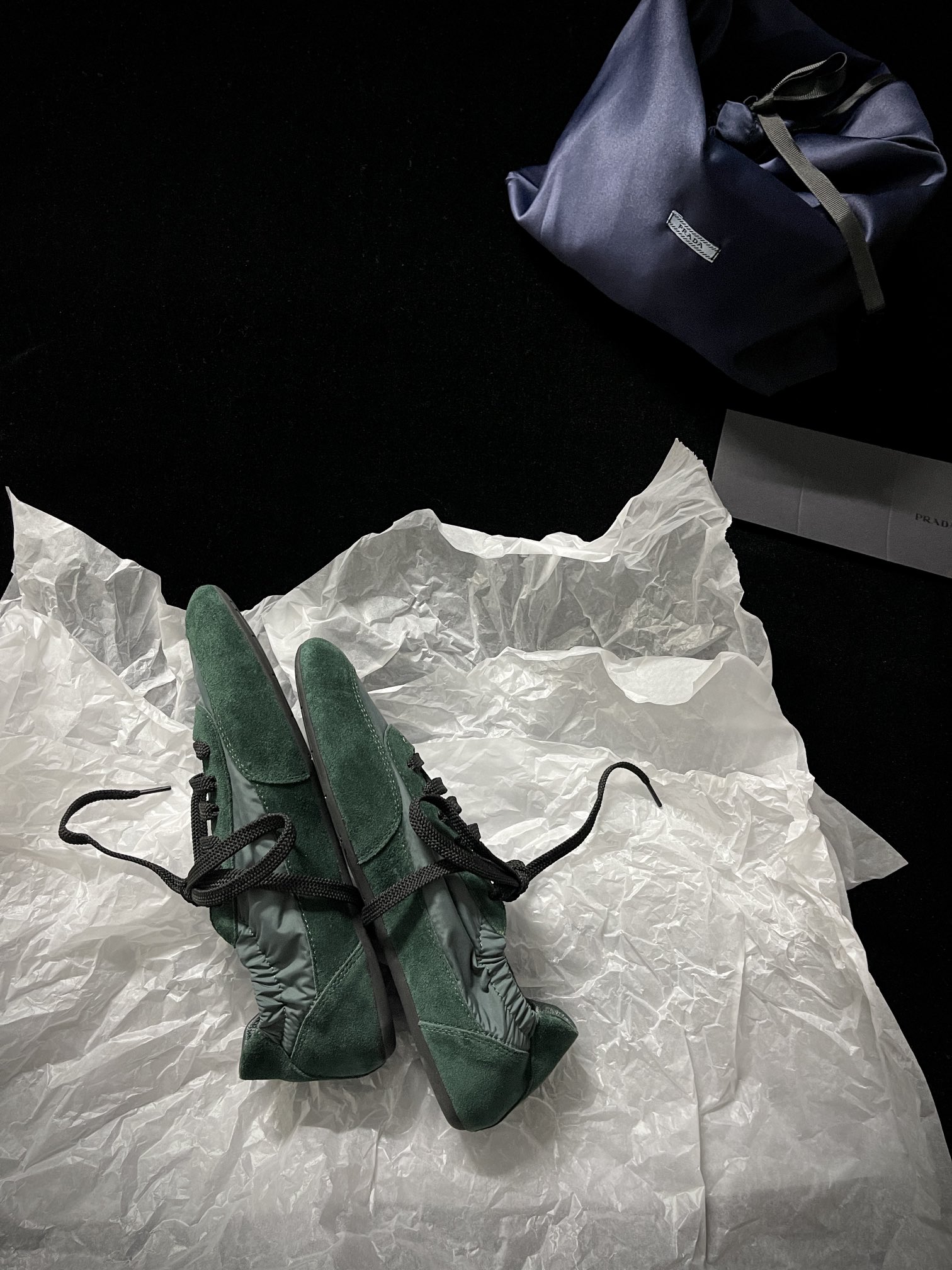 NIGO Prada Women's Suede Fabric Sheepskin Lining Low Top Lace Up Round Toe German Training Shoes #nigo75265
