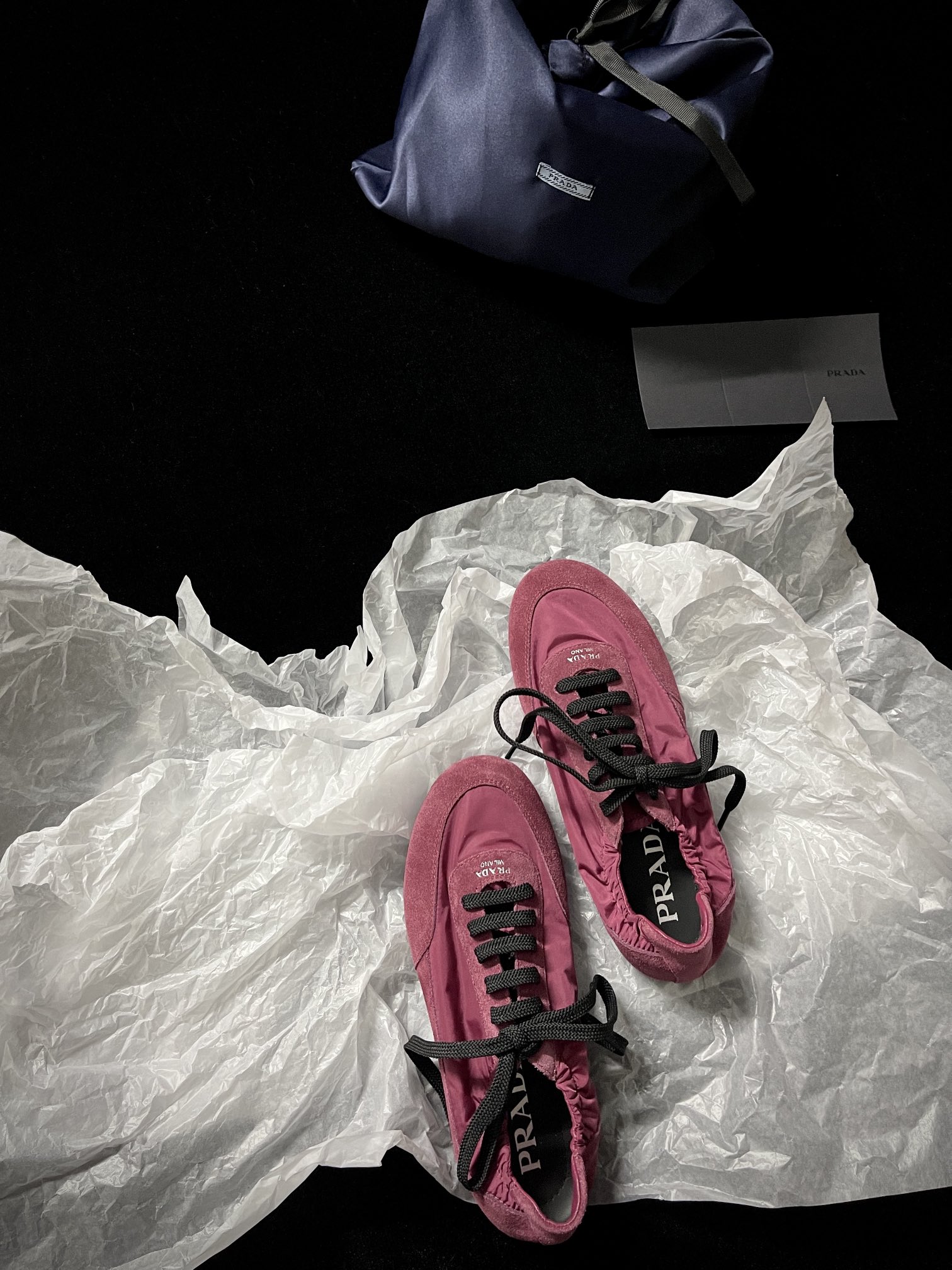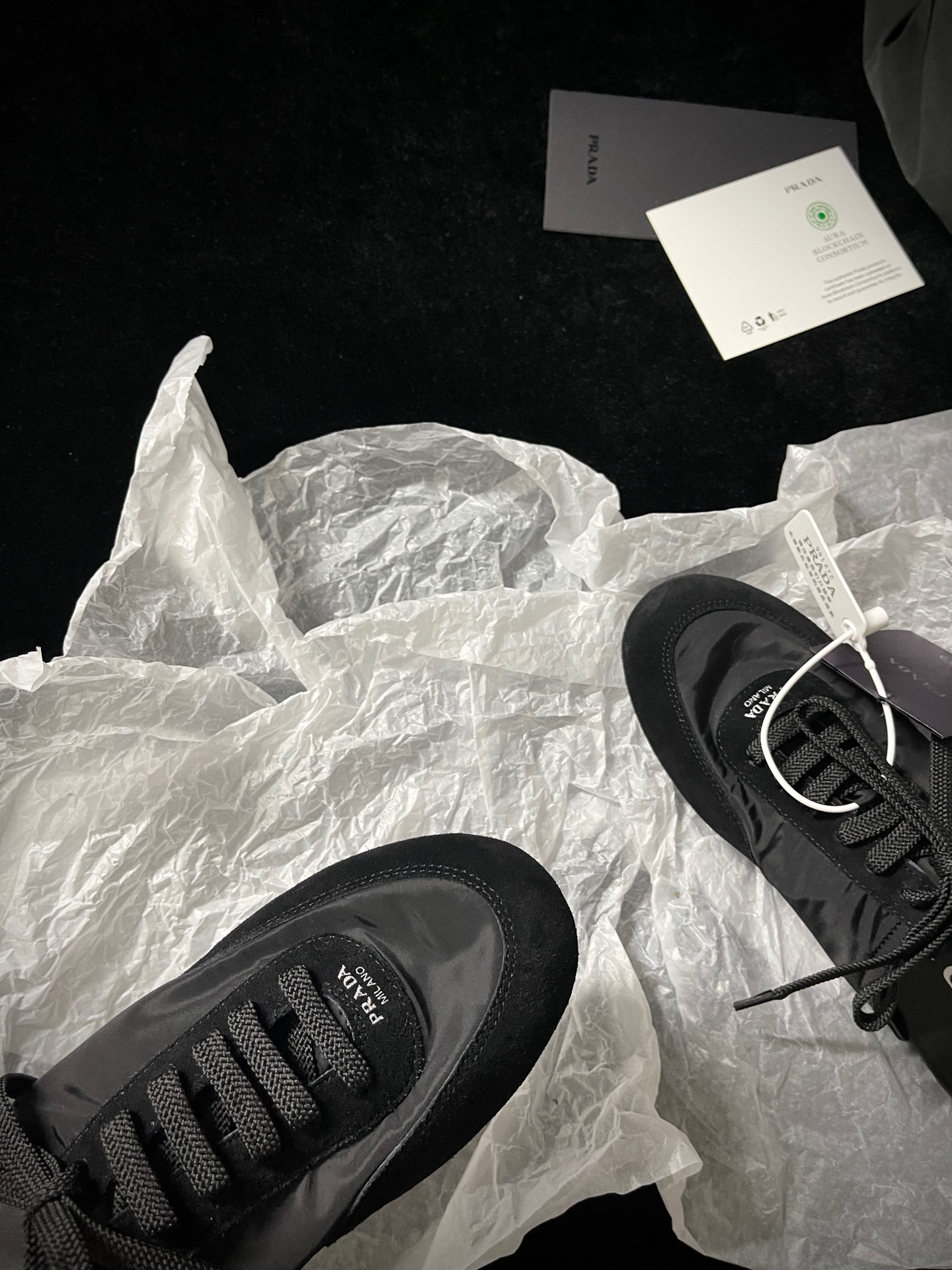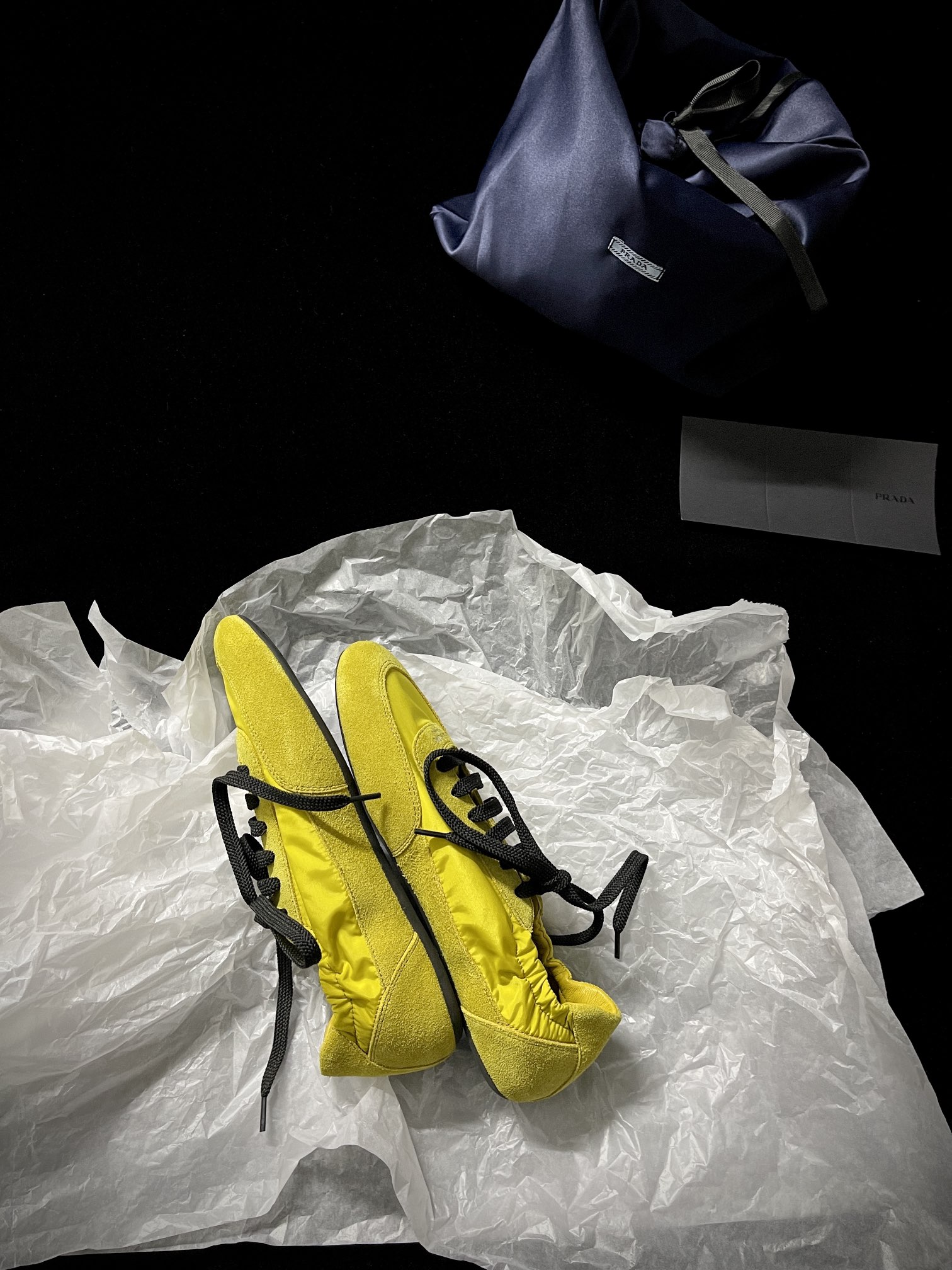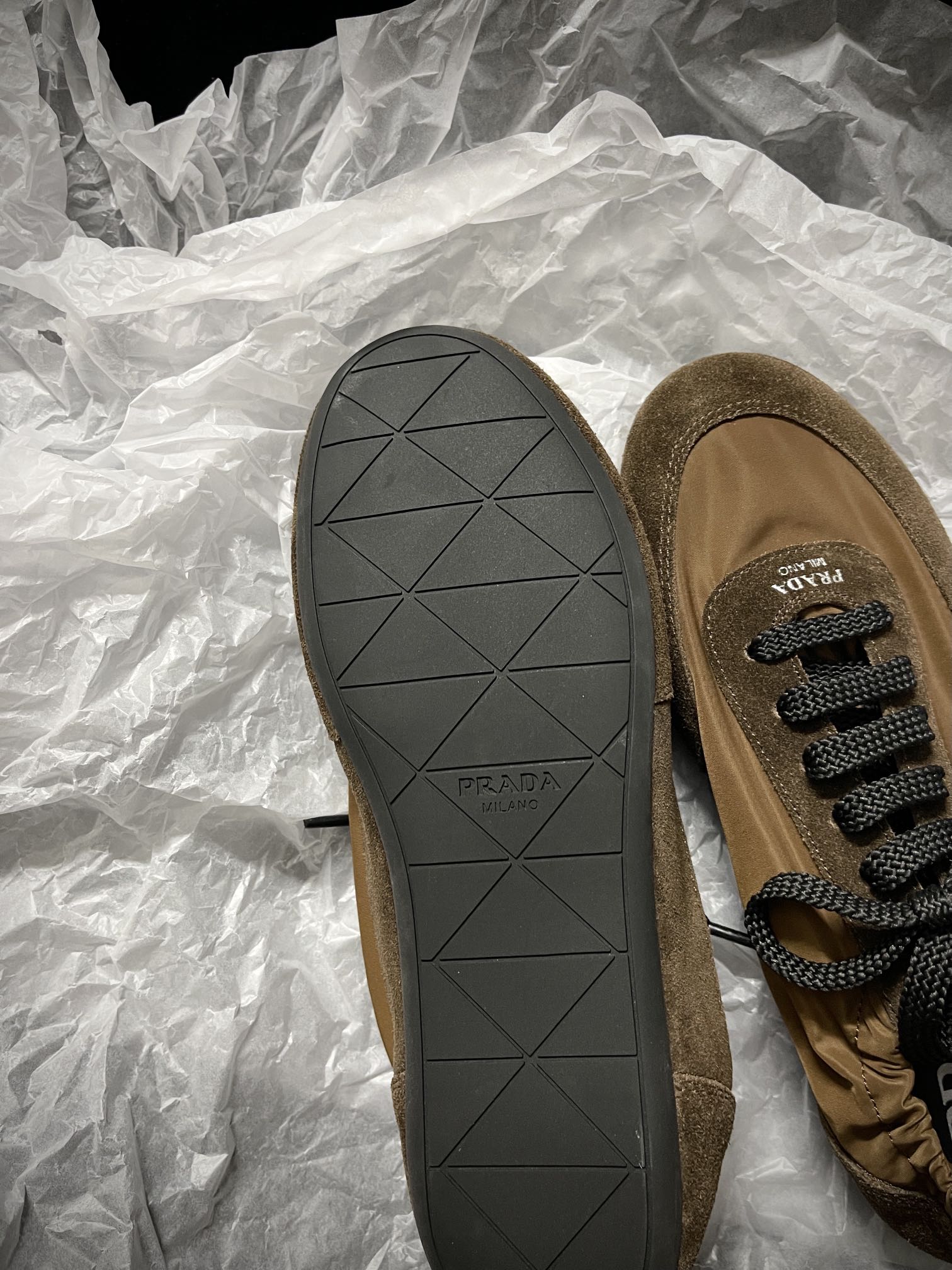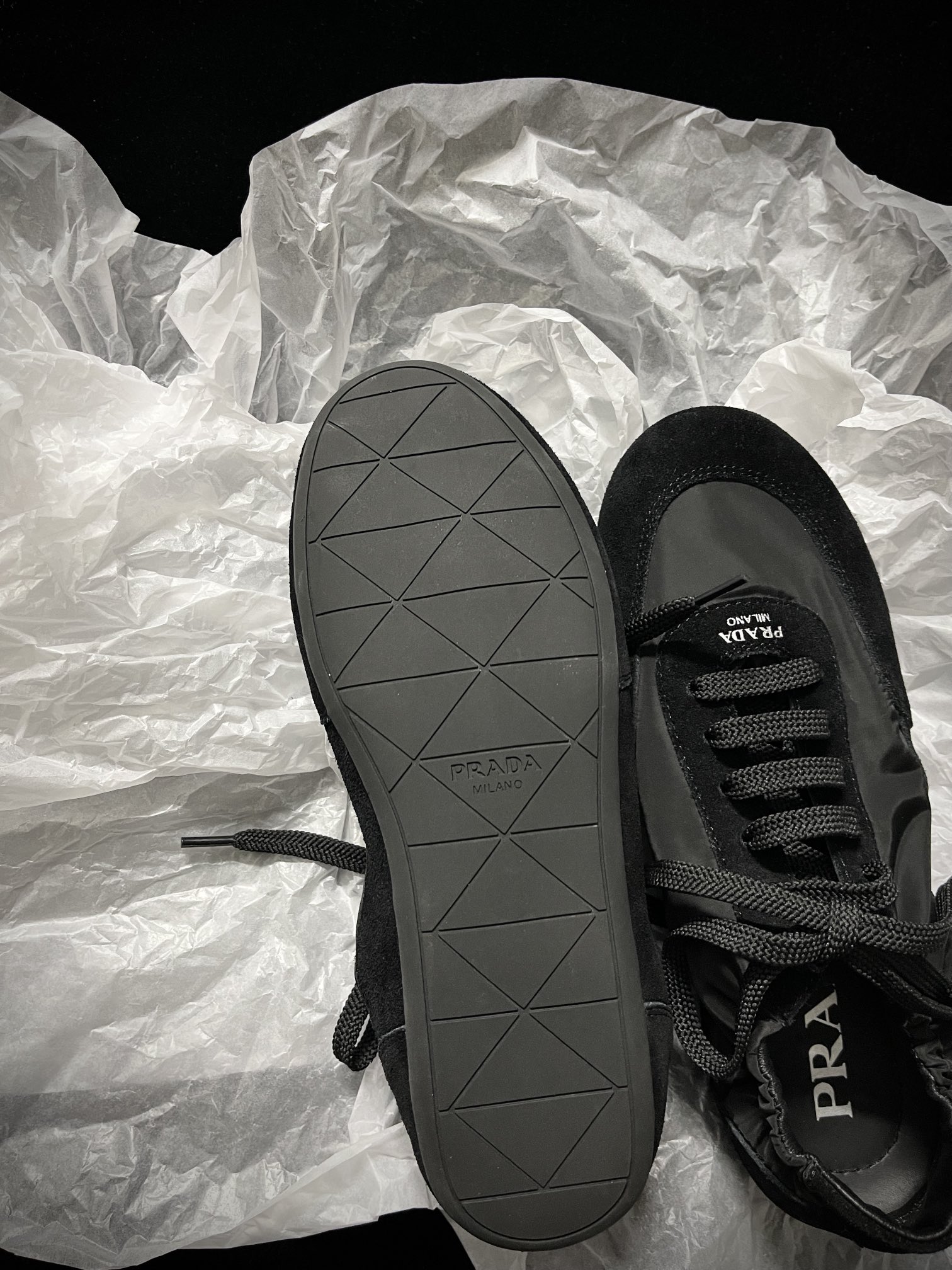 NIGO Prada Women's Suede Fabric Sheepskin Lining Low Top Lace Up Round Toe German Training Shoes #nigo75265