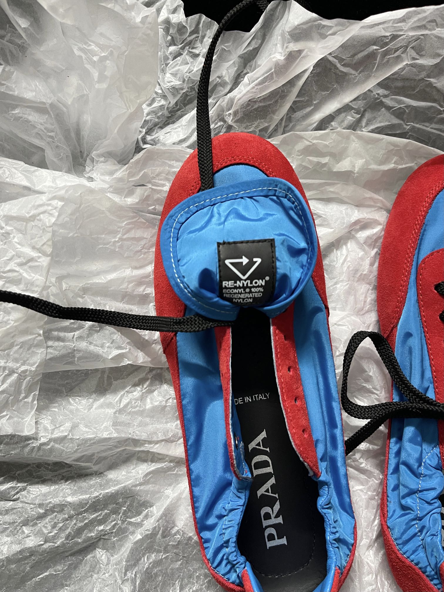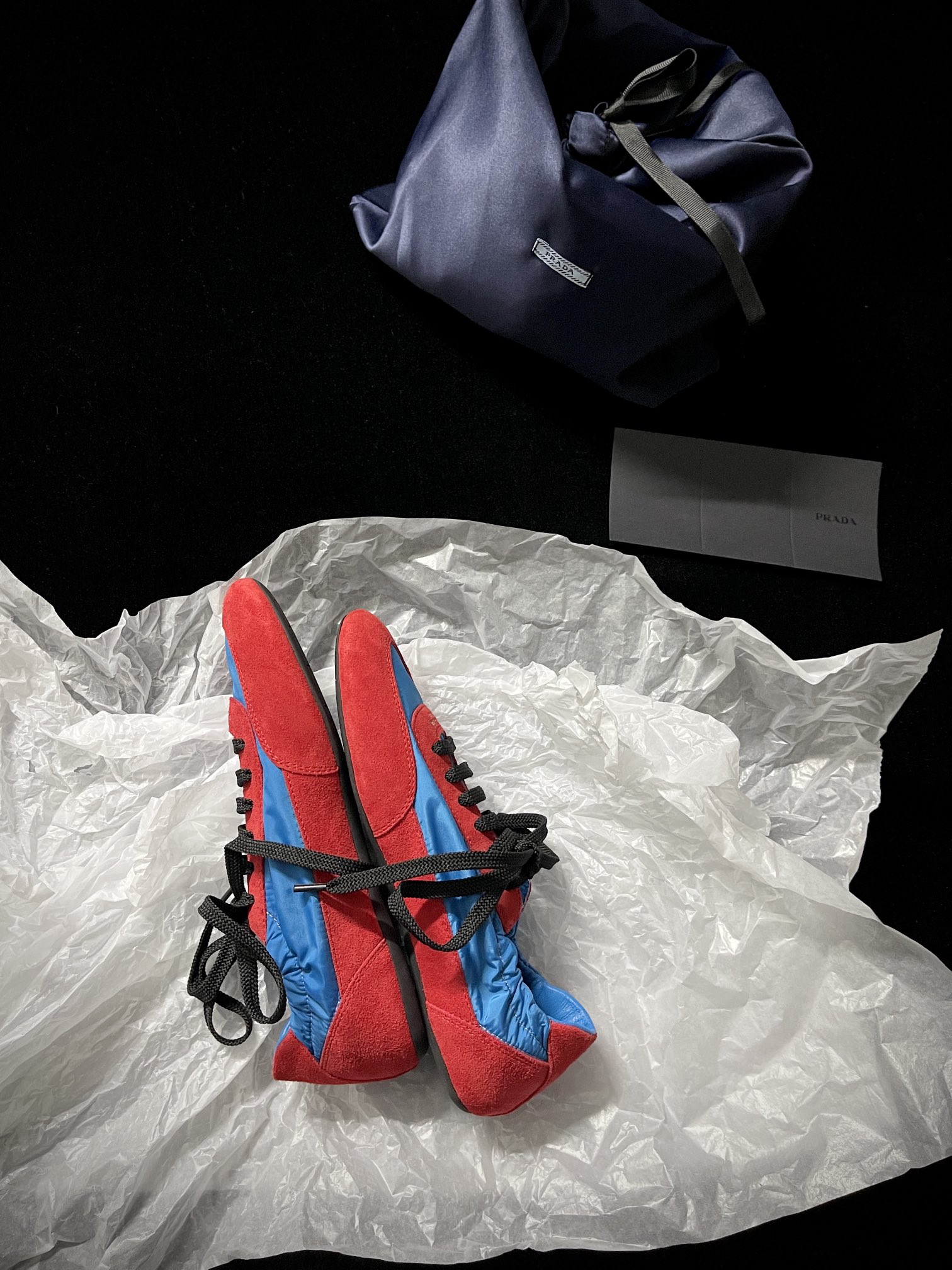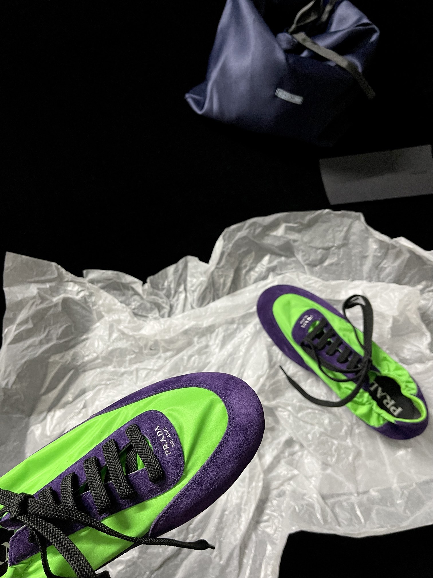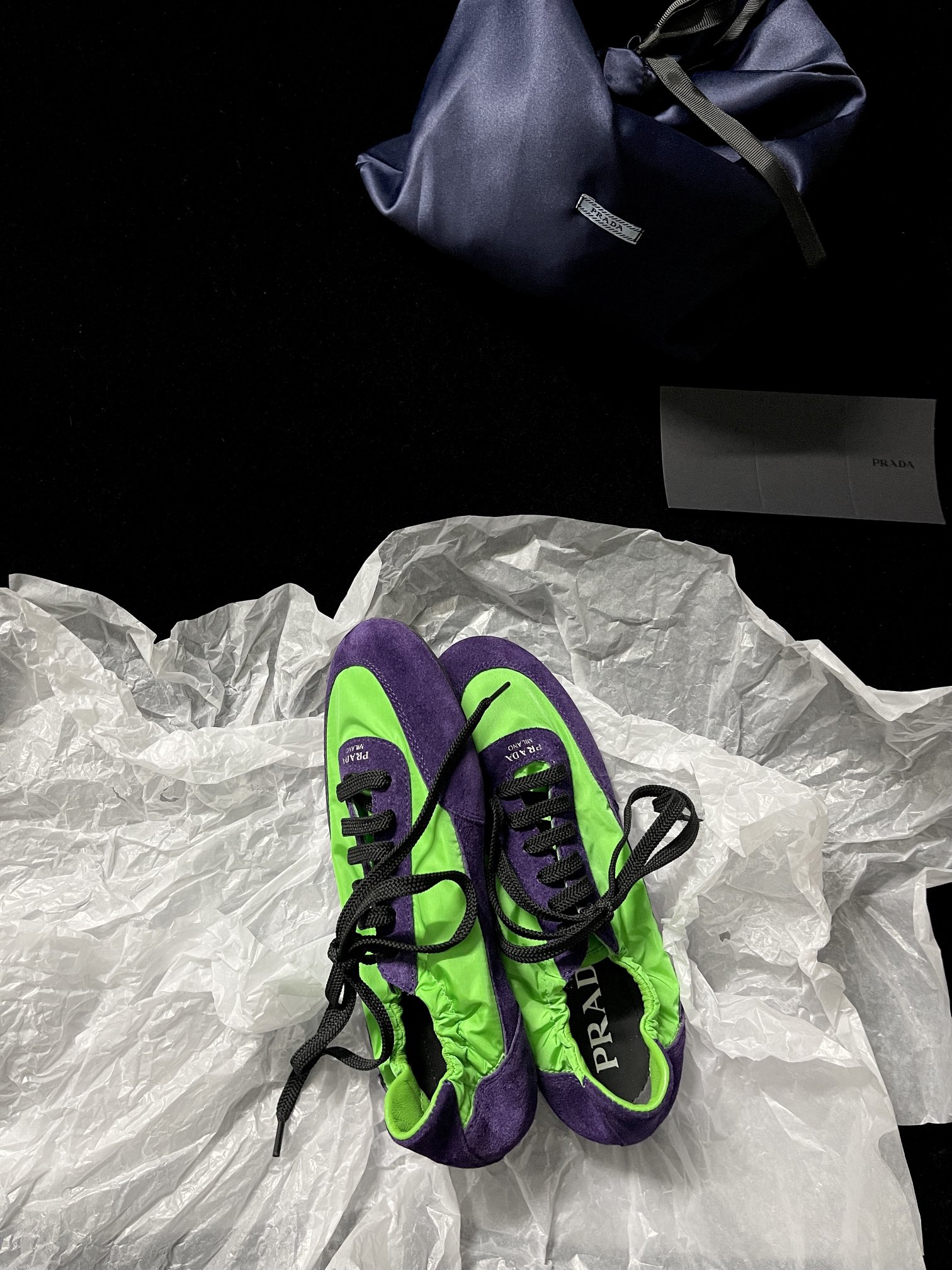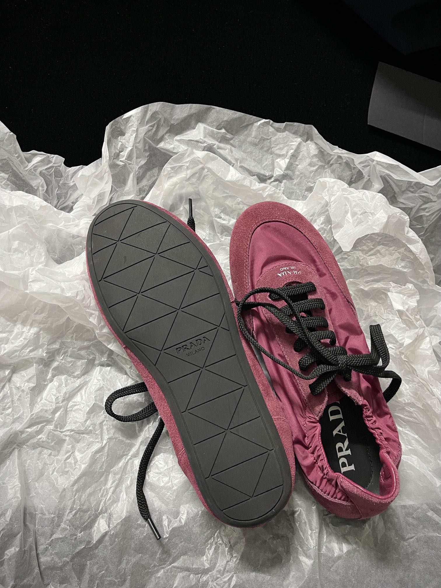 NIGO Prada Women's Suede Fabric Sheepskin Lining Low Top Lace Up Round Toe German Training Shoes #nigo75265