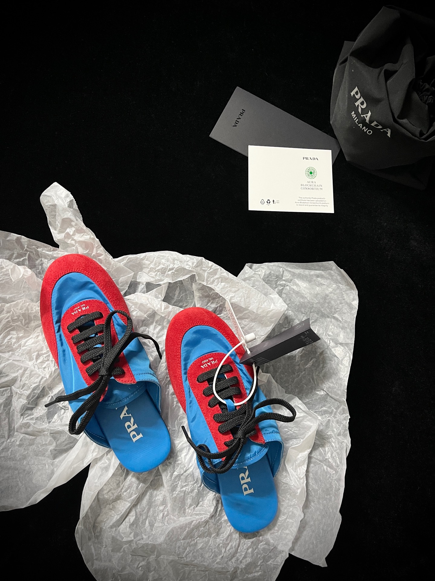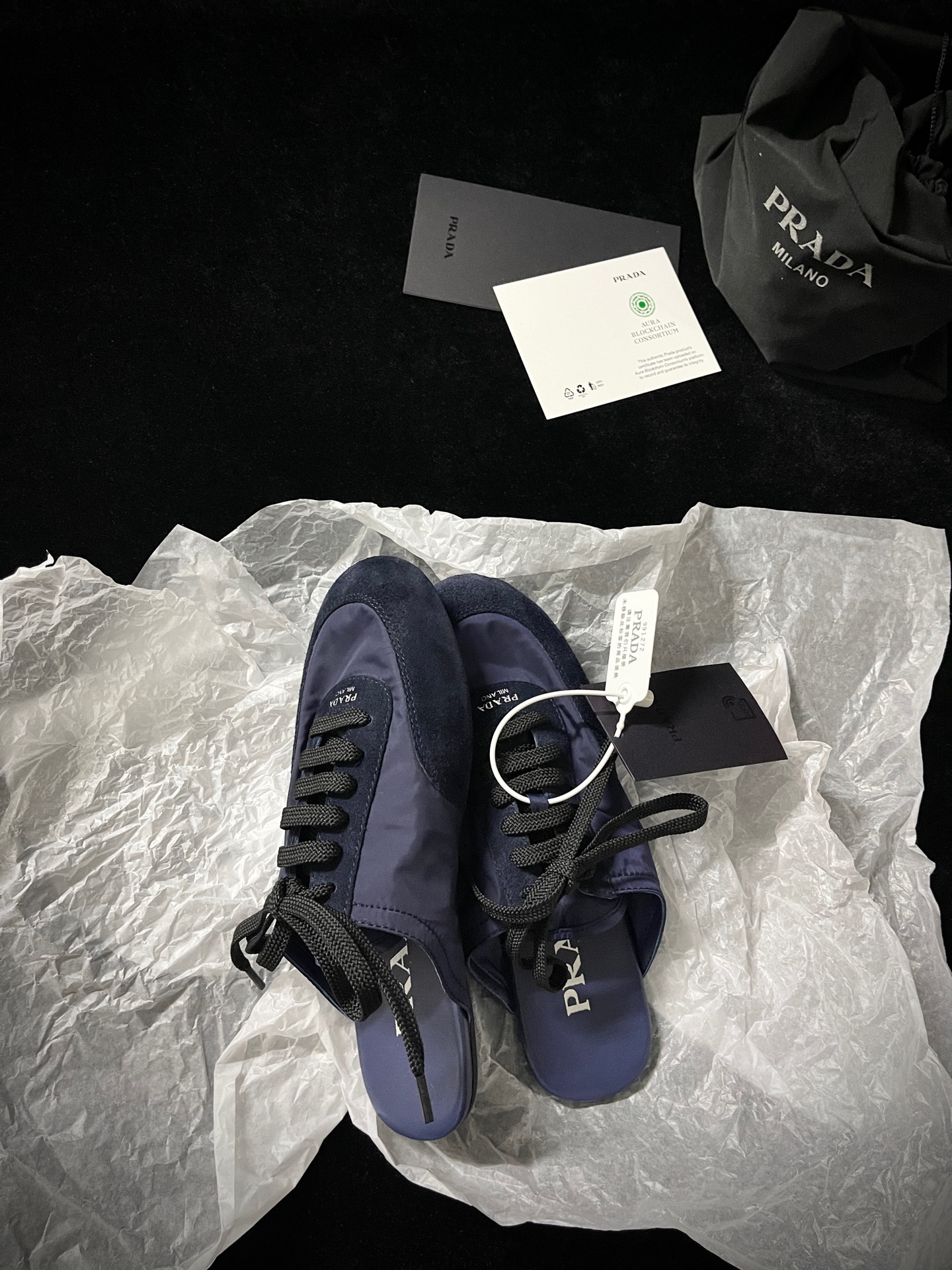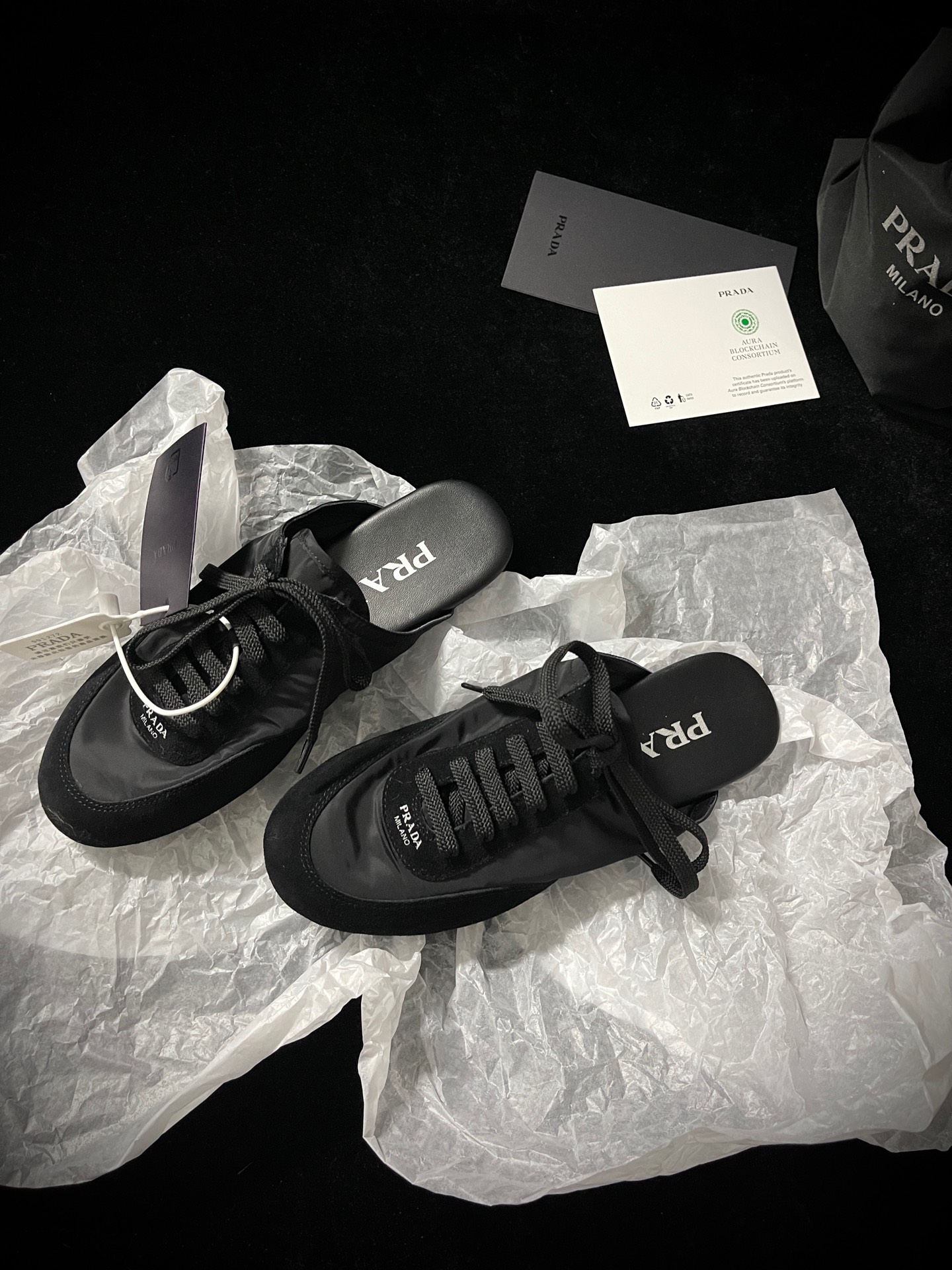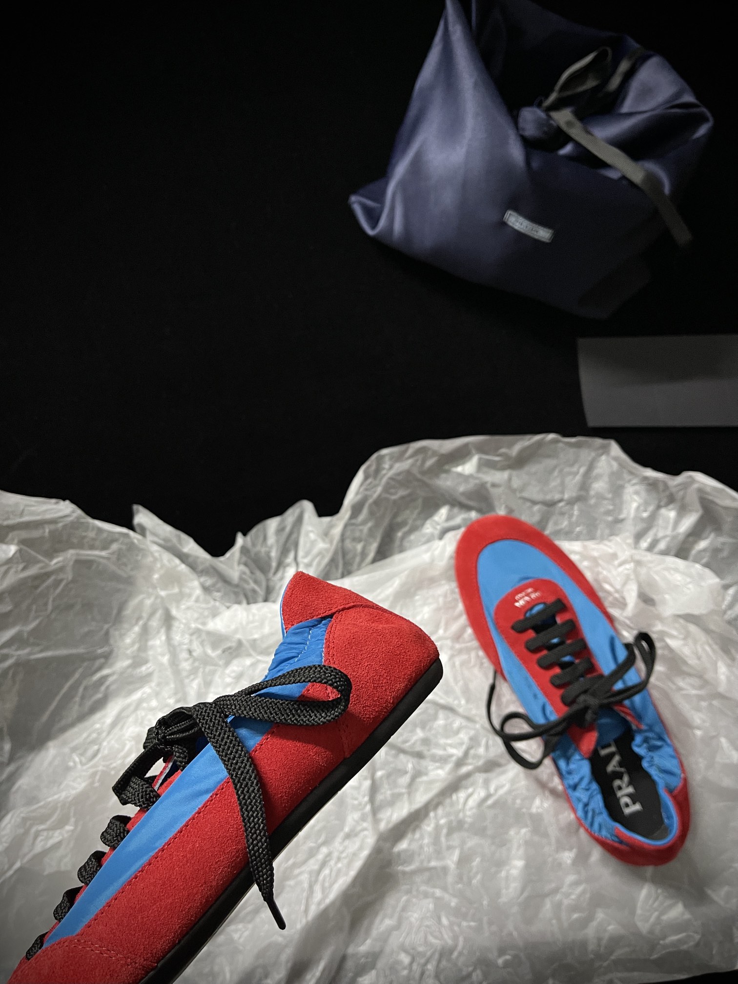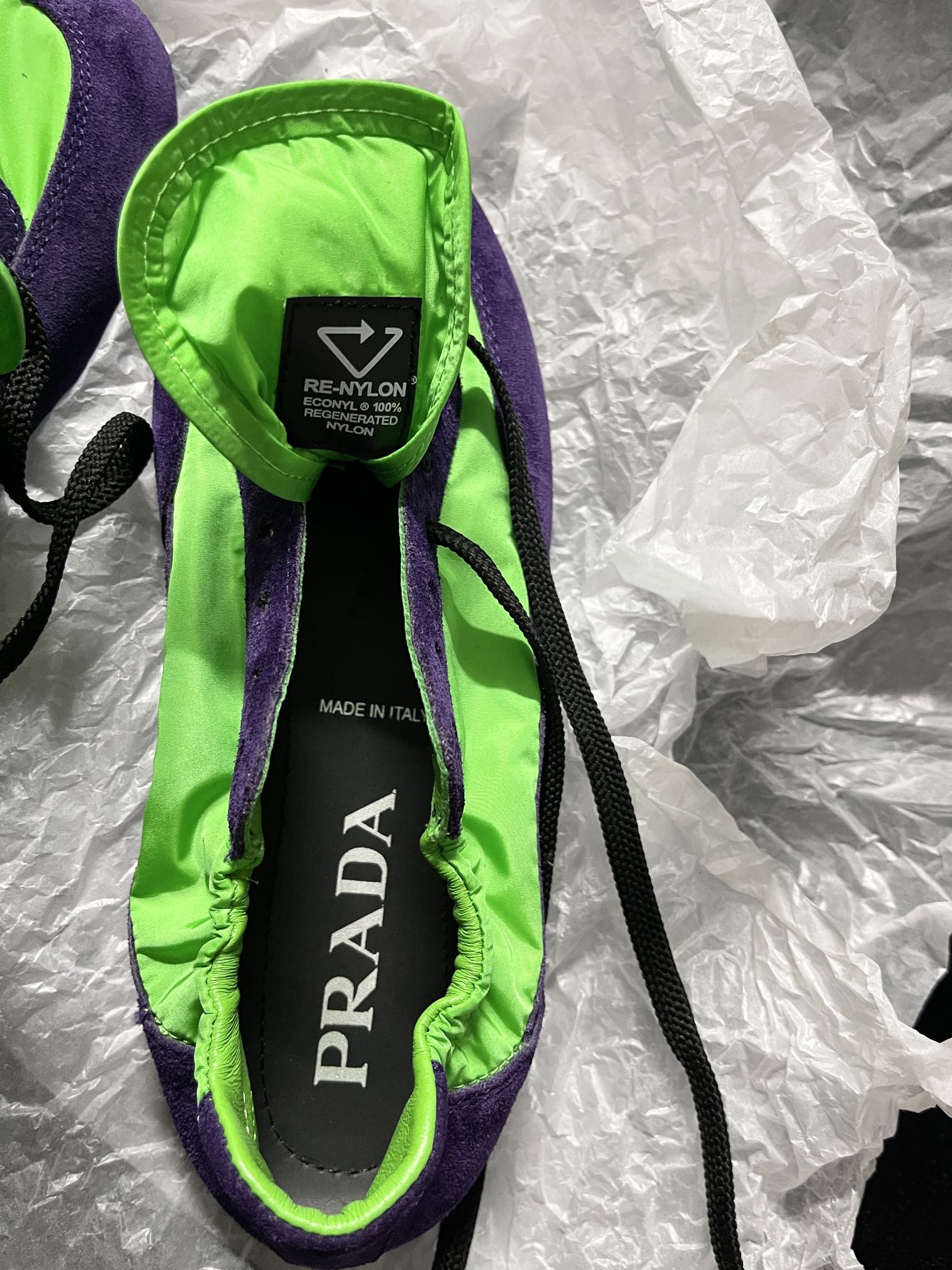 NIGO Prada Women's Suede Fabric Sheepskin Lining Low Top Lace Up Round Toe German Training Shoes #nigo75265