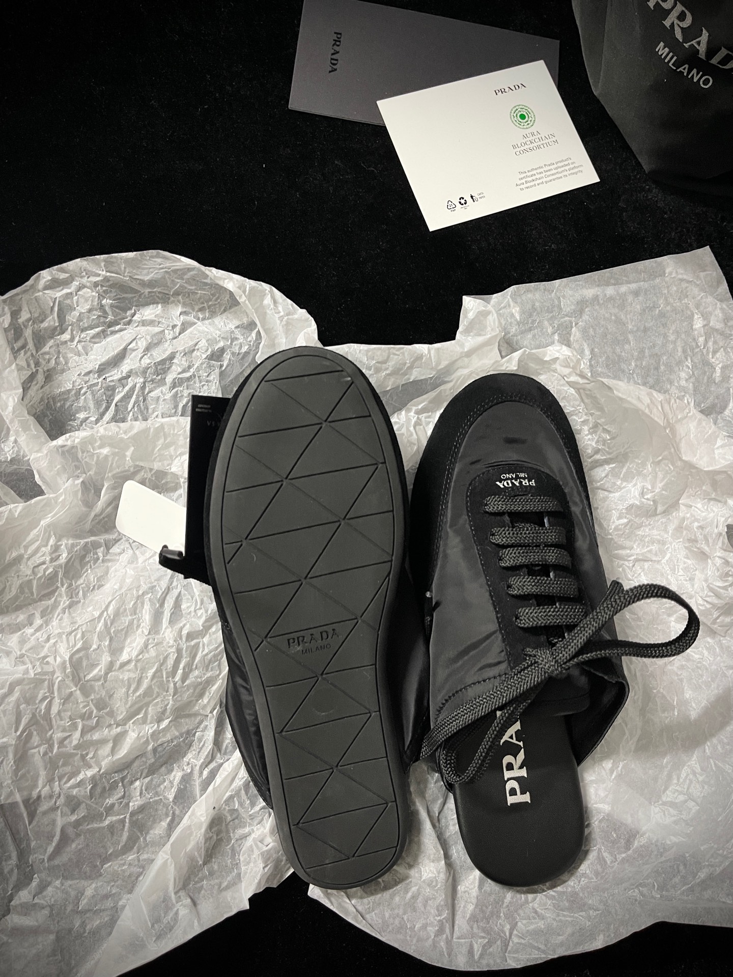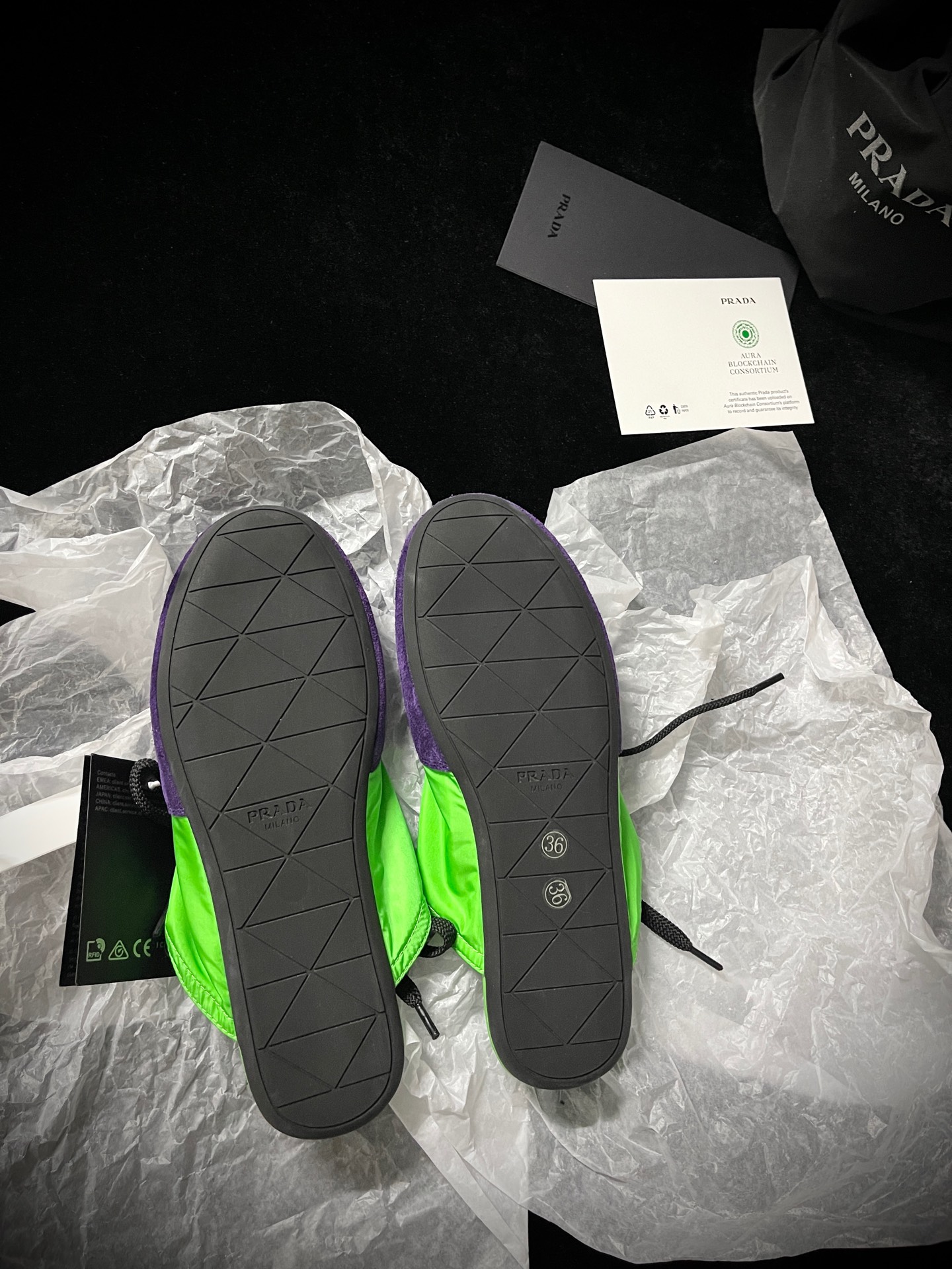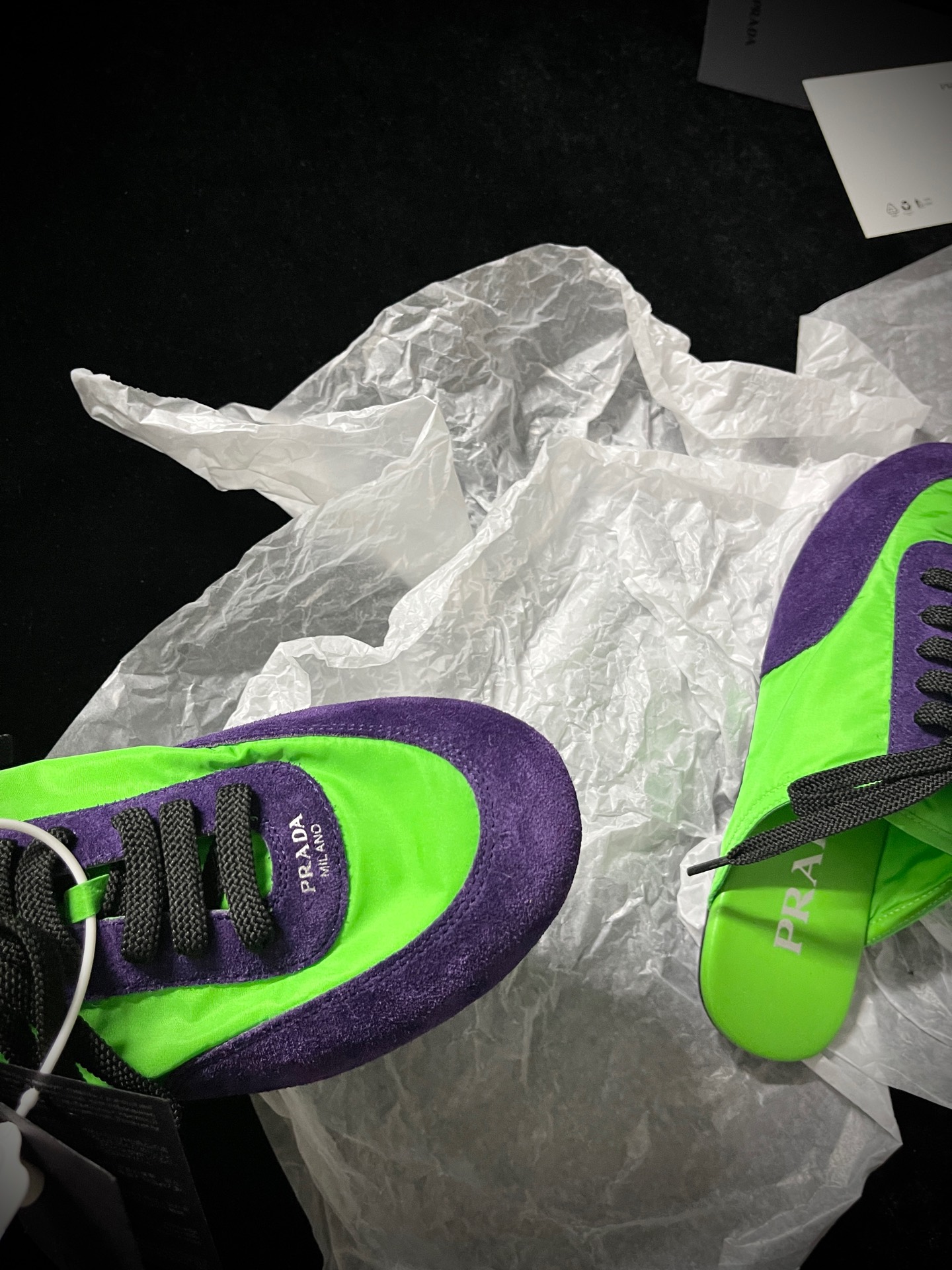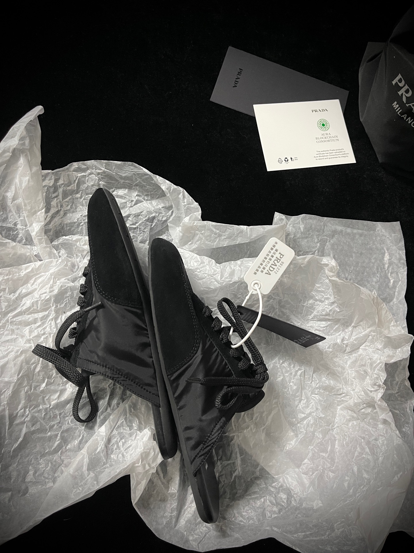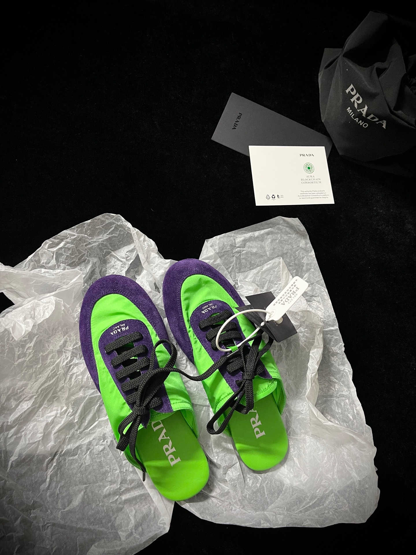 NIGO Prada Women's Suede Fabric Sheepskin Lining Low Top Lace Up Round Toe German Training Shoes #nigo75265