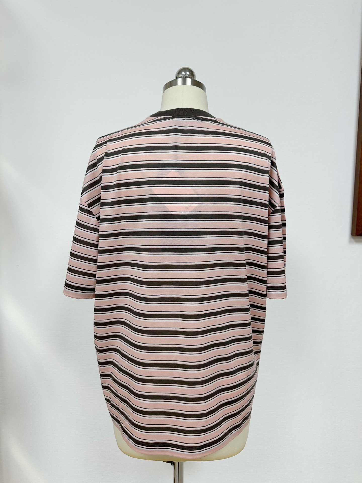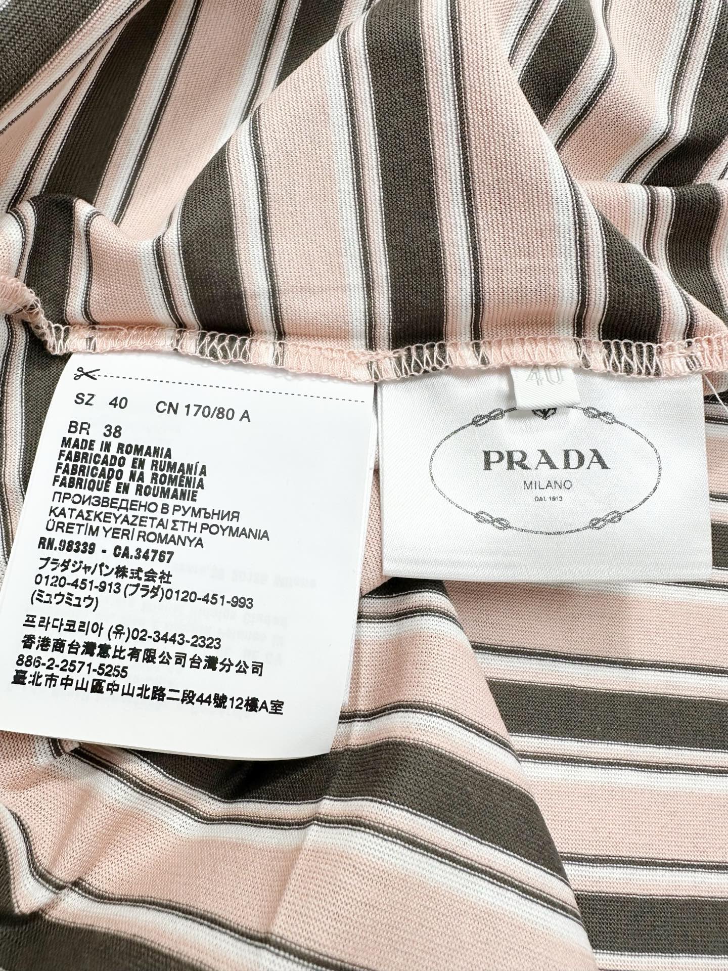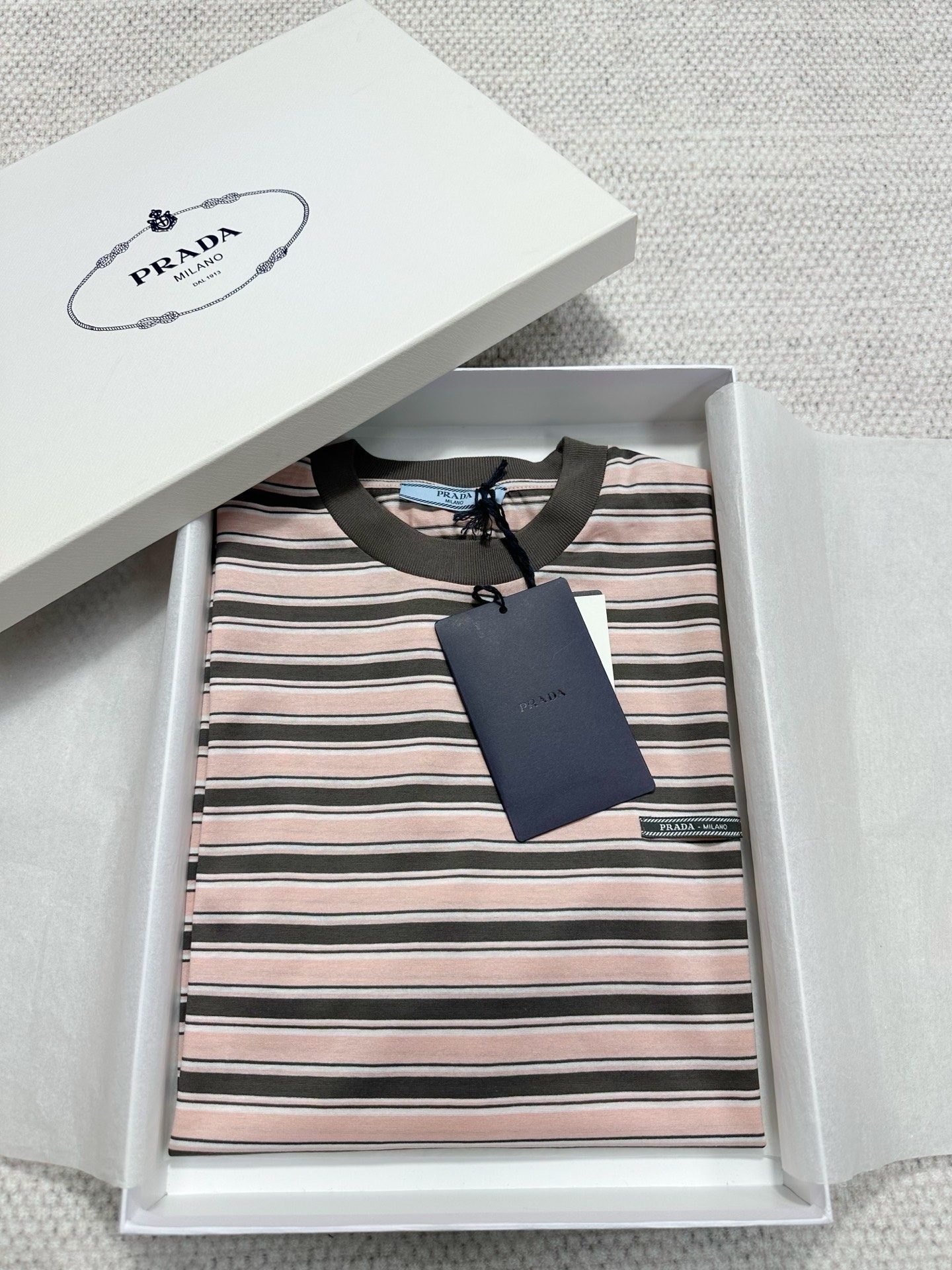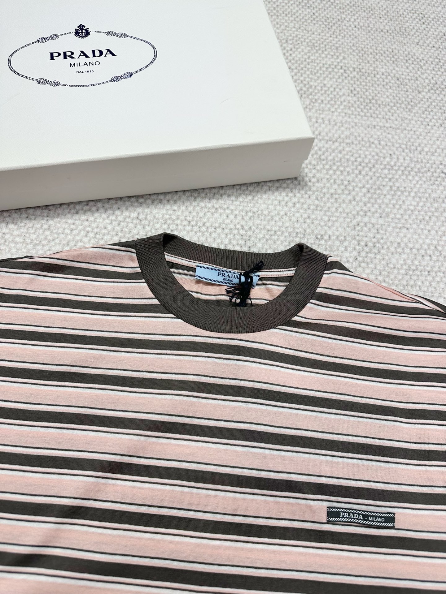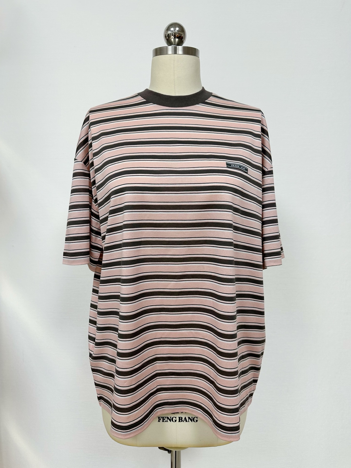 NIGO Prada Women's Summer Colour Block Stripe Print Round Neck Cotton Short Sleeve T-Shirt #nigo76978