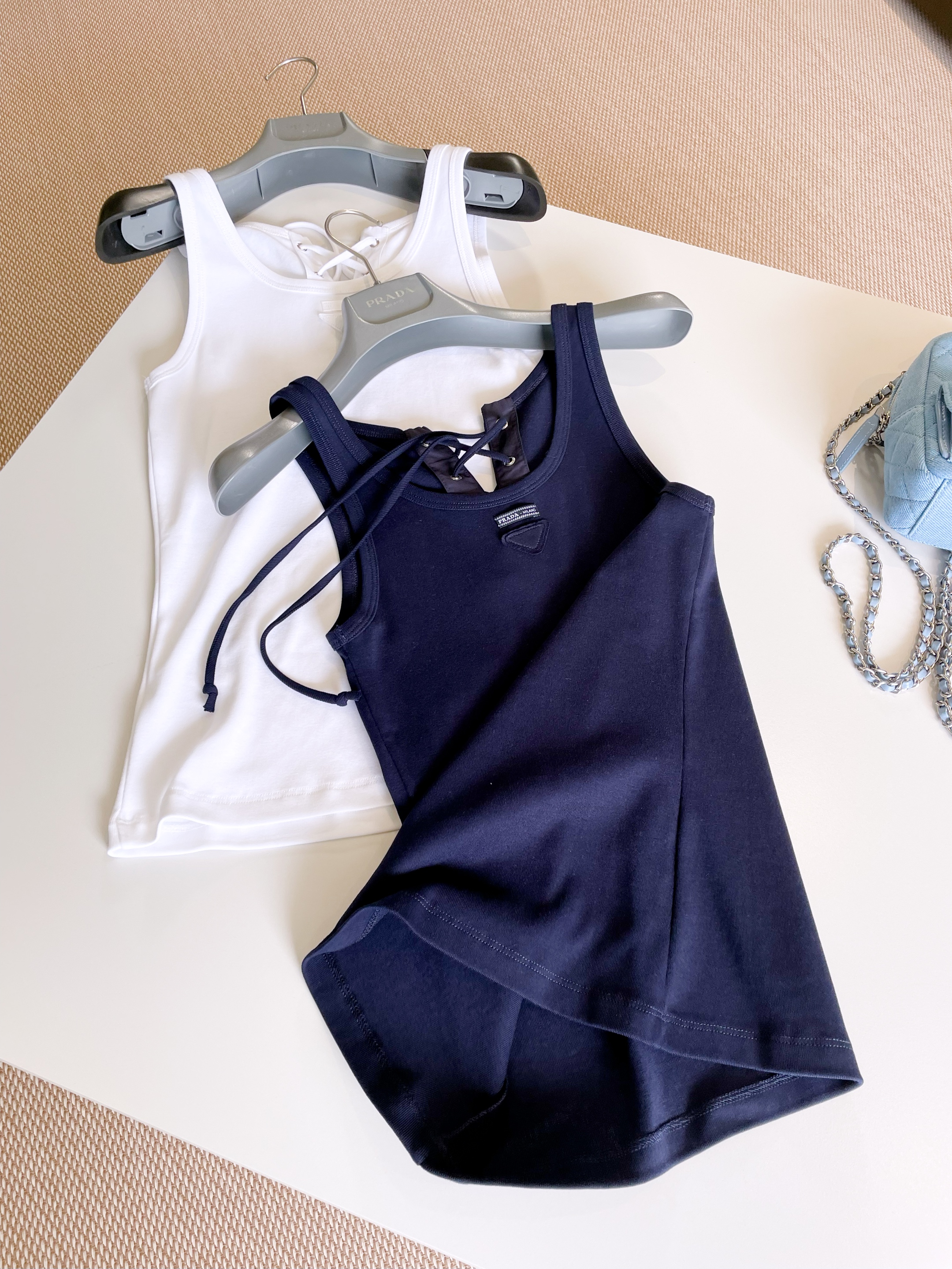NIGO Prada Women's Summer Solid Colour Tie Stretch Knit Tank Top #nigo76794