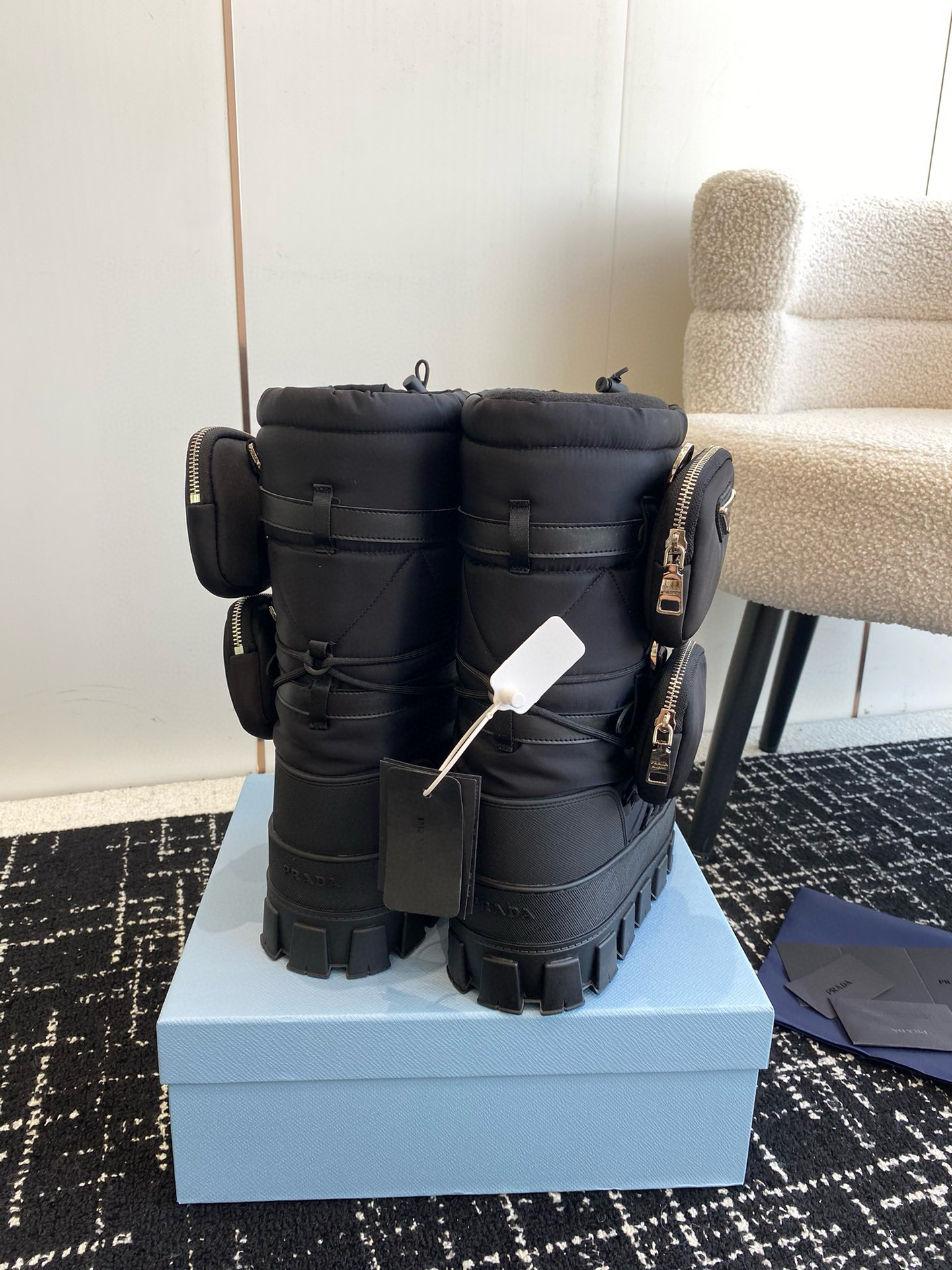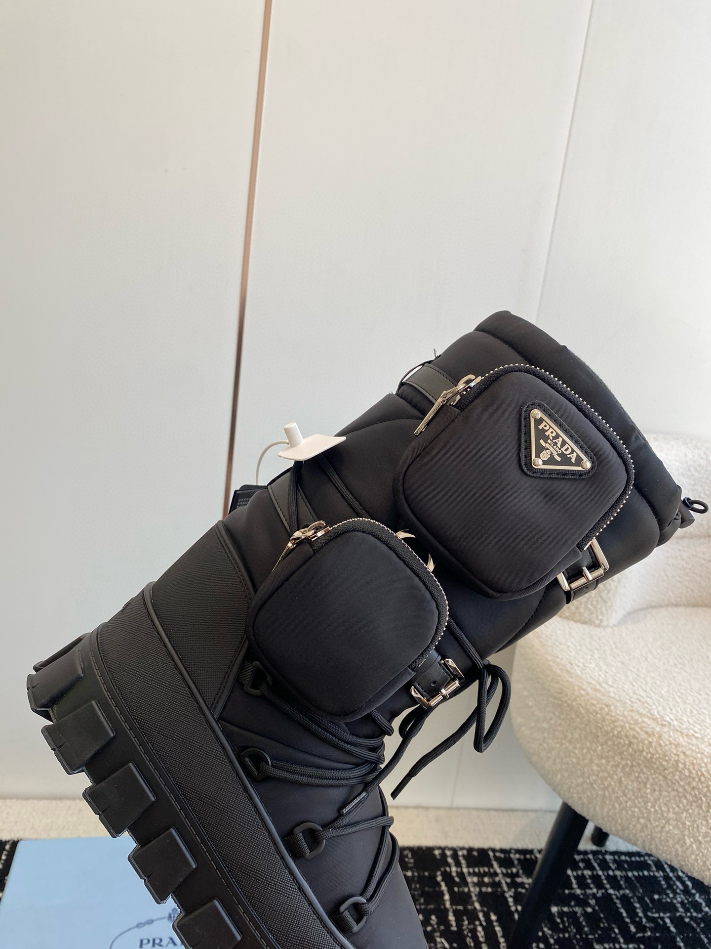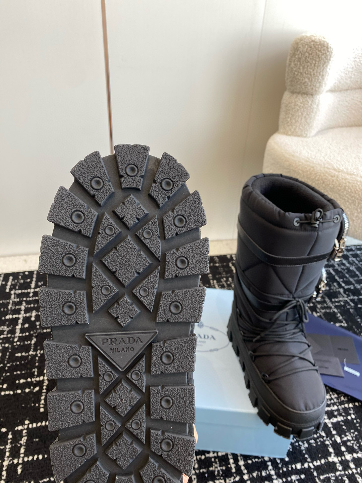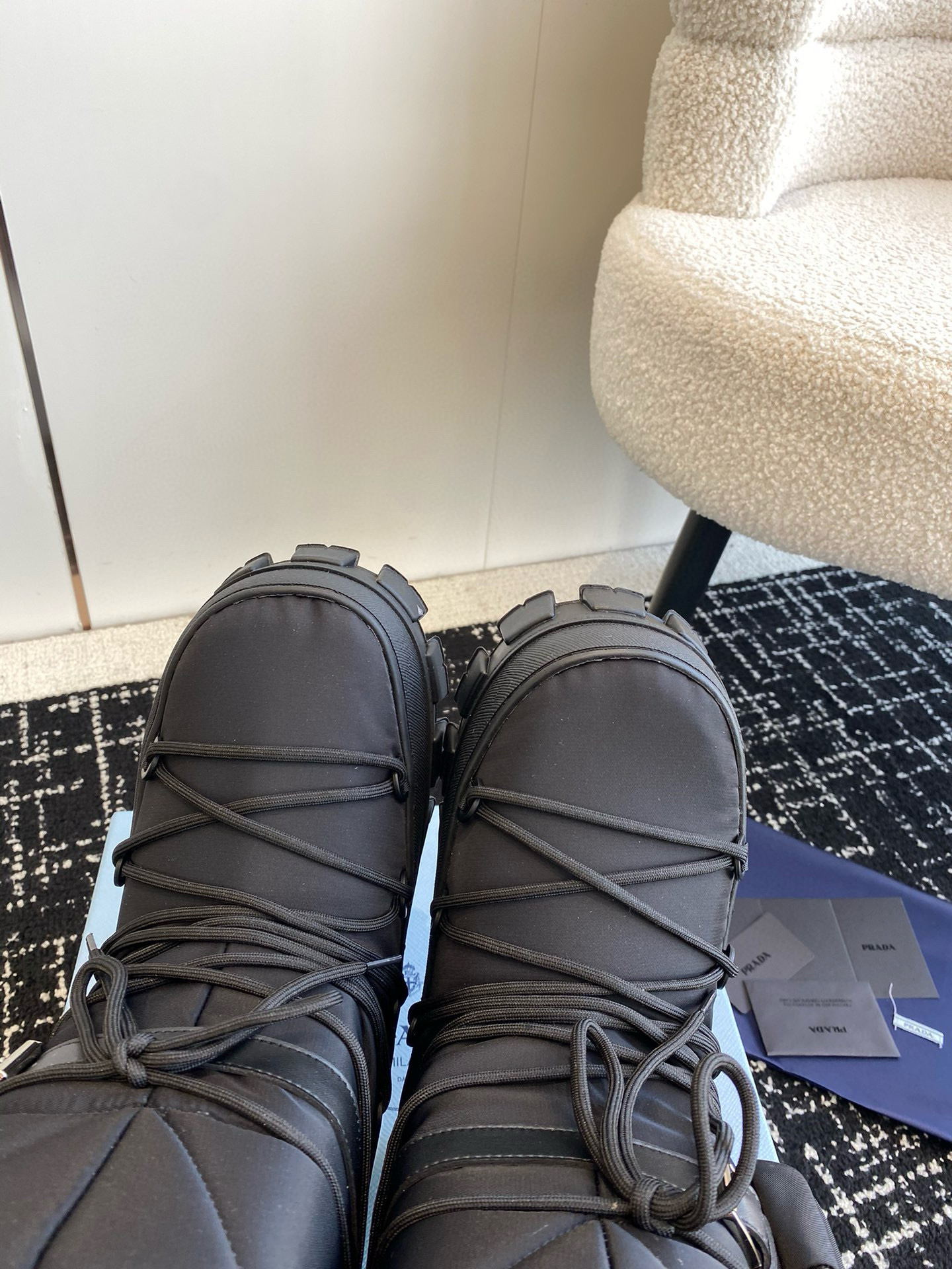 NIGO Prada Women's Winter Logo Nylon Down Snow Boots Thickened Warm Thick Bottom Lacing Boots Shoes #nigo71336