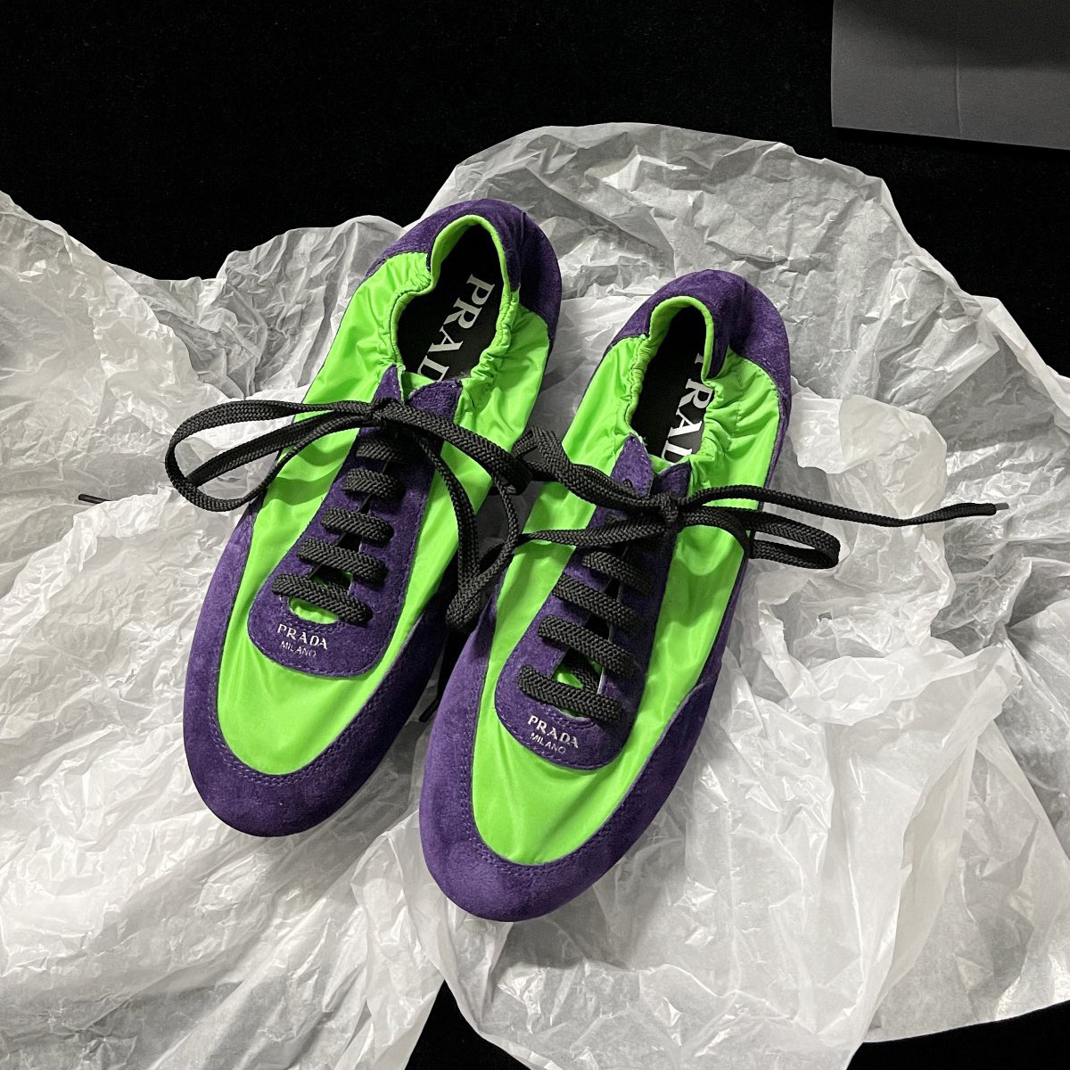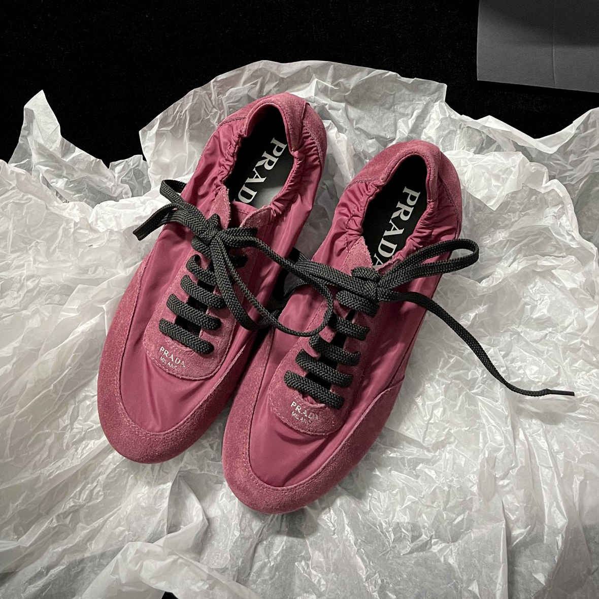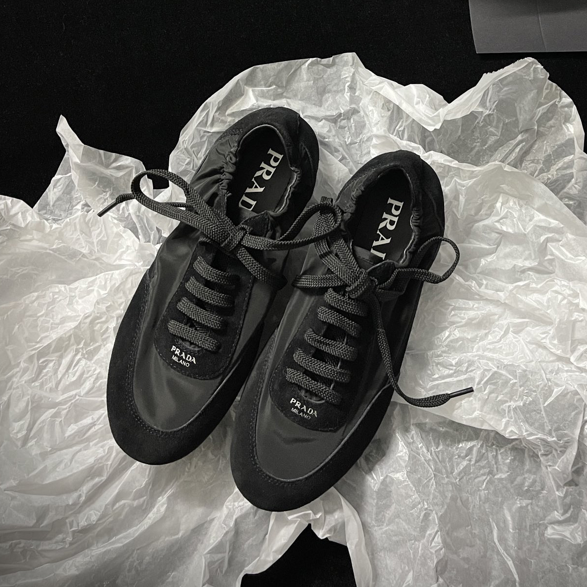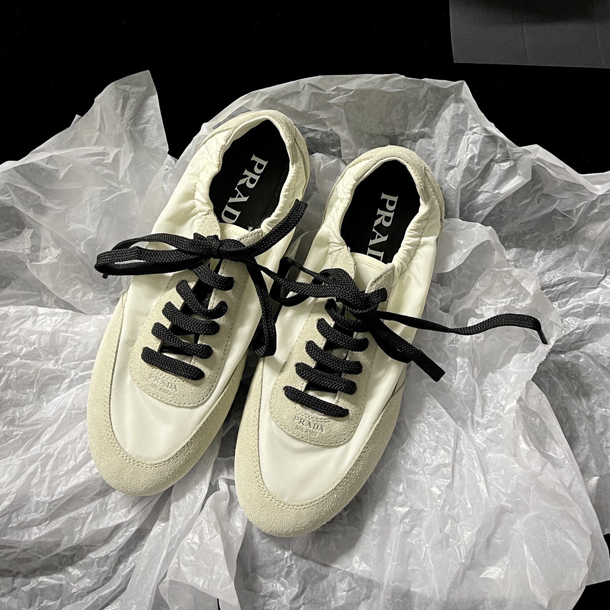 NIGO Prada Women's Suede Fabric Sheepskin Lining Low Top Lace Up Round Toe German Training Shoes #nigo75265