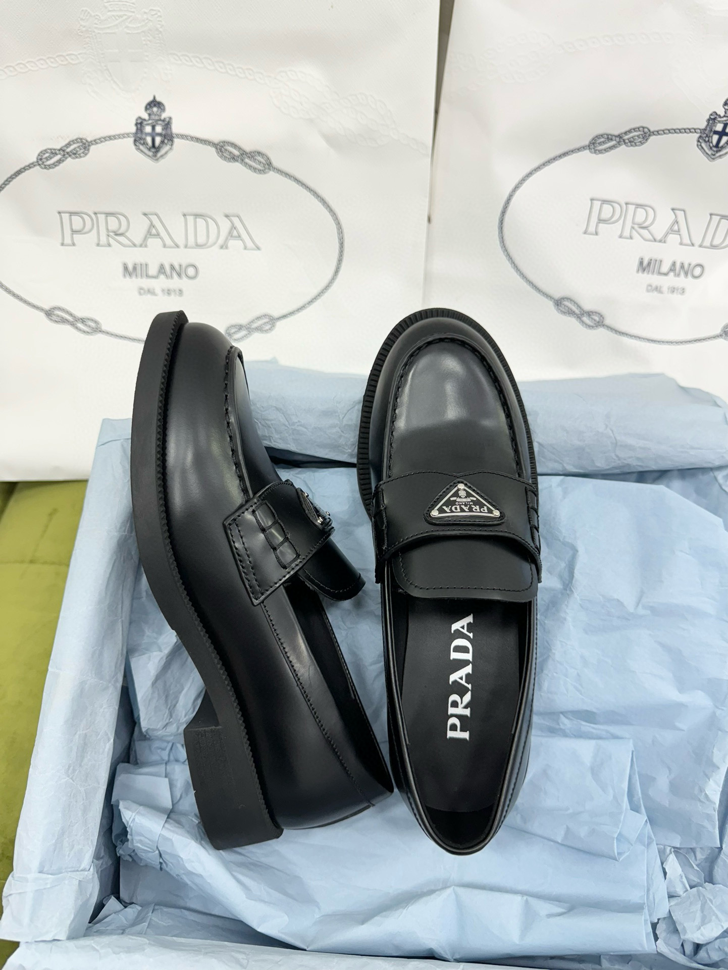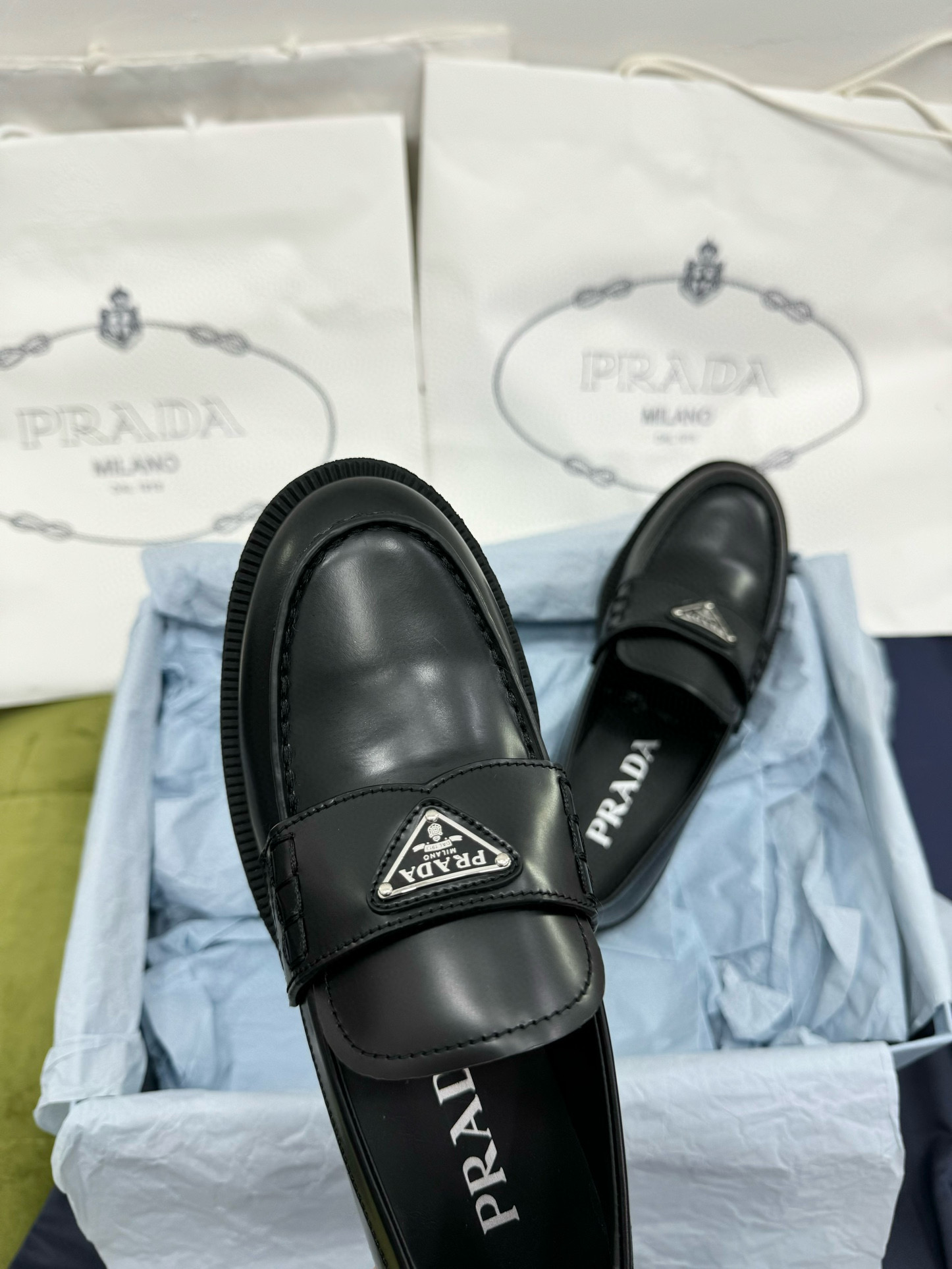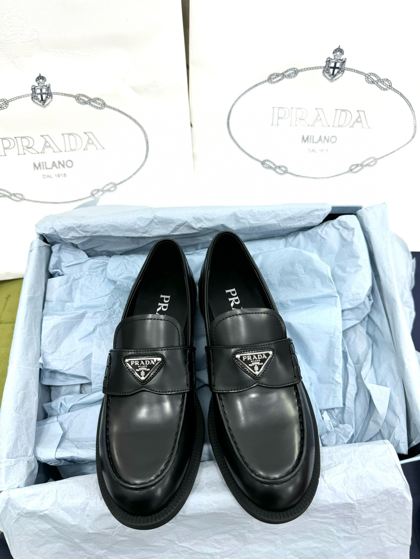 NIGO Prada Women's Four Season Glossy Leather Loafers With Cowhide Logo And Comfortable Leather Shoes #nigo75426