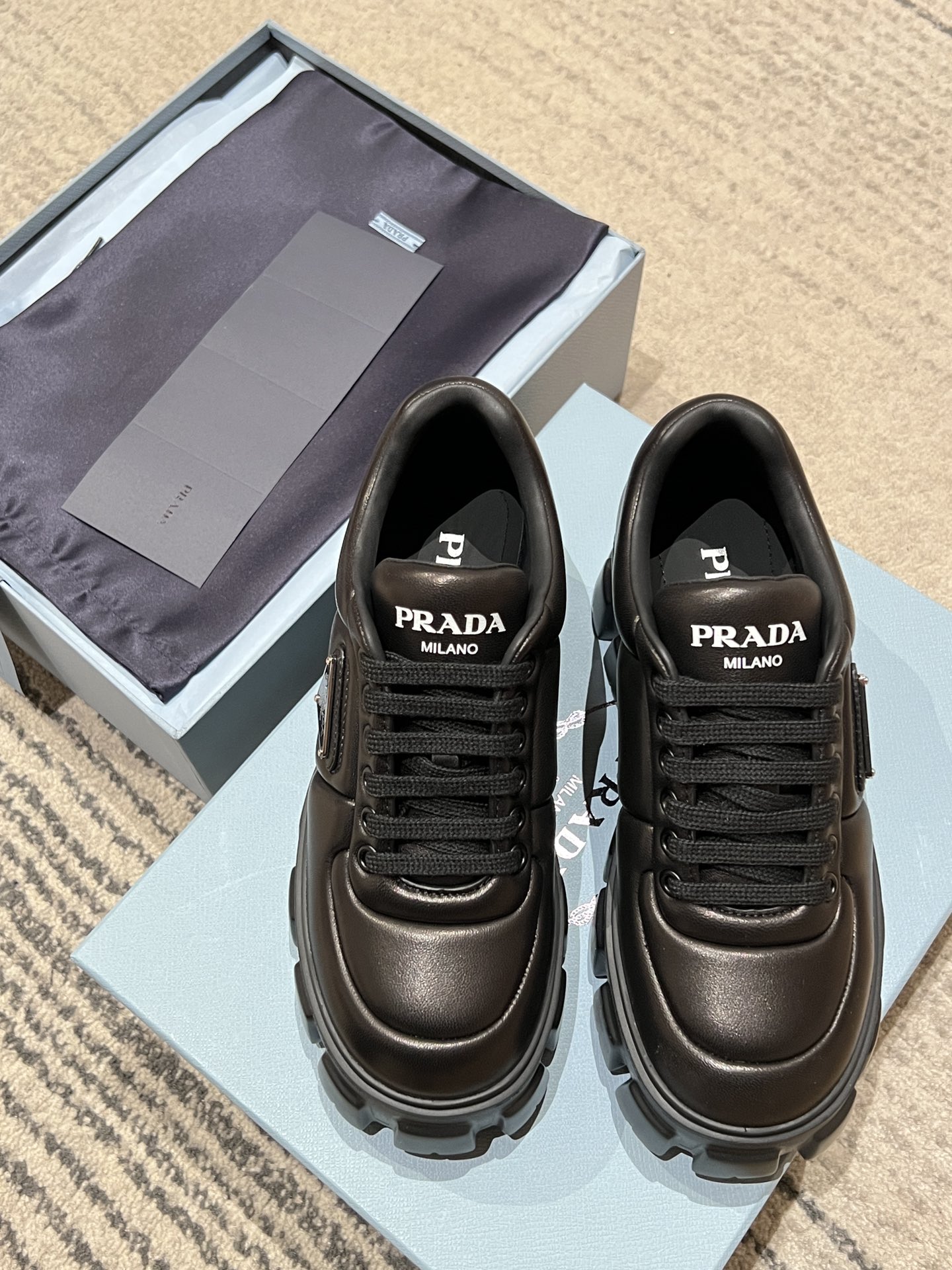 NIGO Prada Women's Autumn and Winter Triangle Label Logo Solid Color Sheepskin Thick Sole Loafers Shoes #nigo75448