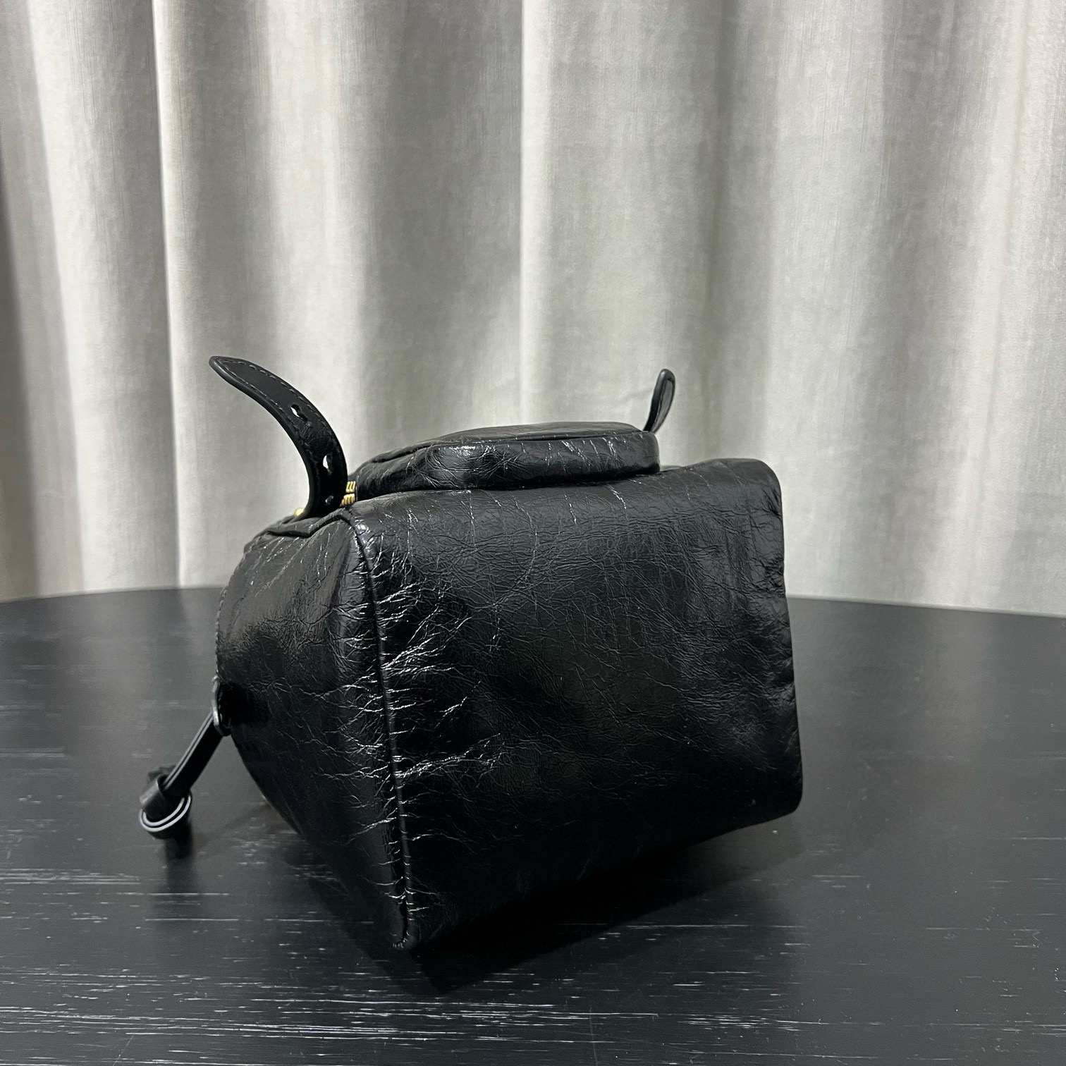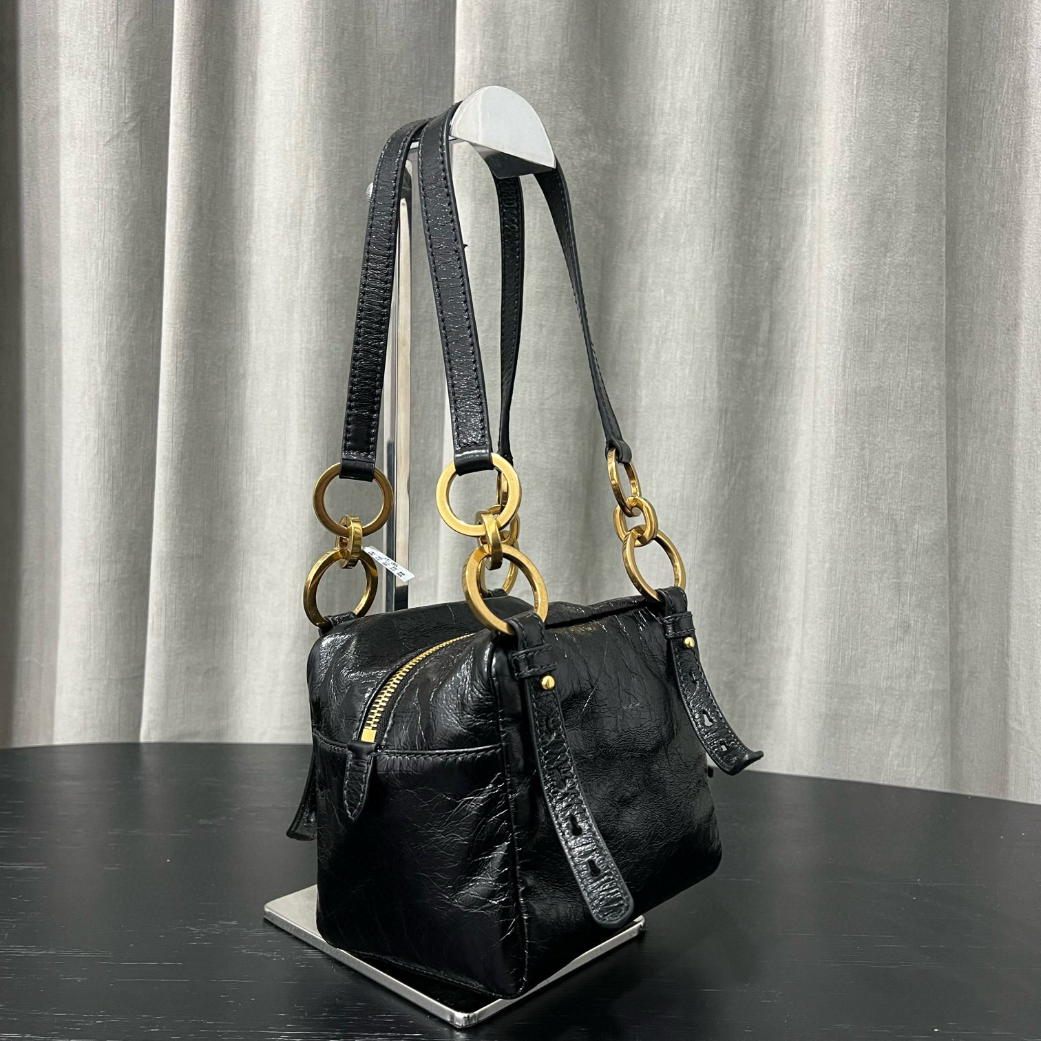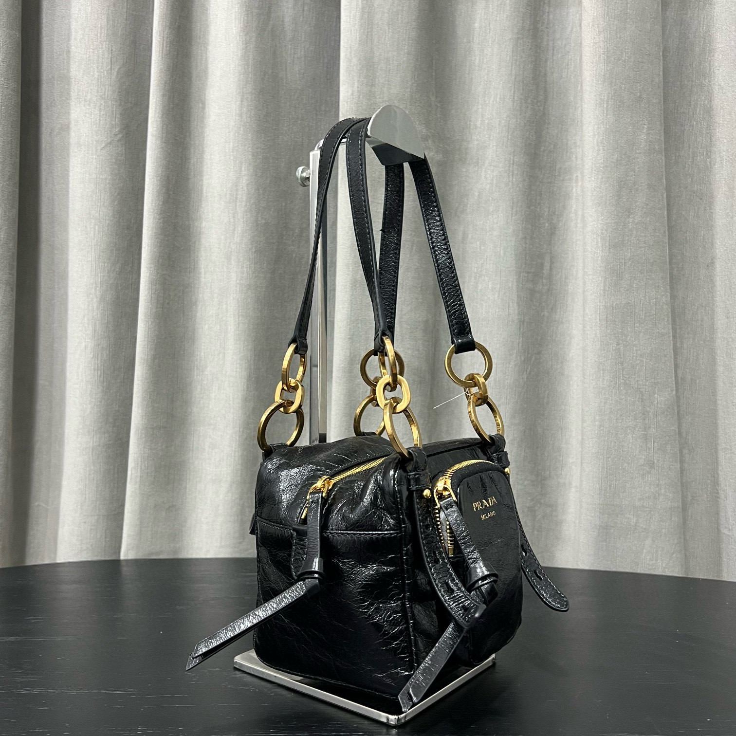 NIGO Prada Dangle Women's Black Letter Print Zipper Closure Cowhide Leather Mini Shoulder Bag Bags #nigo75499