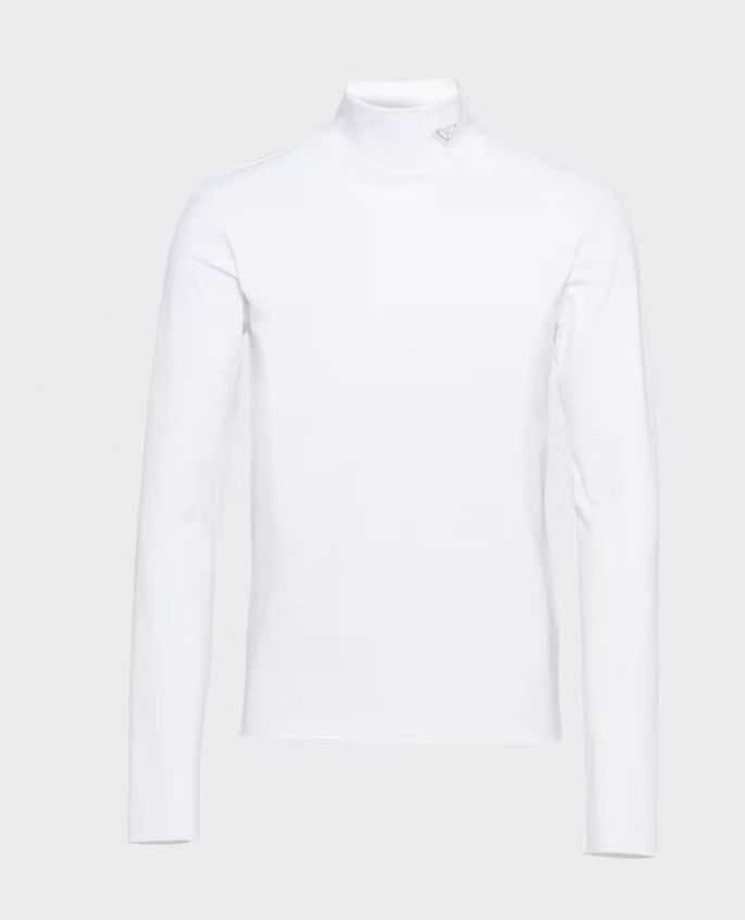 NIGO Prada Women's Spring and Autumn Striped Printed Letter Insert High Neck Pullover Wool Sweater #nigo75136
