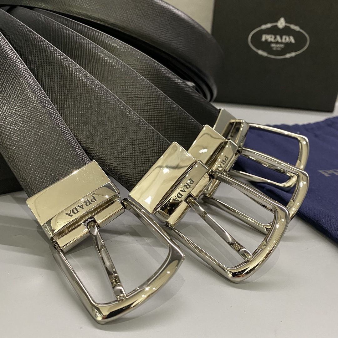 NIGO Prada Men's Reversible Saffiano Cow Leather Belt Casual Jewelry Accessories #nigo71917