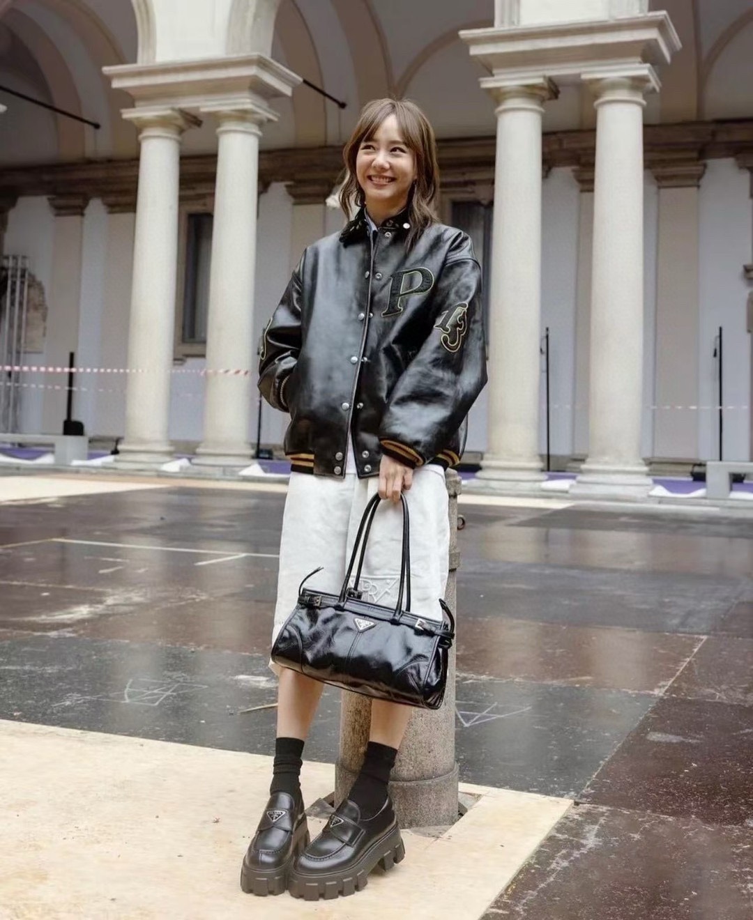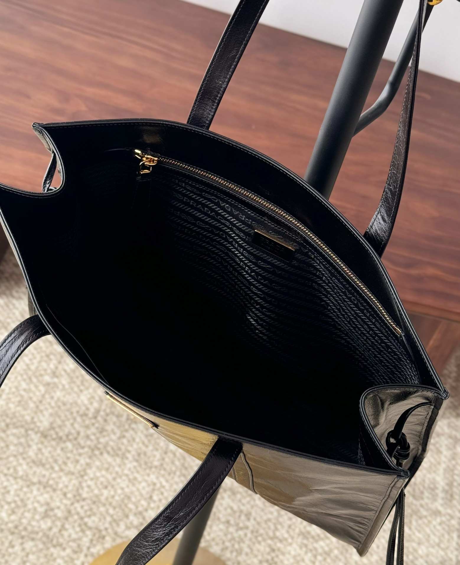 NIGO Prada Women's Black Metal Triangle Label Leather Shopper Tote Bag Handbag Bags #nigo74627