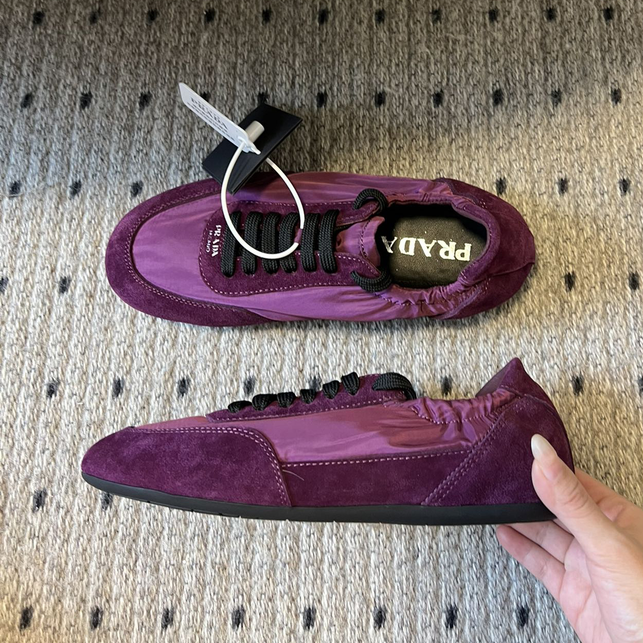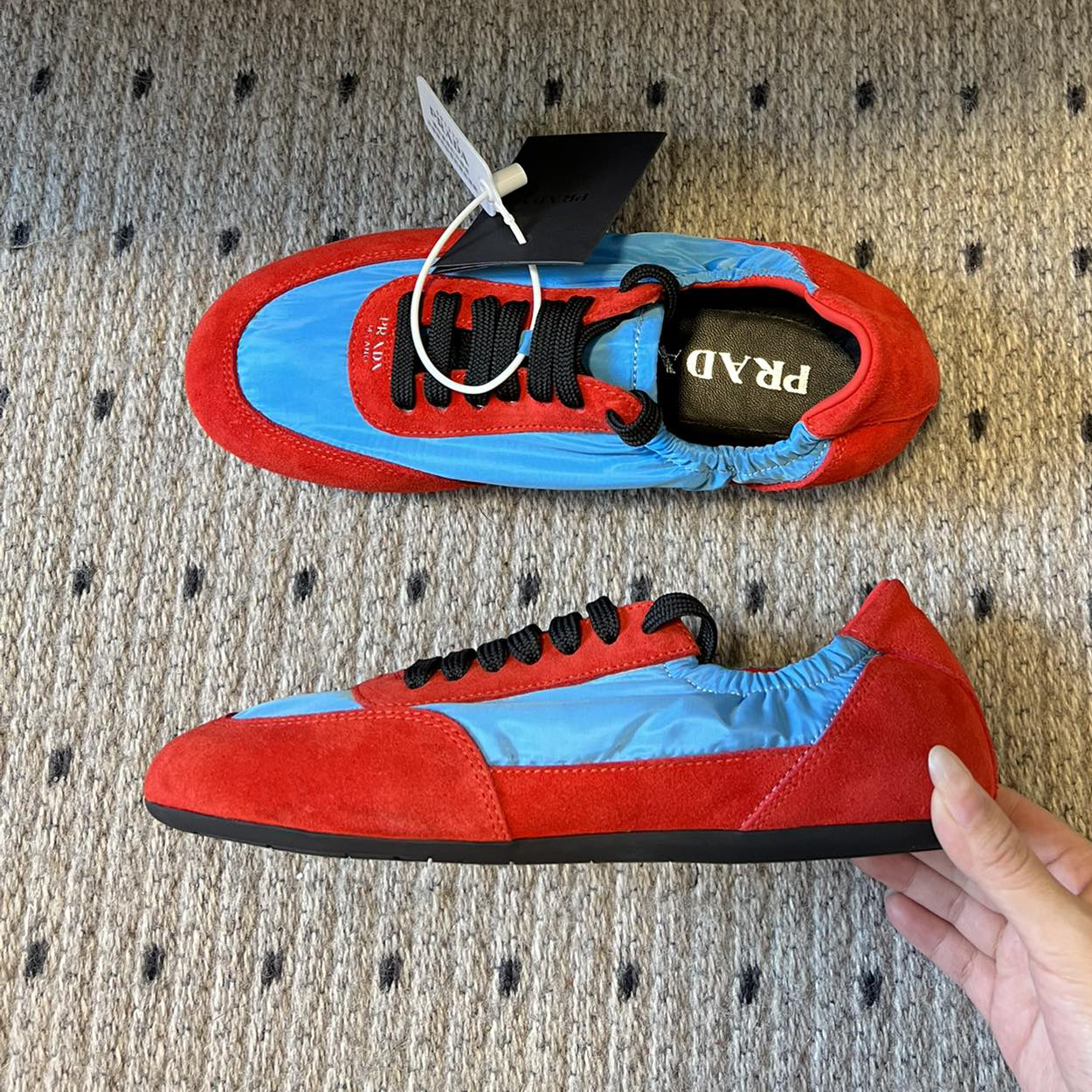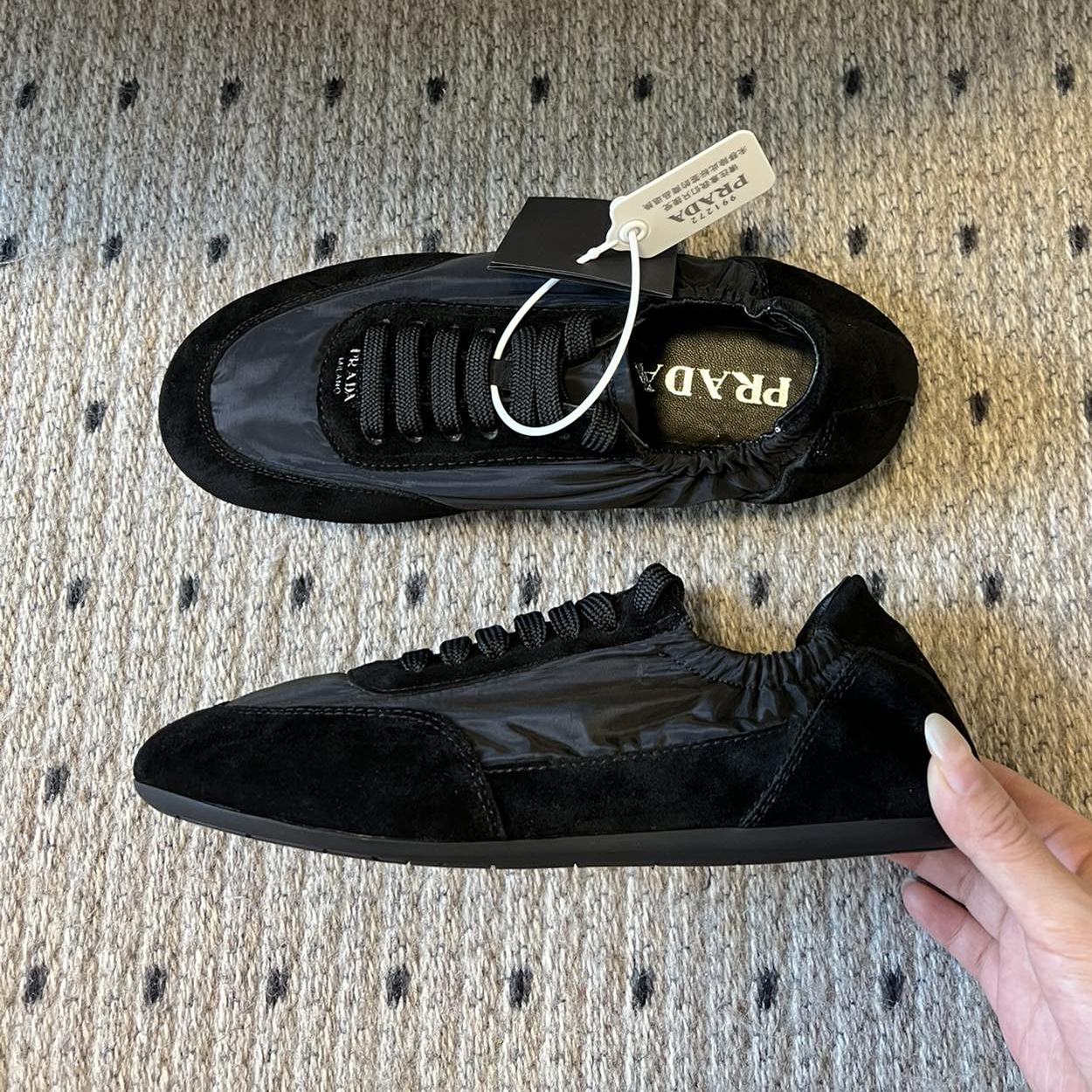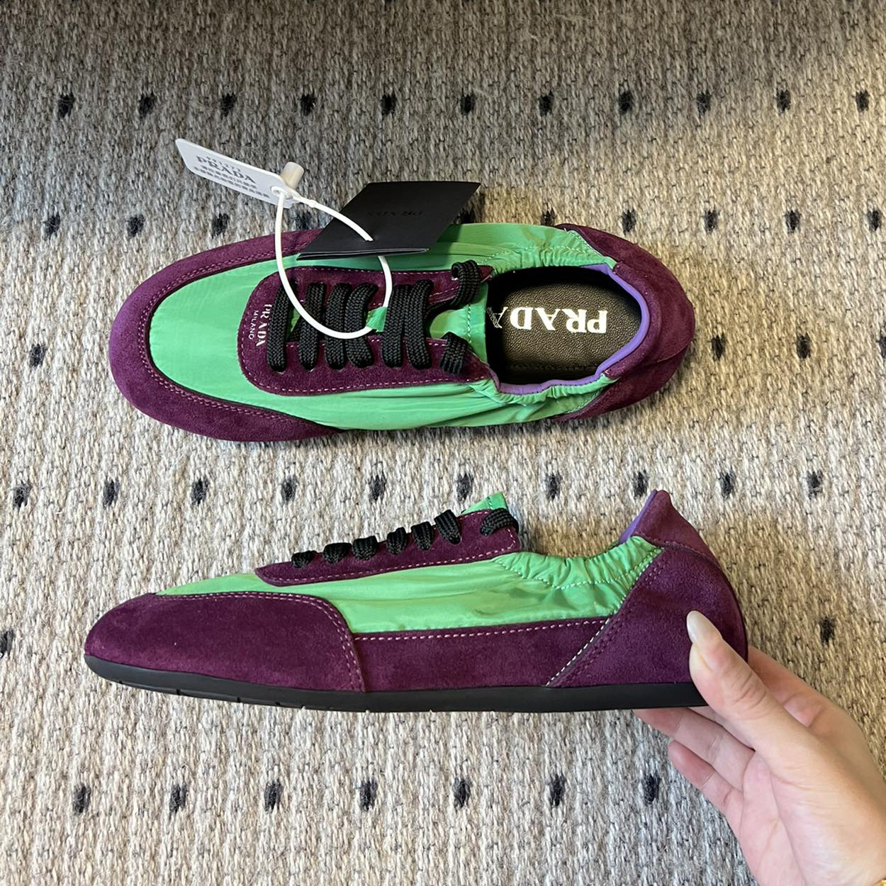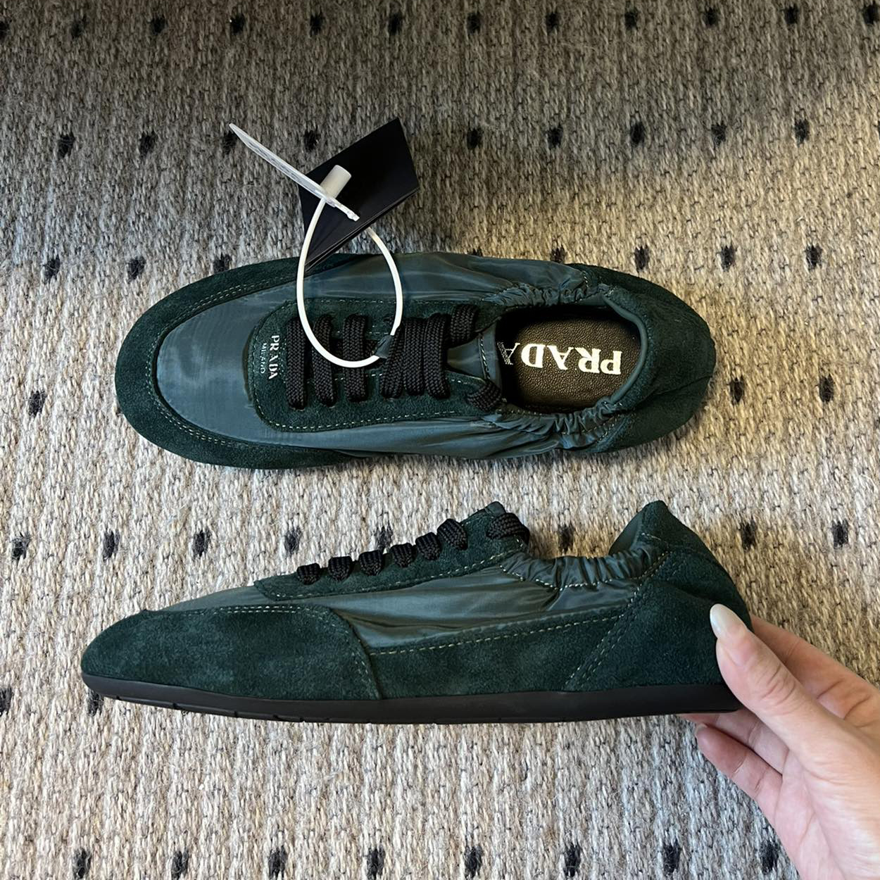 NIGO Prada Women's Suede Fabric Sheepskin Lining Low Top Lace Up Round Toe German Training Shoes #nigo74674