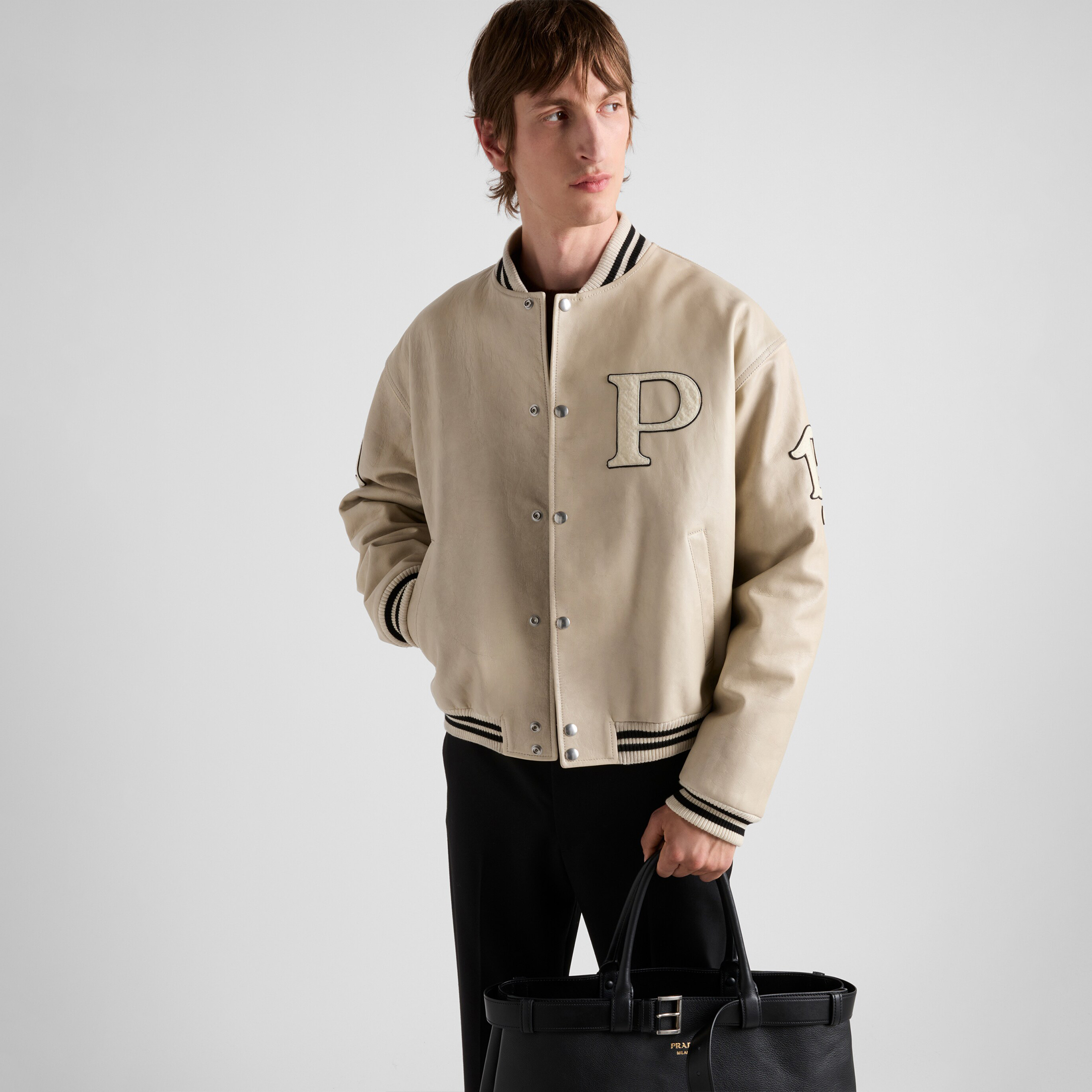 NIGO Prada Men's Solid Color Re-Nylon and Saffiano Leather Briefcase Tote Bag Bags #nigo74626