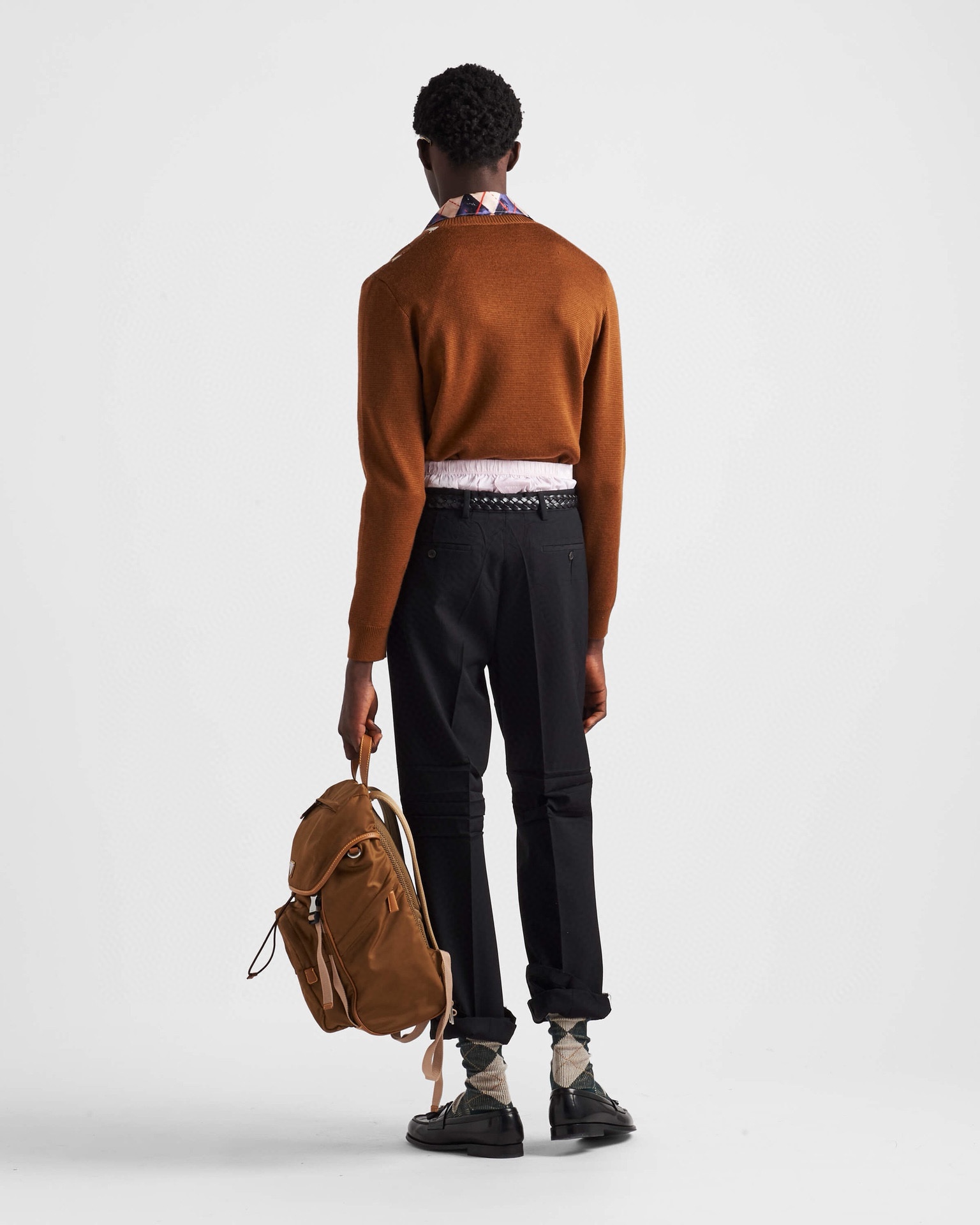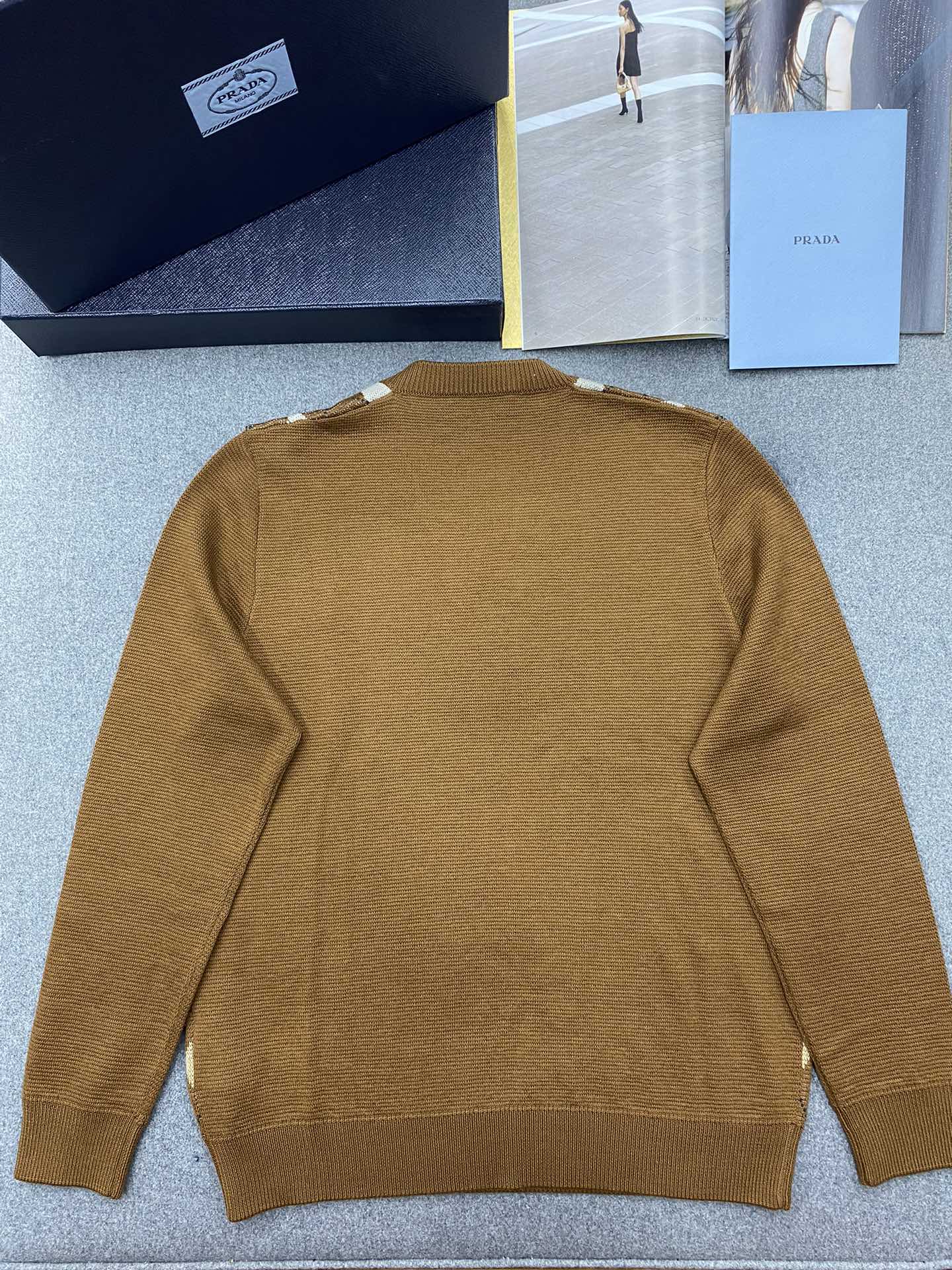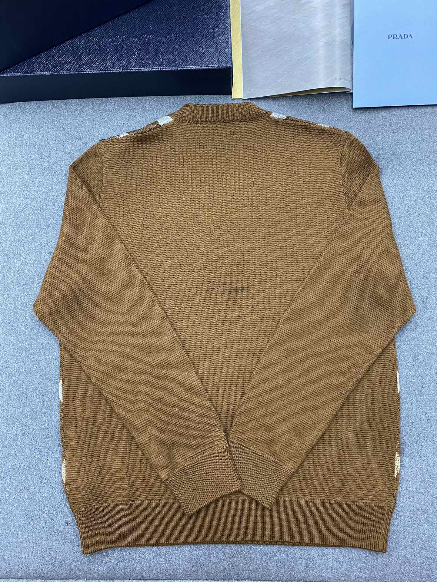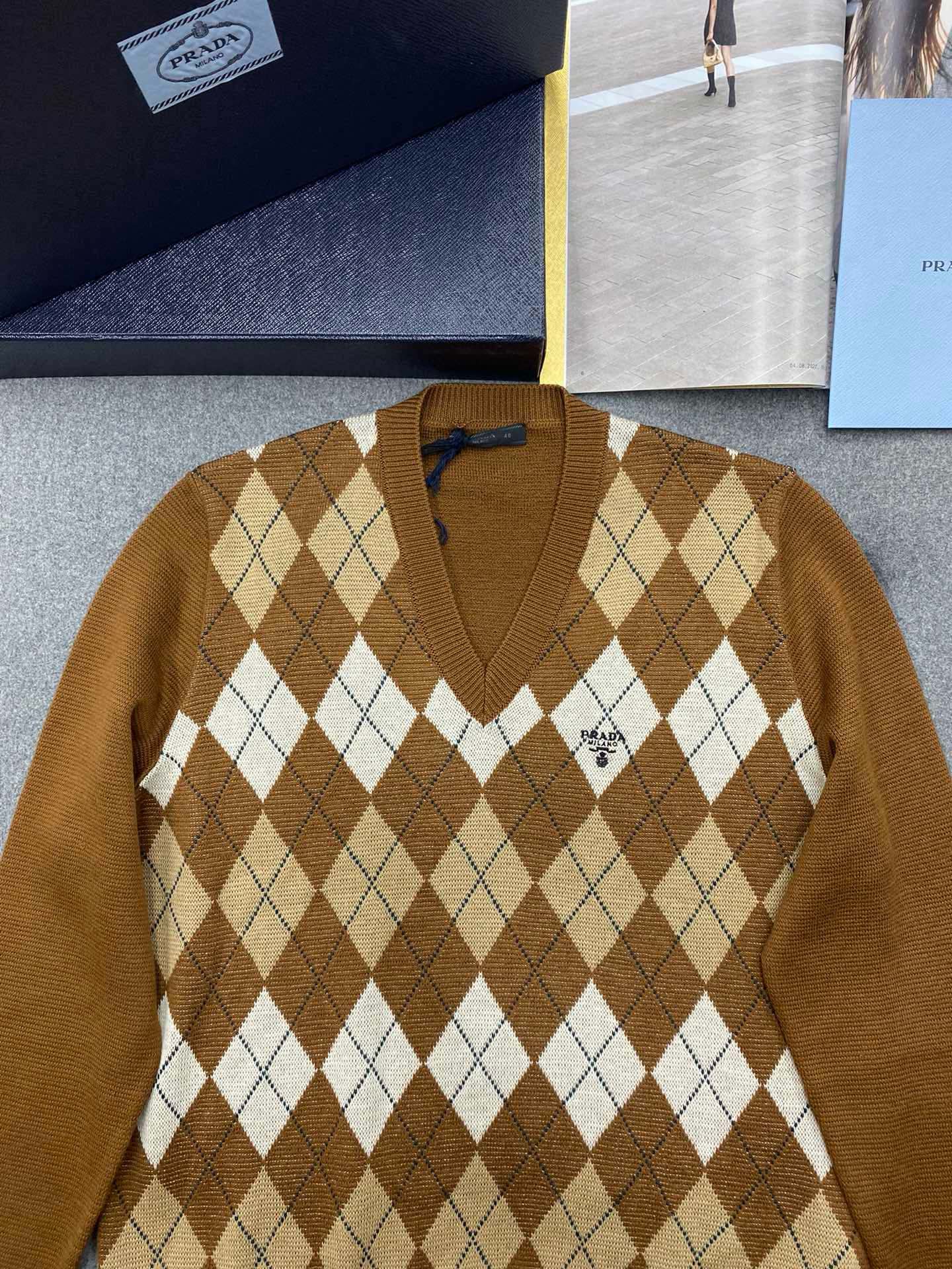 NIGO Prada Men's Spring And Fall Brown Diamond Applique V-neck Knitted Wool Casual Long Sleeved Sweater #nigo73612
