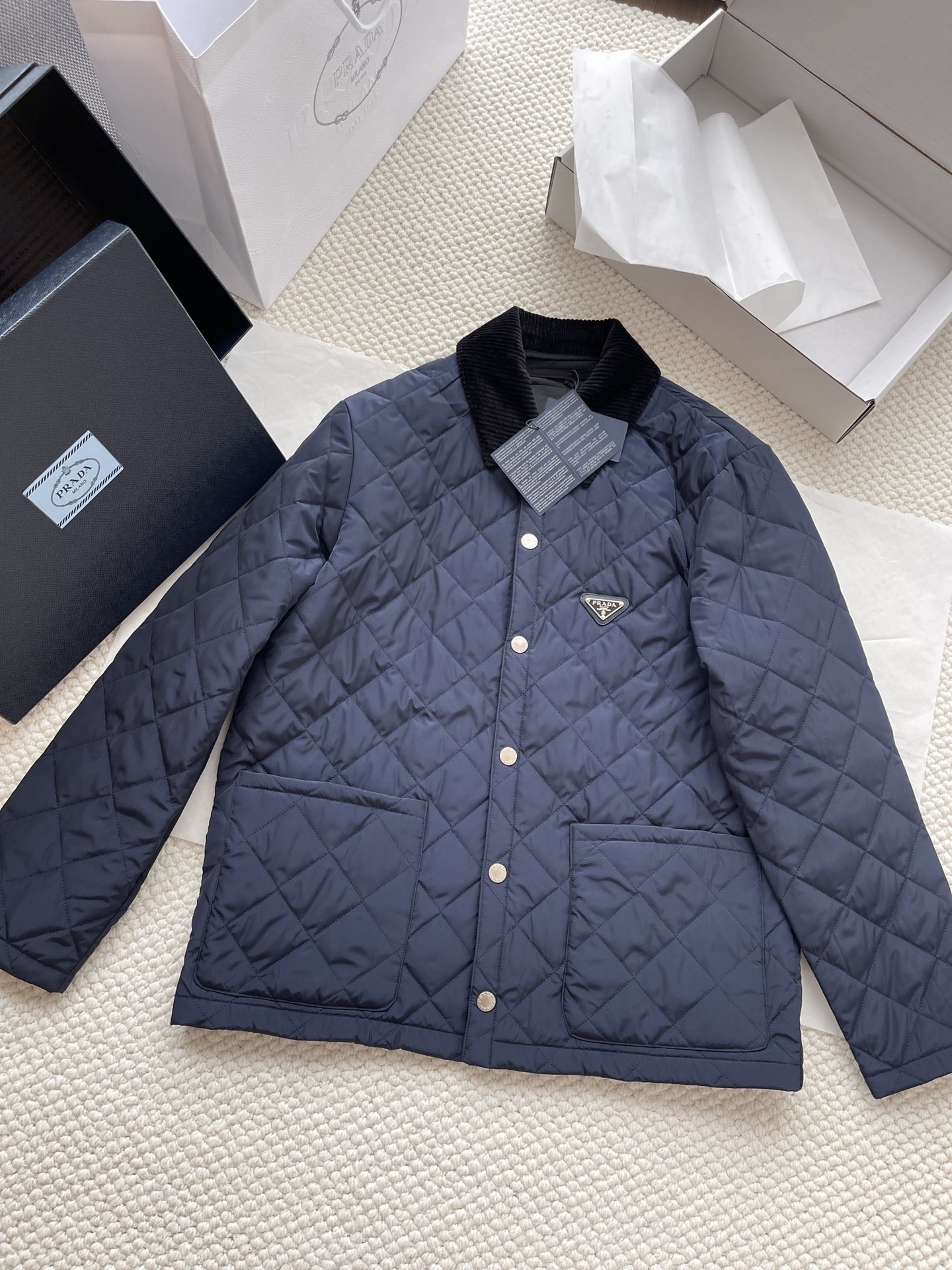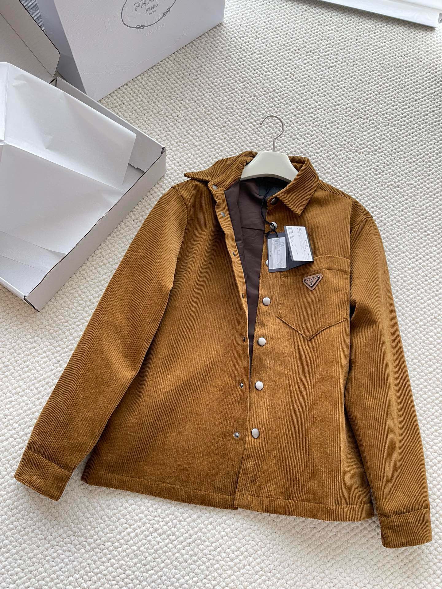 NIGO Prada Men's Autumn and Winter Solid Color Logo Logo Single Breasted Corduroy Long Sleeve Jacket #nigo73631