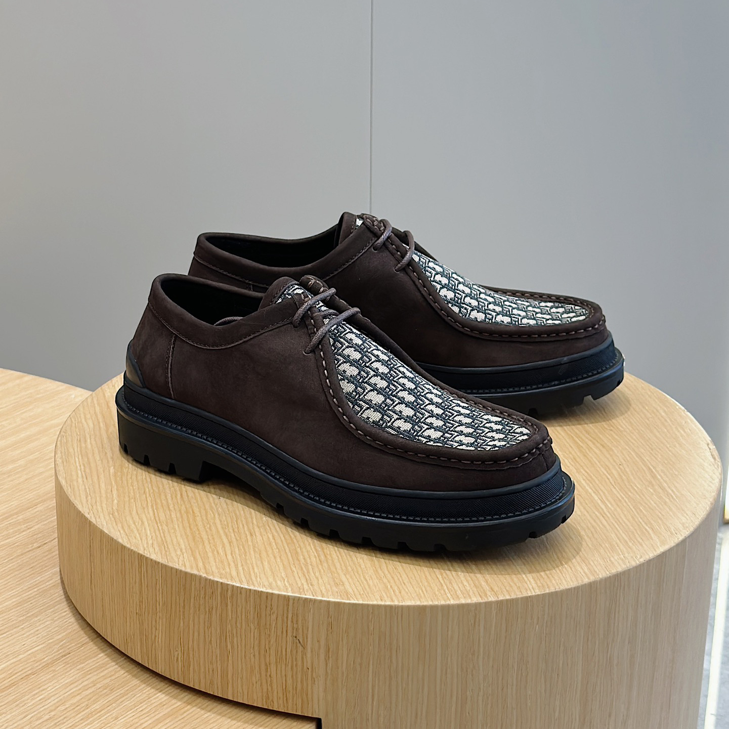 NIGO Prada Men's Fall And Winter Leather Splicing Simple Lace-up Casual Shoes #nigo73296