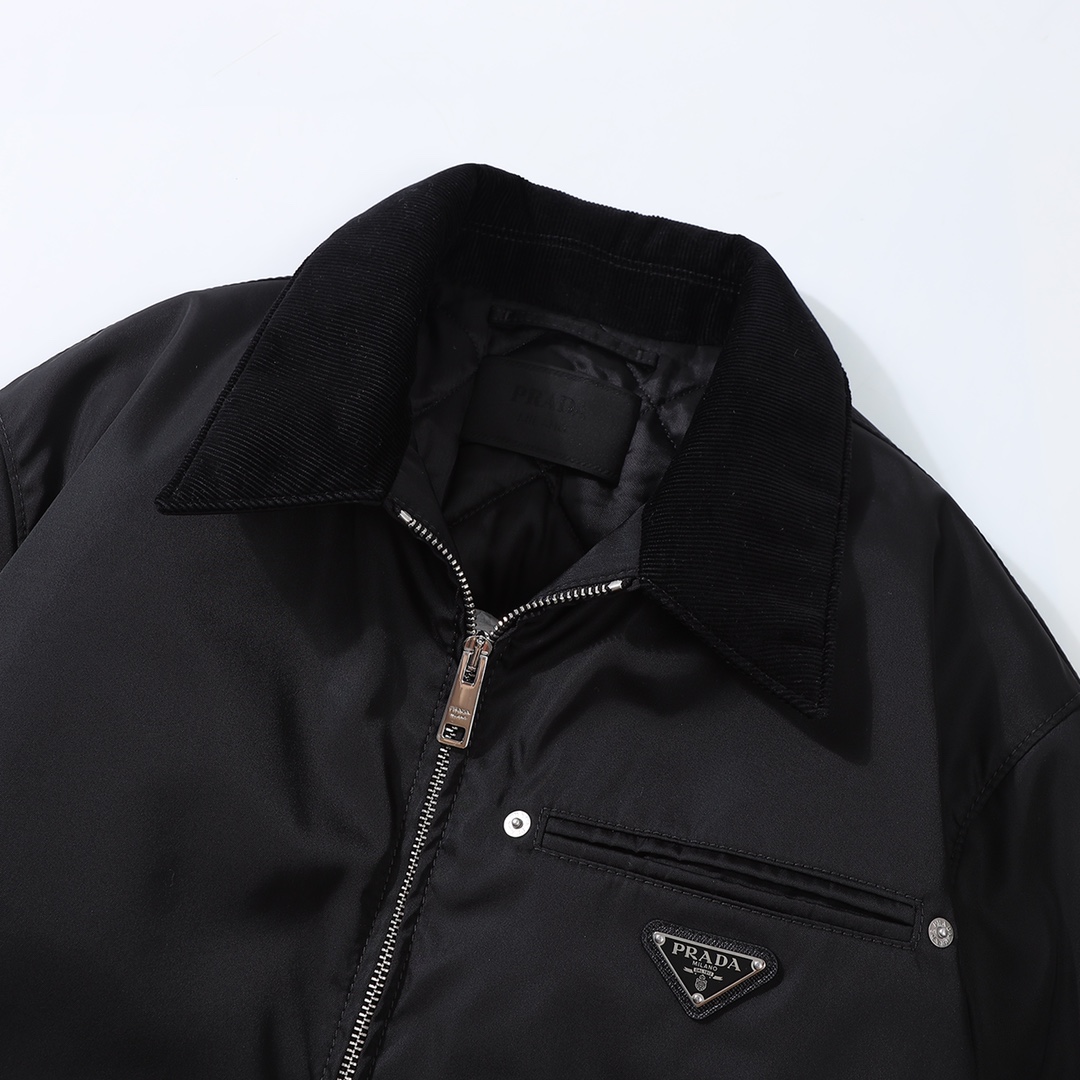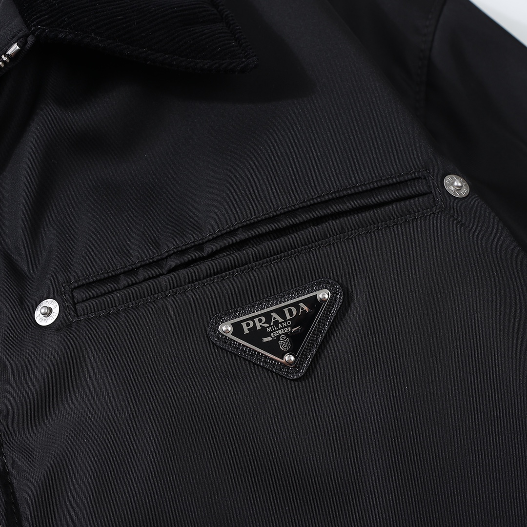 NIGO Prada Men's Fall And Winter Black Nylon With Corduroy Zipper Long Sleeved Jacket #nigo73321