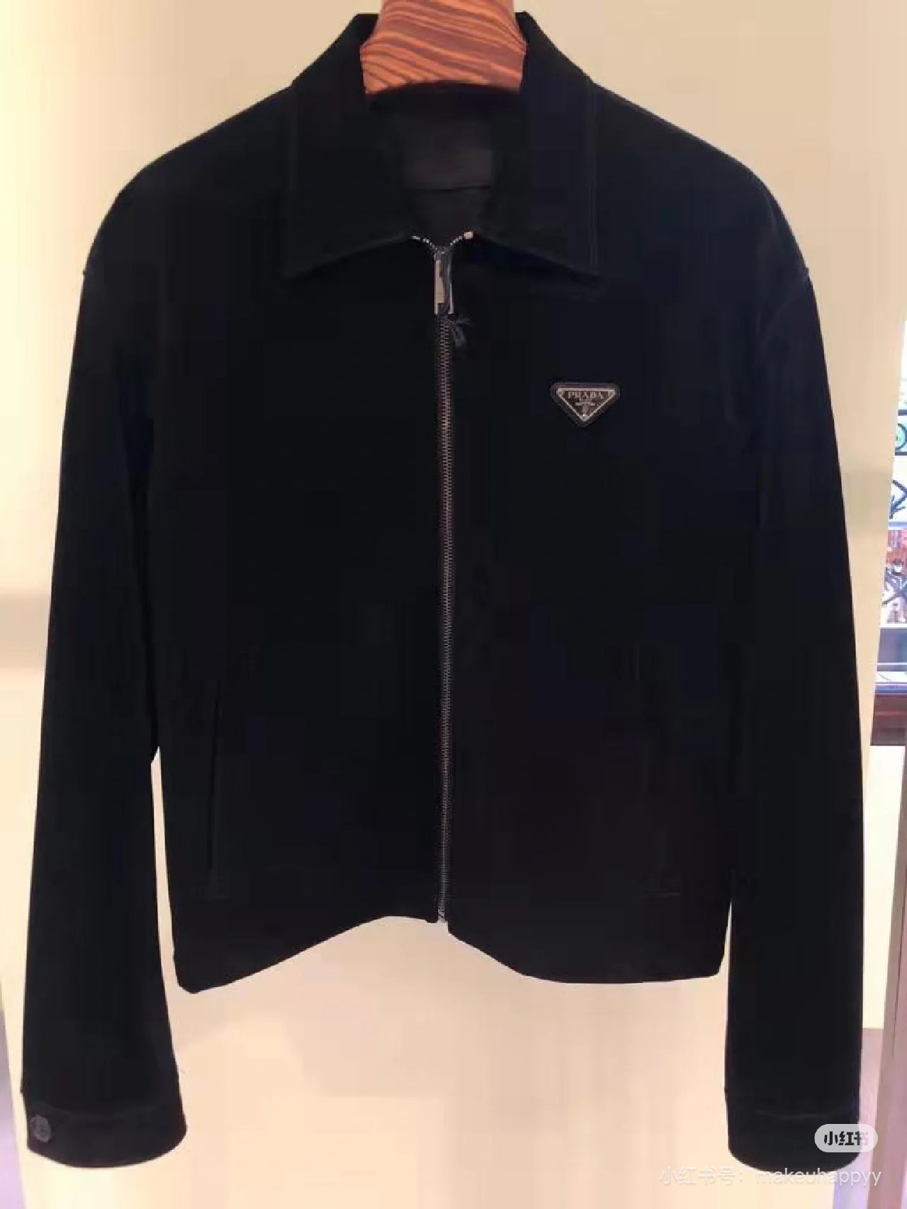NIGO Prada Men's Fall/Winter Triangle Logo Label Velvet Zipper Long Sleeve Jacket #nigo73322